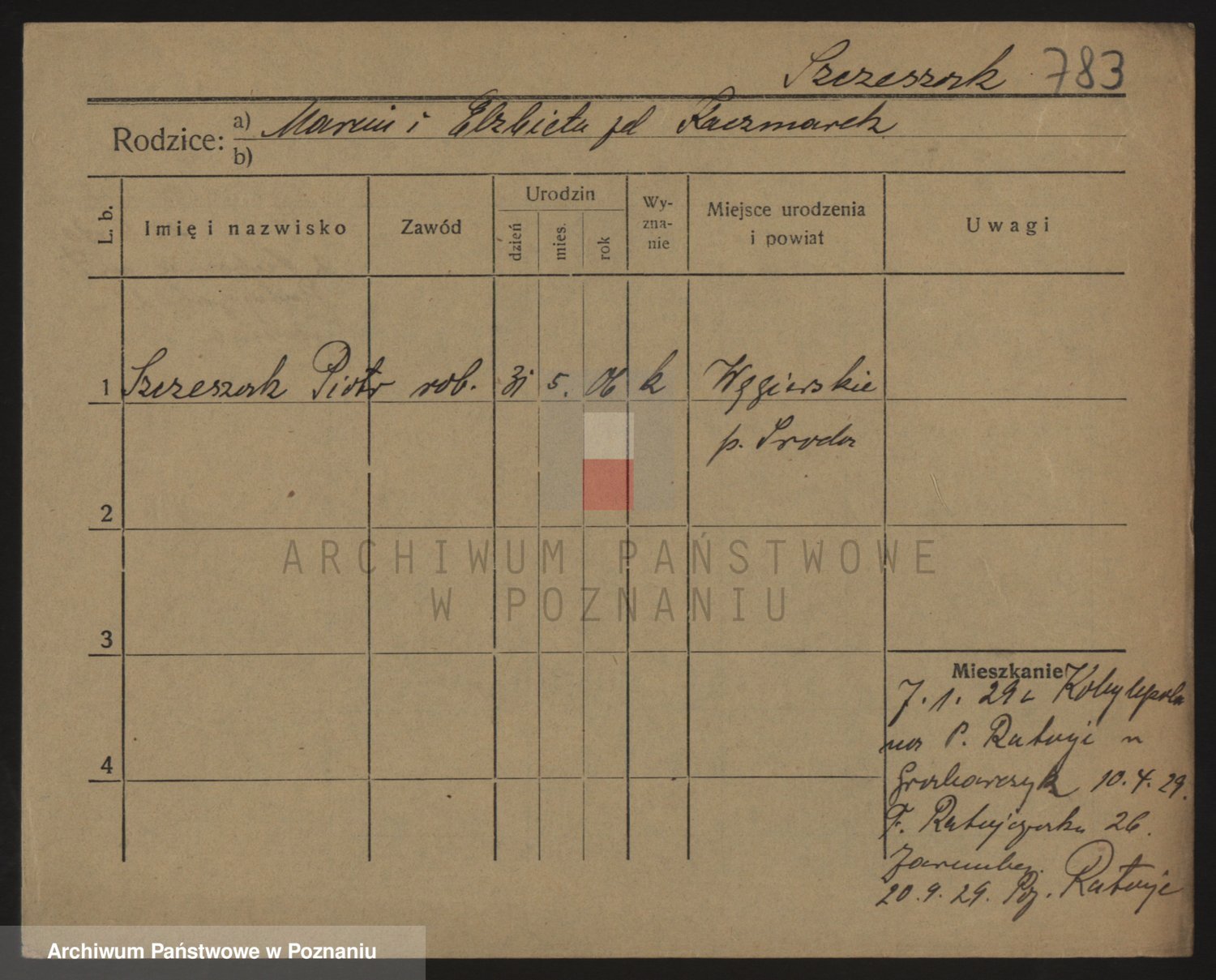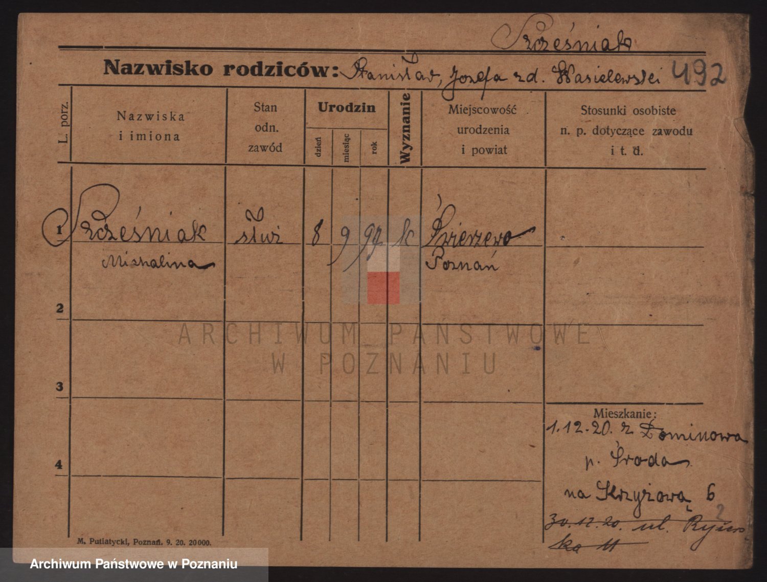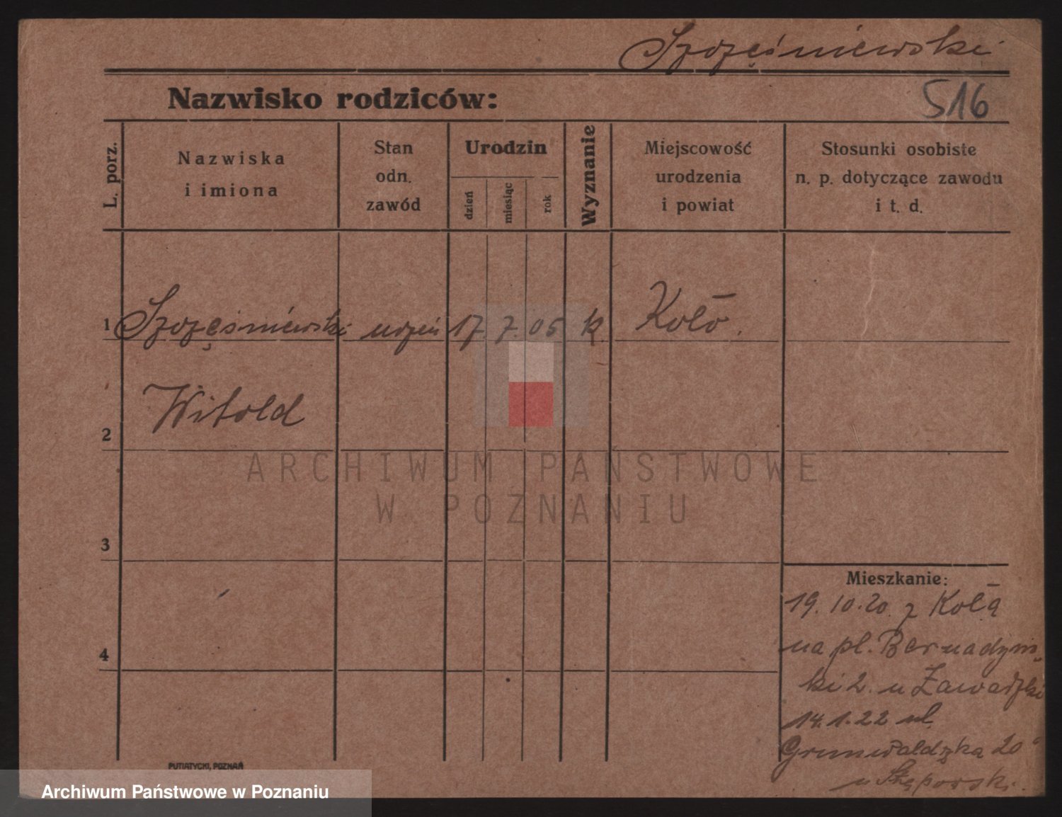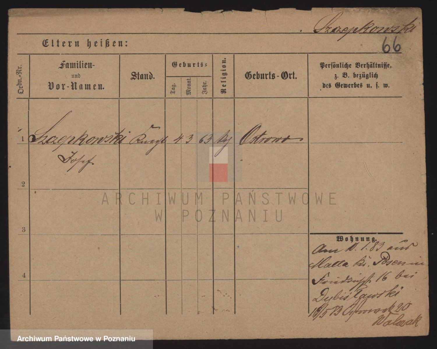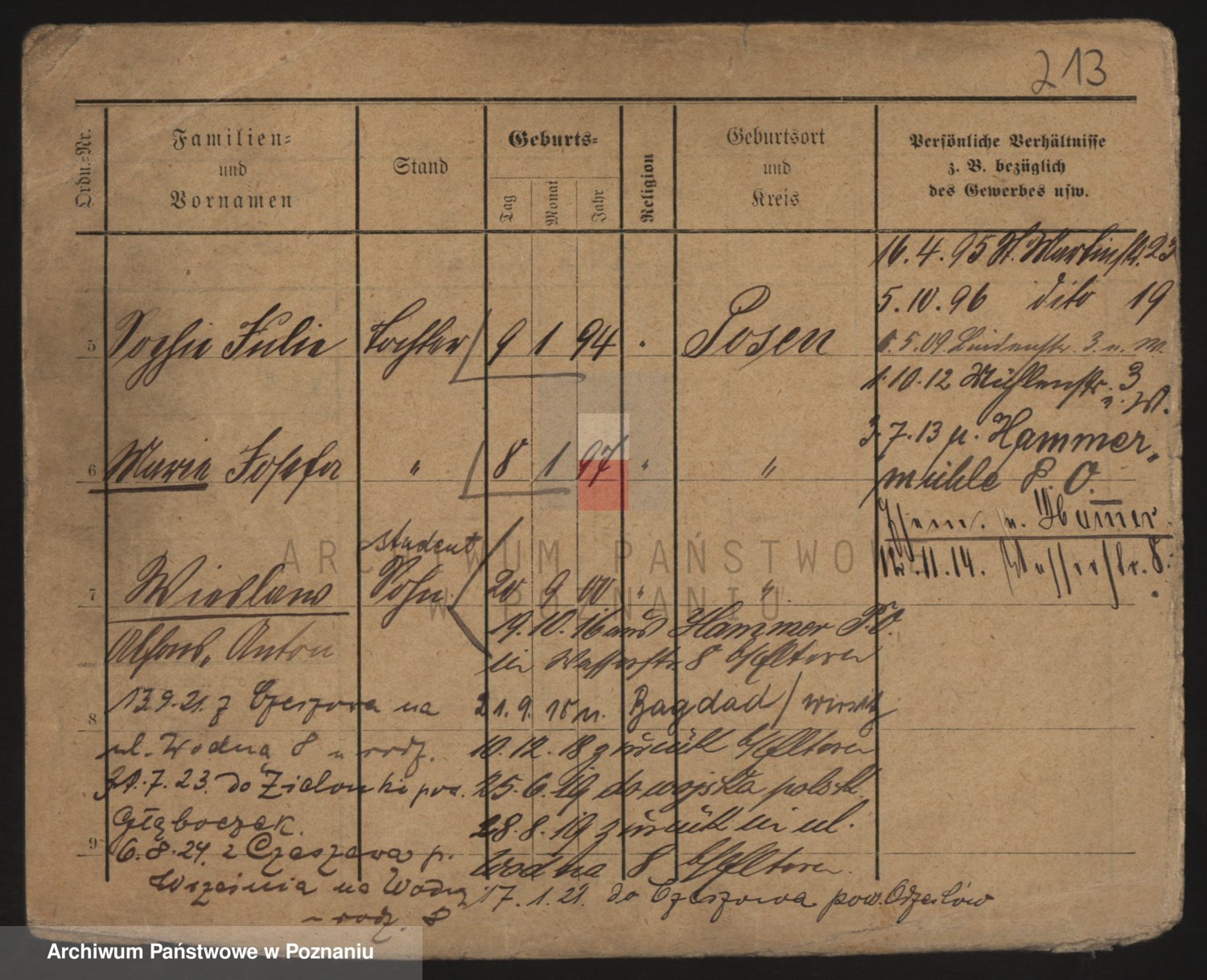 Podgląd karty osobowej dostępny jest po kliknięciu na nazwisko lub ikonkę karty. Można dokonywać powiększenia (ikony na górze) lub przechodzić między kolejnymi skanami (strzałki po bokach).