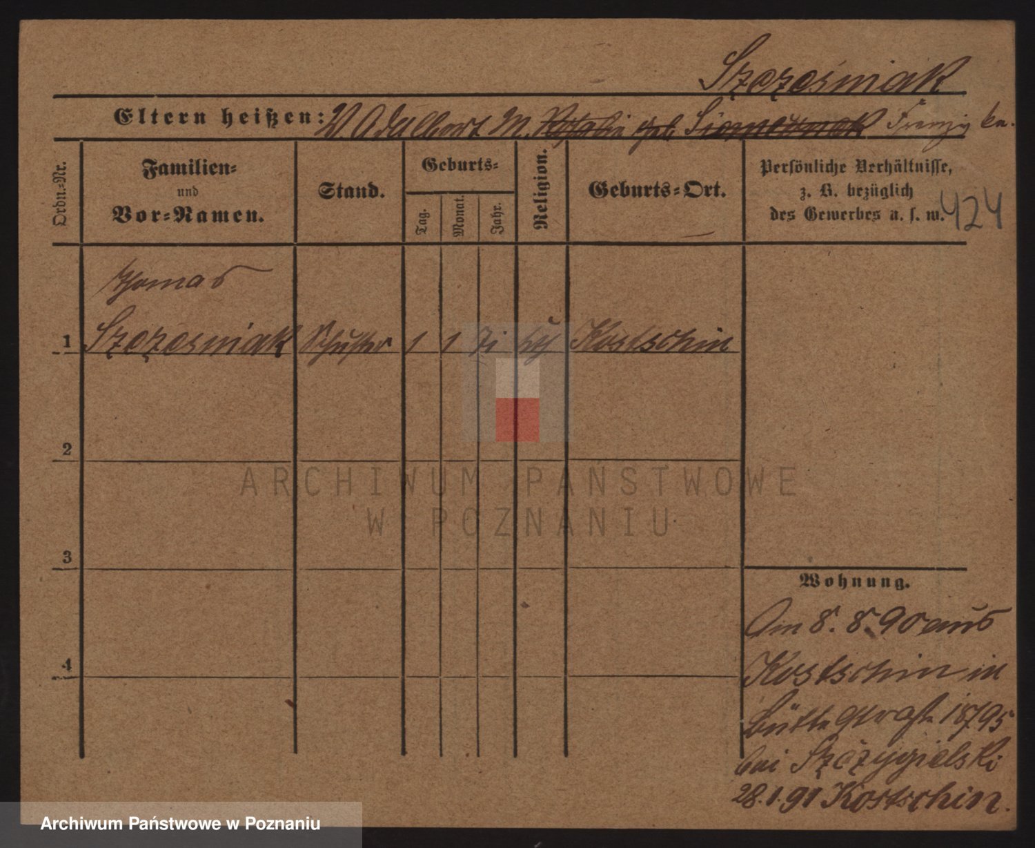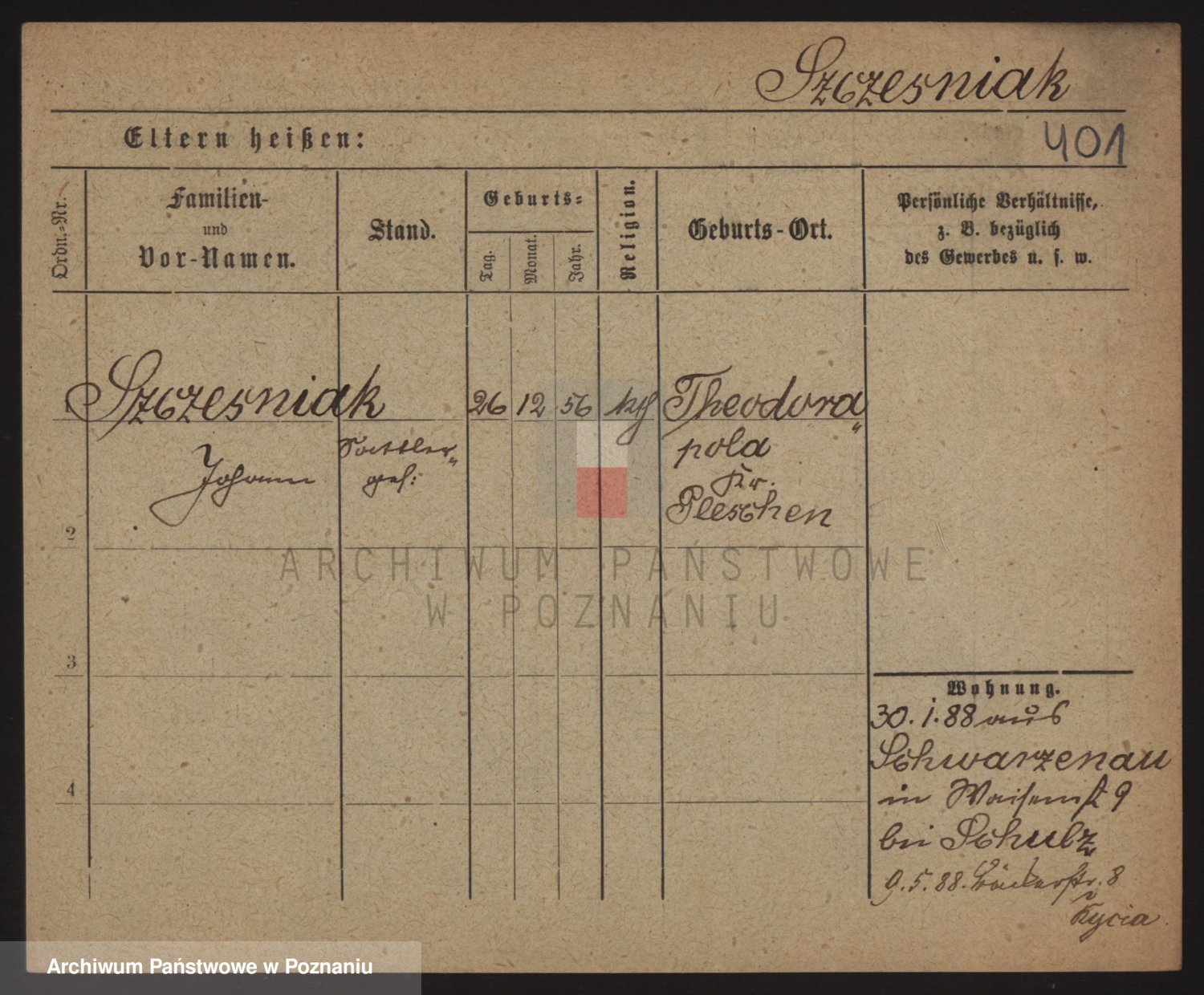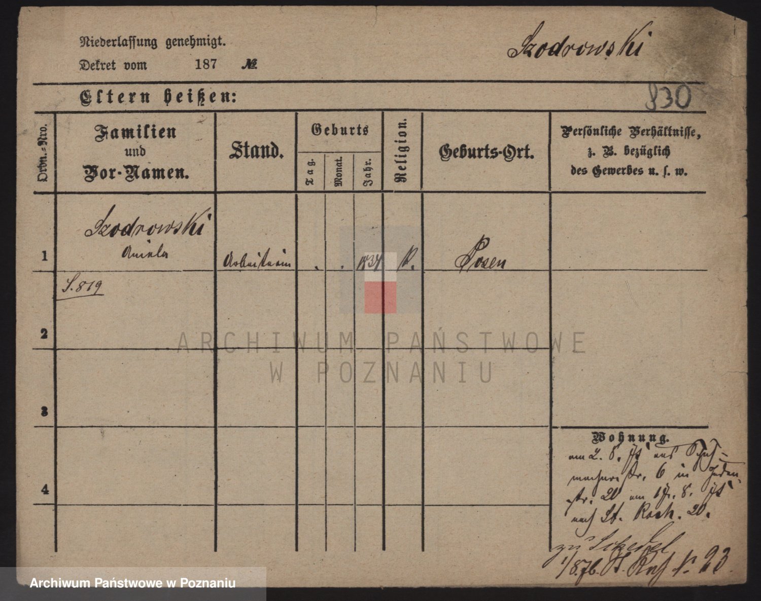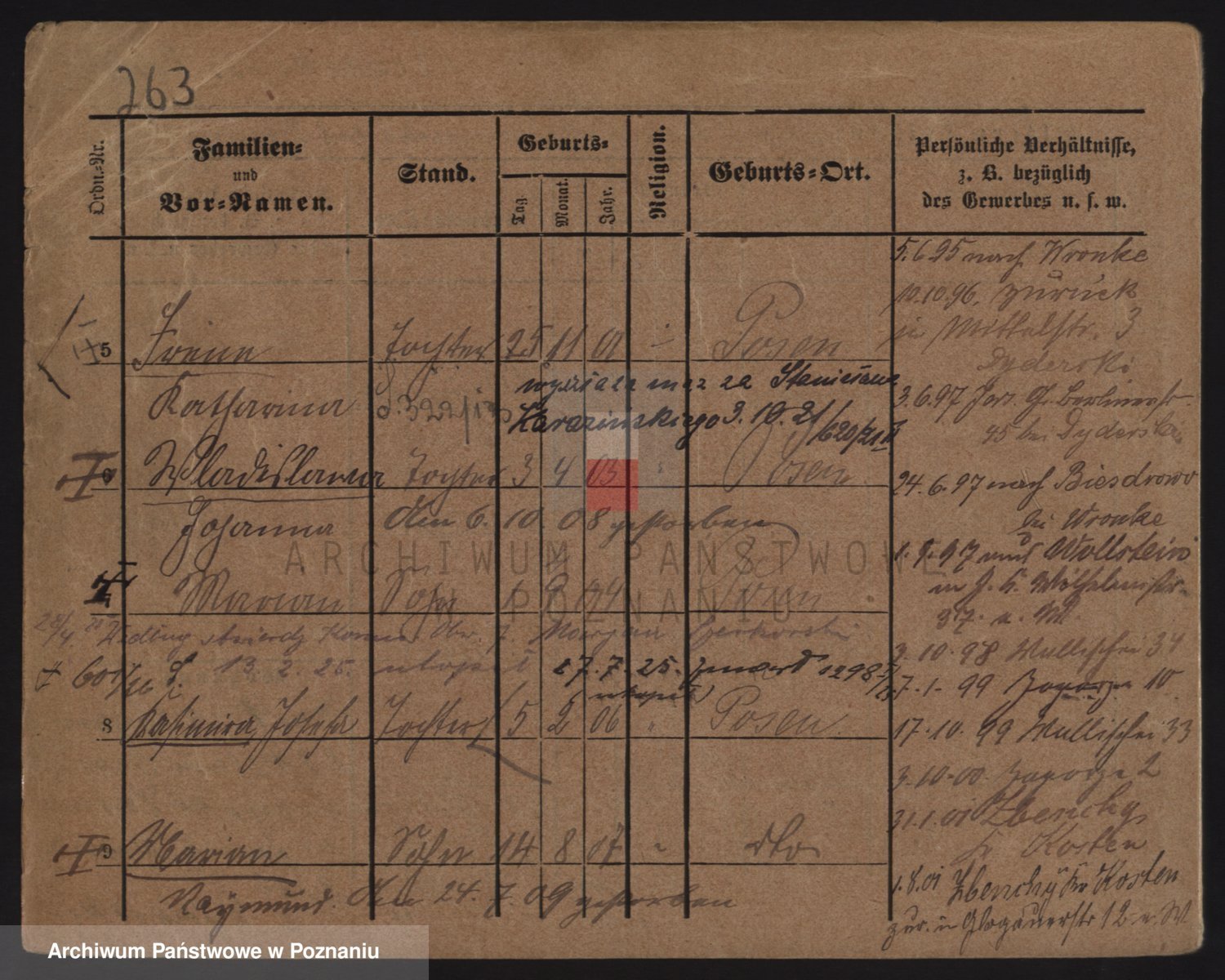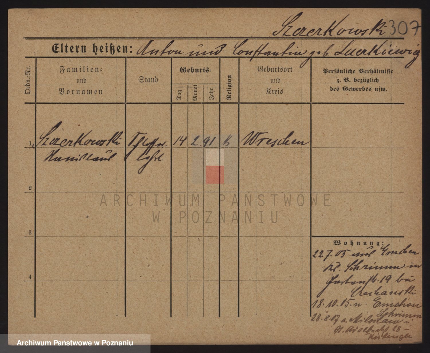 Podgląd karty osobowej dostępny jest po kliknięciu na nazwisko lub ikonkę karty. Można dokonywać powiększenia (ikony na górze) lub przechodzić między kolejnymi skanami (strzałki po bokach).