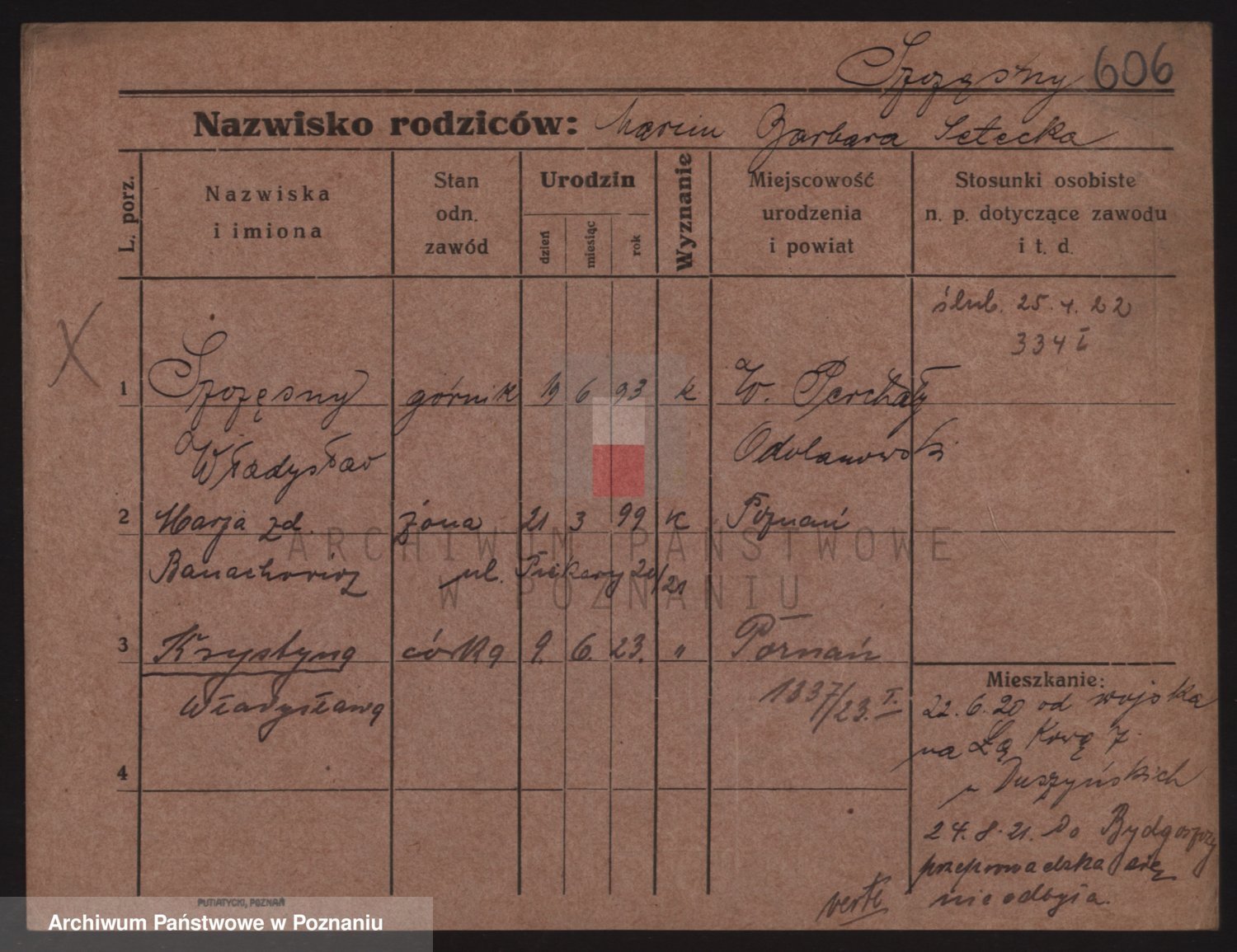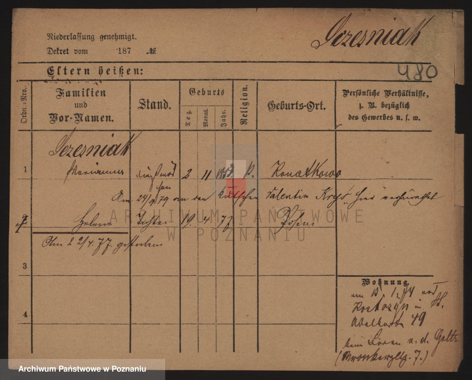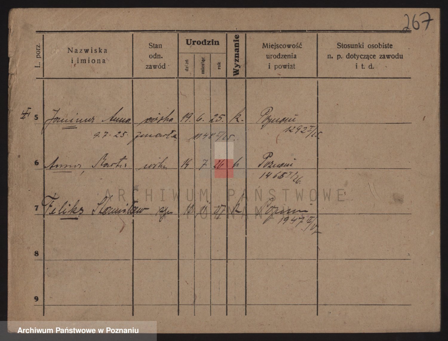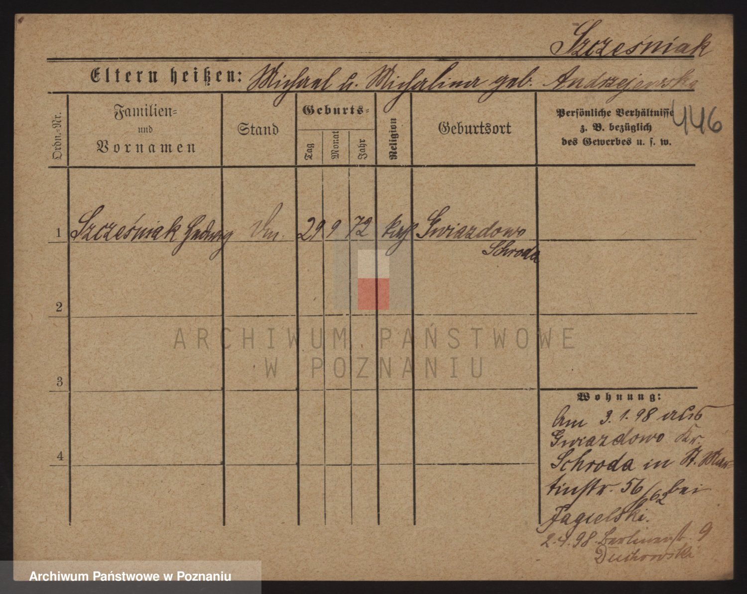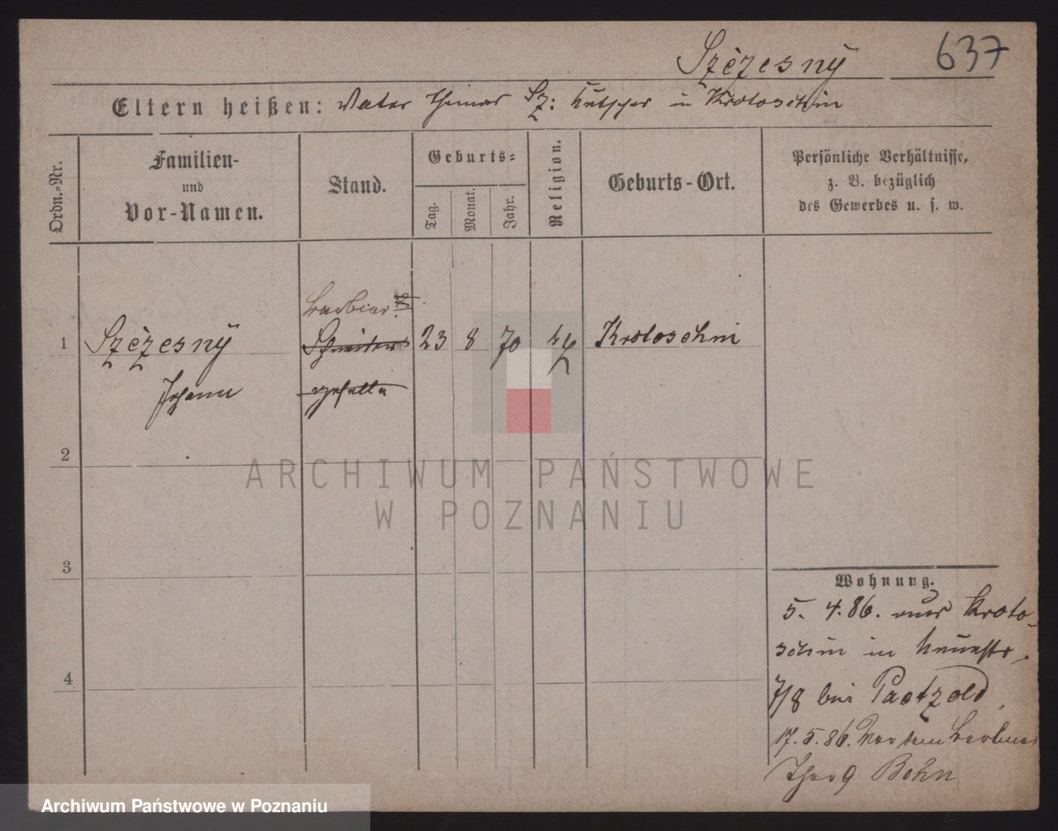 Podgląd karty osobowej dostępny jest po kliknięciu na nazwisko lub ikonkę karty. Można dokonywać powiększenia (ikony na górze) lub przechodzić między kolejnymi skanami (strzałki po bokach).