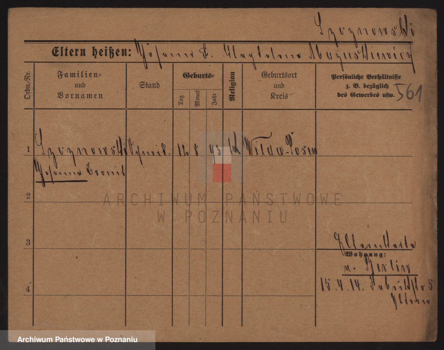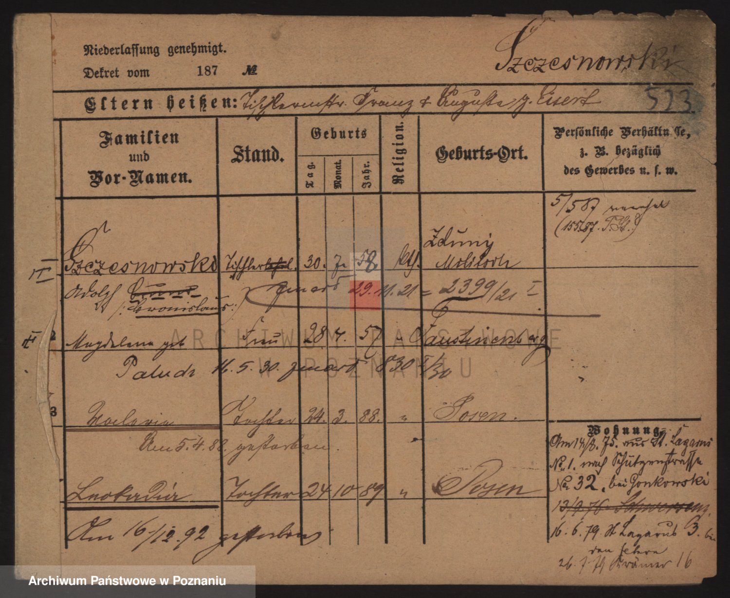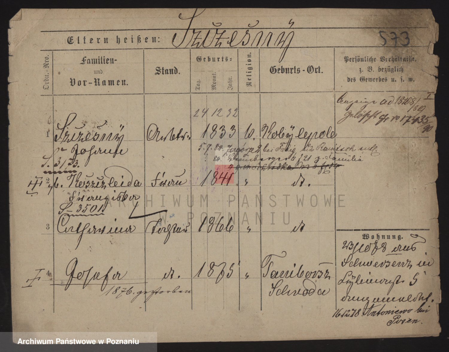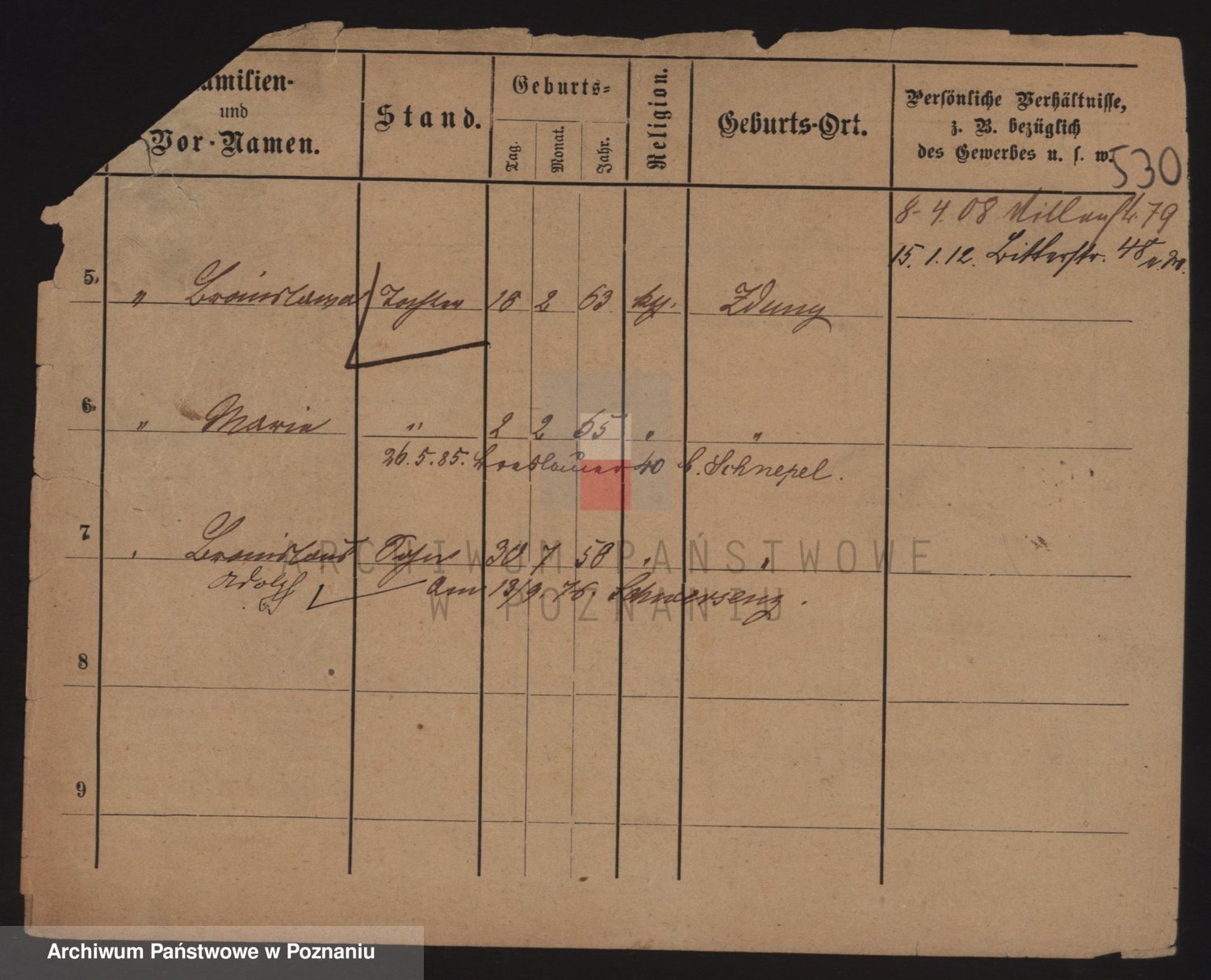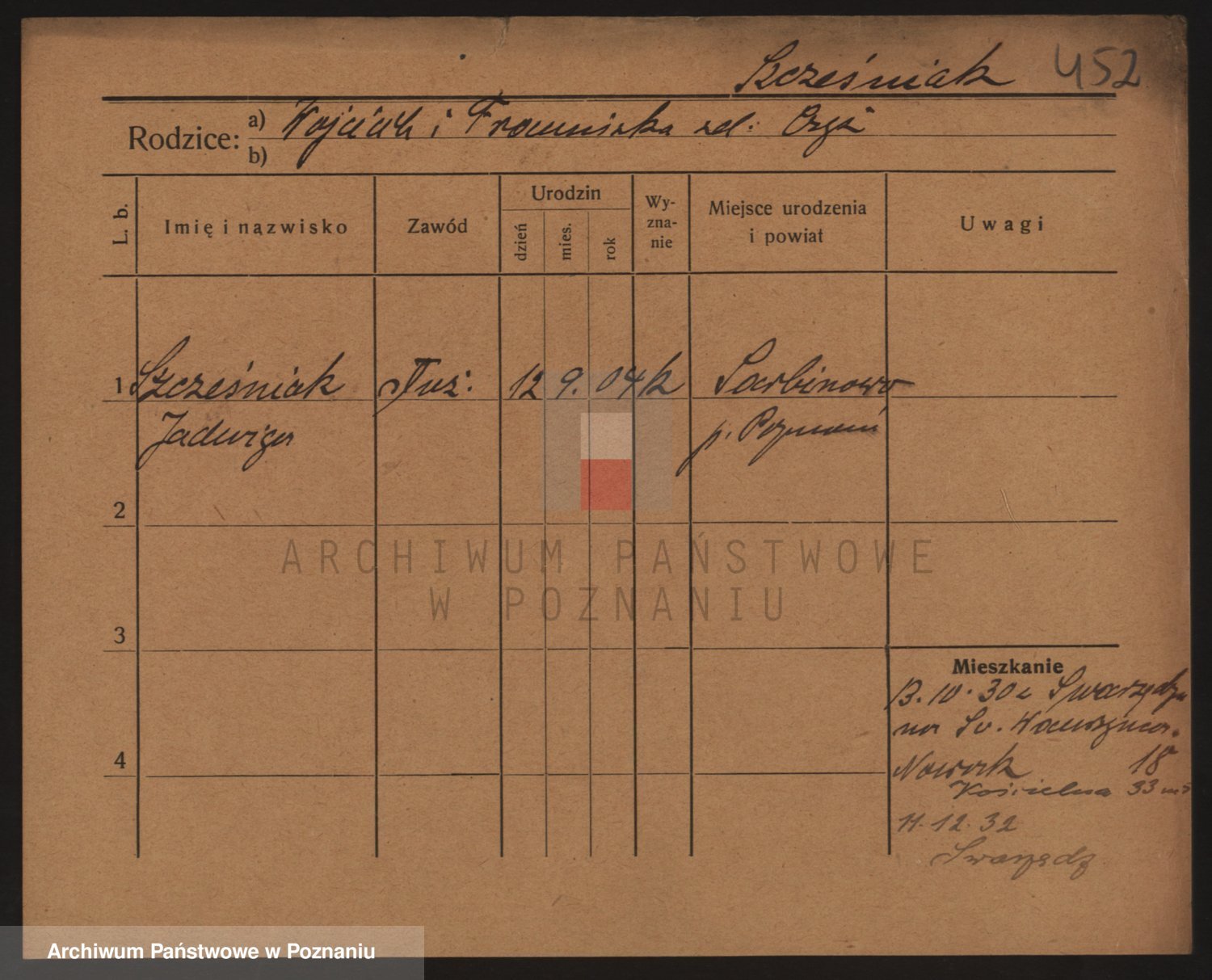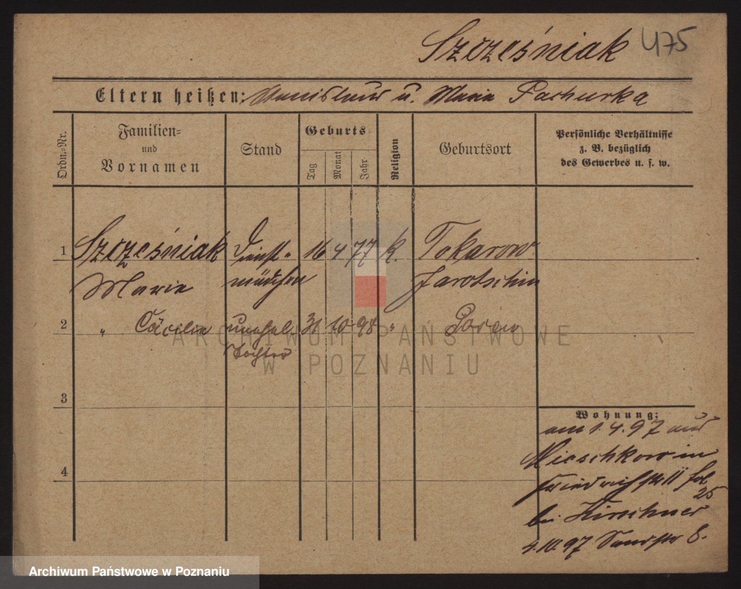Podgląd karty osobowej dostępny jest po kliknięciu na nazwisko lub ikonkę karty. Można dokonywać powiększenia (ikony na górze) lub przechodzić między kolejnymi skanami (strzałki po bokach).