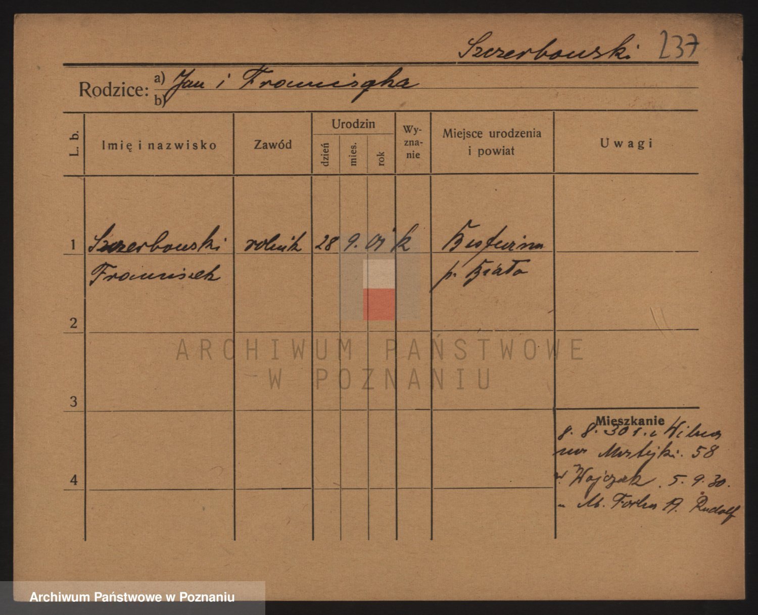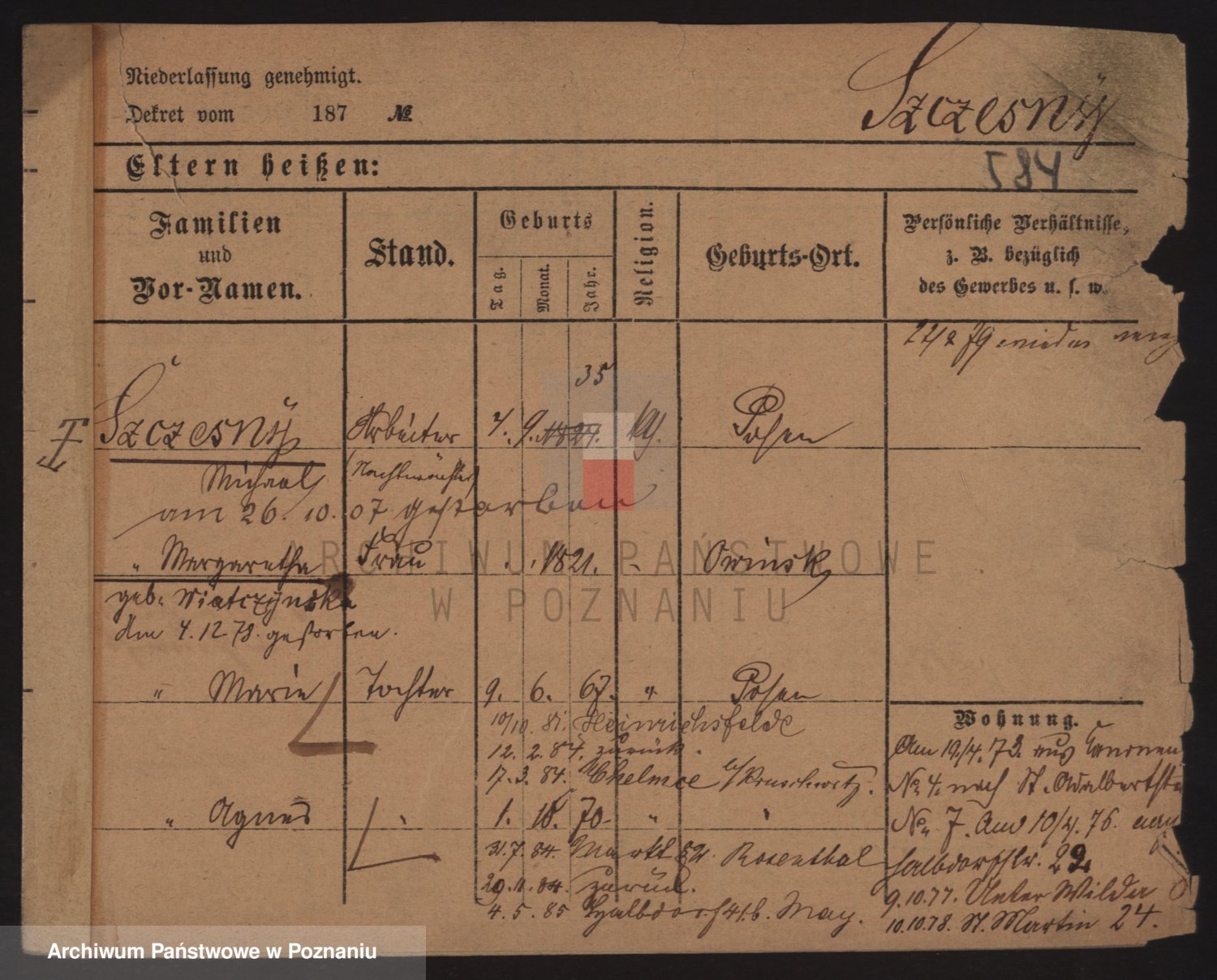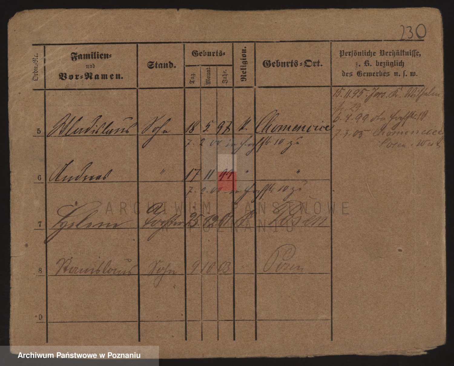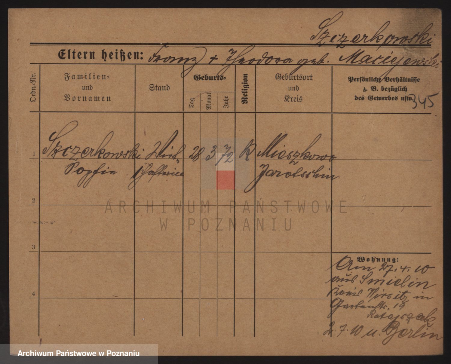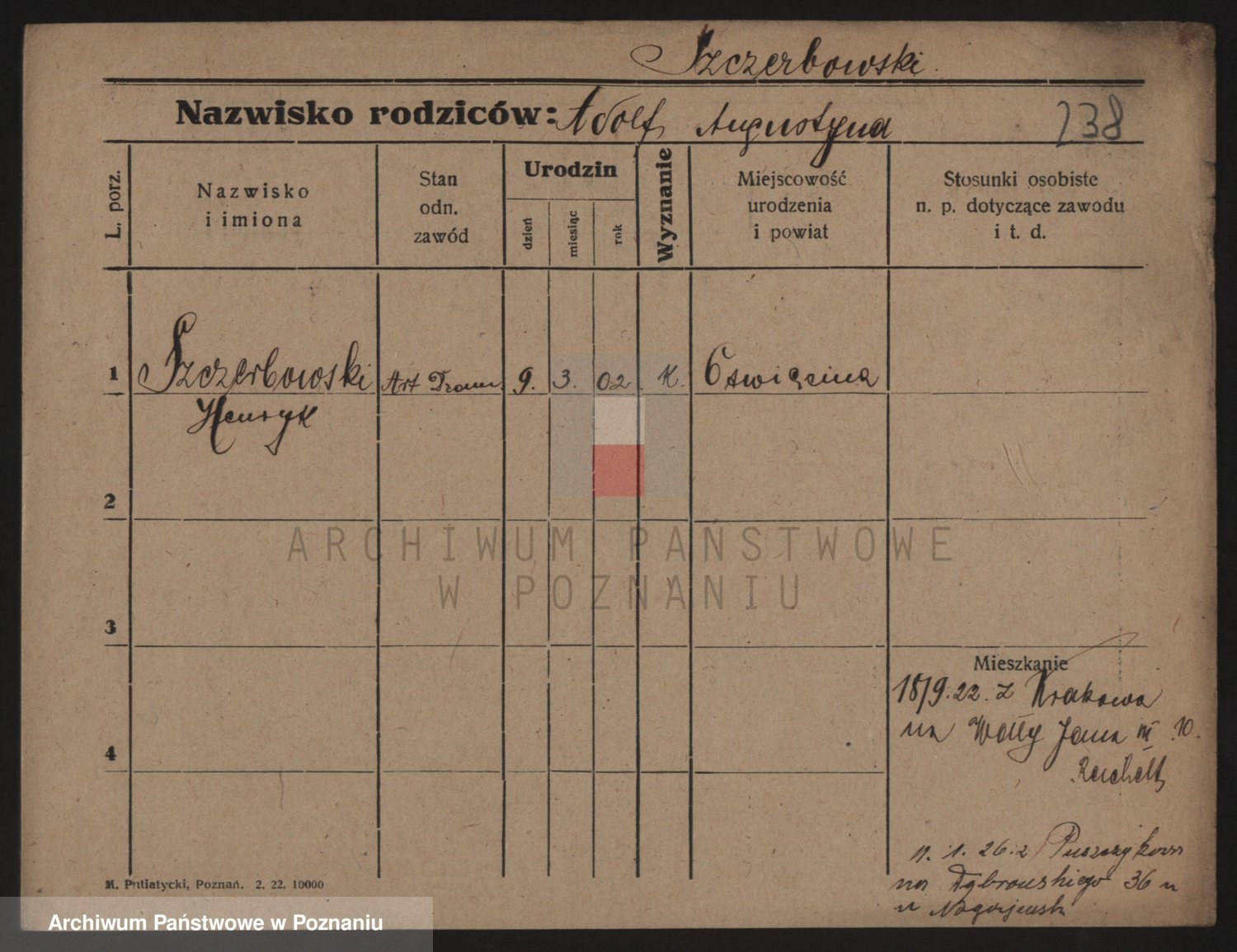 Podgląd karty osobowej dostępny jest po kliknięciu na nazwisko lub ikonkę karty. Można dokonywać powiększenia (ikony na górze) lub przechodzić między kolejnymi skanami (strzałki po bokach).