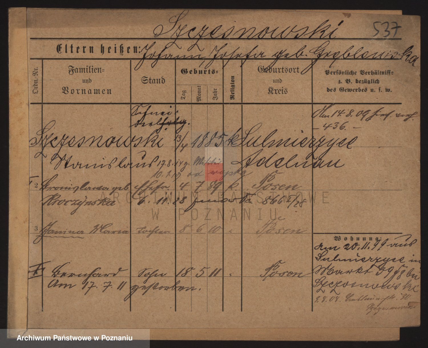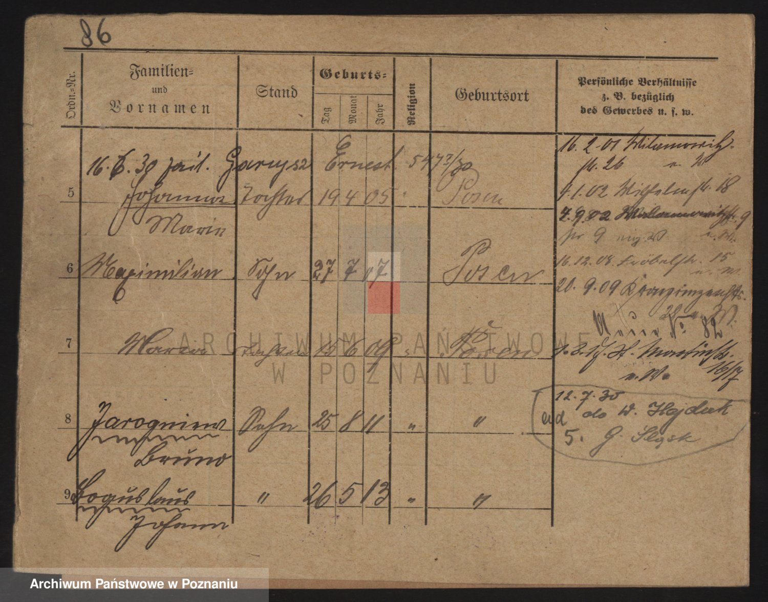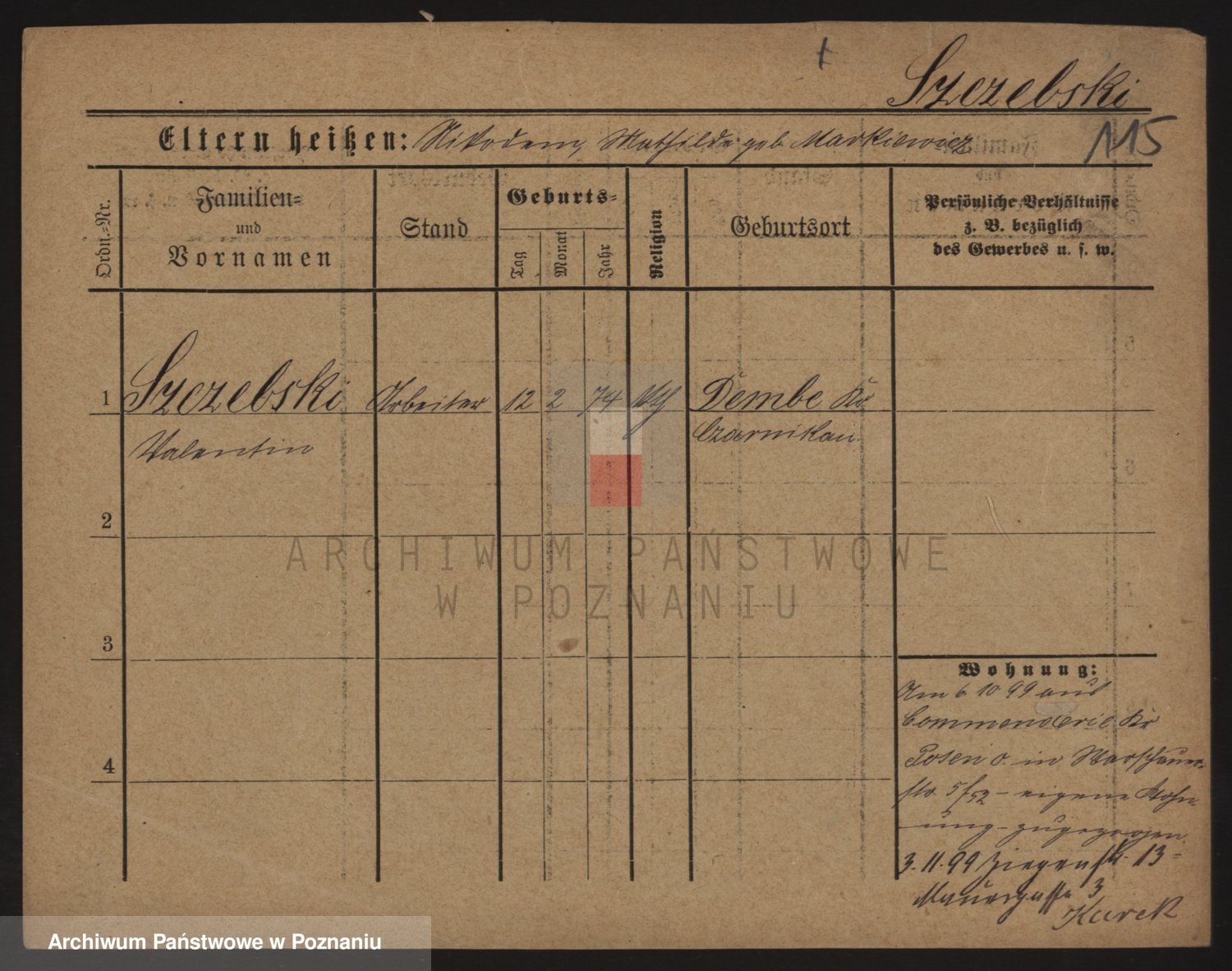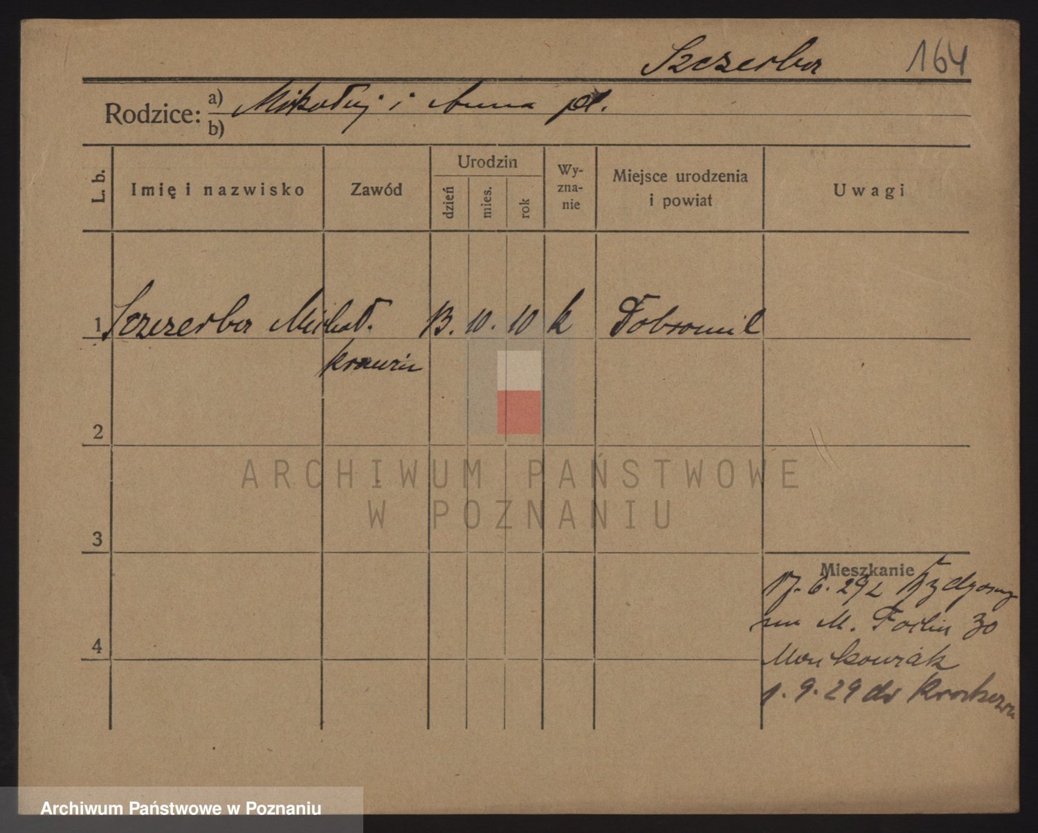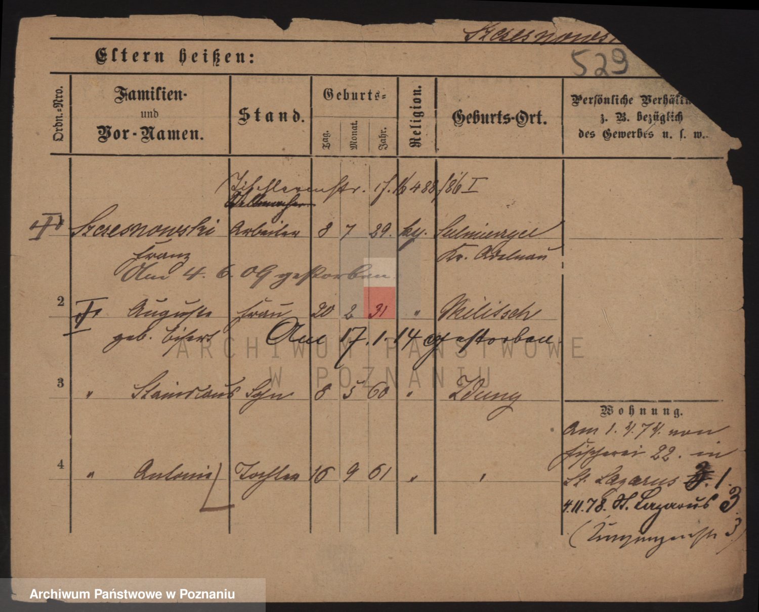 Podgląd karty osobowej dostępny jest po kliknięciu na nazwisko lub ikonkę karty. Można dokonywać powiększenia (ikony na górze) lub przechodzić między kolejnymi skanami (strzałki po bokach).