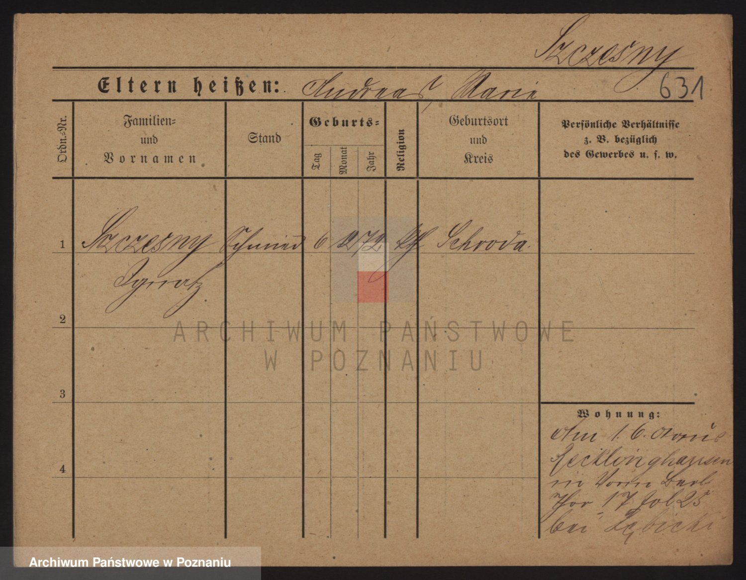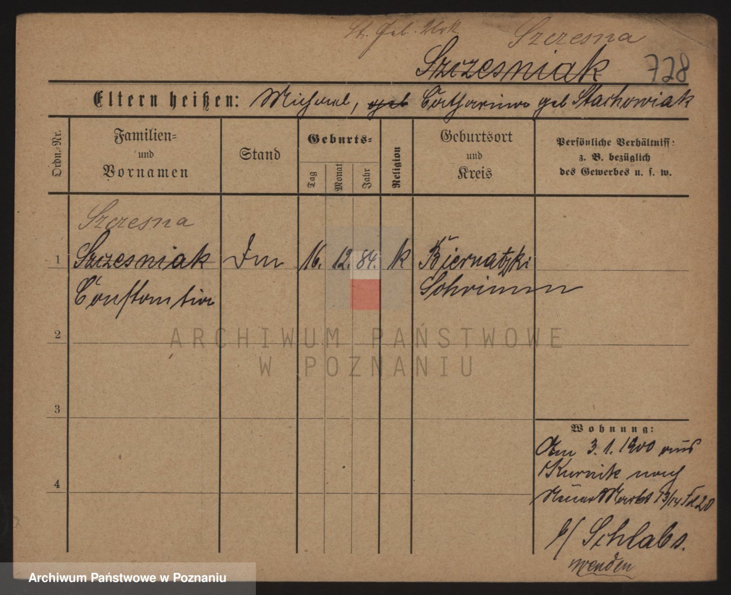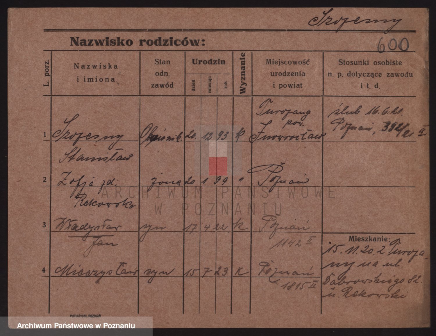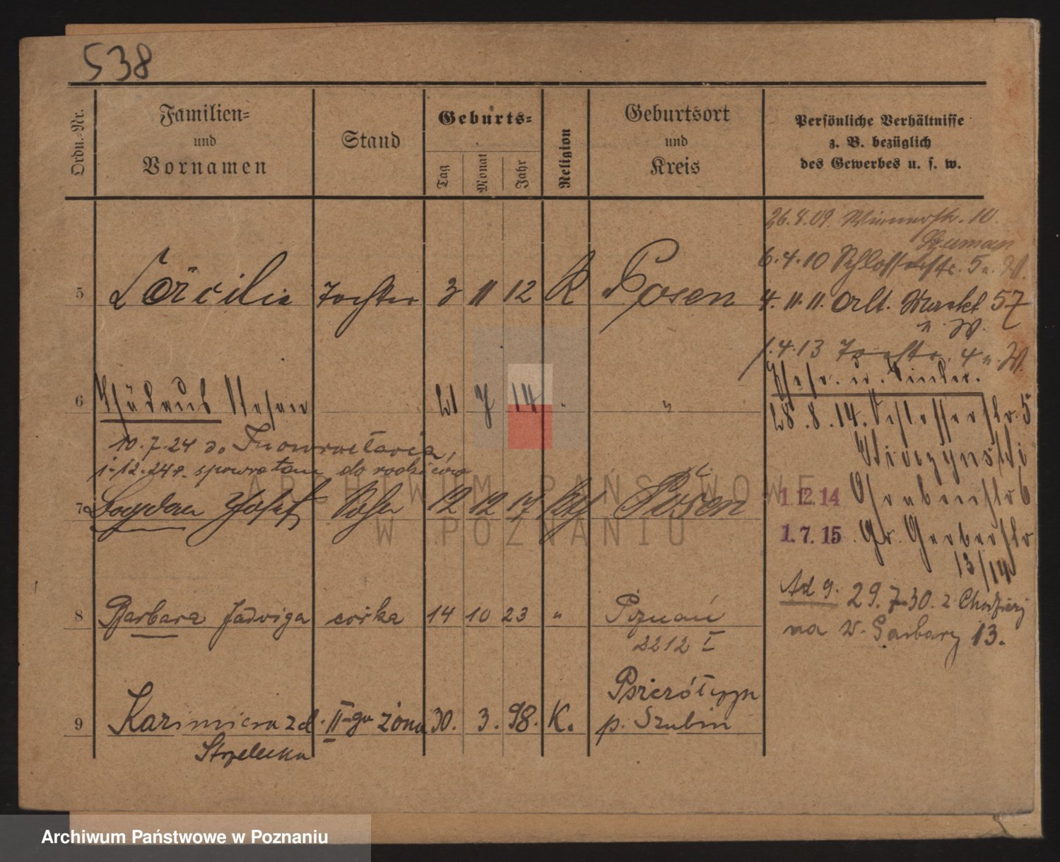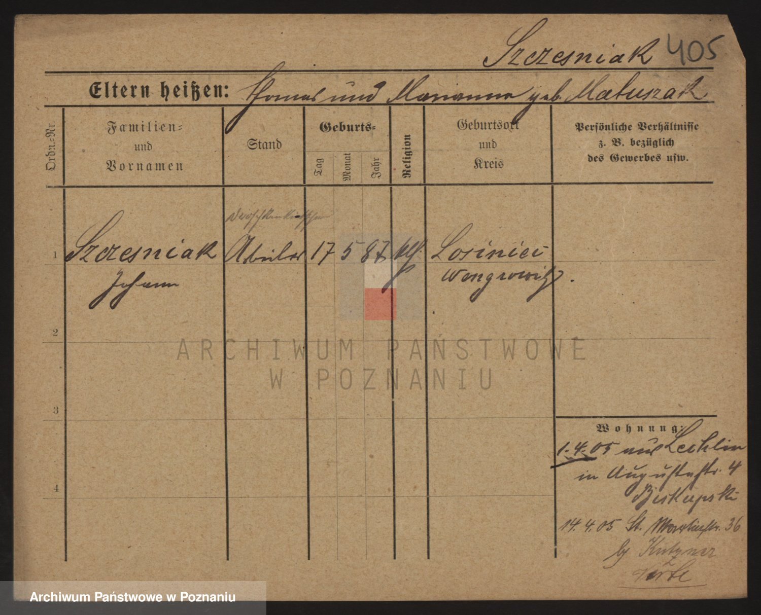 Podgląd karty osobowej dostępny jest po kliknięciu na nazwisko lub ikonkę karty. Można dokonywać powiększenia (ikony na górze) lub przechodzić między kolejnymi skanami (strzałki po bokach).
