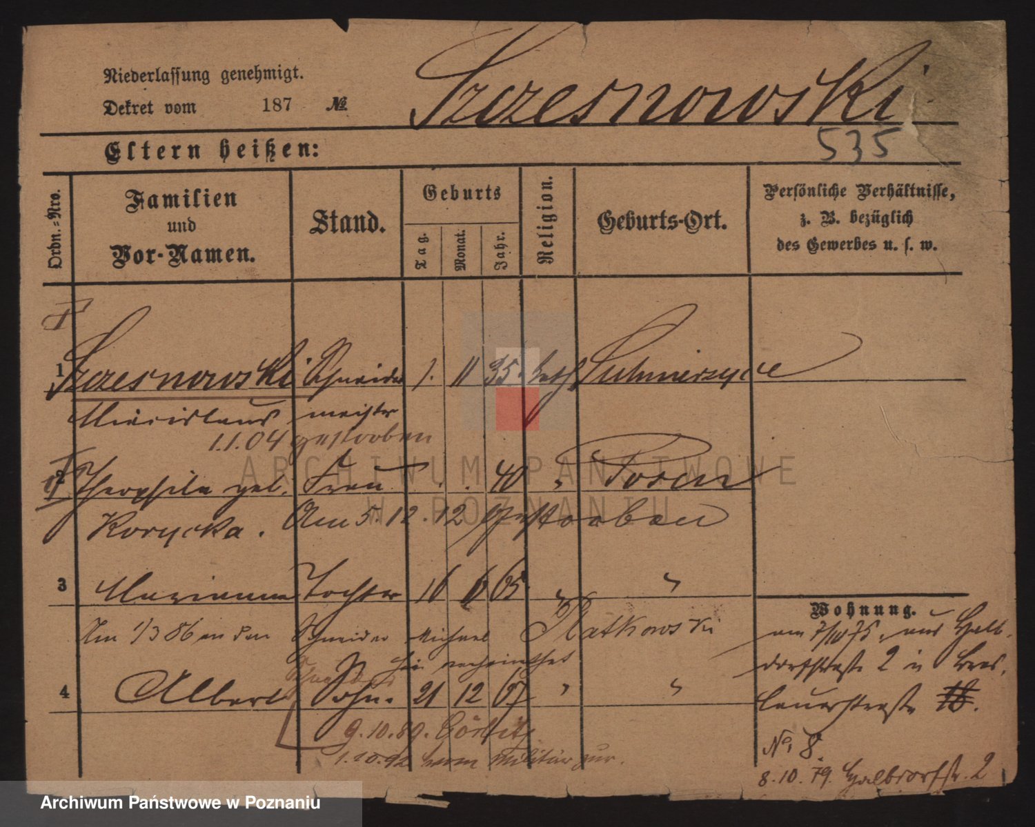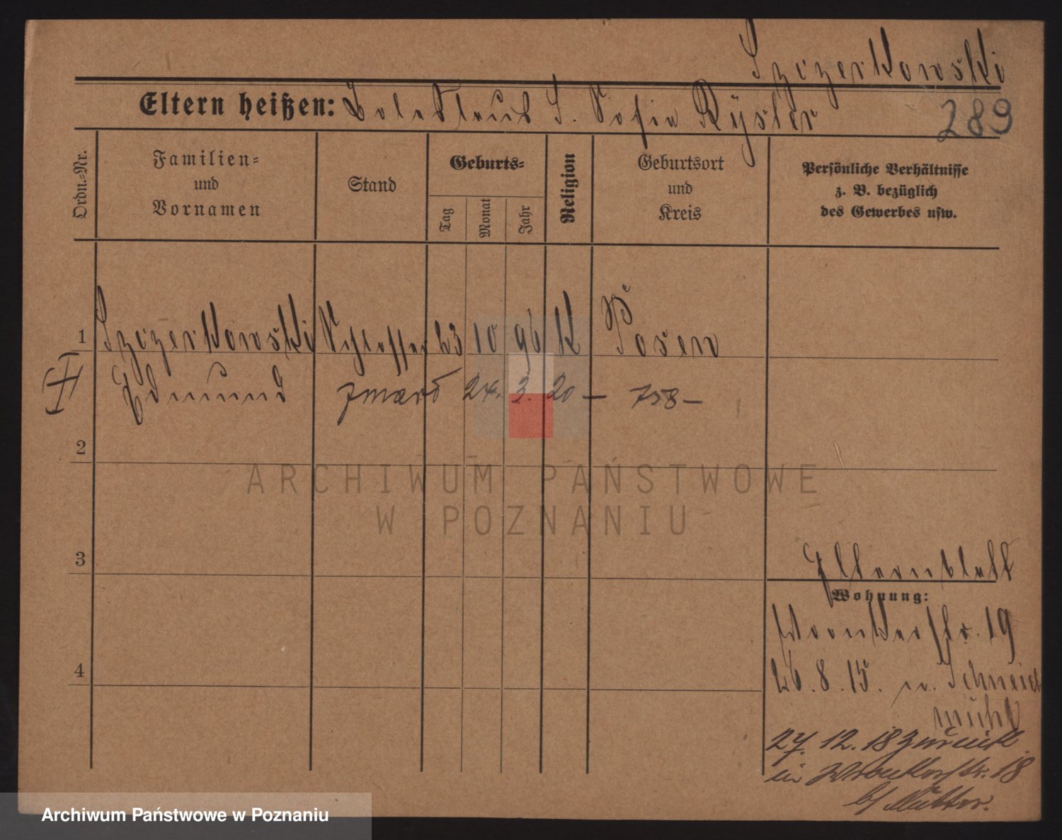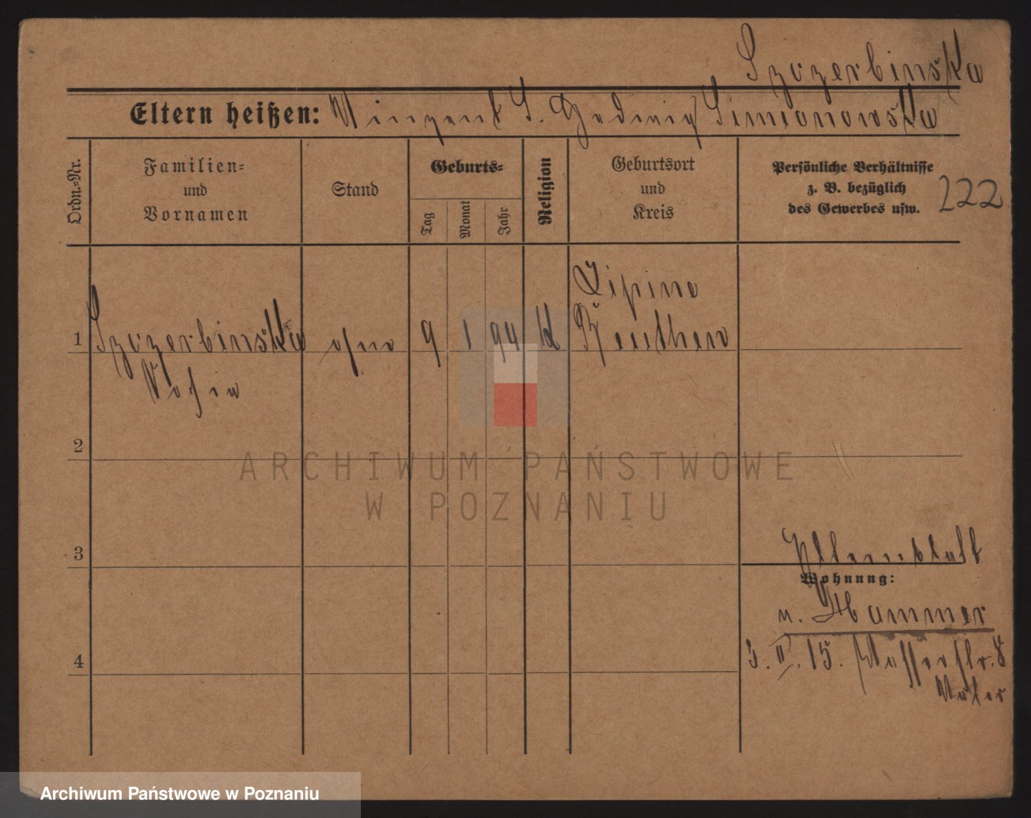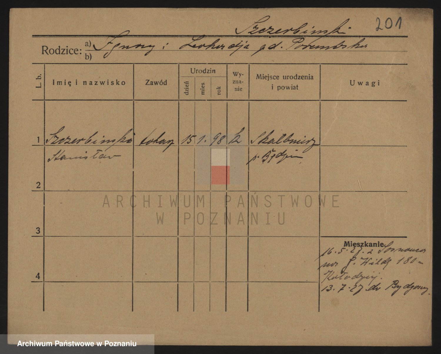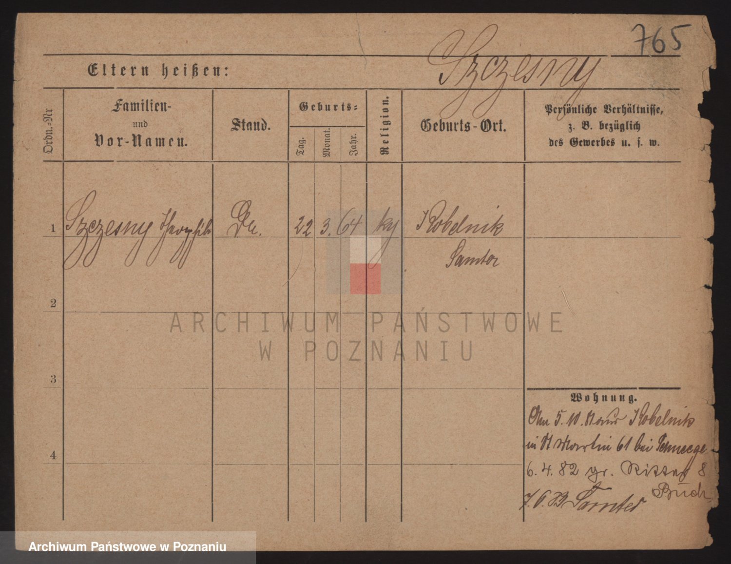 Podgląd karty osobowej dostępny jest po kliknięciu na nazwisko lub ikonkę karty. Można dokonywać powiększenia (ikony na górze) lub przechodzić między kolejnymi skanami (strzałki po bokach).