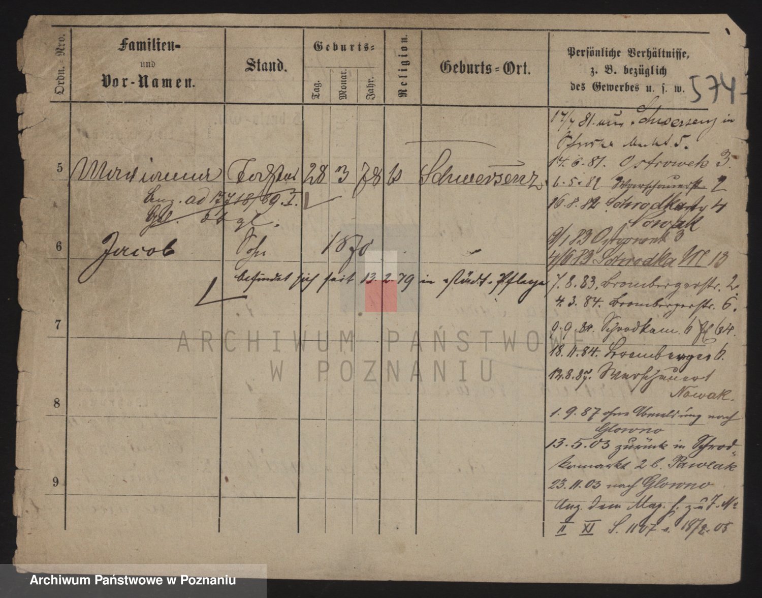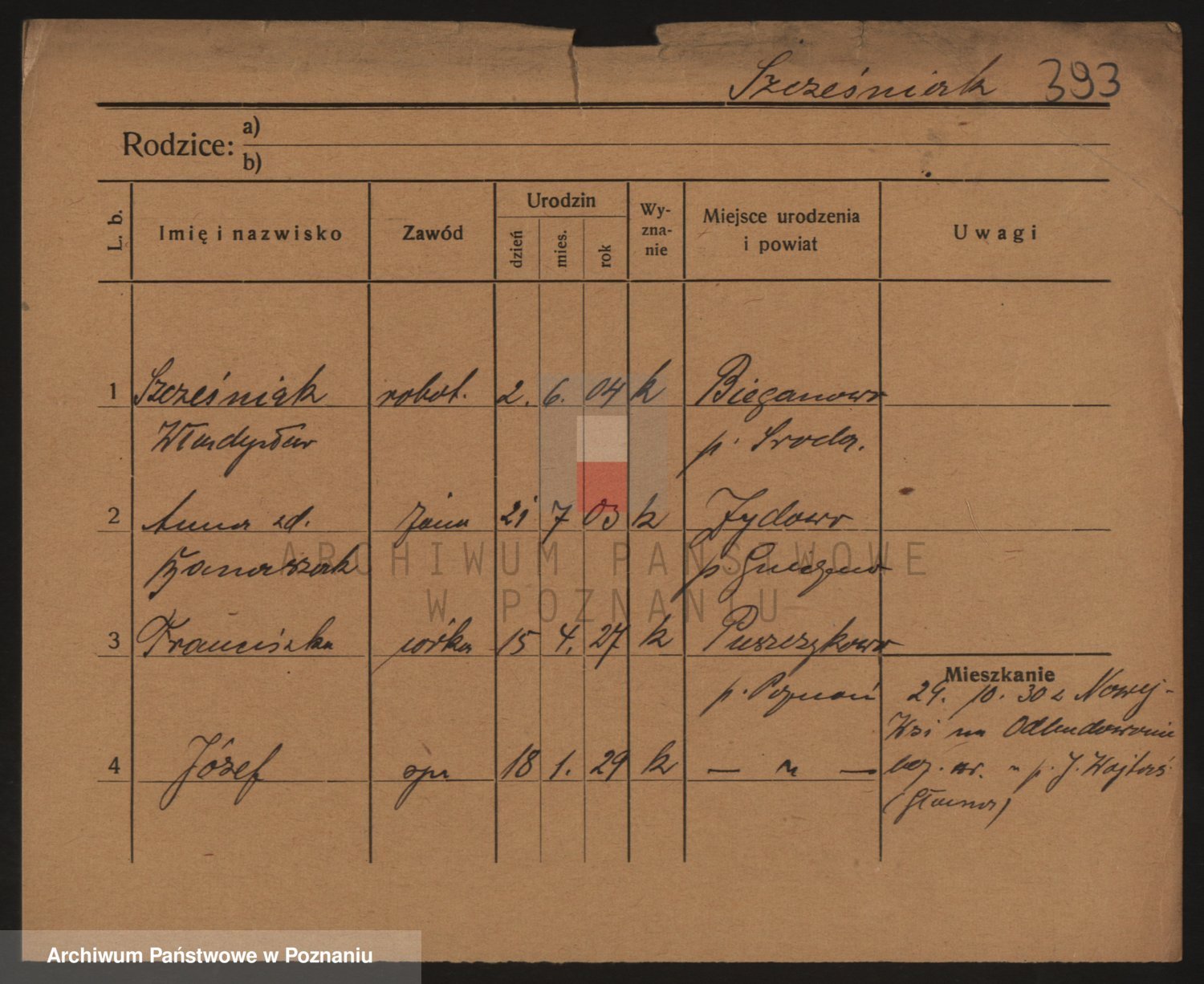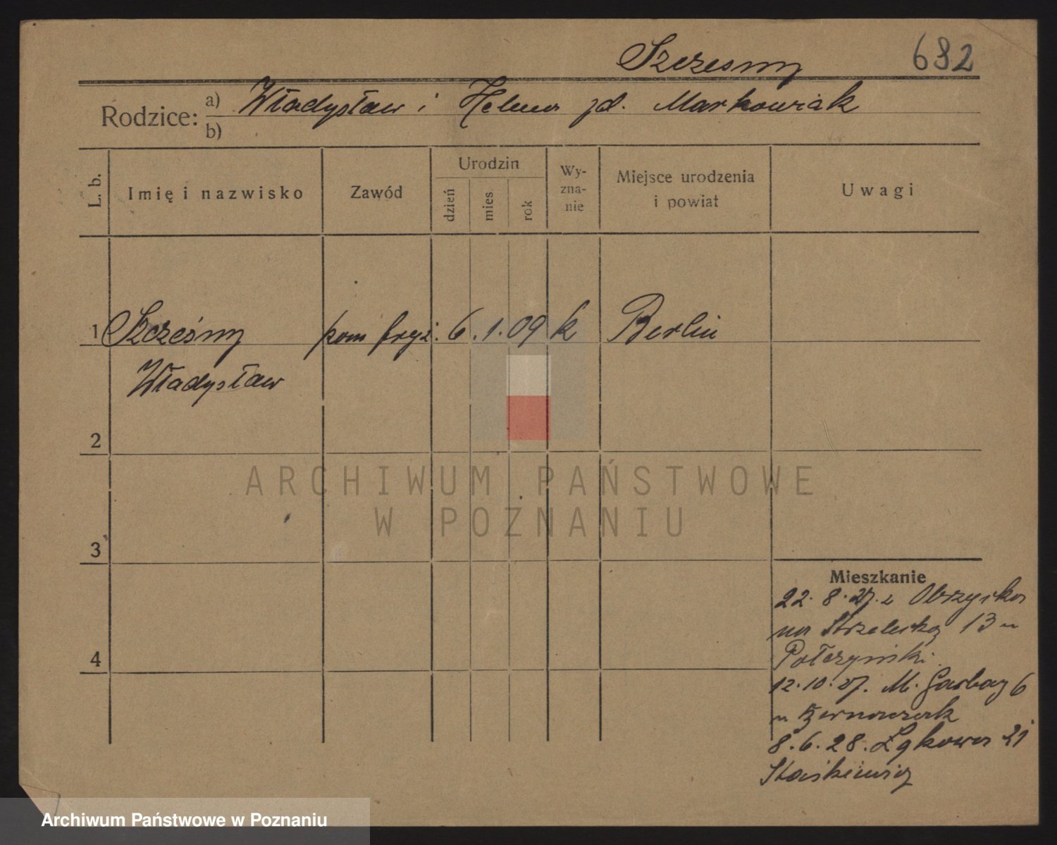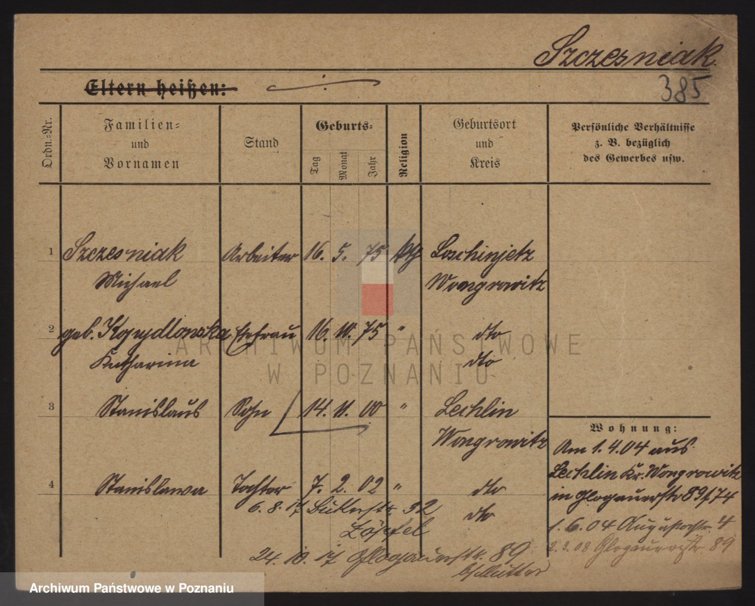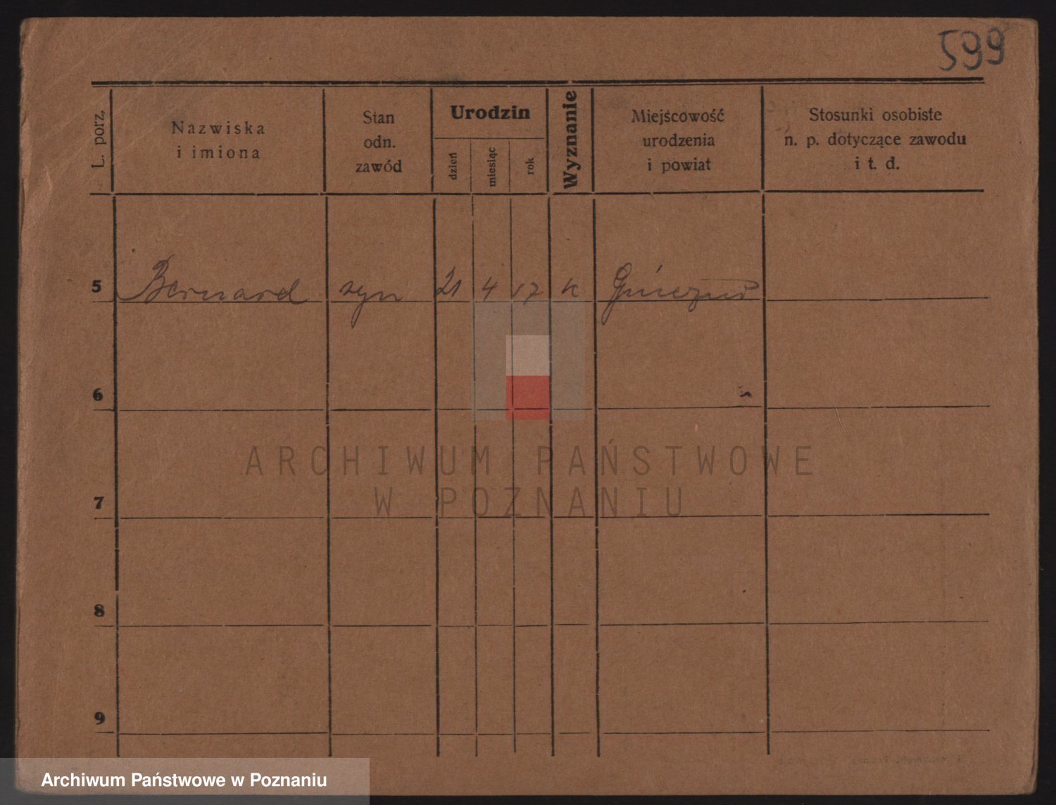 Podgląd karty osobowej dostępny jest po kliknięciu na nazwisko lub ikonkę karty. Można dokonywać powiększenia (ikony na górze) lub przechodzić między kolejnymi skanami (strzałki po bokach).