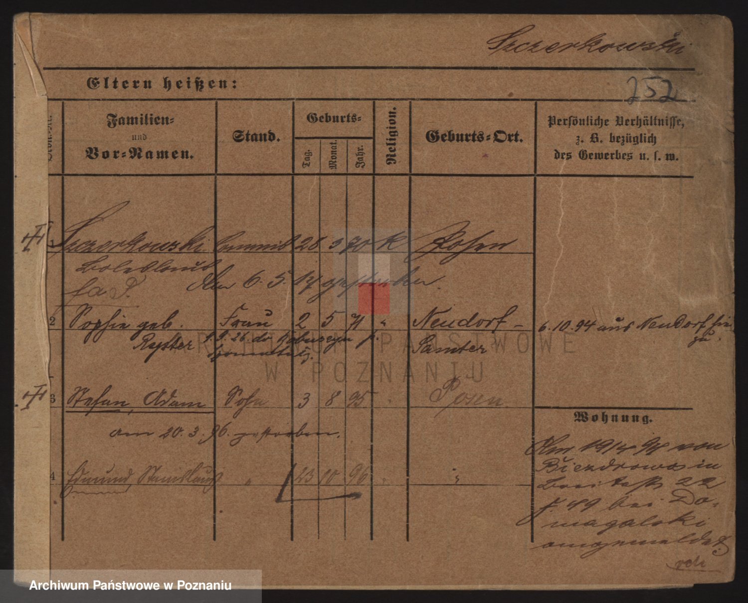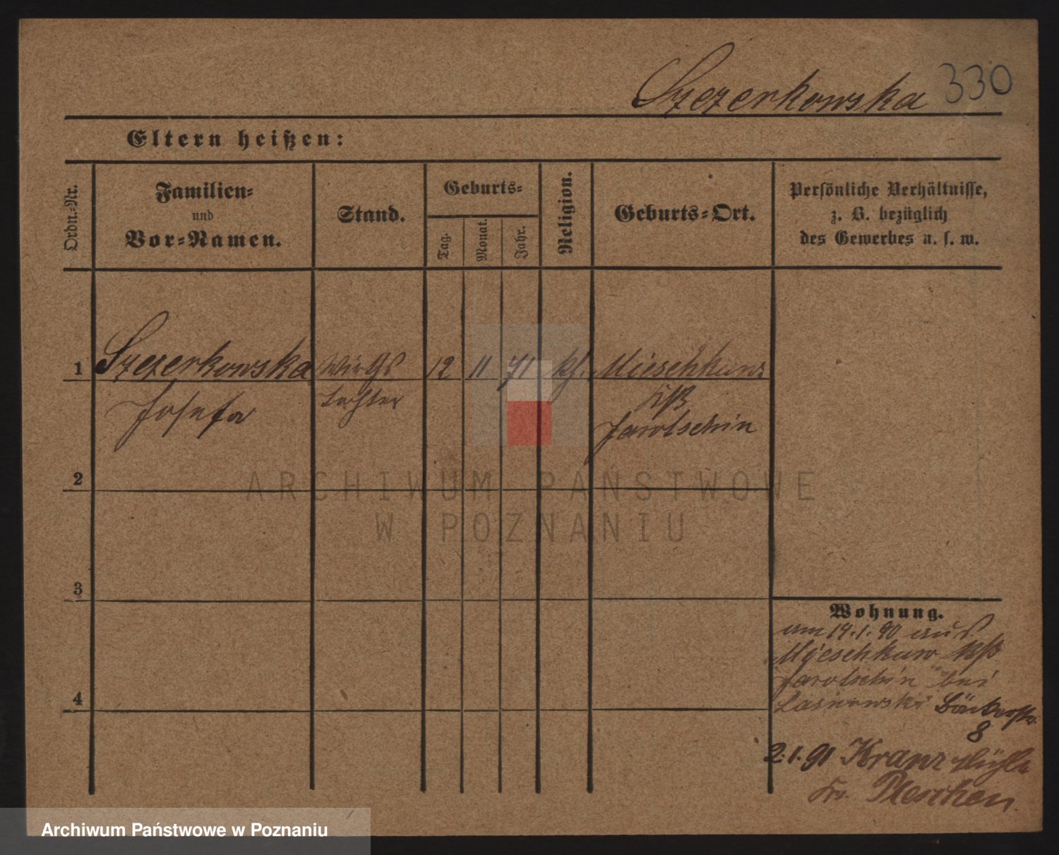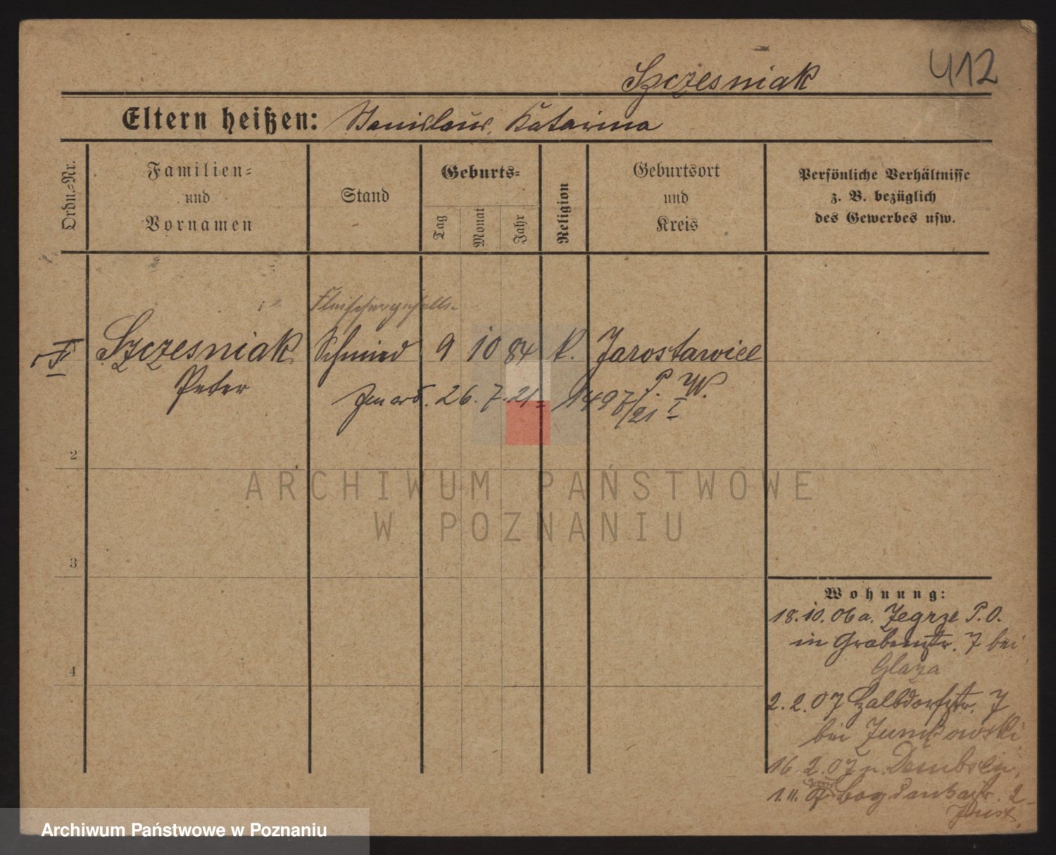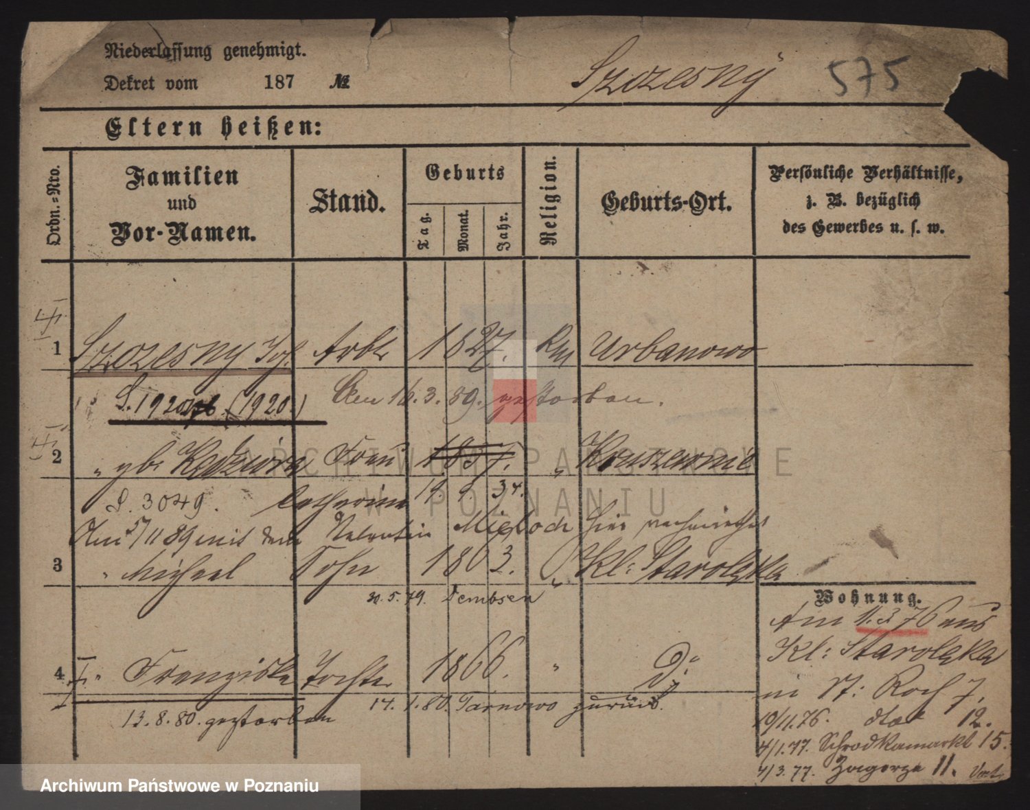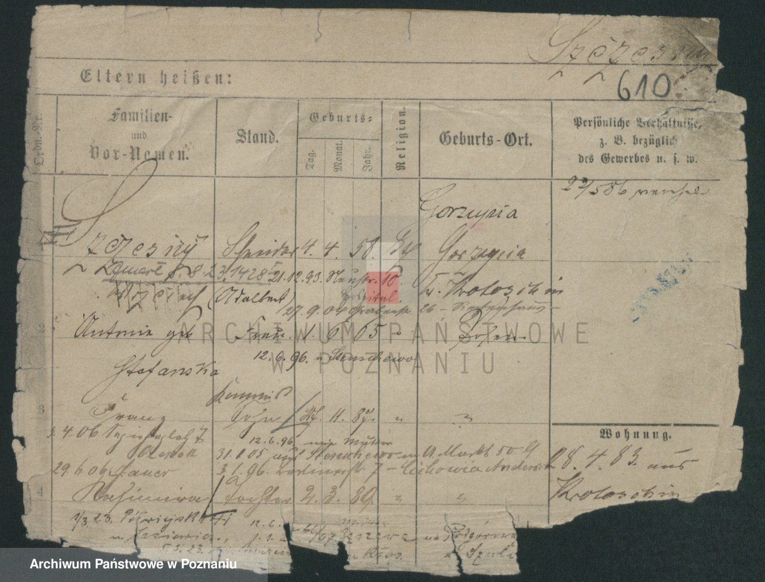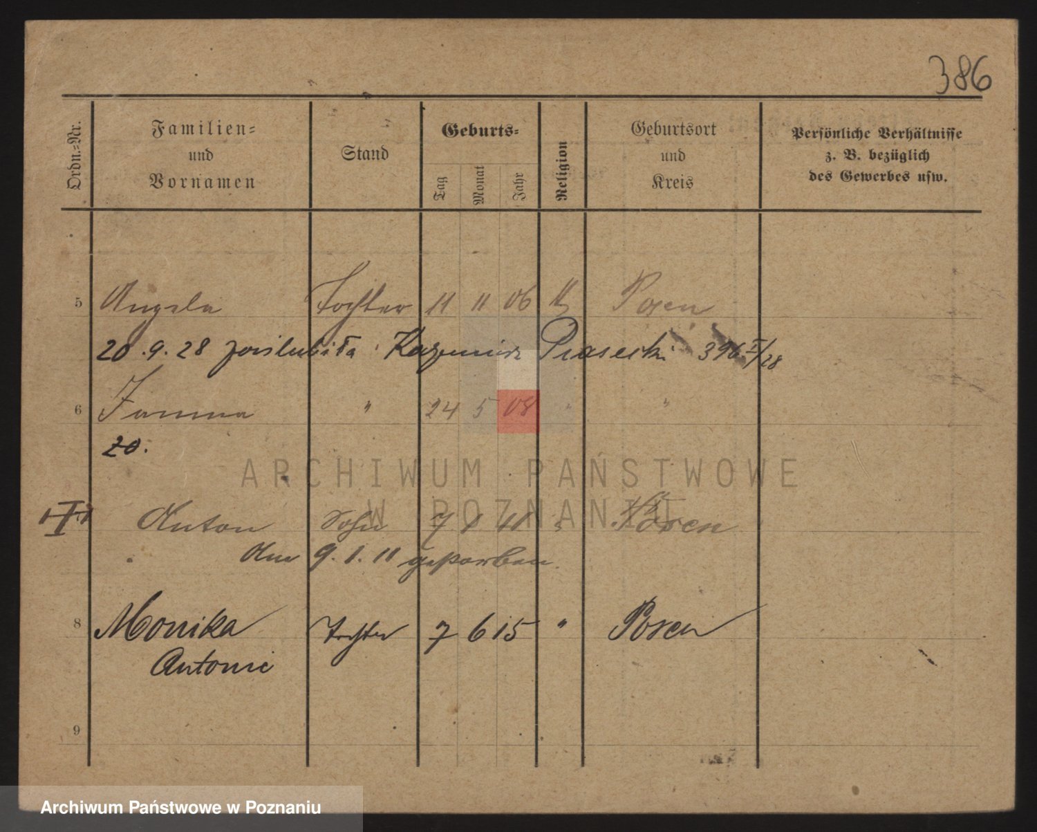 Podgląd karty osobowej dostępny jest po kliknięciu na nazwisko lub ikonkę karty. Można dokonywać powiększenia (ikony na górze) lub przechodzić między kolejnymi skanami (strzałki po bokach).