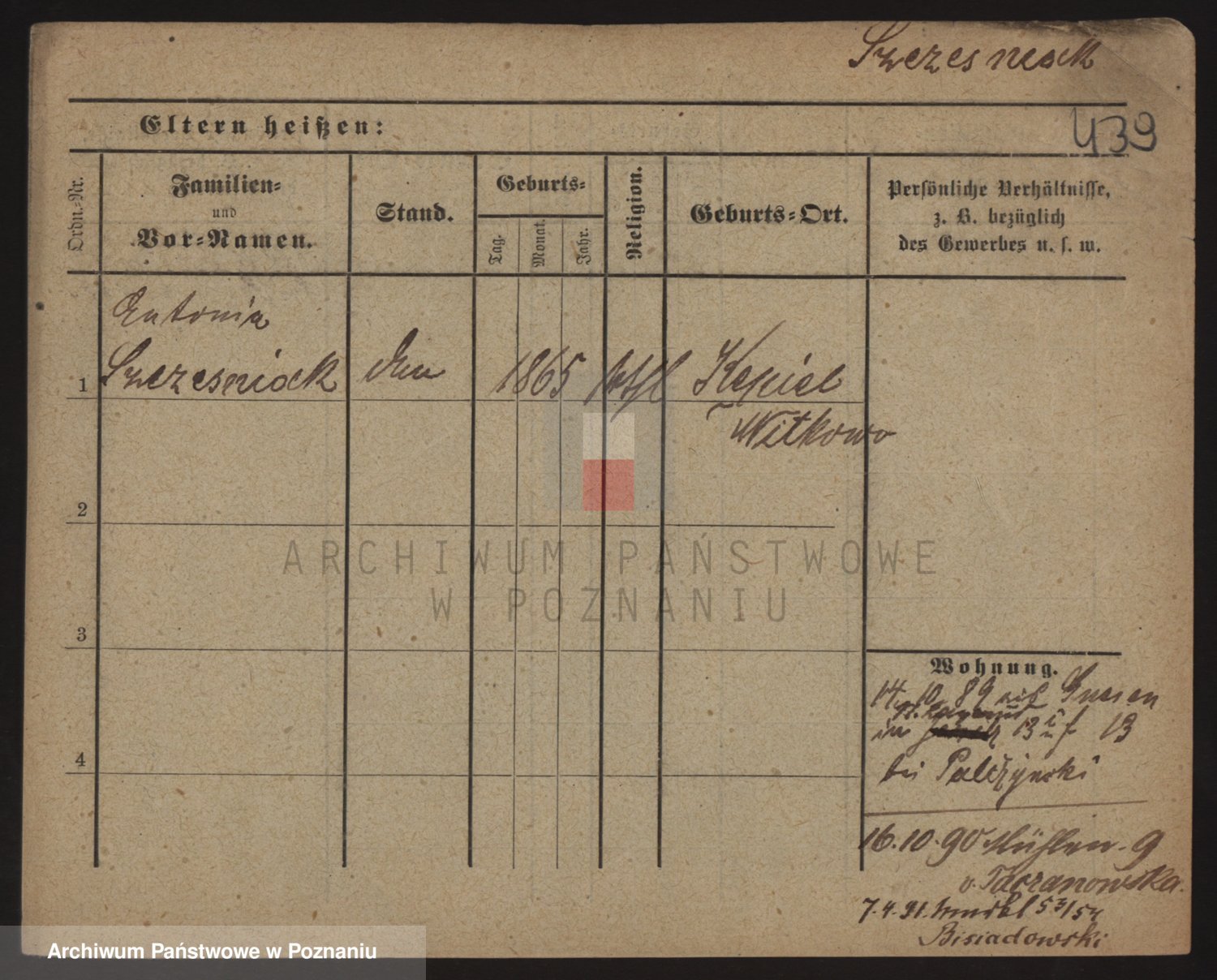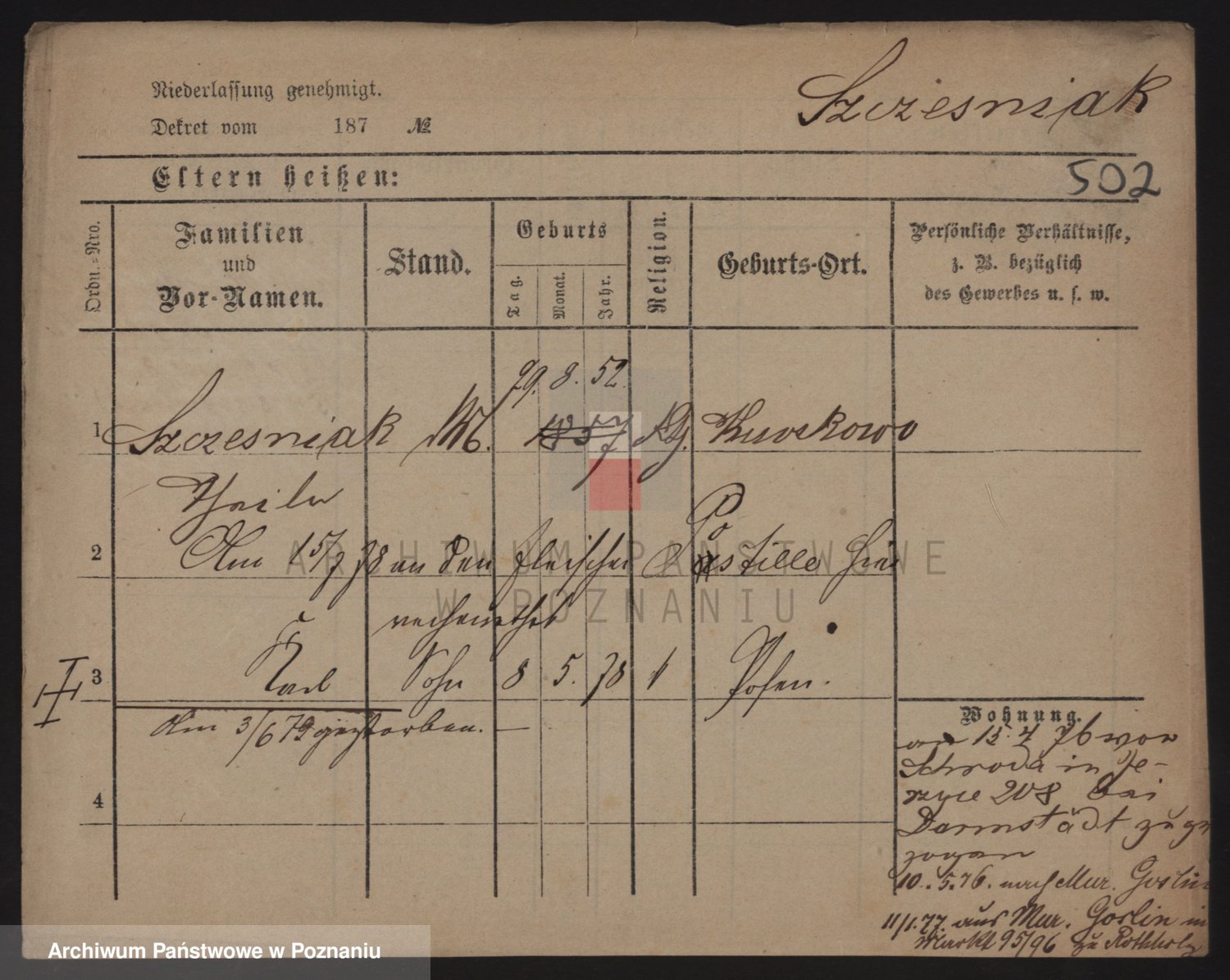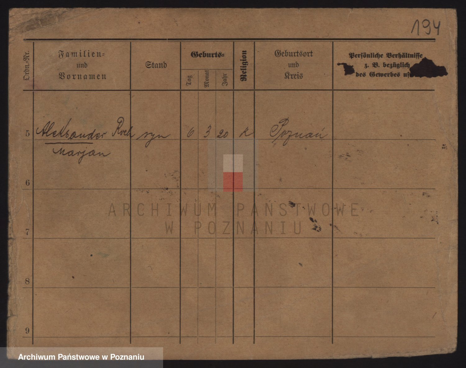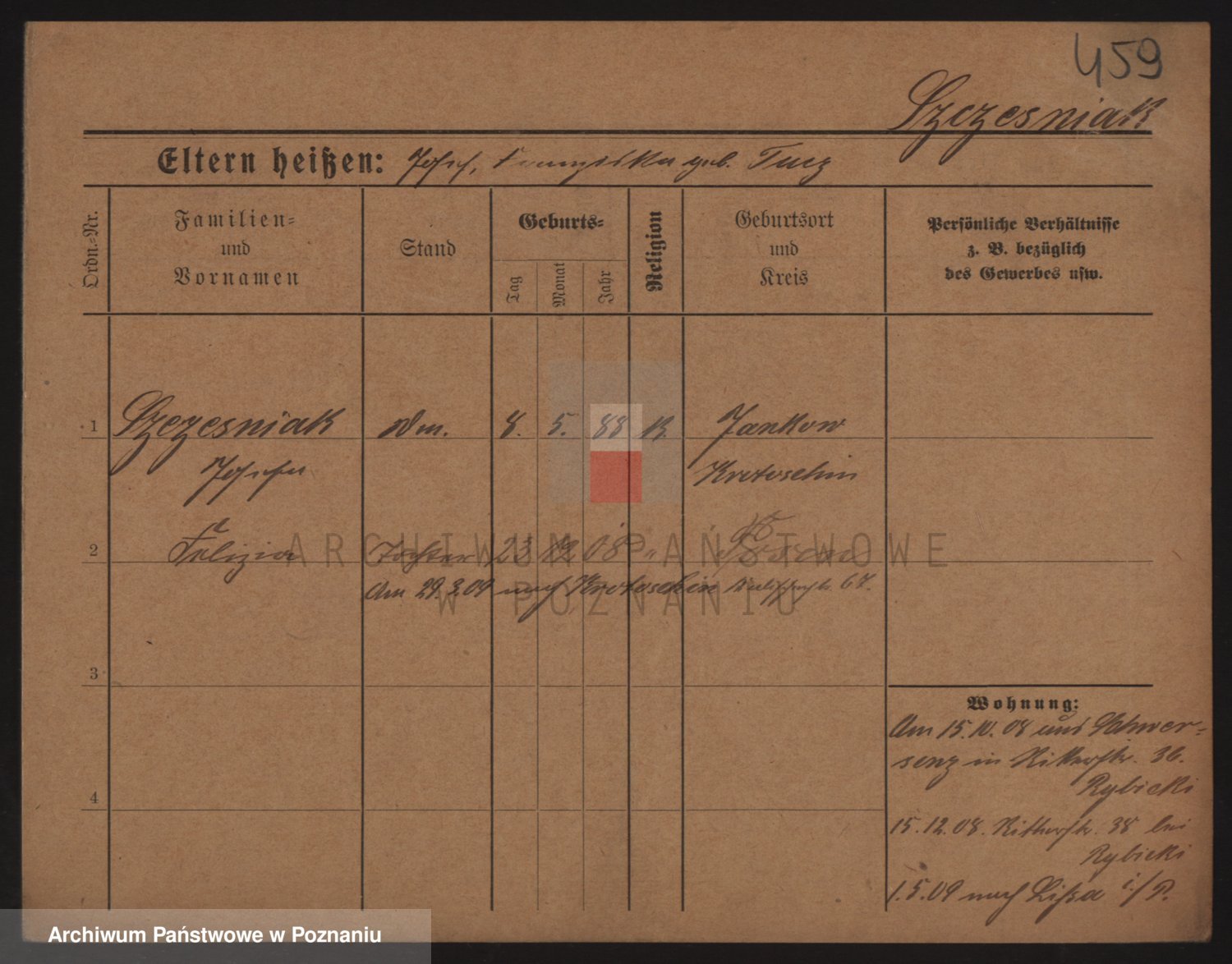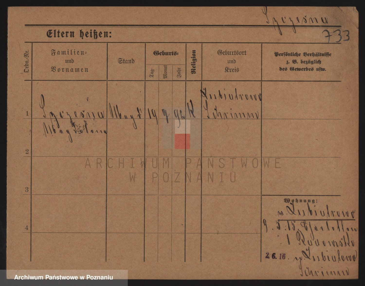 Podgląd karty osobowej dostępny jest po kliknięciu na nazwisko lub ikonkę karty. Można dokonywać powiększenia (ikony na górze) lub przechodzić między kolejnymi skanami (strzałki po bokach).