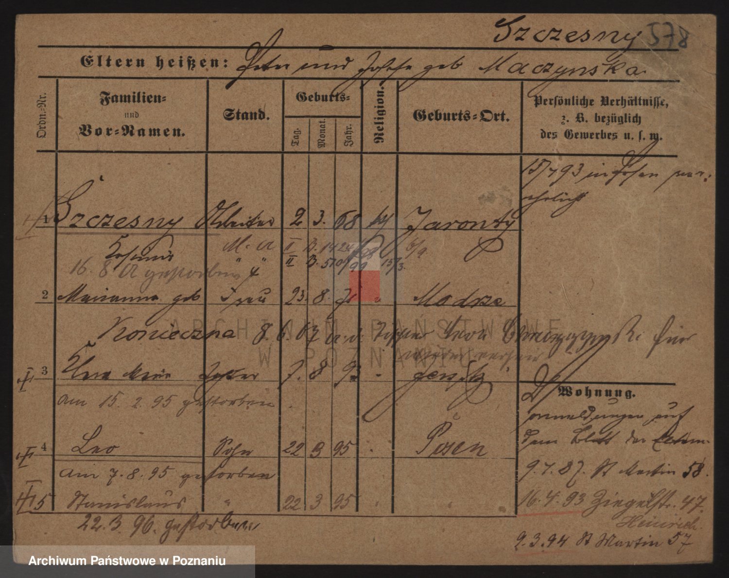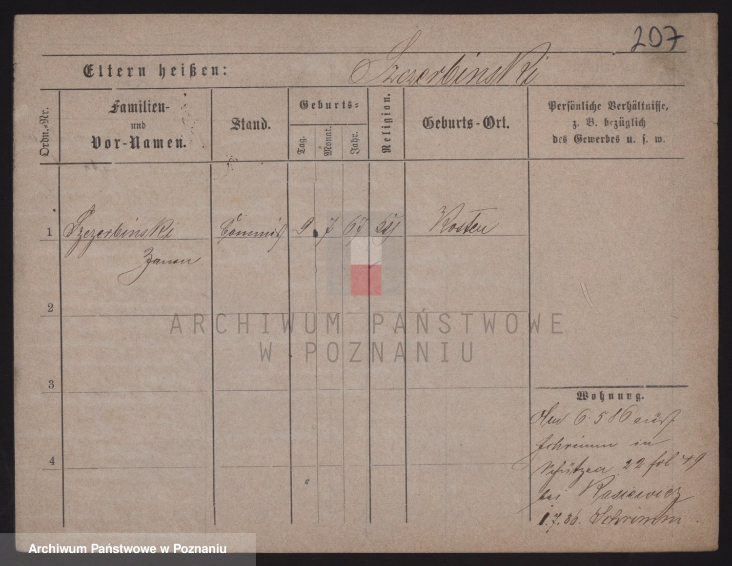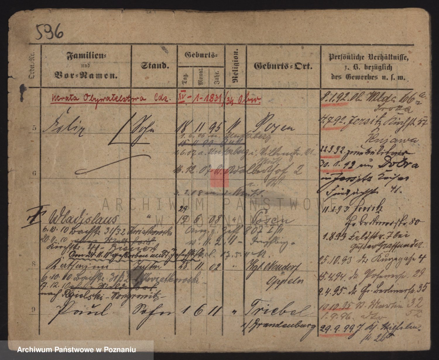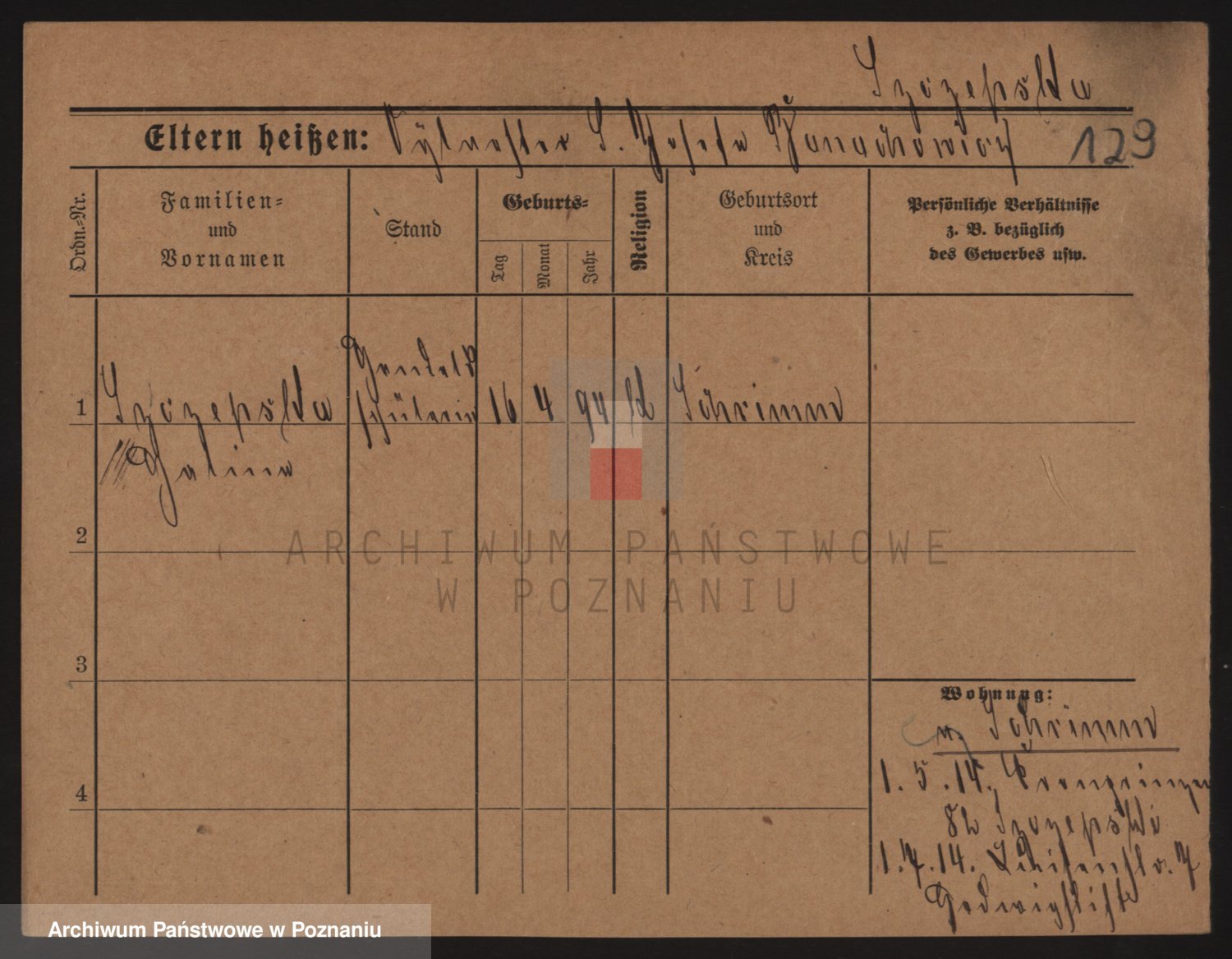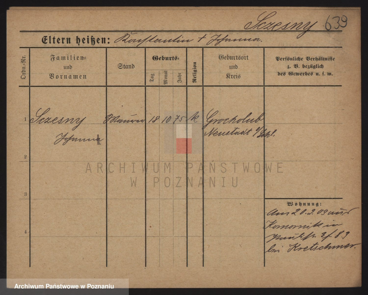 Podgląd karty osobowej dostępny jest po kliknięciu na nazwisko lub ikonkę karty. Można dokonywać powiększenia (ikony na górze) lub przechodzić między kolejnymi skanami (strzałki po bokach).