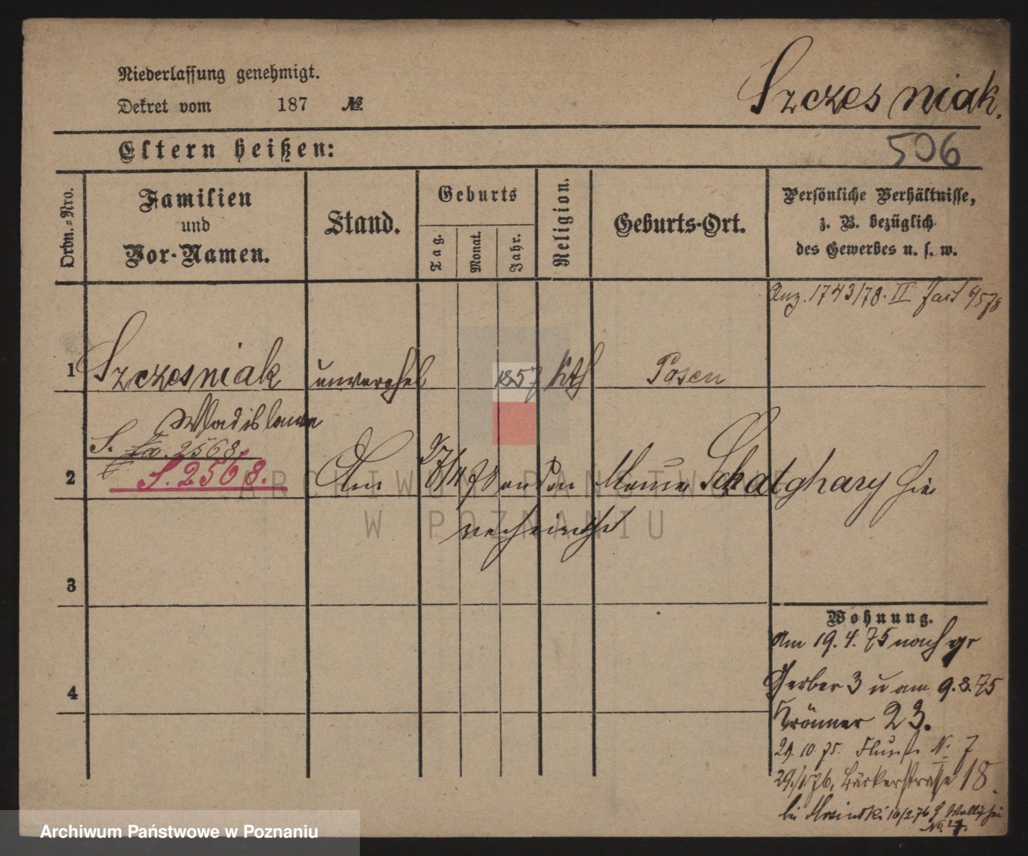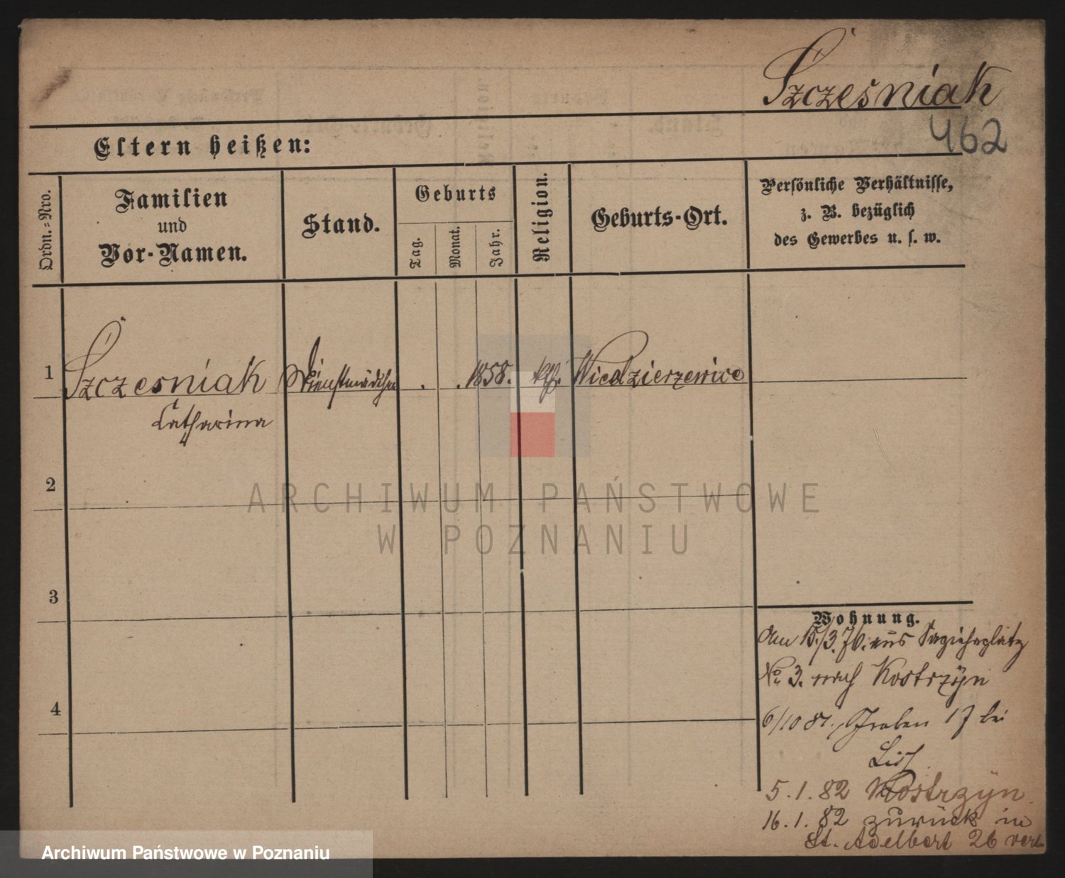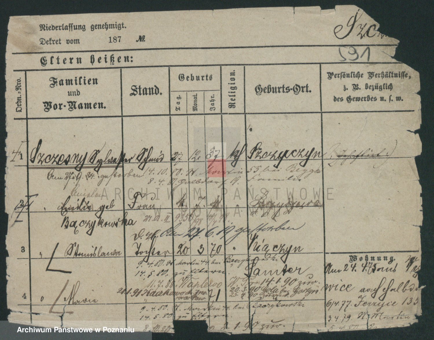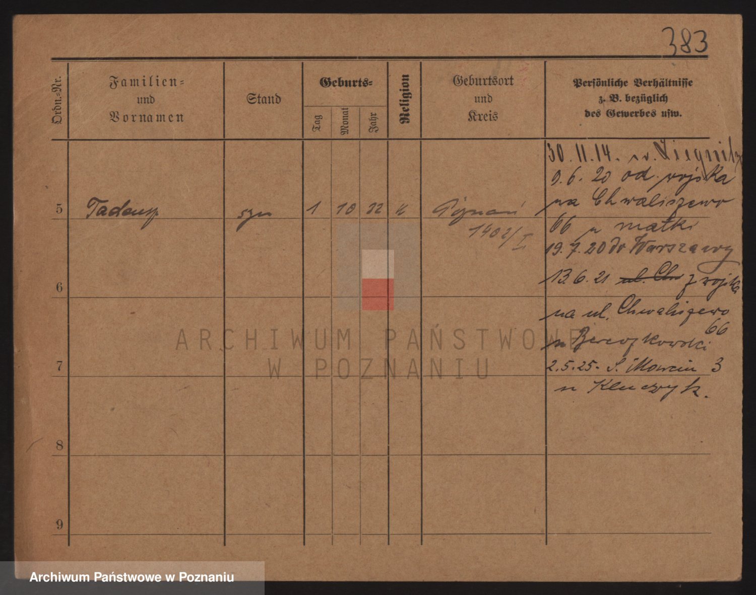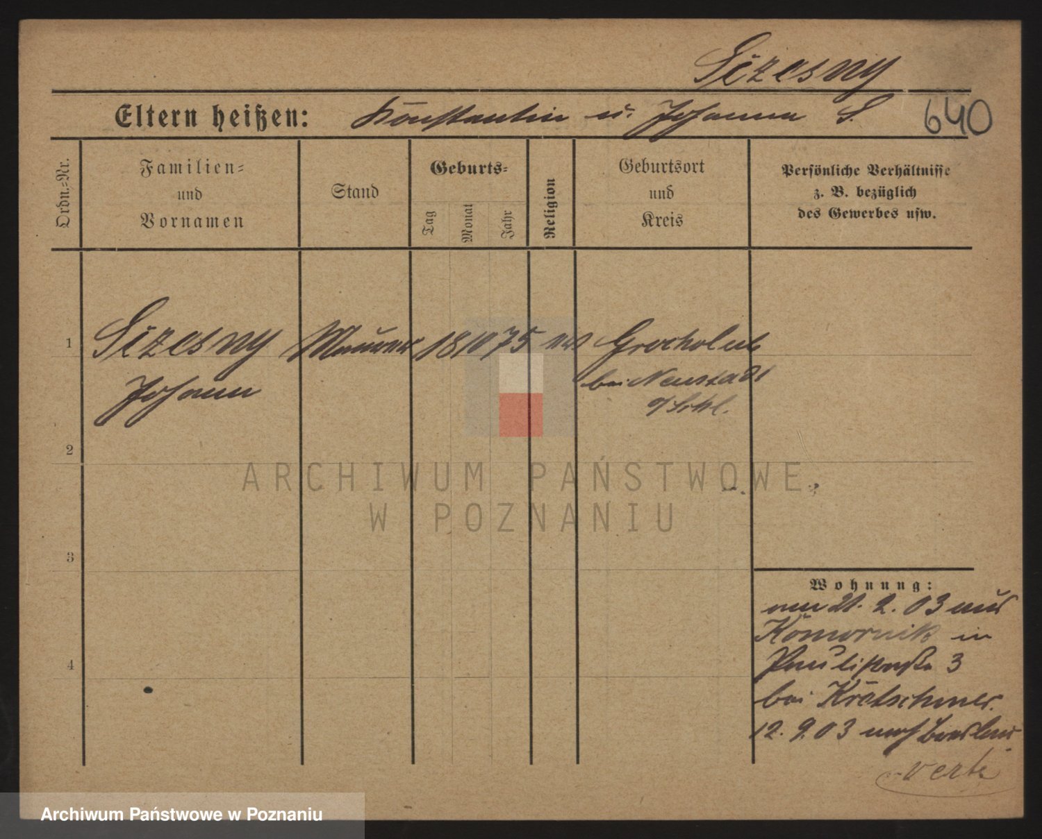Podgląd karty osobowej dostępny jest po kliknięciu na nazwisko lub ikonkę karty. Można dokonywać powiększenia (ikony na górze) lub przechodzić między kolejnymi skanami (strzałki po bokach).