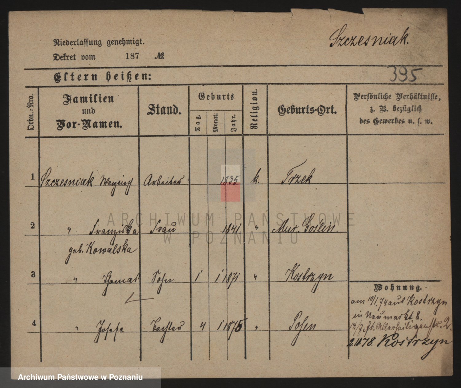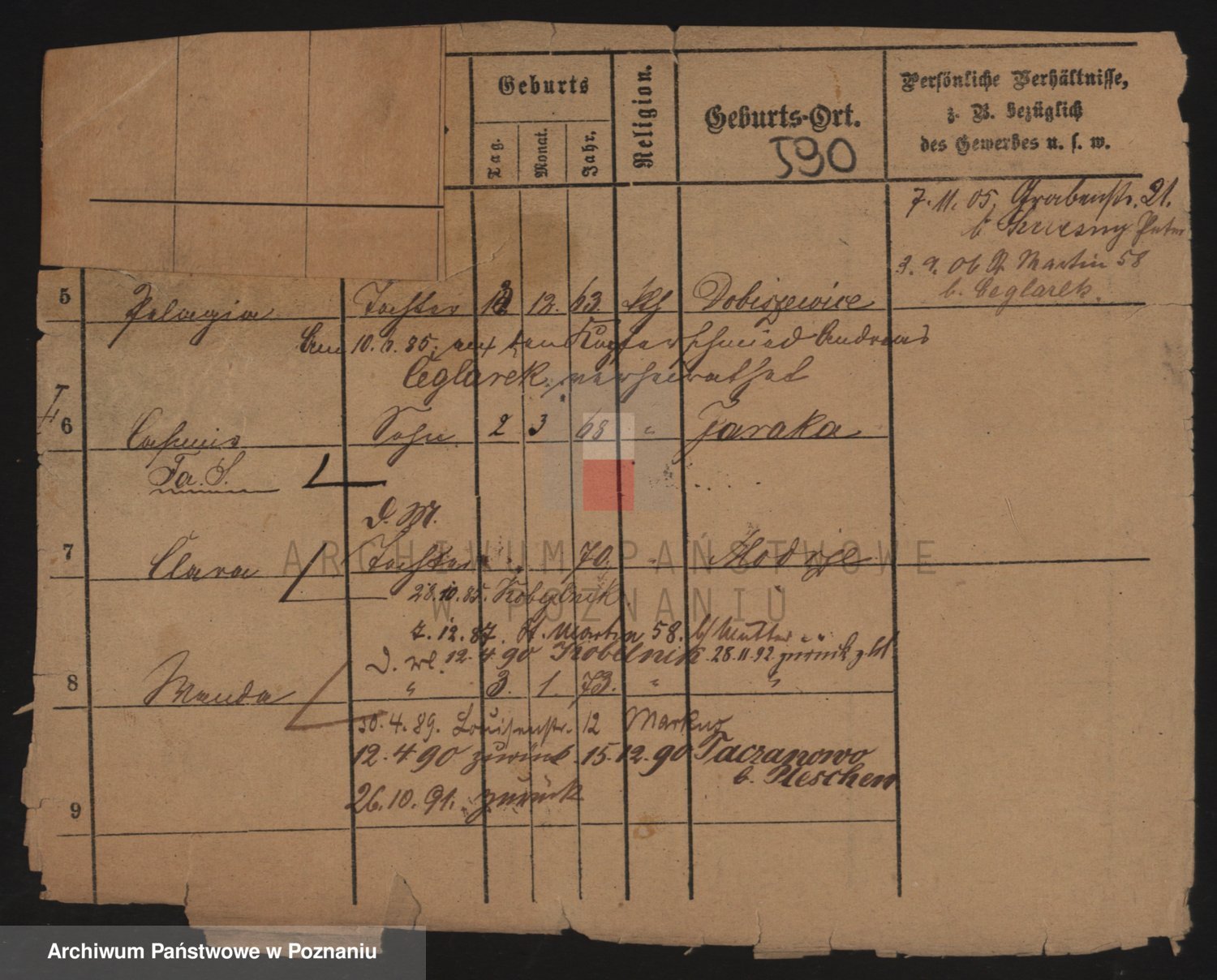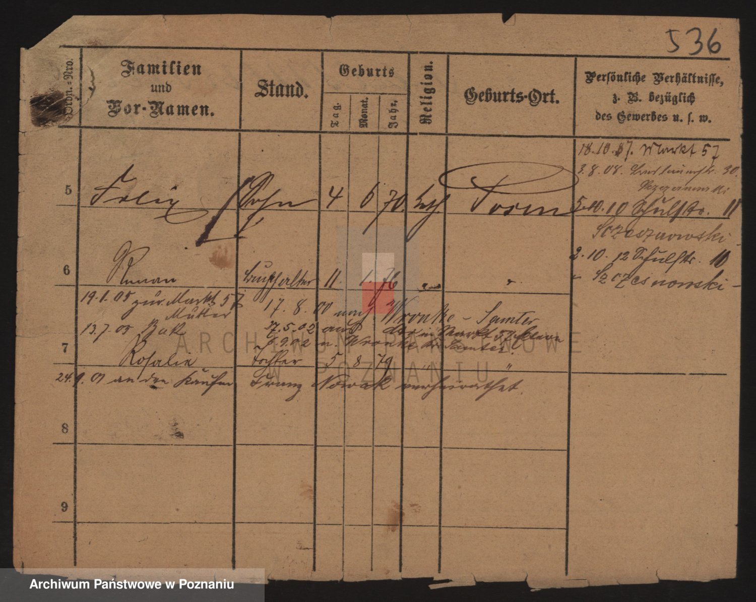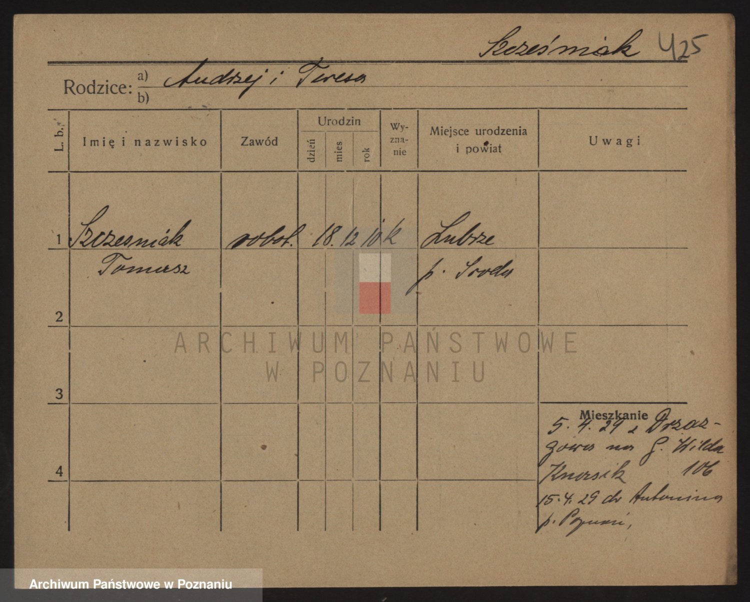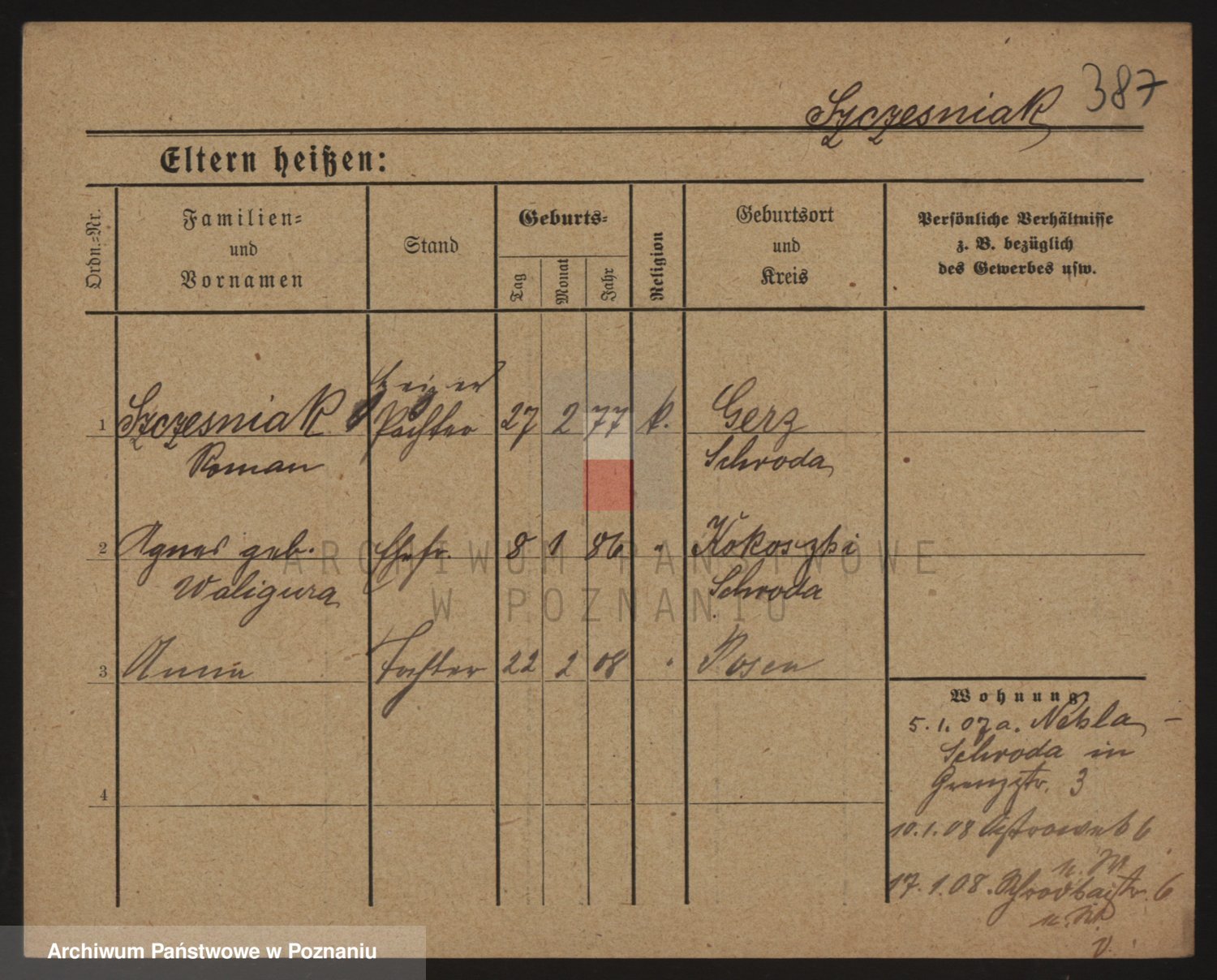 Podgląd karty osobowej dostępny jest po kliknięciu na nazwisko lub ikonkę karty. Można dokonywać powiększenia (ikony na górze) lub przechodzić między kolejnymi skanami (strzałki po bokach).