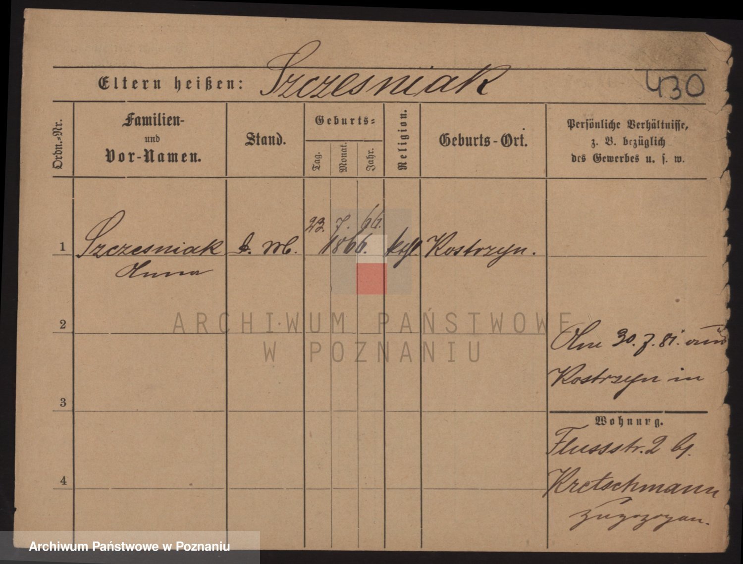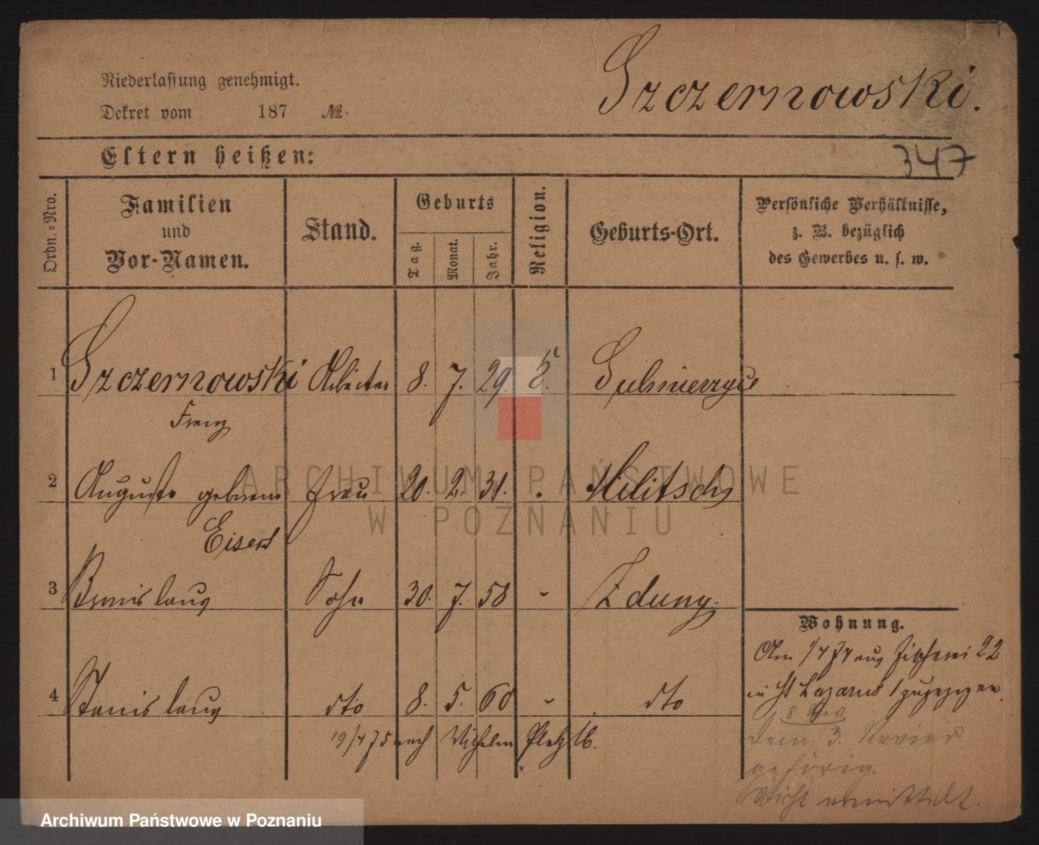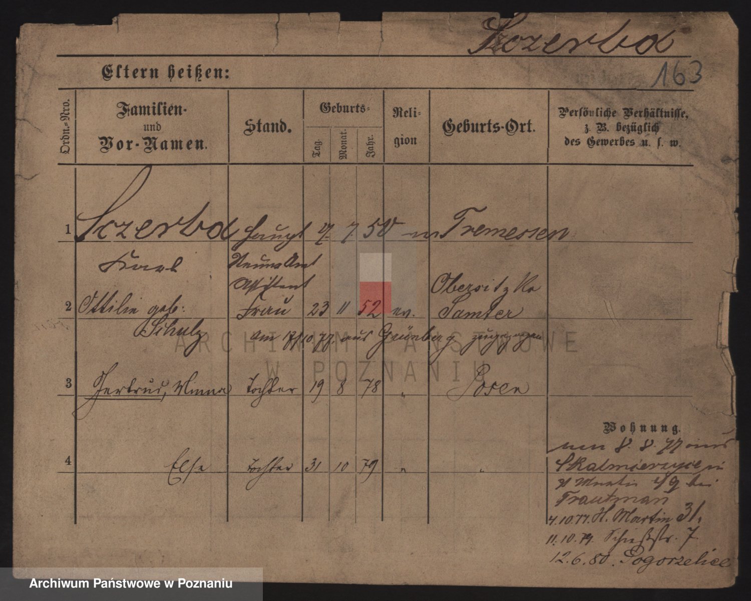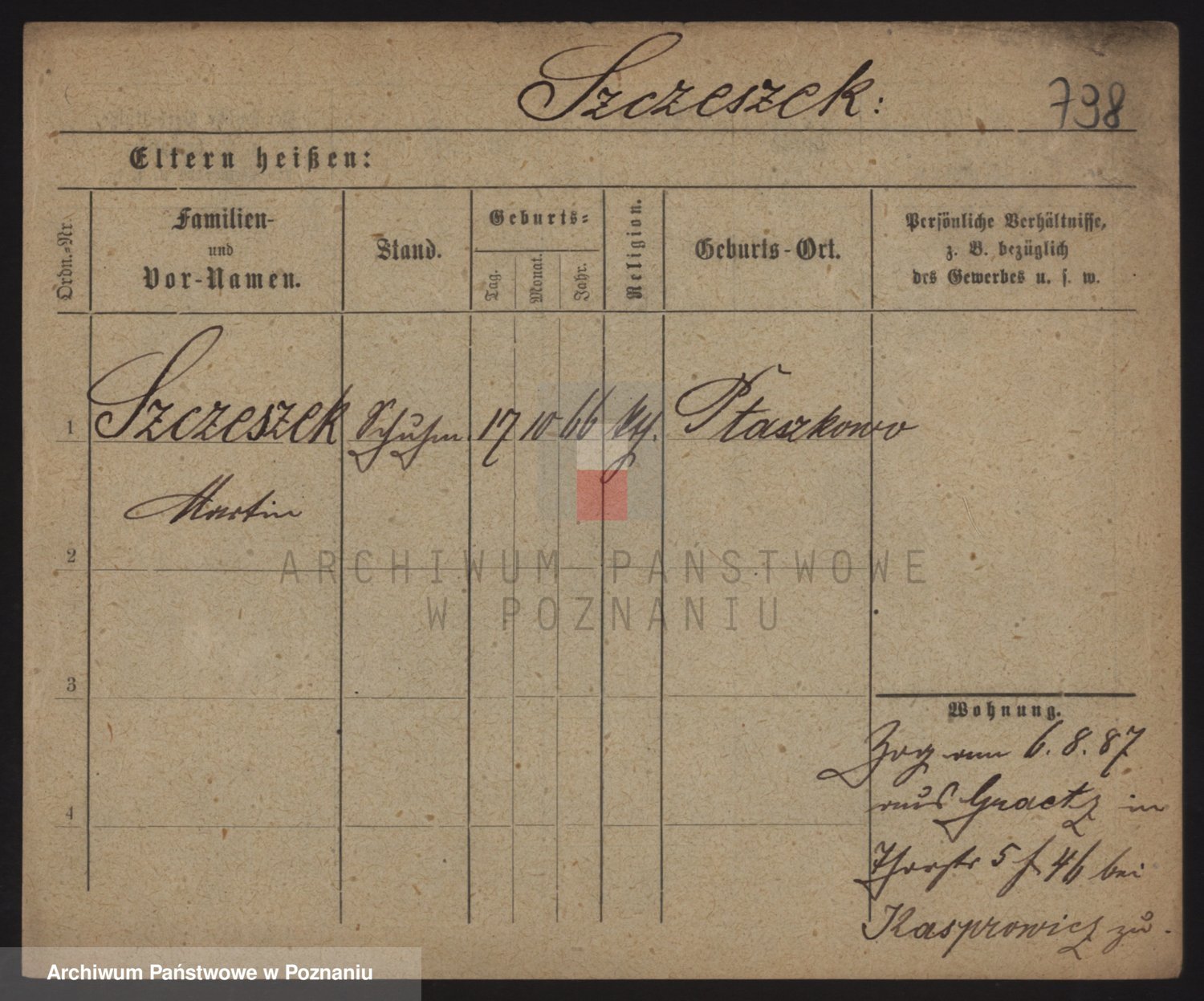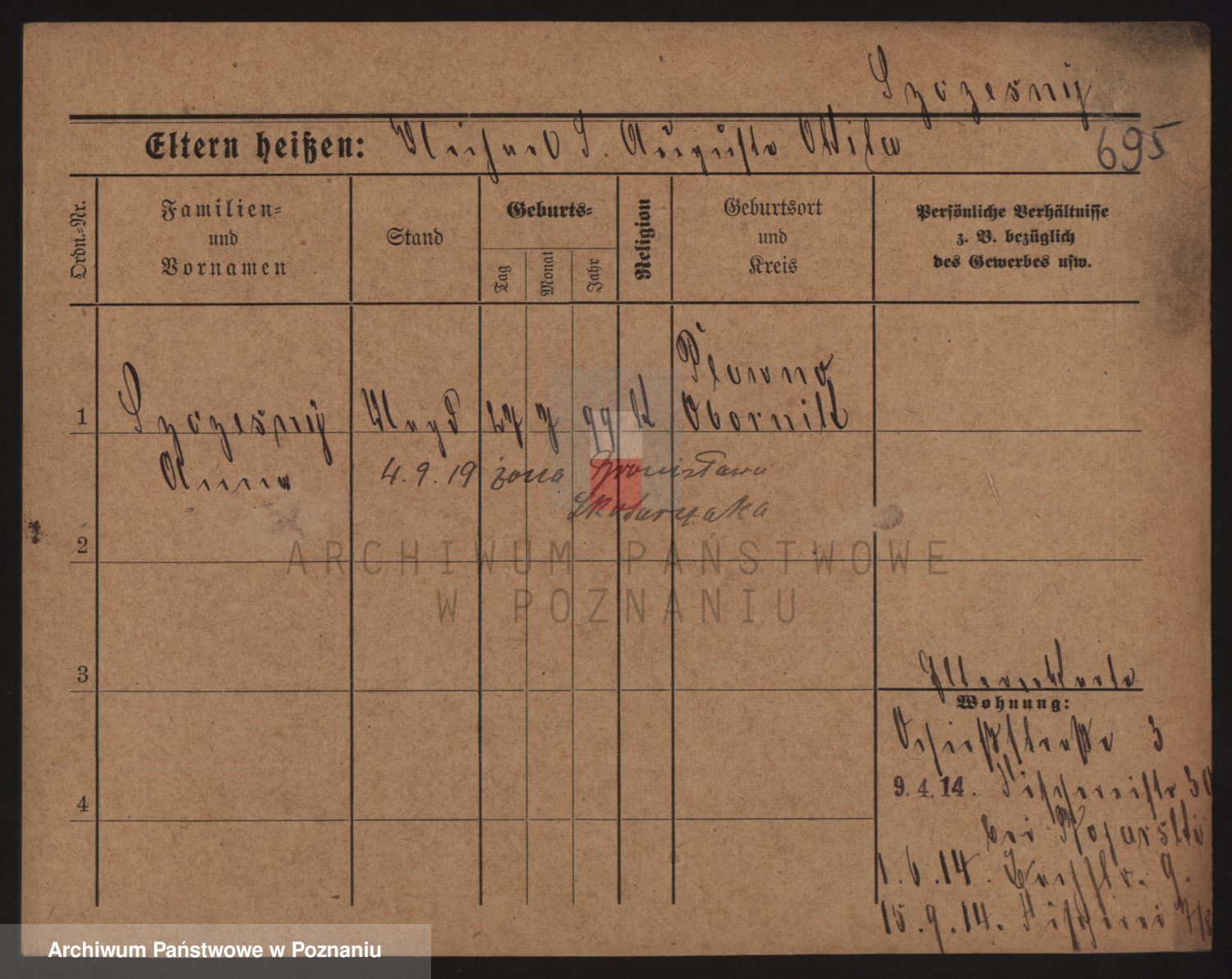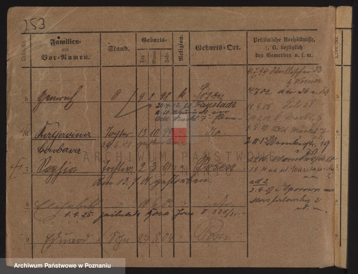 Podgląd karty osobowej dostępny jest po kliknięciu na nazwisko lub ikonkę karty. Można dokonywać powiększenia (ikony na górze) lub przechodzić między kolejnymi skanami (strzałki po bokach).