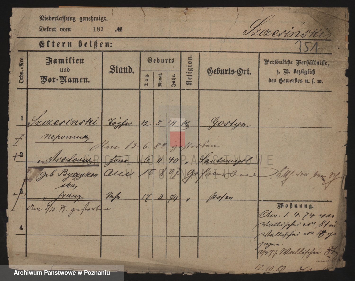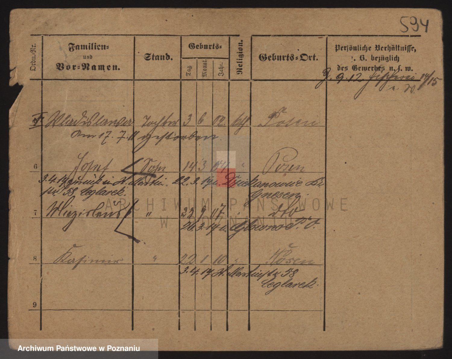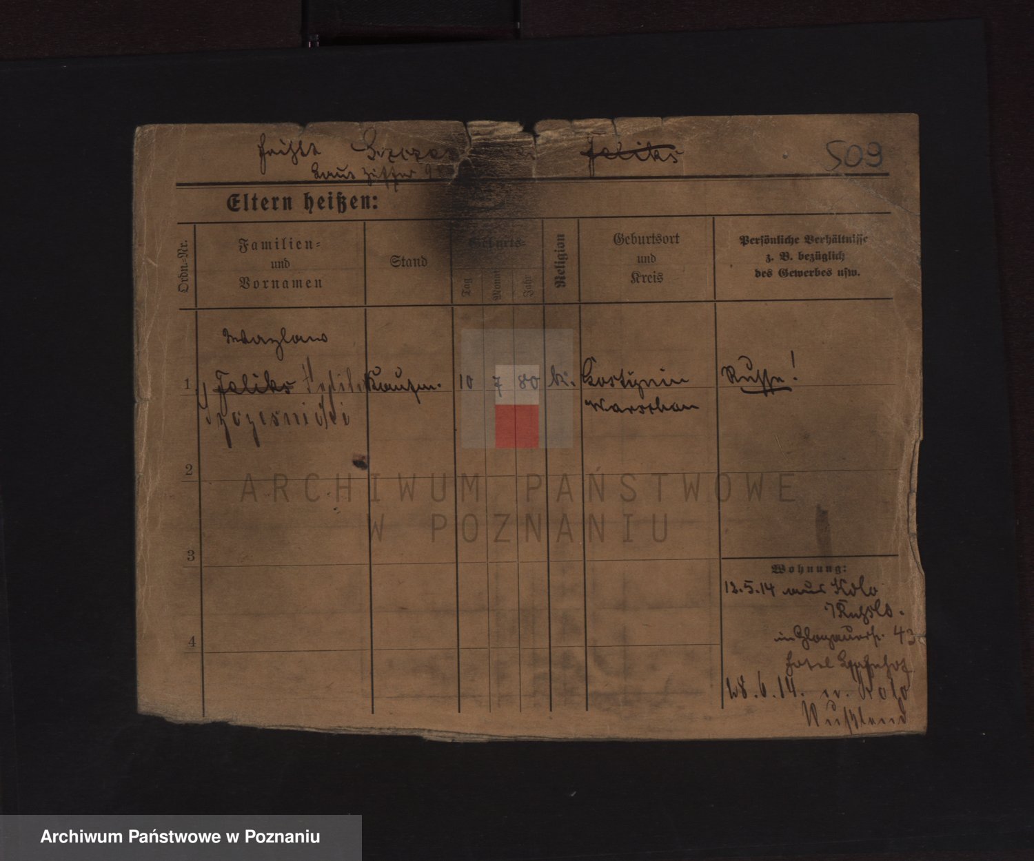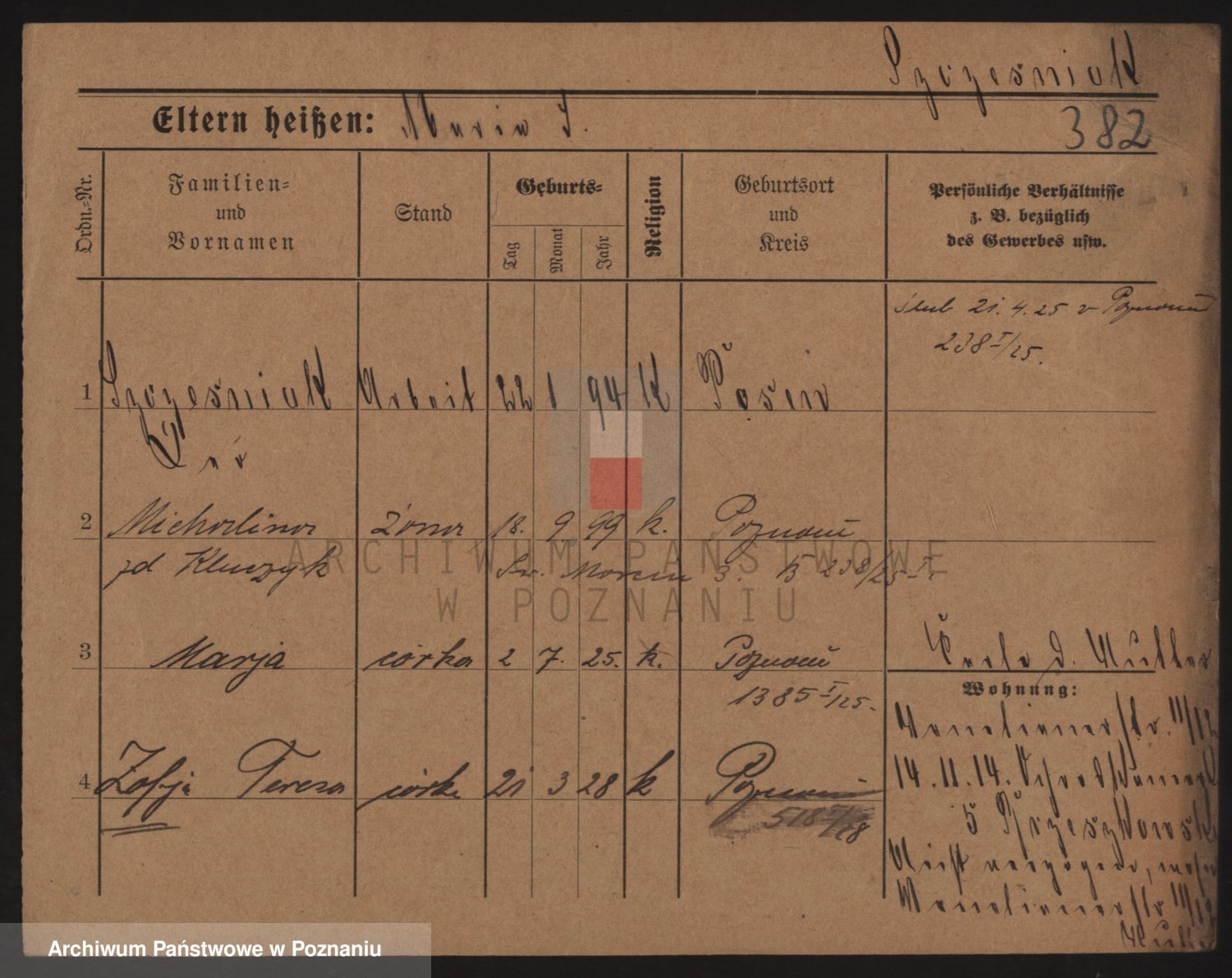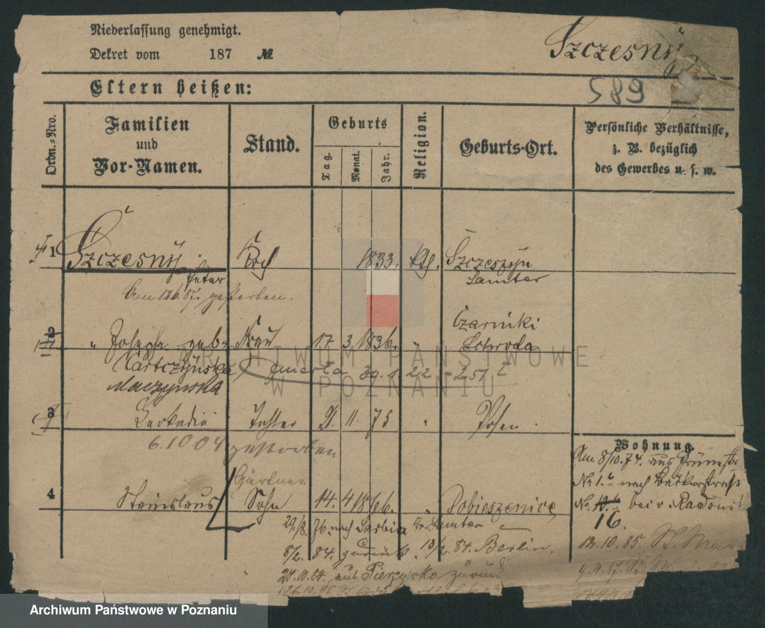 Podgląd karty osobowej dostępny jest po kliknięciu na nazwisko lub ikonkę karty. Można dokonywać powiększenia (ikony na górze) lub przechodzić między kolejnymi skanami (strzałki po bokach).