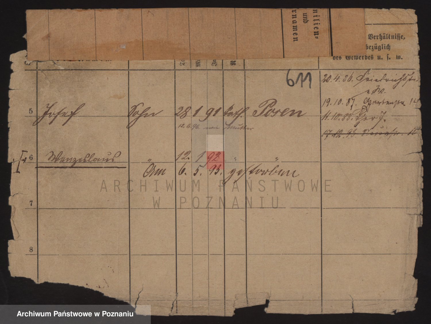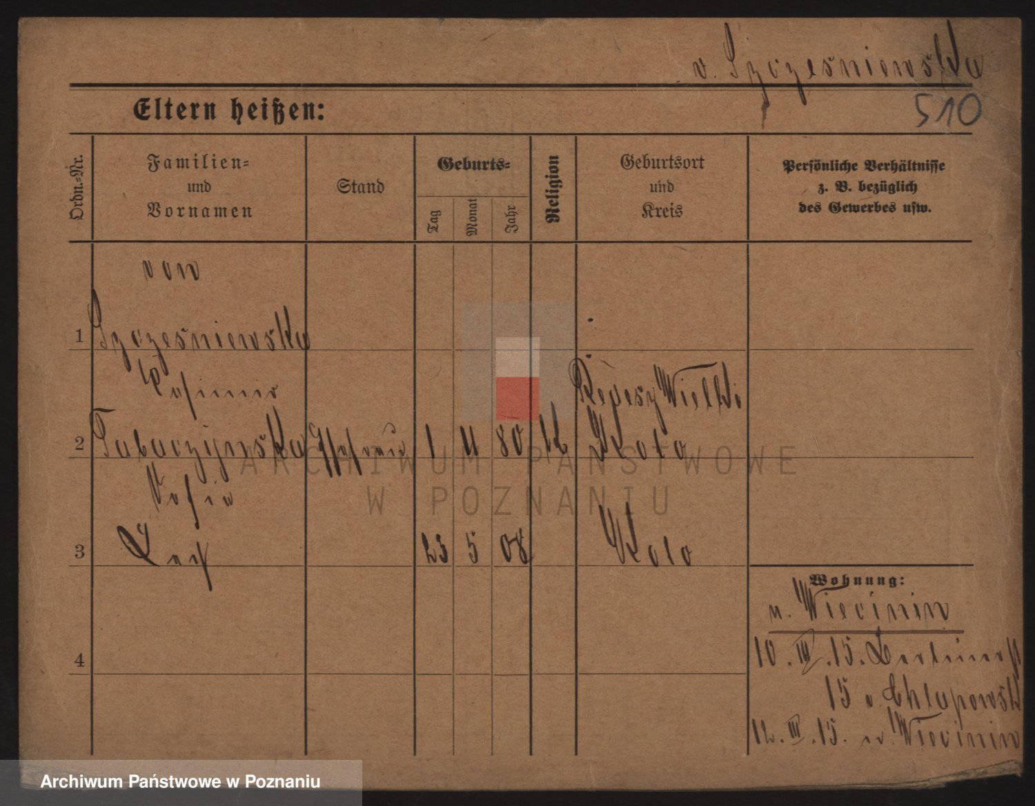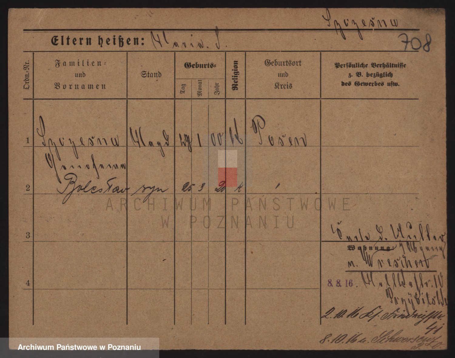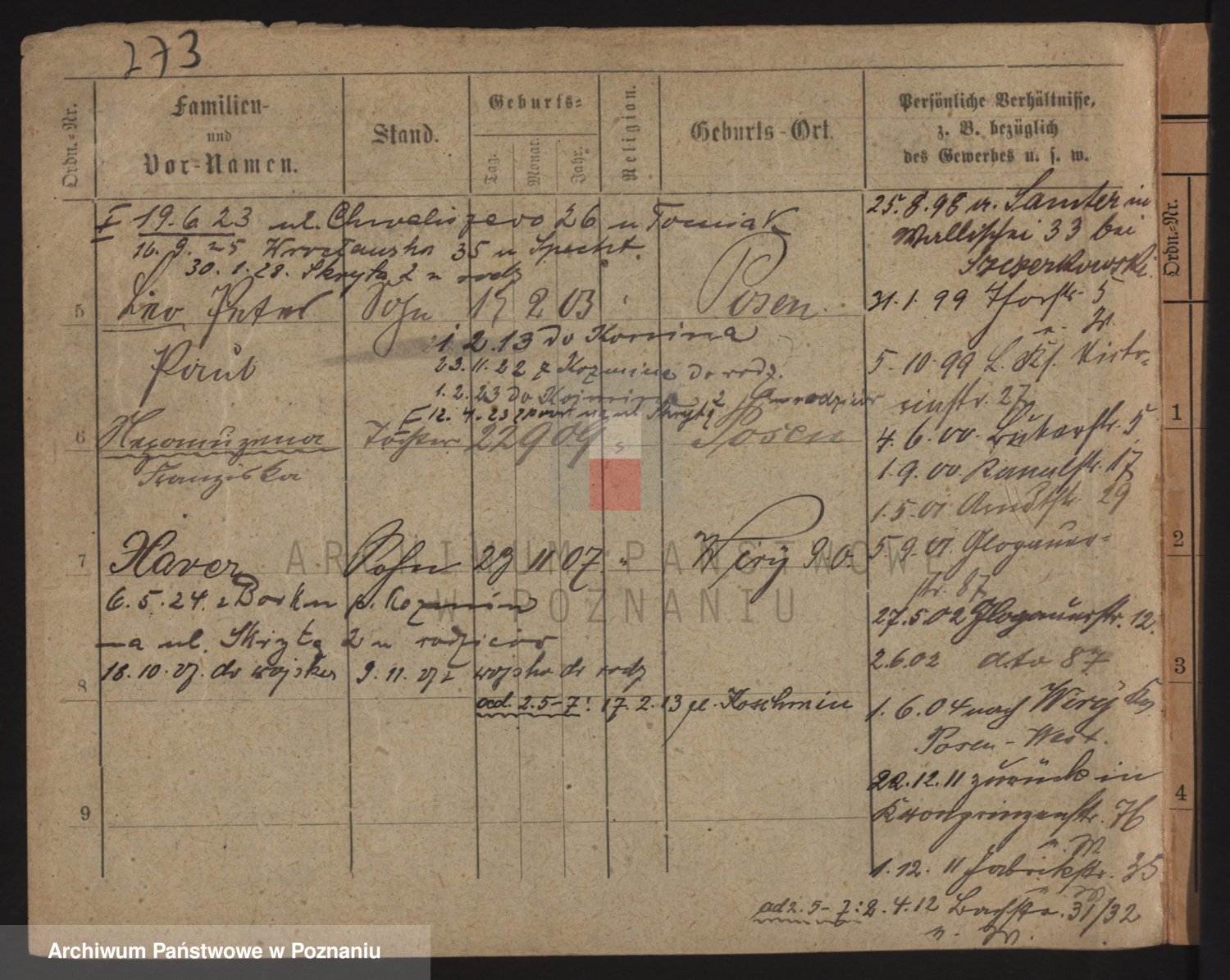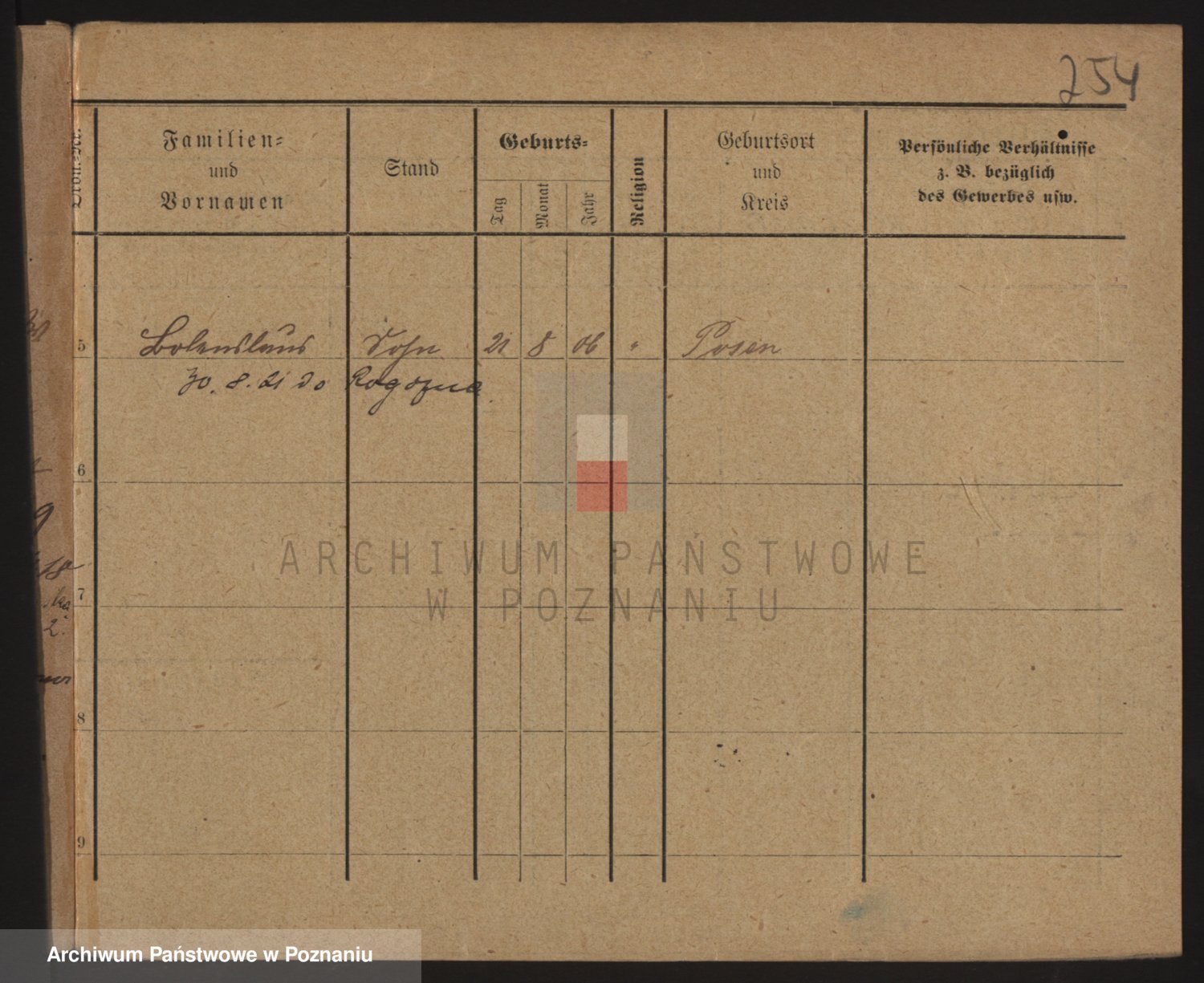 Podgląd karty osobowej dostępny jest po kliknięciu na nazwisko lub ikonkę karty. Można dokonywać powiększenia (ikony na górze) lub przechodzić między kolejnymi skanami (strzałki po bokach).