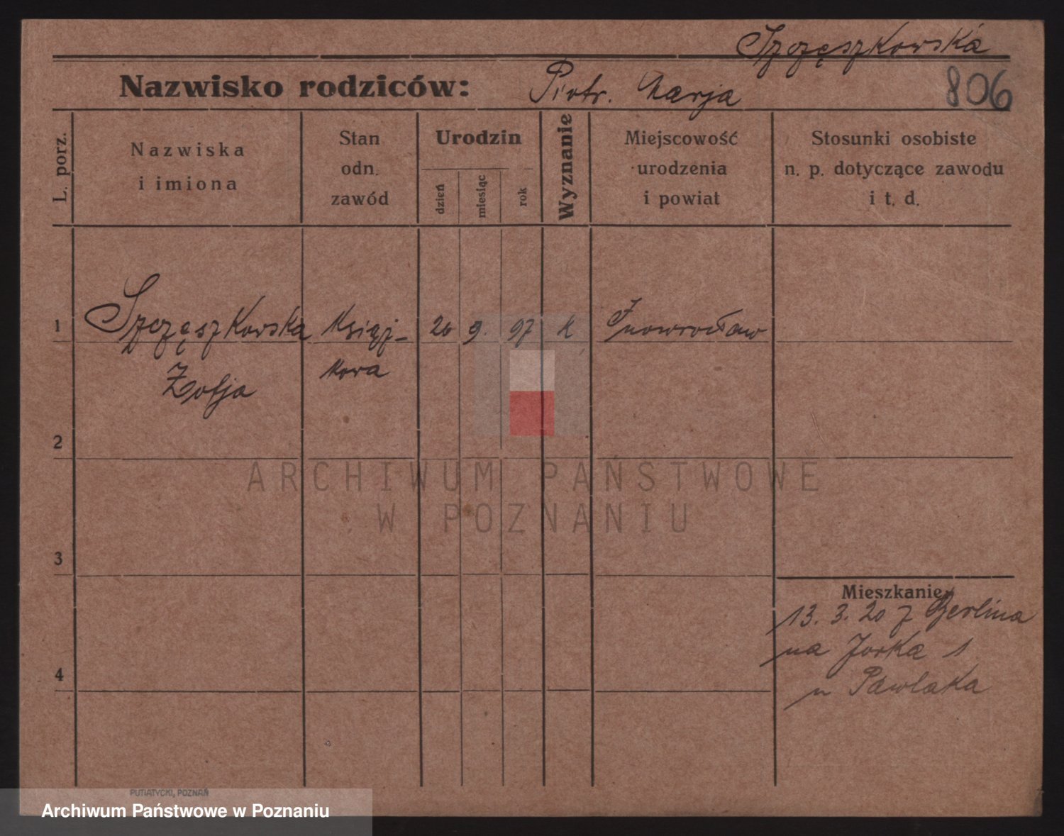 Szczodrowski z.d. Spiżewska, Marie