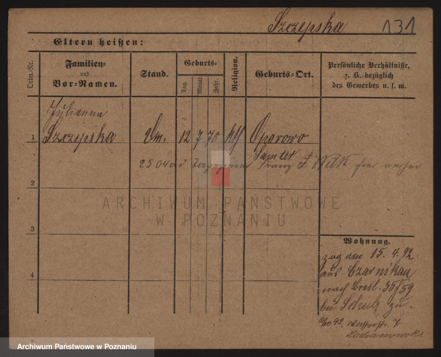 Szczodrowska, Julianna Wilhelmine Emilie