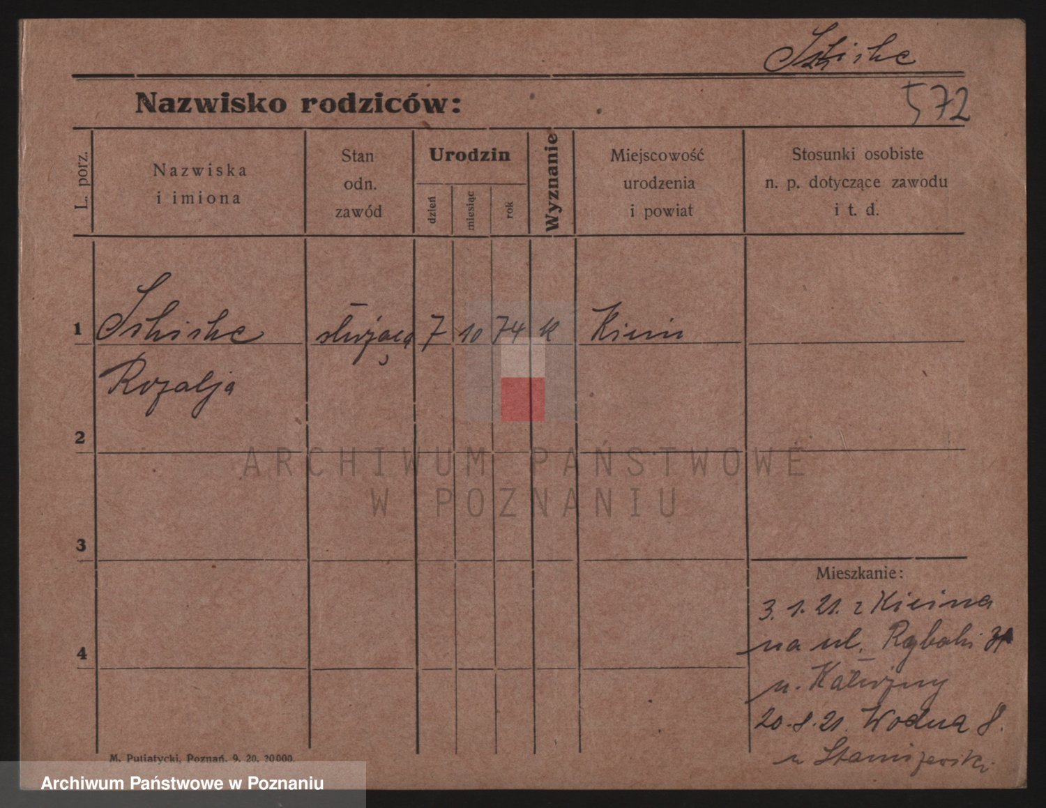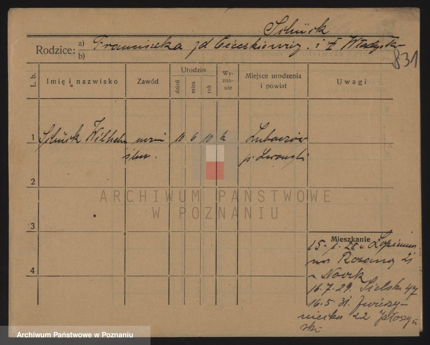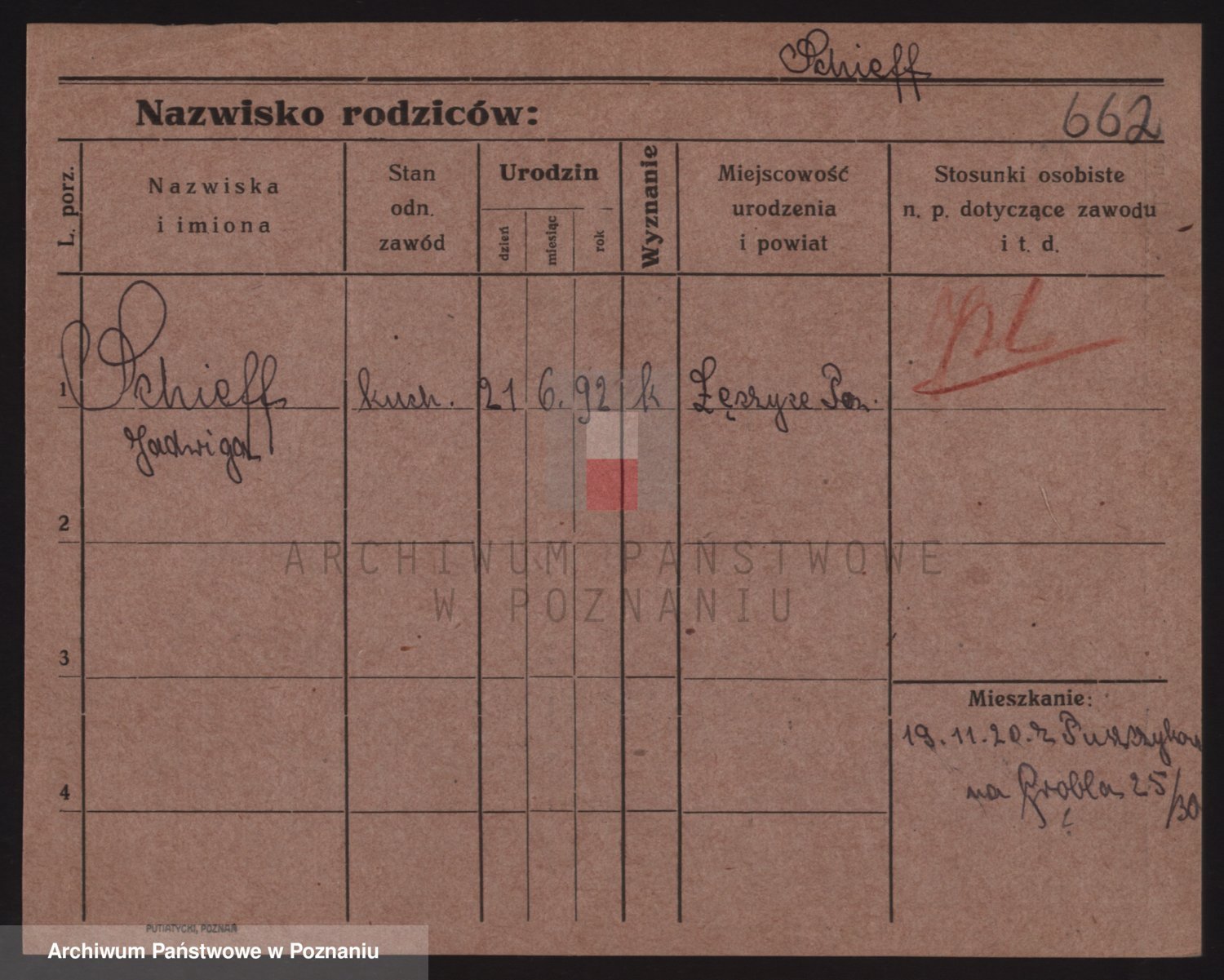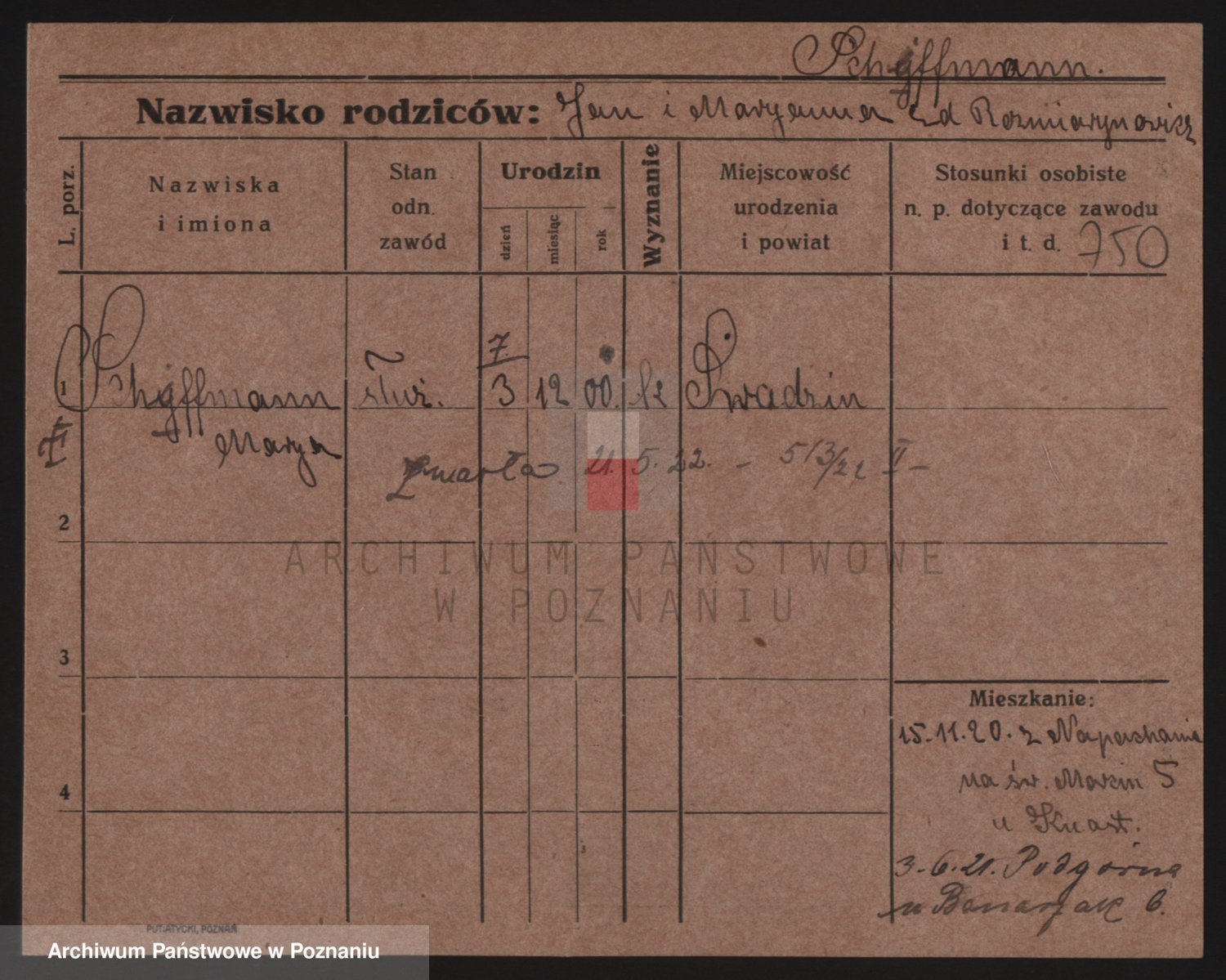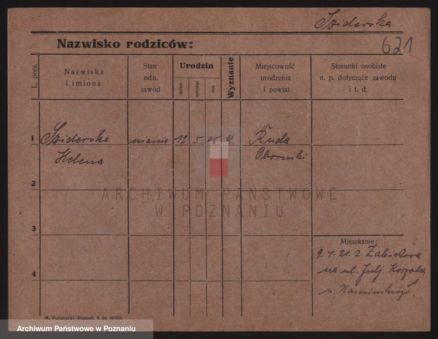 Podgląd karty osobowej dostępny jest po kliknięciu na nazwisko lub ikonkę karty. Można dokonywać powiększenia (ikony na górze) lub przechodzić między kolejnymi skanami (strzałki po bokach).