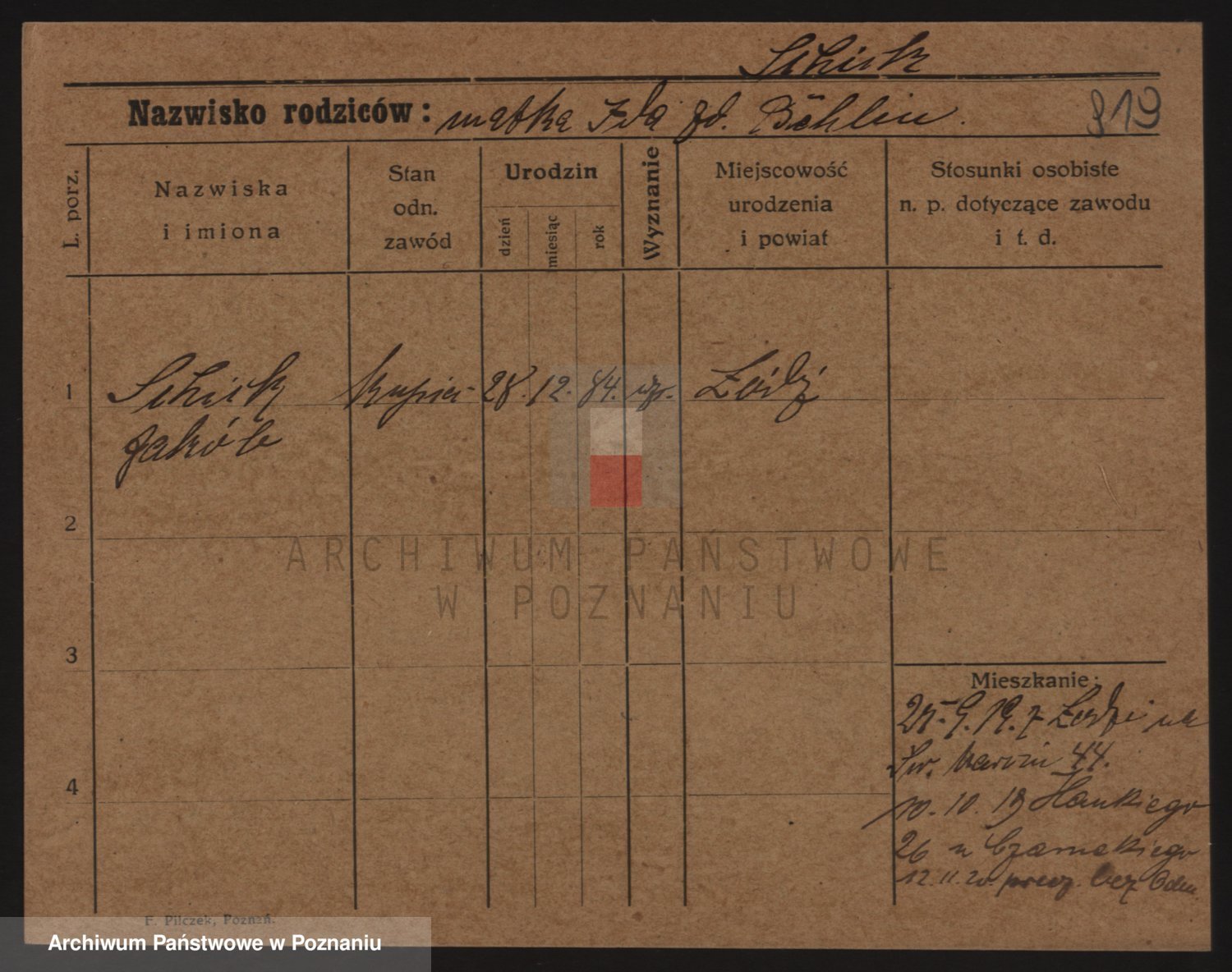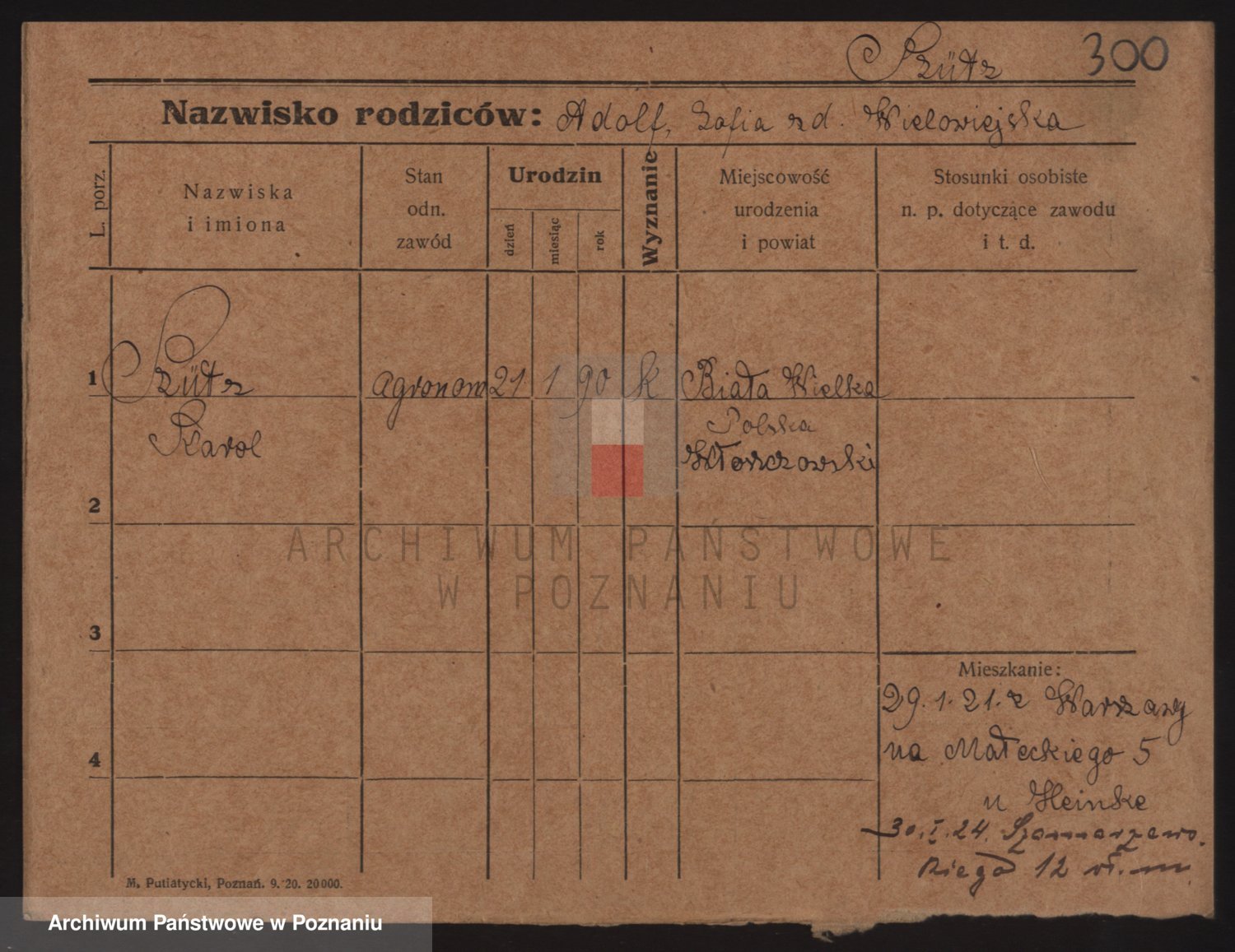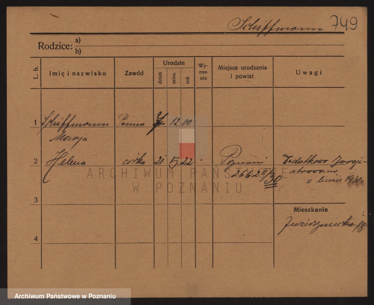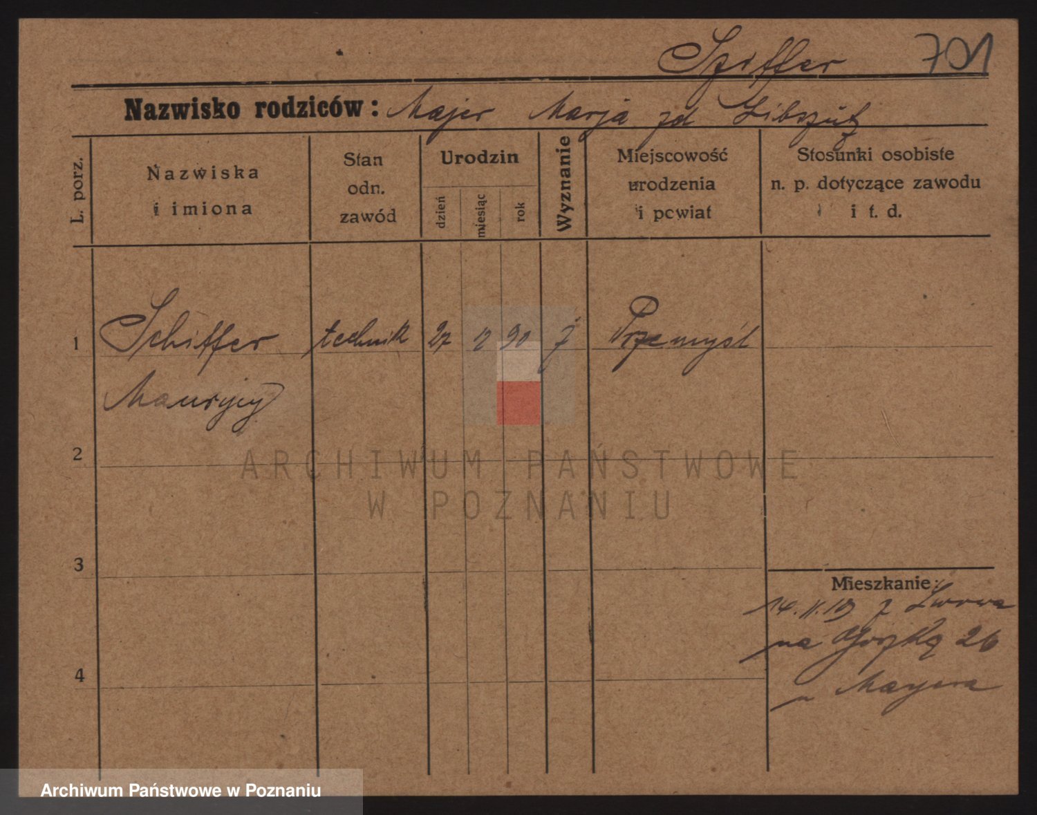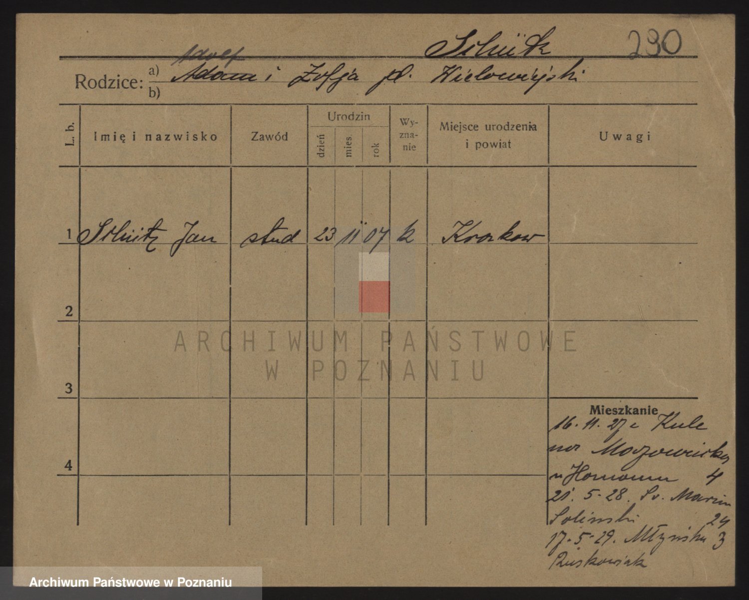 Podgląd karty osobowej dostępny jest po kliknięciu na nazwisko lub ikonkę karty. Można dokonywać powiększenia (ikony na górze) lub przechodzić między kolejnymi skanami (strzałki po bokach).