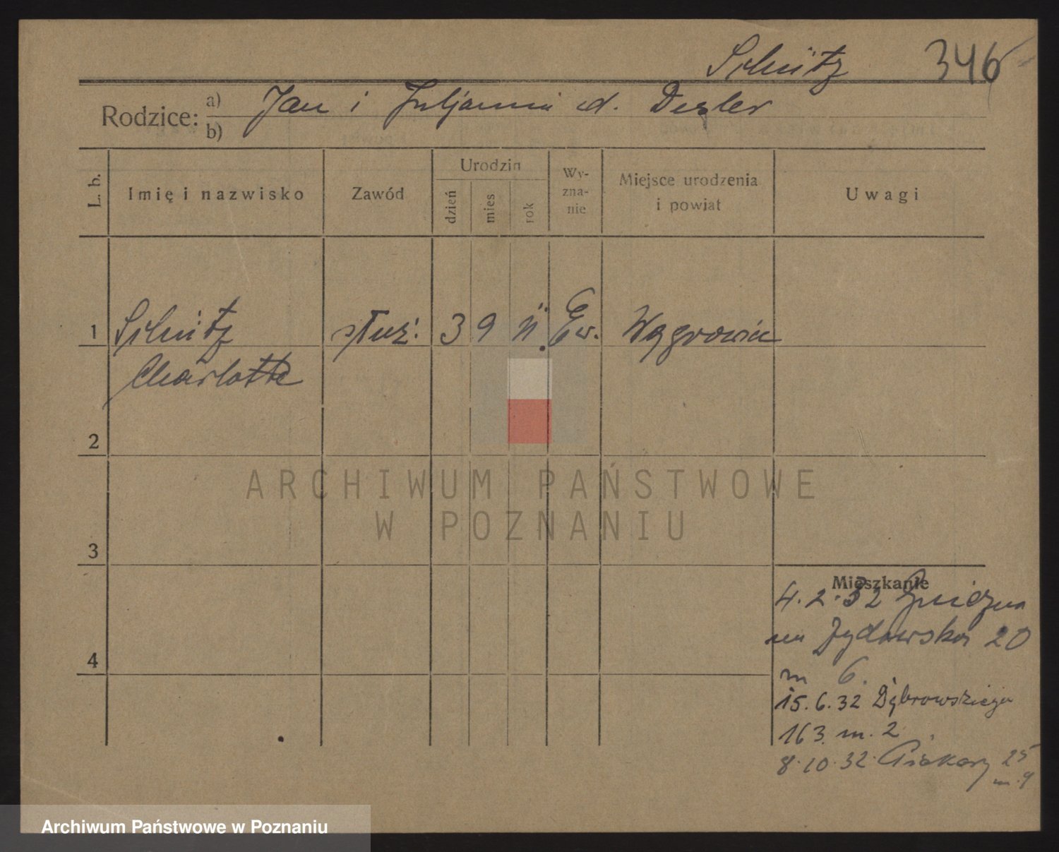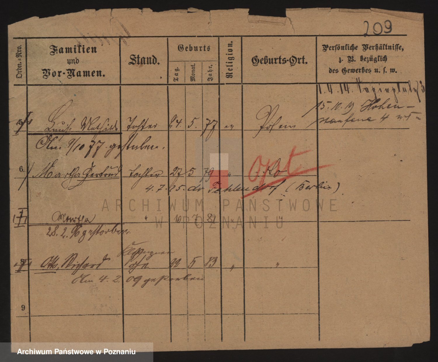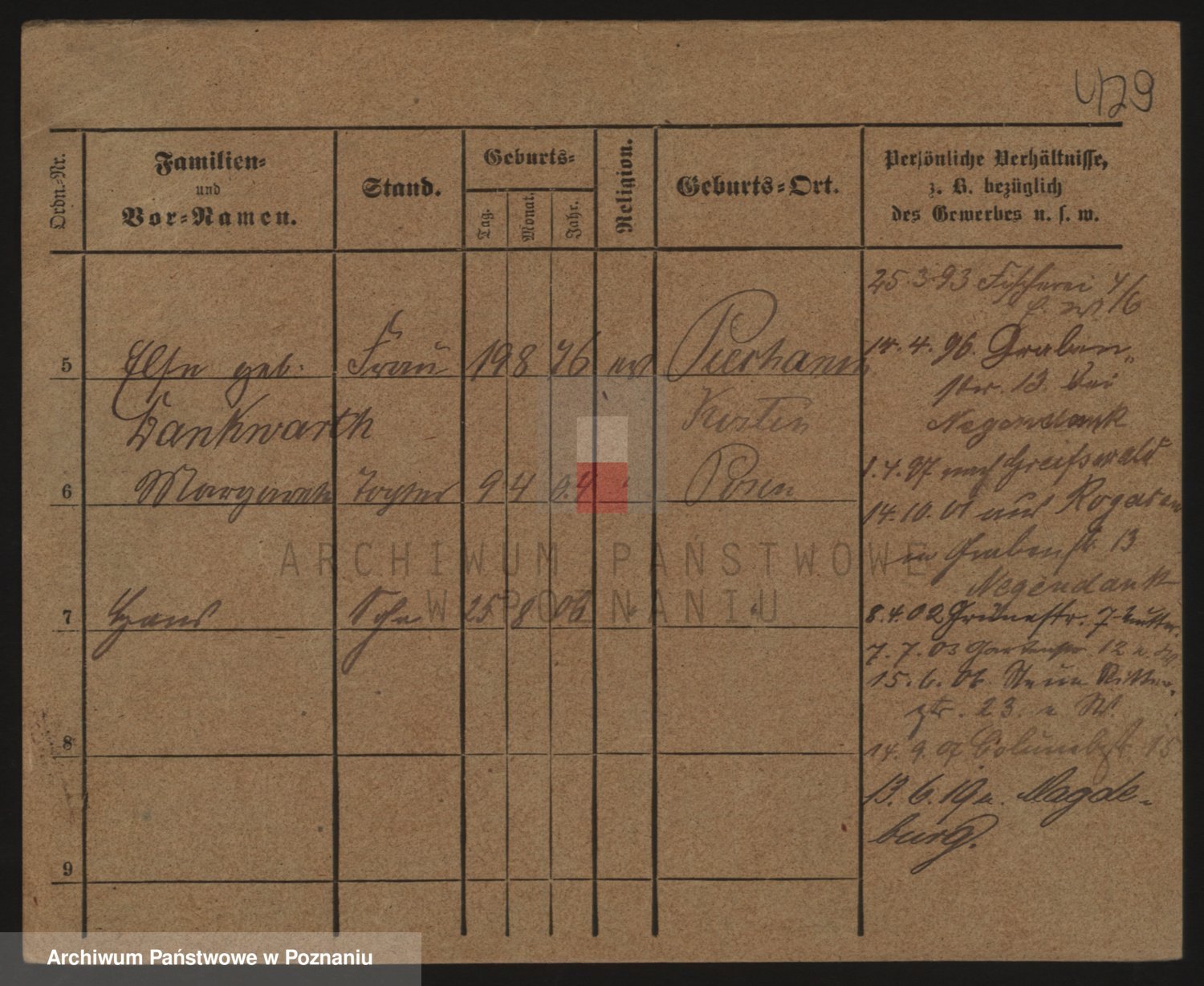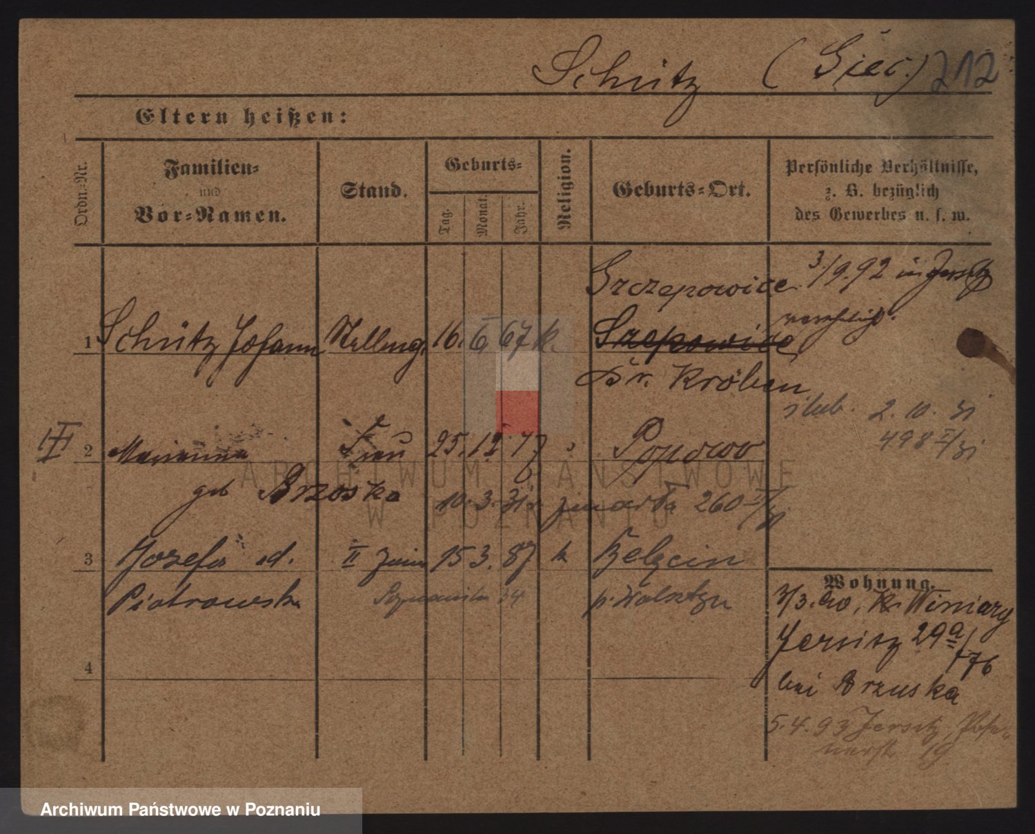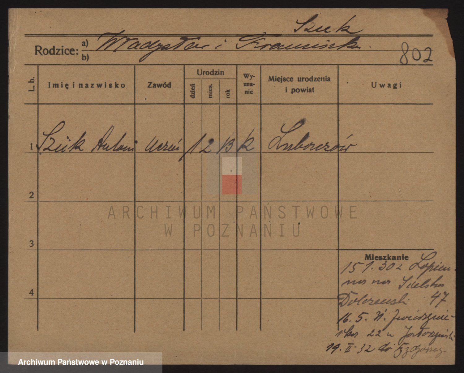 Podgląd karty osobowej dostępny jest po kliknięciu na nazwisko lub ikonkę karty. Można dokonywać powiększenia (ikony na górze) lub przechodzić między kolejnymi skanami (strzałki po bokach).