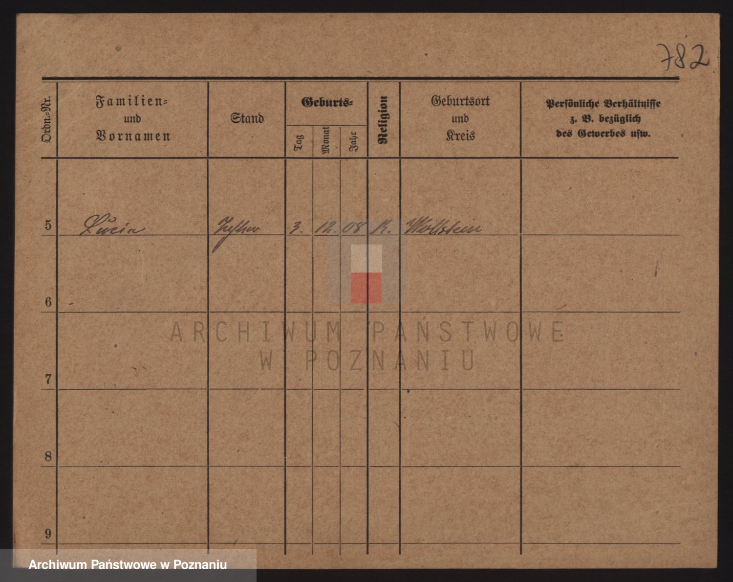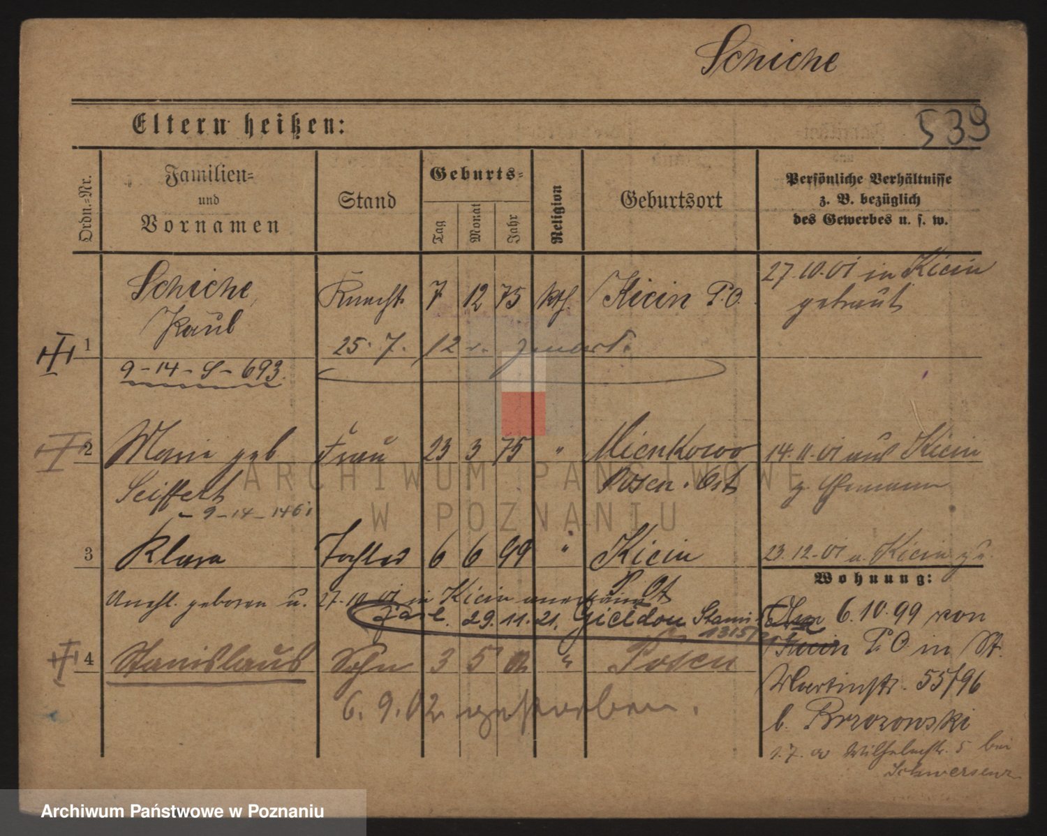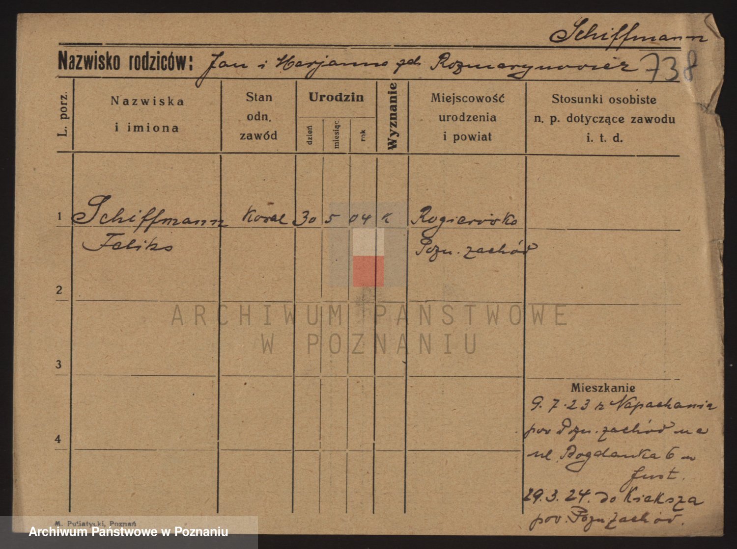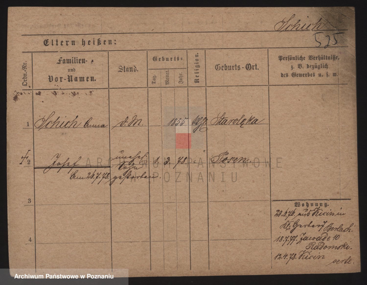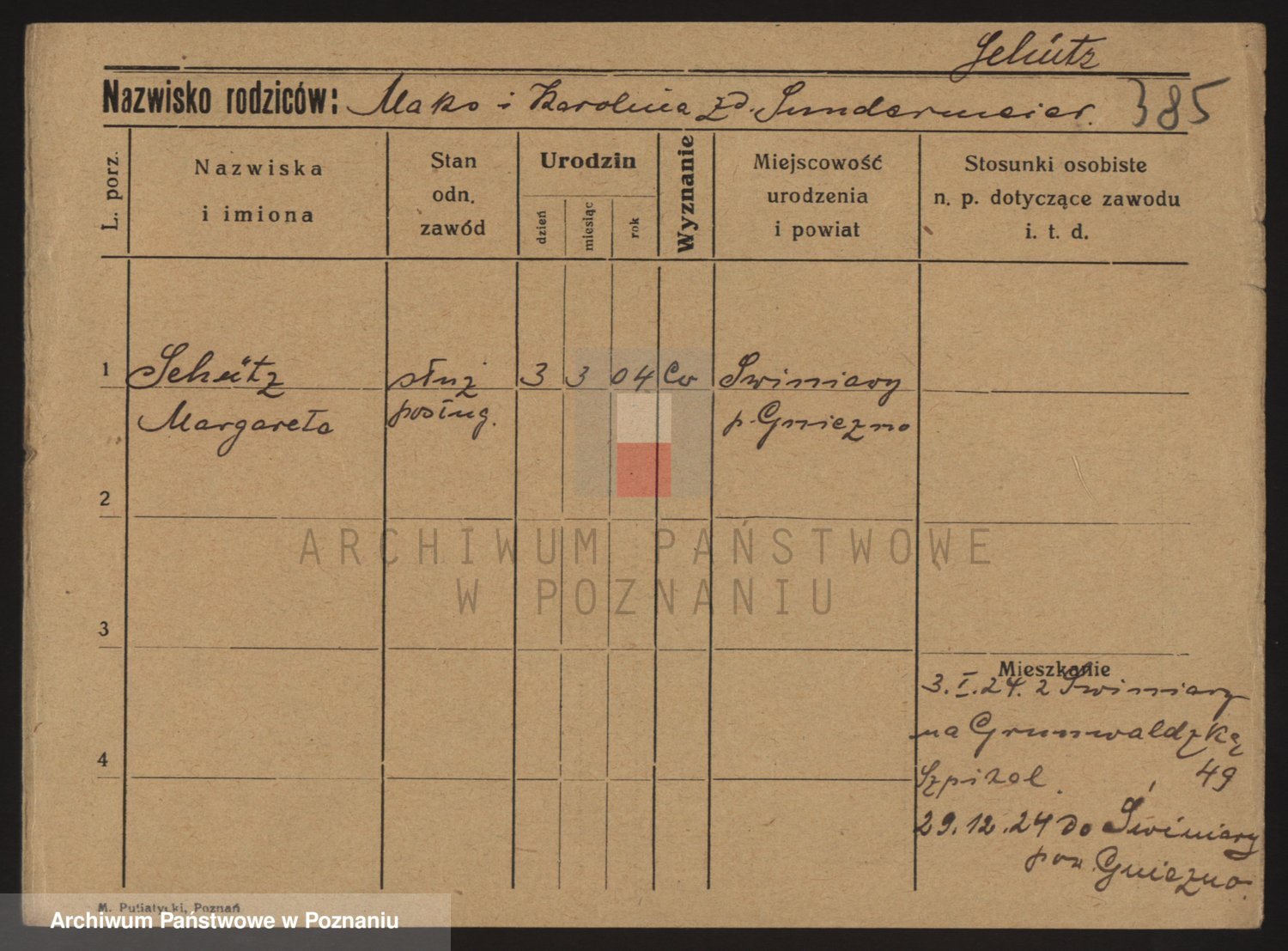 Podgląd karty osobowej dostępny jest po kliknięciu na nazwisko lub ikonkę karty. Można dokonywać powiększenia (ikony na górze) lub przechodzić między kolejnymi skanami (strzałki po bokach).