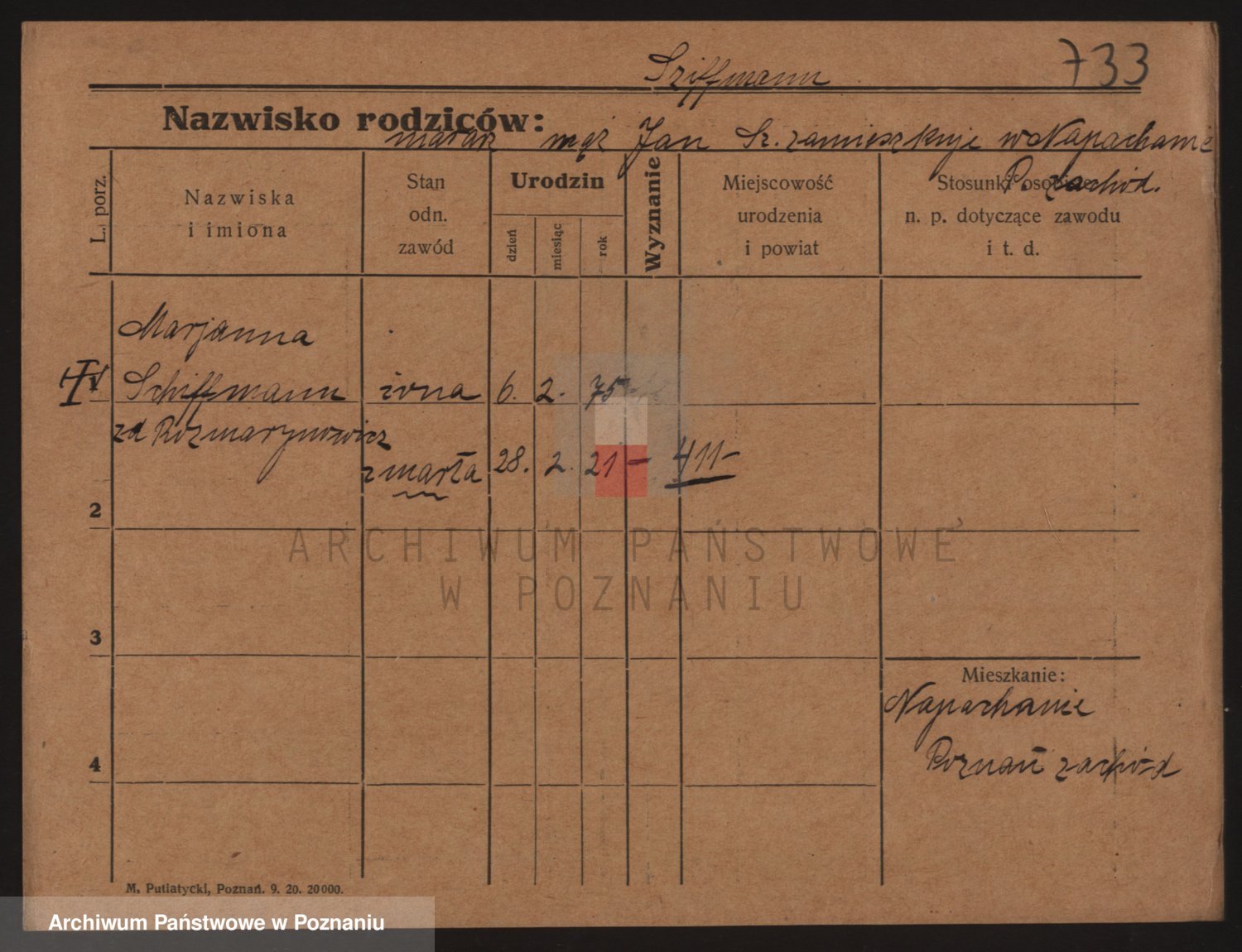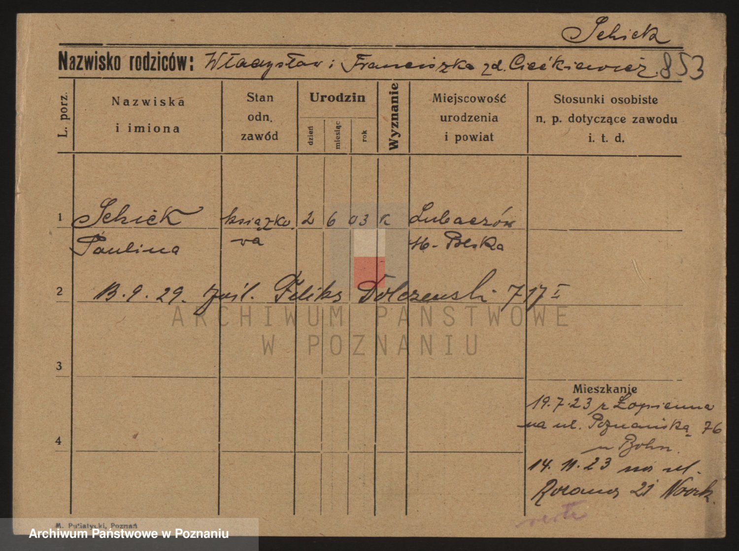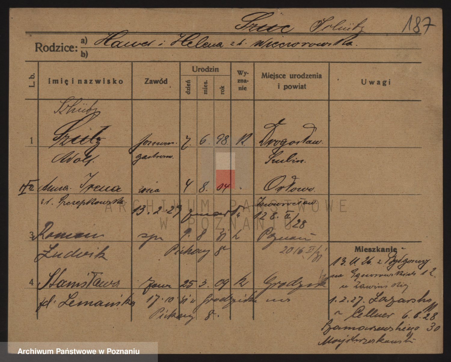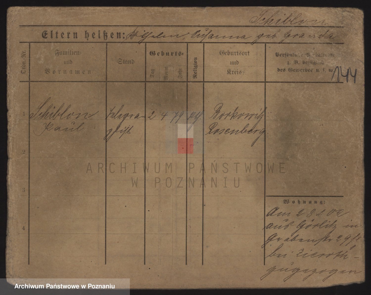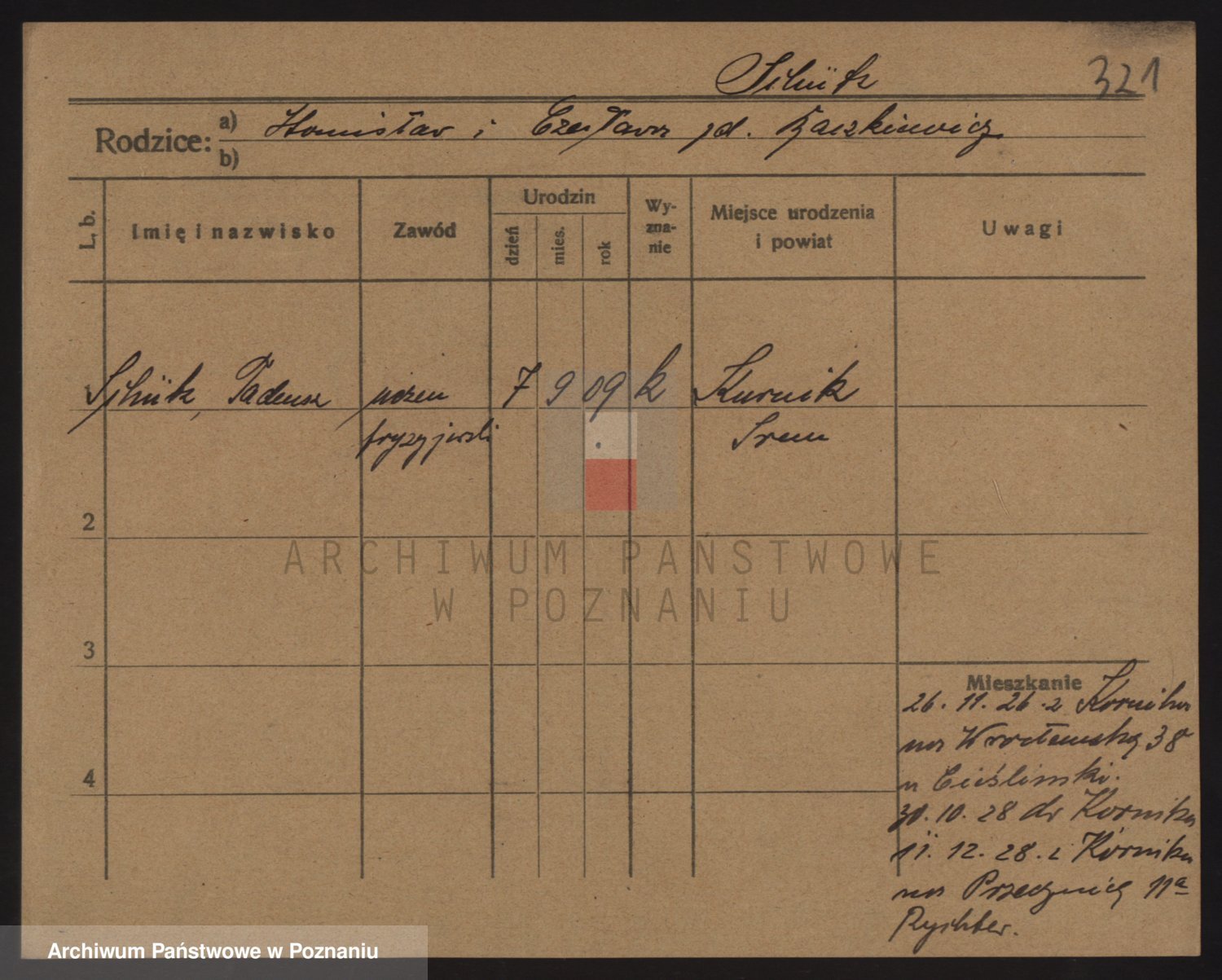 Podgląd karty osobowej dostępny jest po kliknięciu na nazwisko lub ikonkę karty. Można dokonywać powiększenia (ikony na górze) lub przechodzić między kolejnymi skanami (strzałki po bokach).