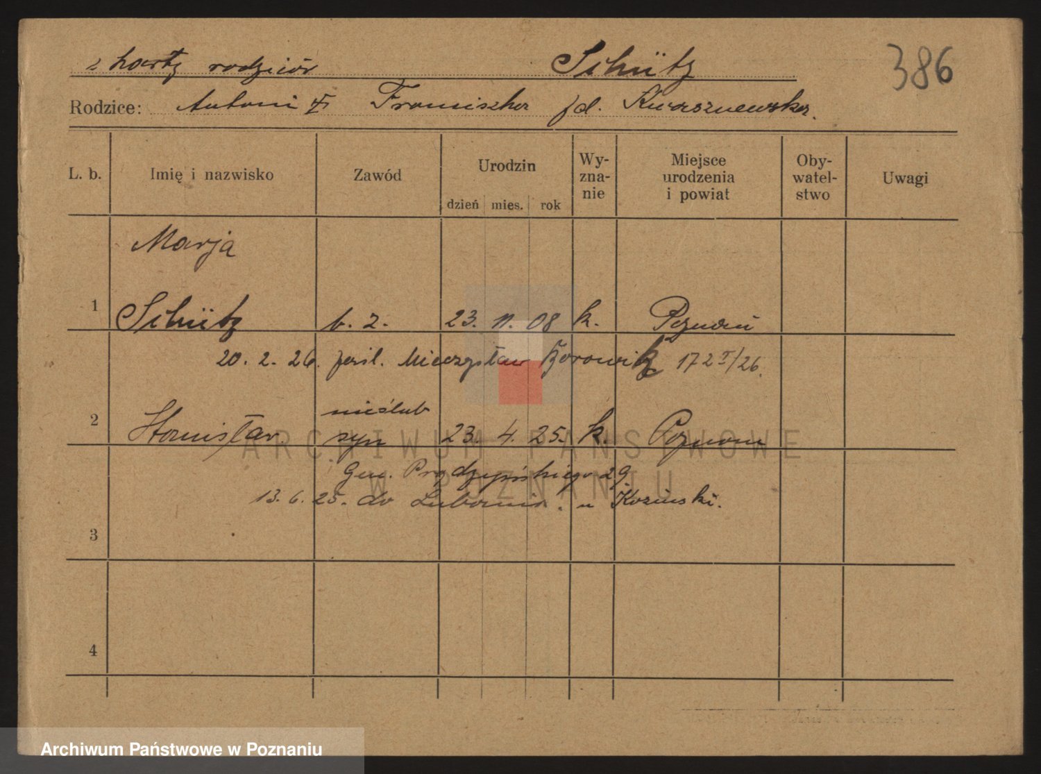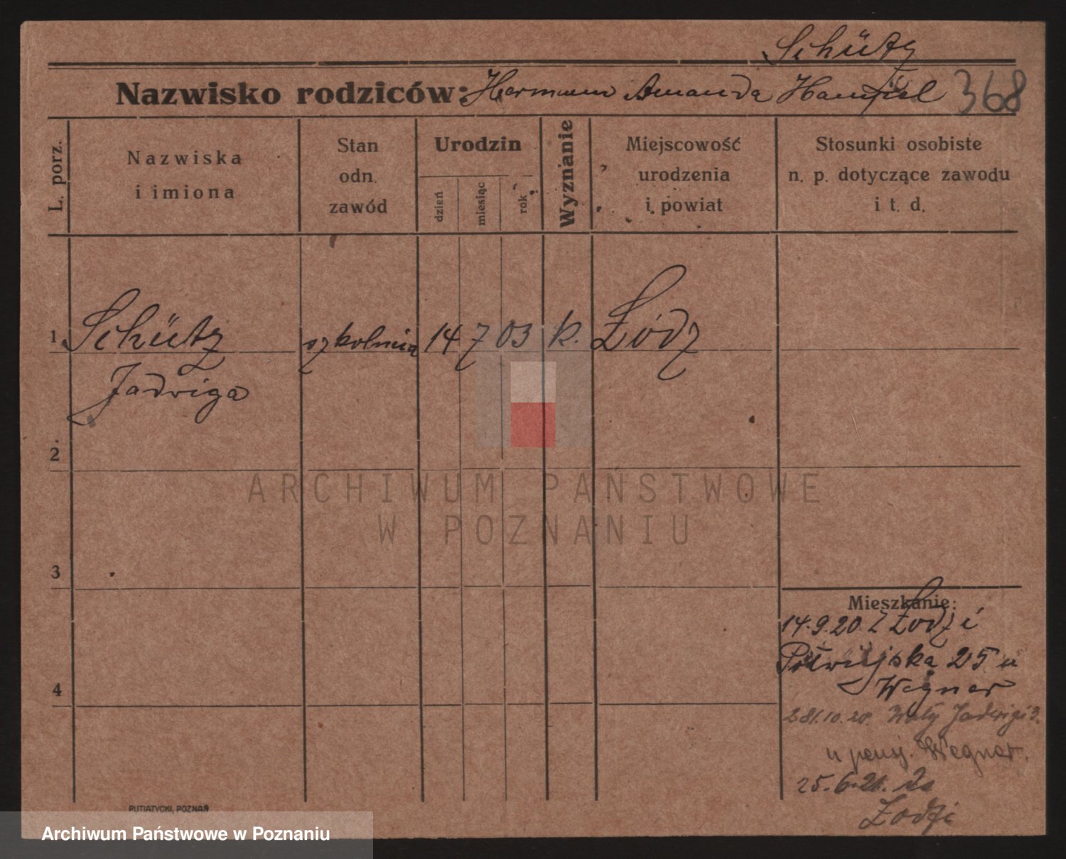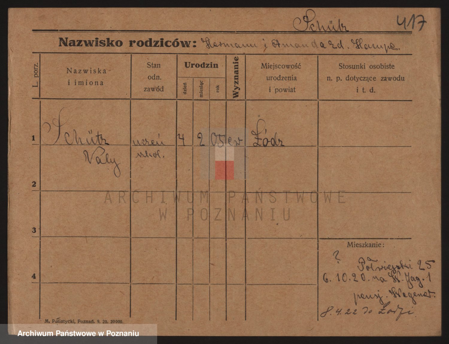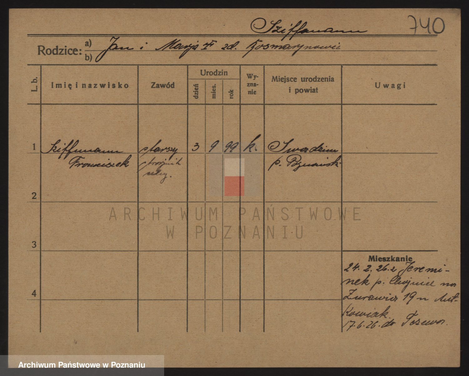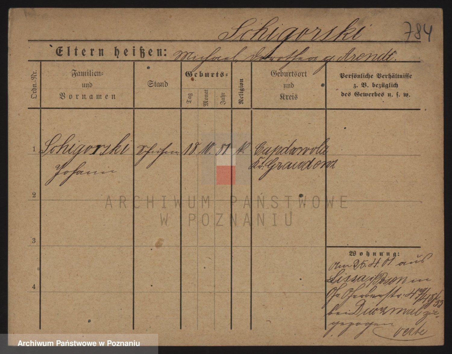 Podgląd karty osobowej dostępny jest po kliknięciu na nazwisko lub ikonkę karty. Można dokonywać powiększenia (ikony na górze) lub przechodzić między kolejnymi skanami (strzałki po bokach).