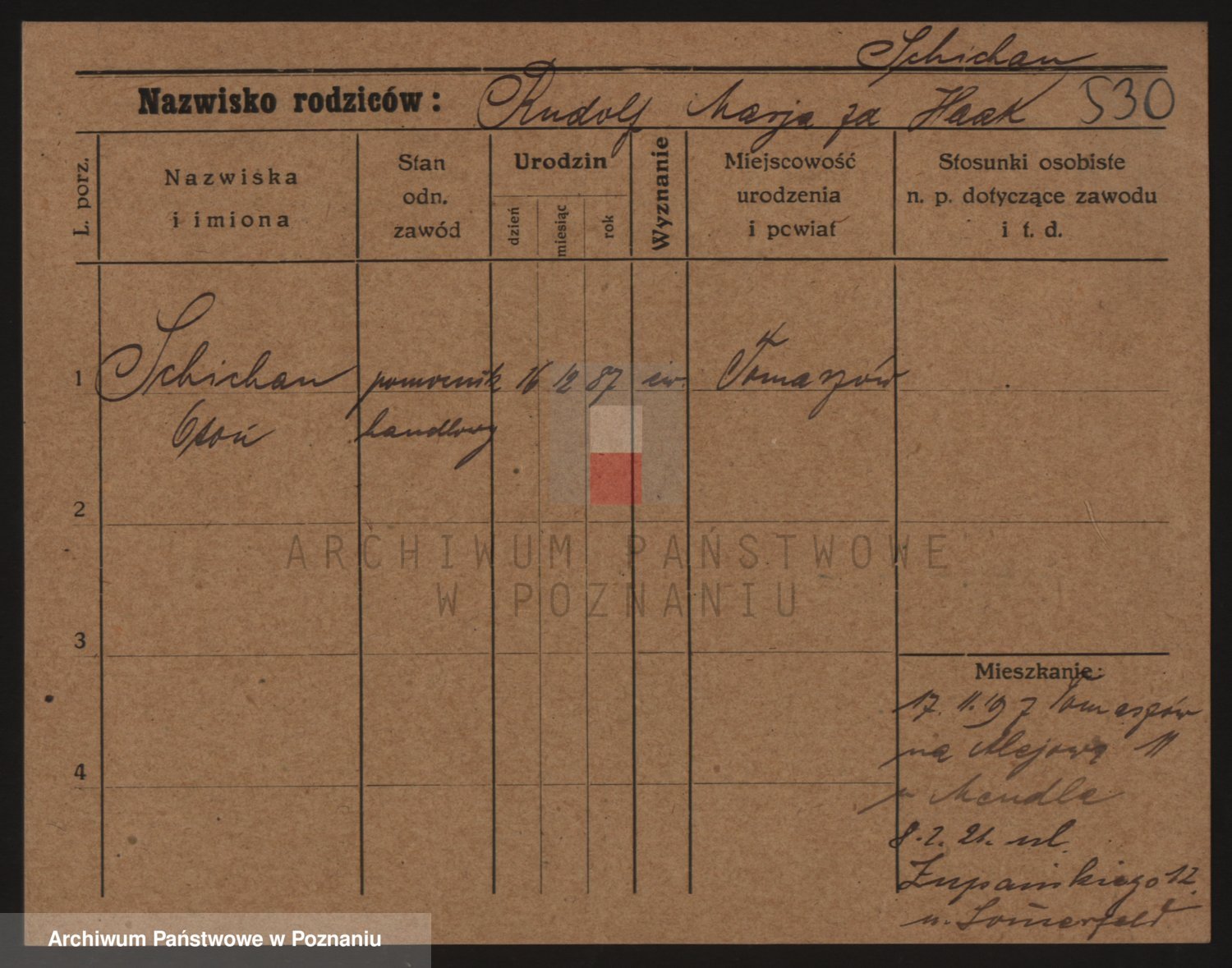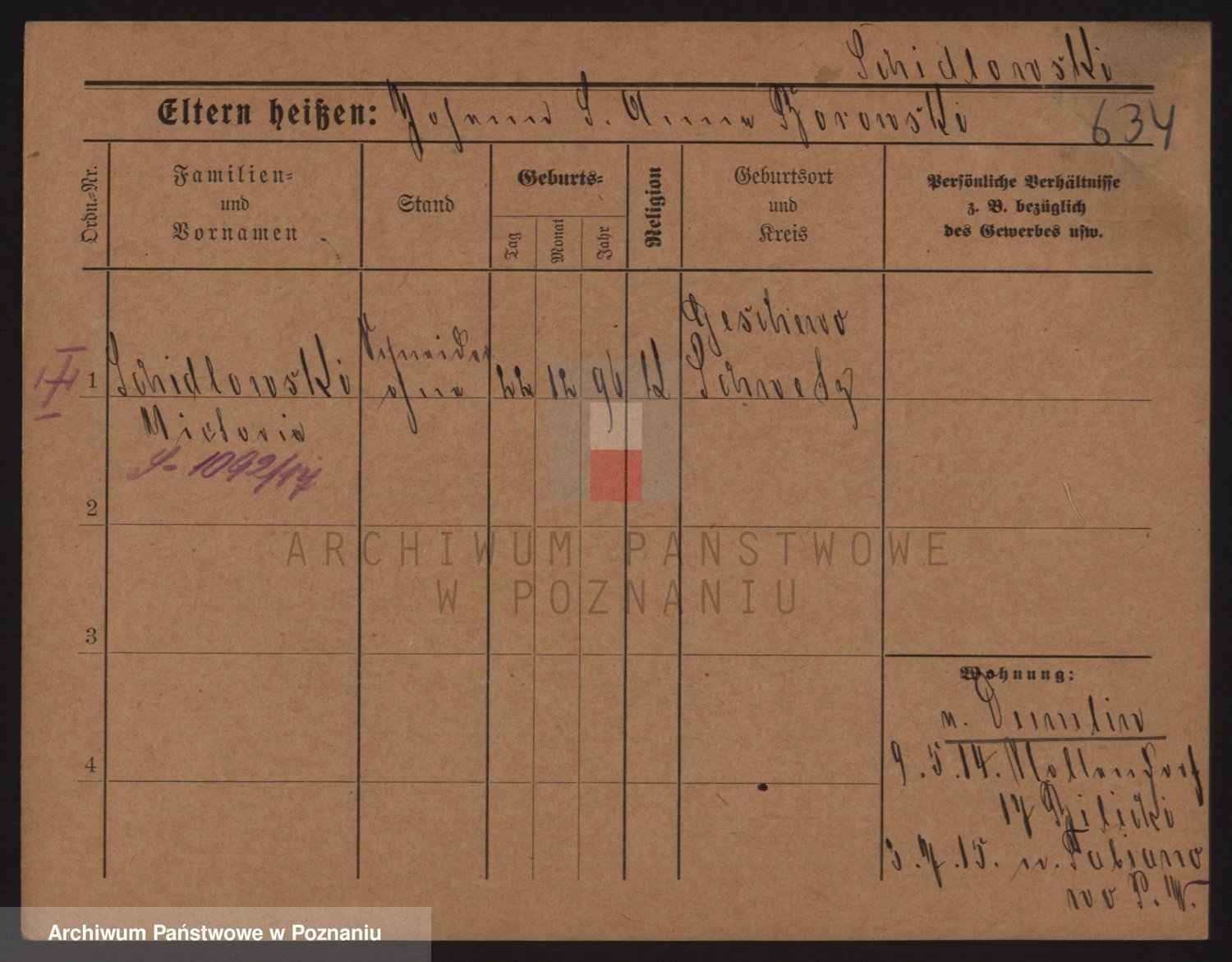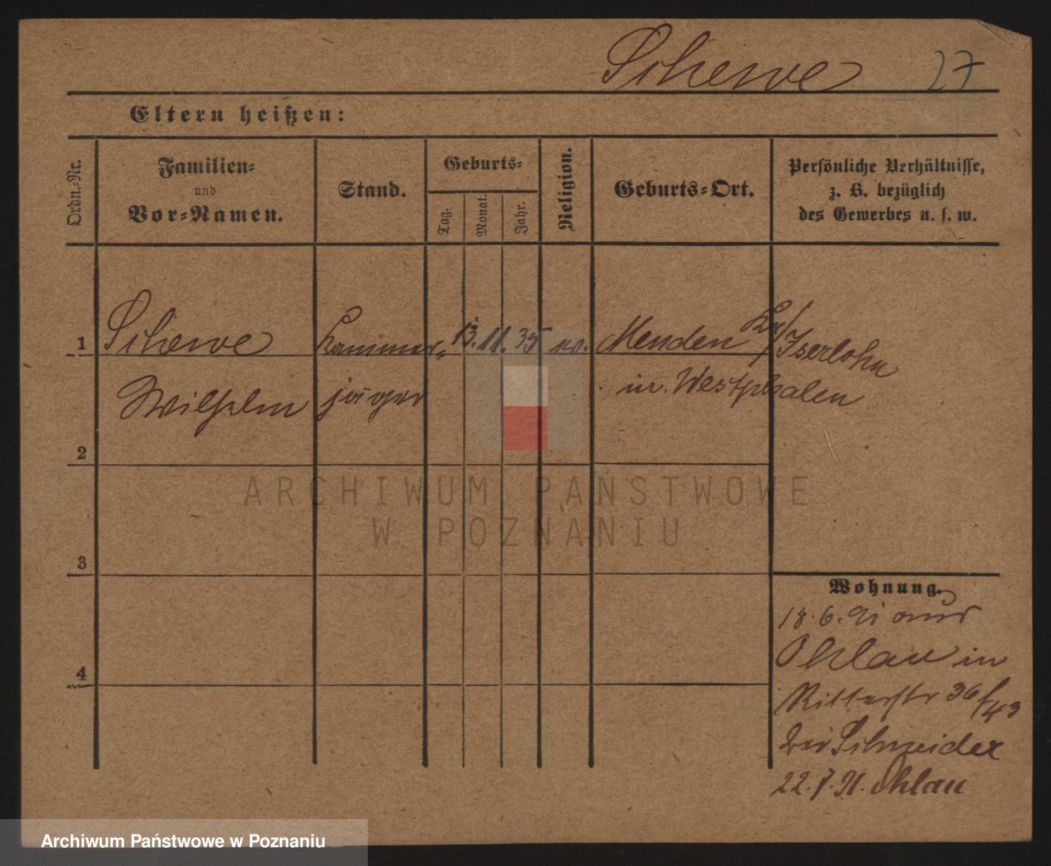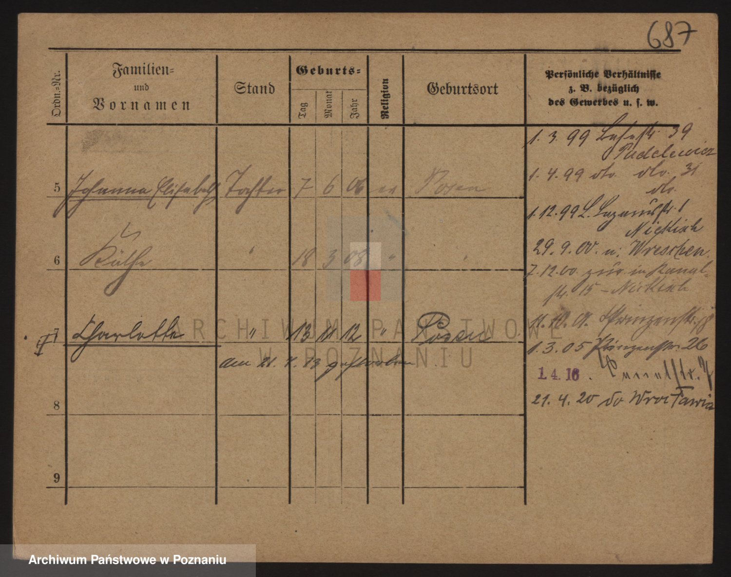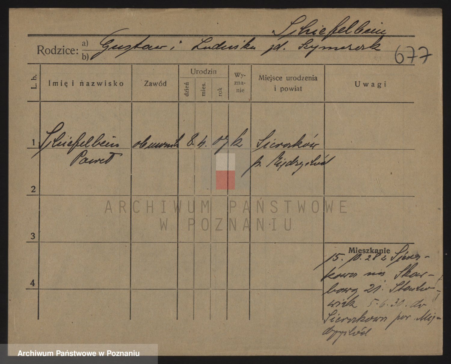 Podgląd karty osobowej dostępny jest po kliknięciu na nazwisko lub ikonkę karty. Można dokonywać powiększenia (ikony na górze) lub przechodzić między kolejnymi skanami (strzałki po bokach).