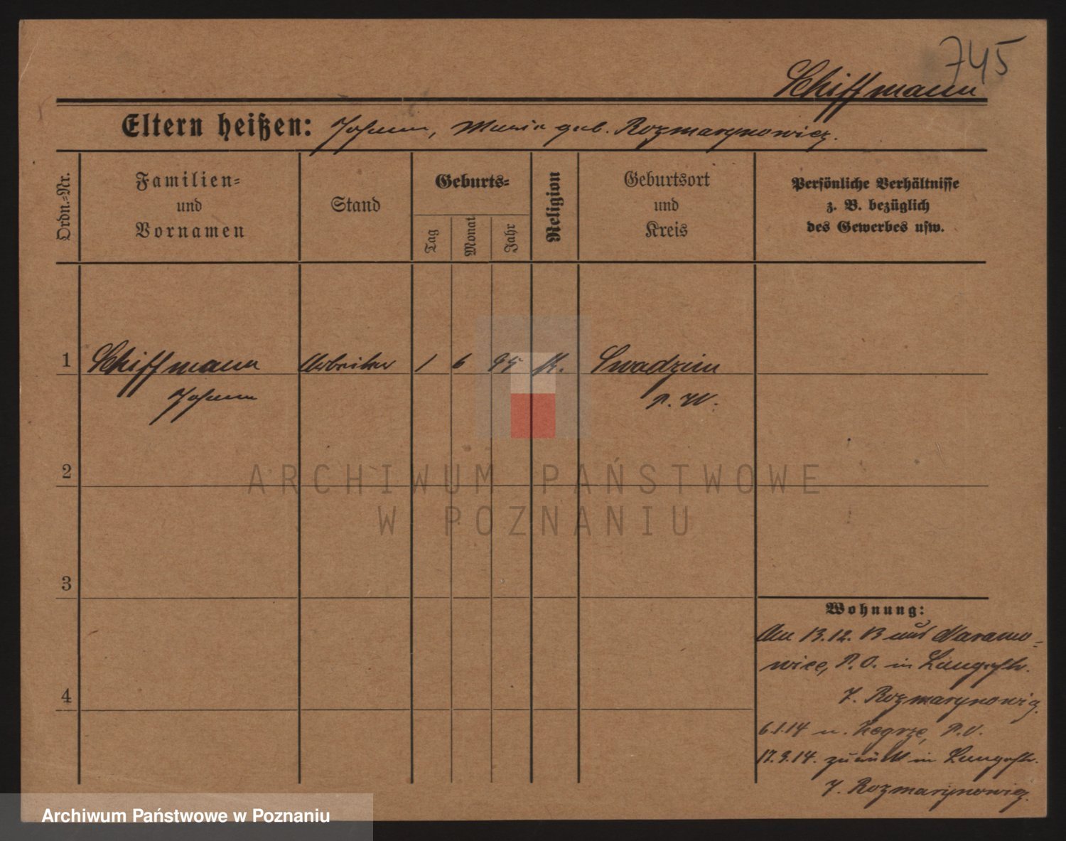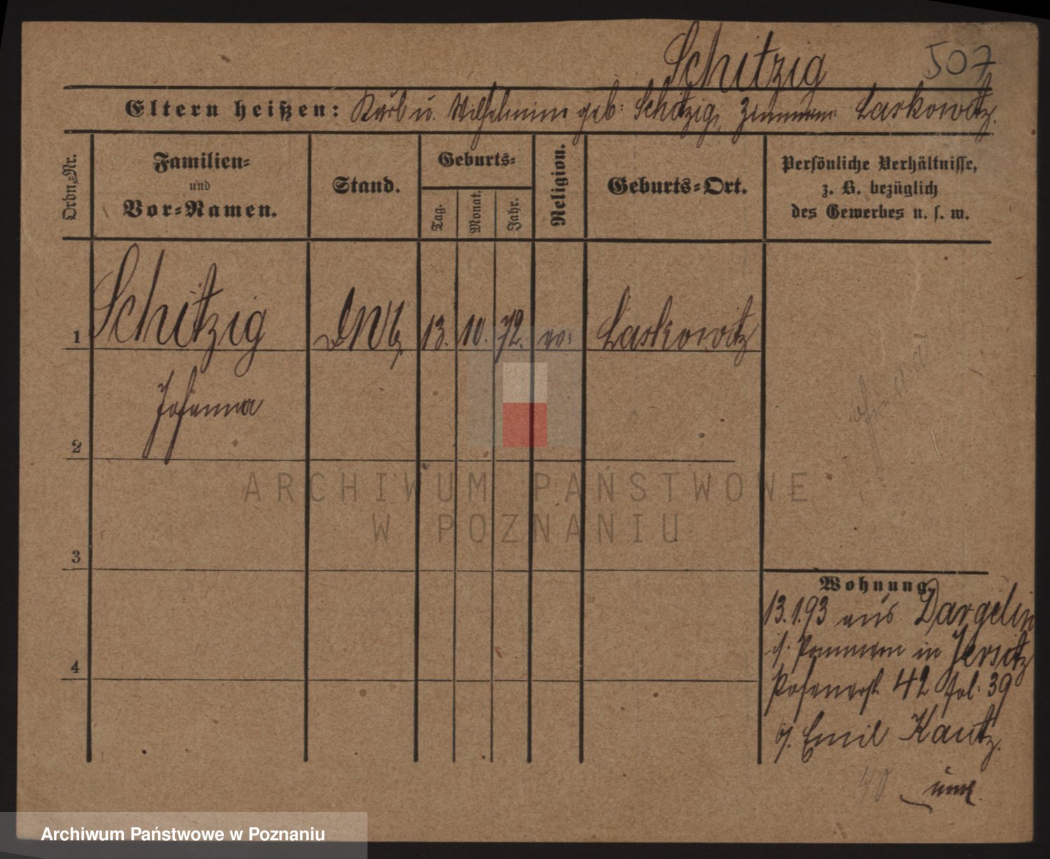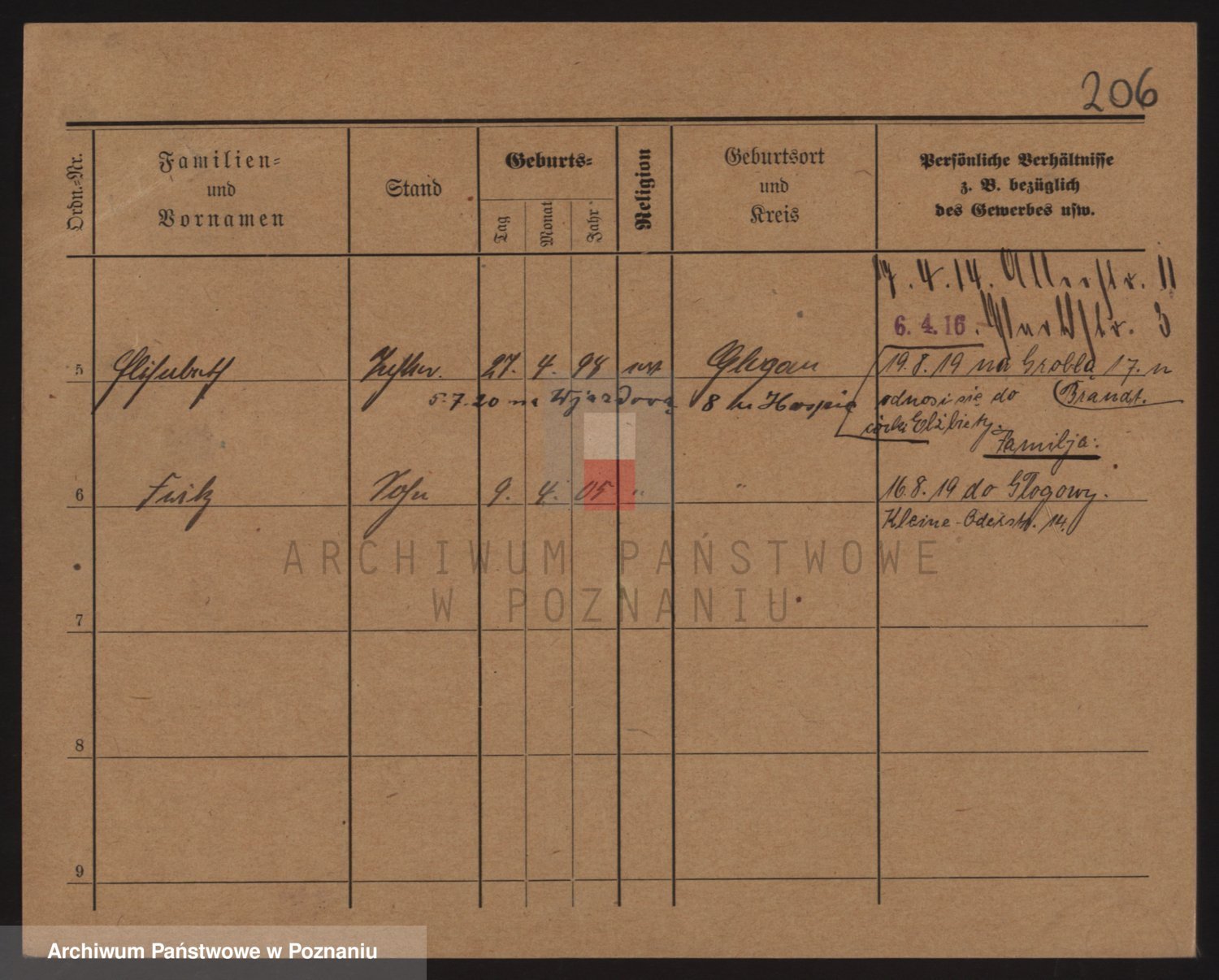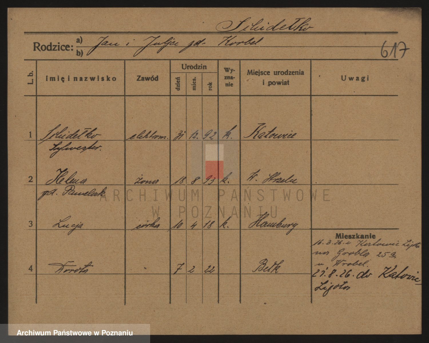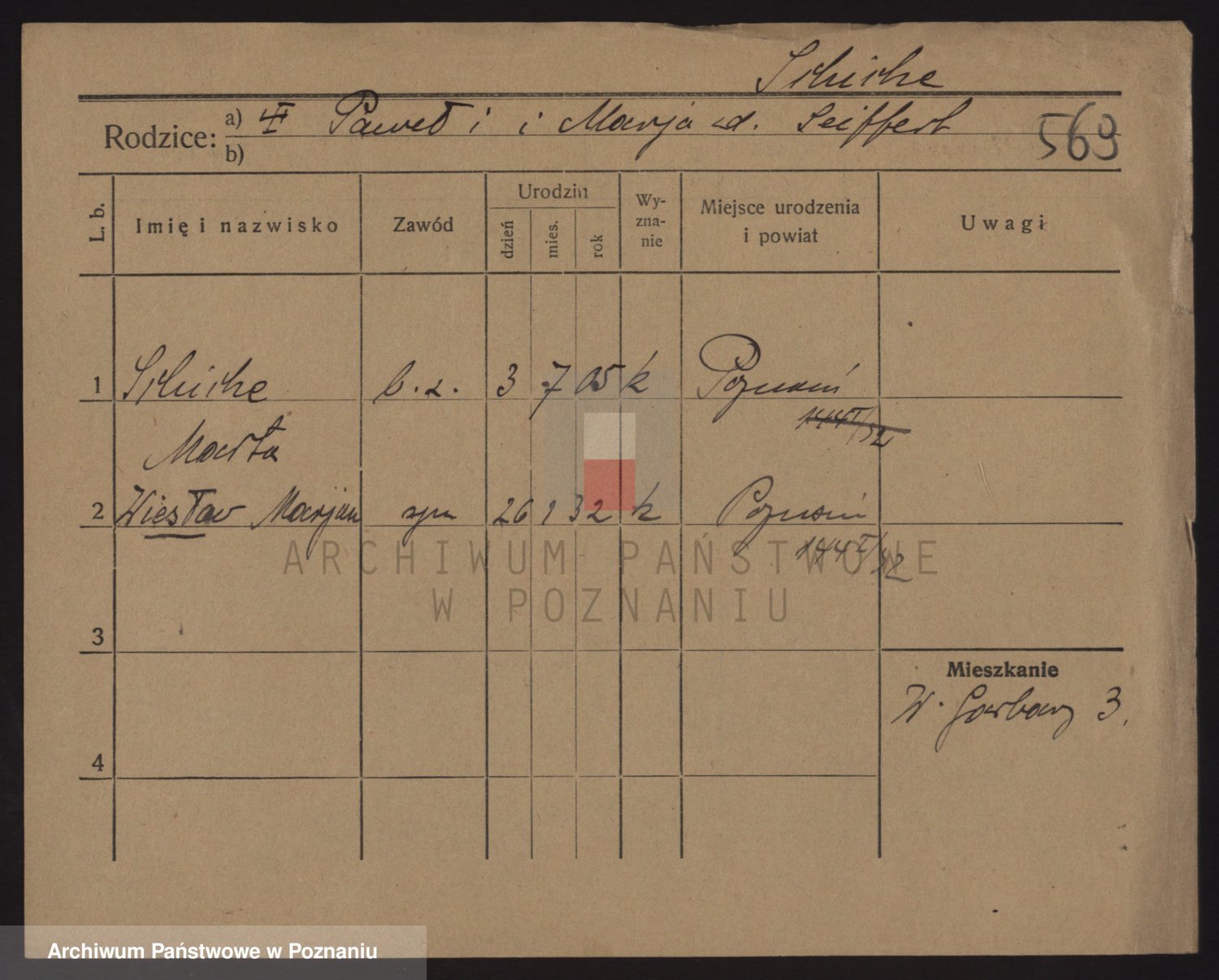 Podgląd karty osobowej dostępny jest po kliknięciu na nazwisko lub ikonkę karty. Można dokonywać powiększenia (ikony na górze) lub przechodzić między kolejnymi skanami (strzałki po bokach).