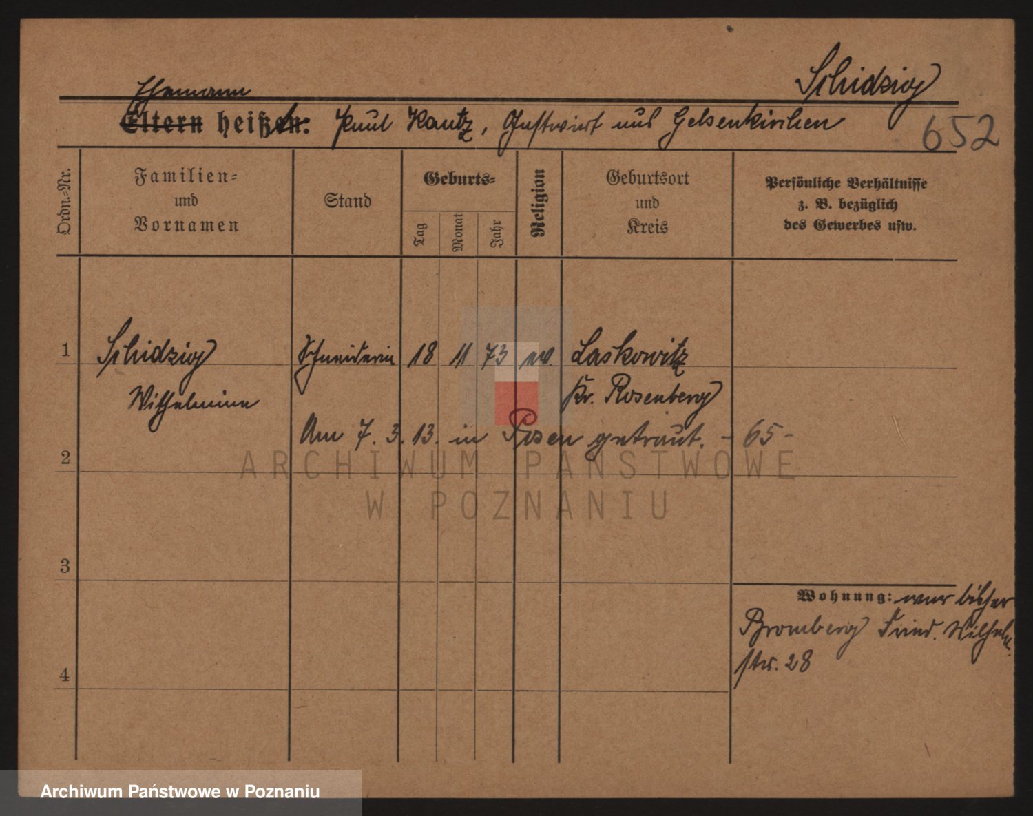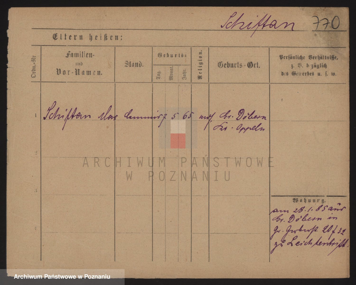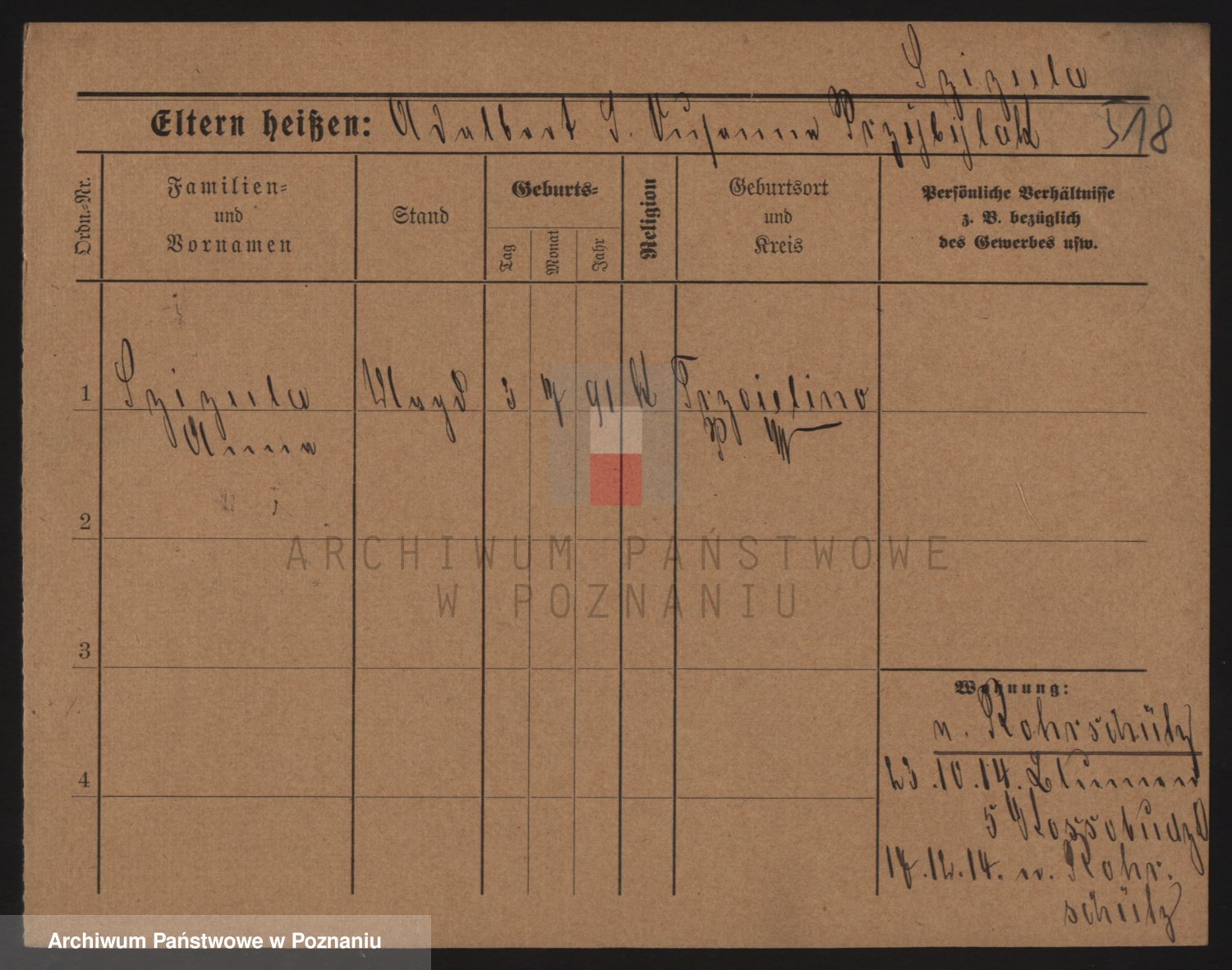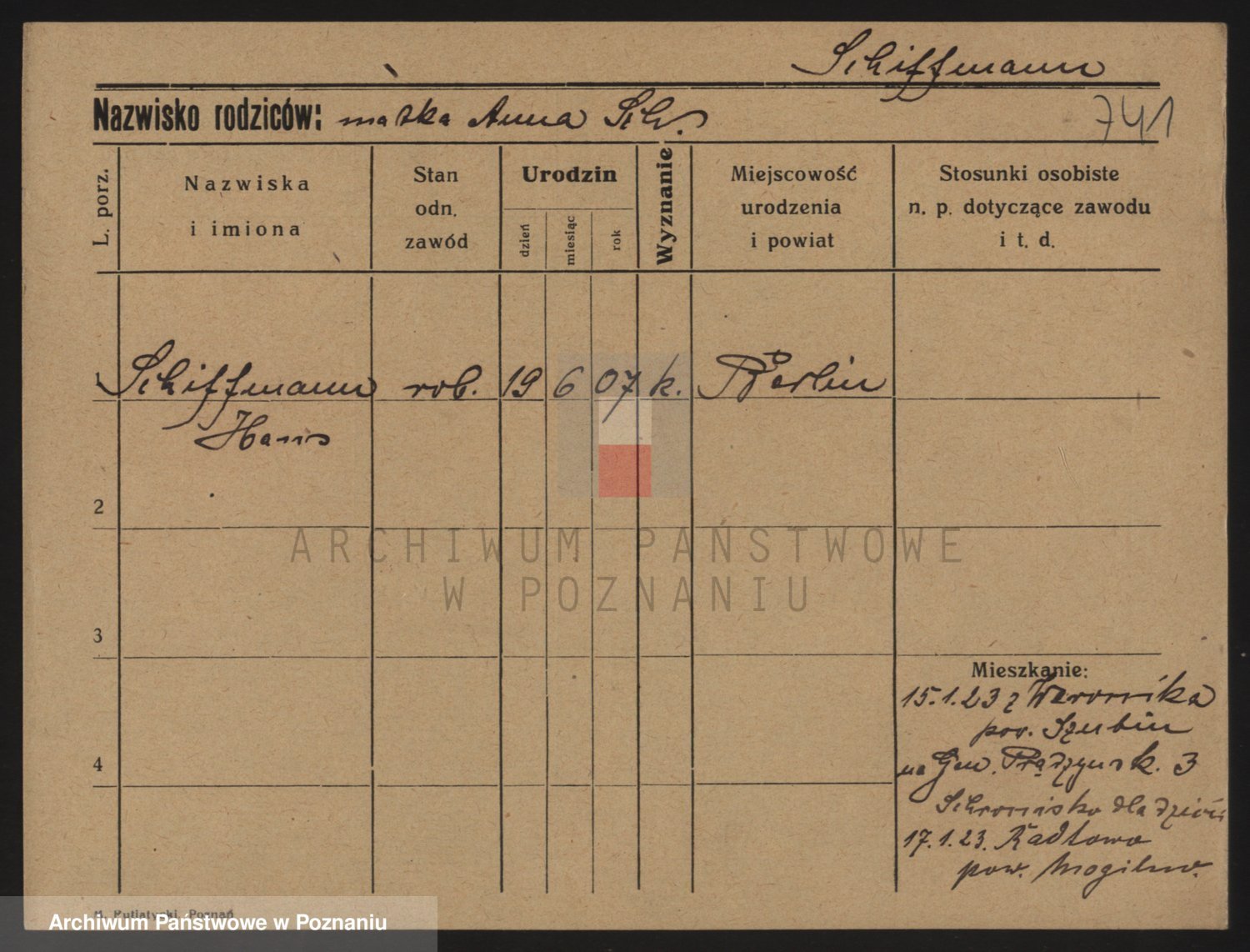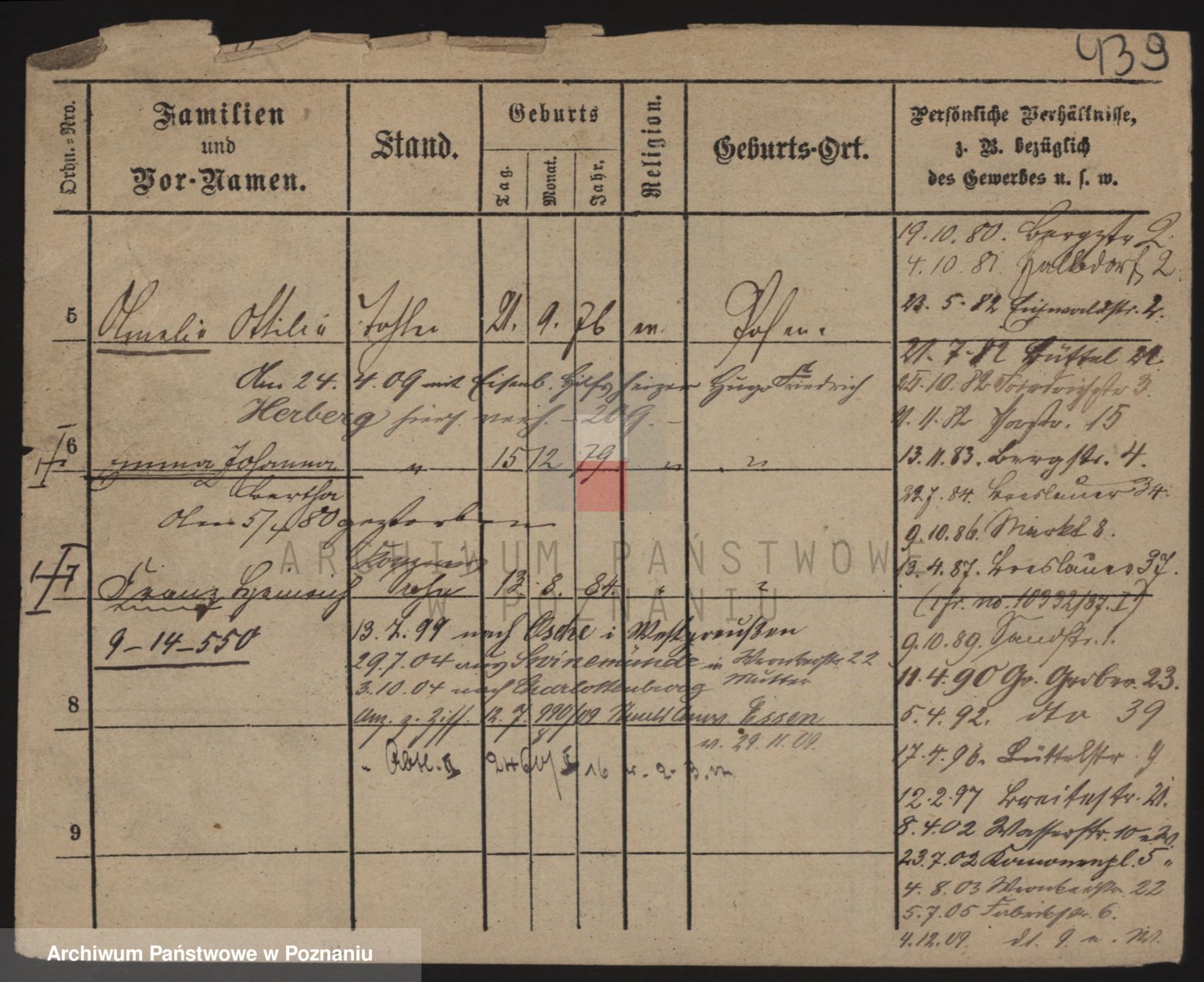Podgląd karty osobowej dostępny jest po kliknięciu na nazwisko lub ikonkę karty. Można dokonywać powiększenia (ikony na górze) lub przechodzić między kolejnymi skanami (strzałki po bokach).