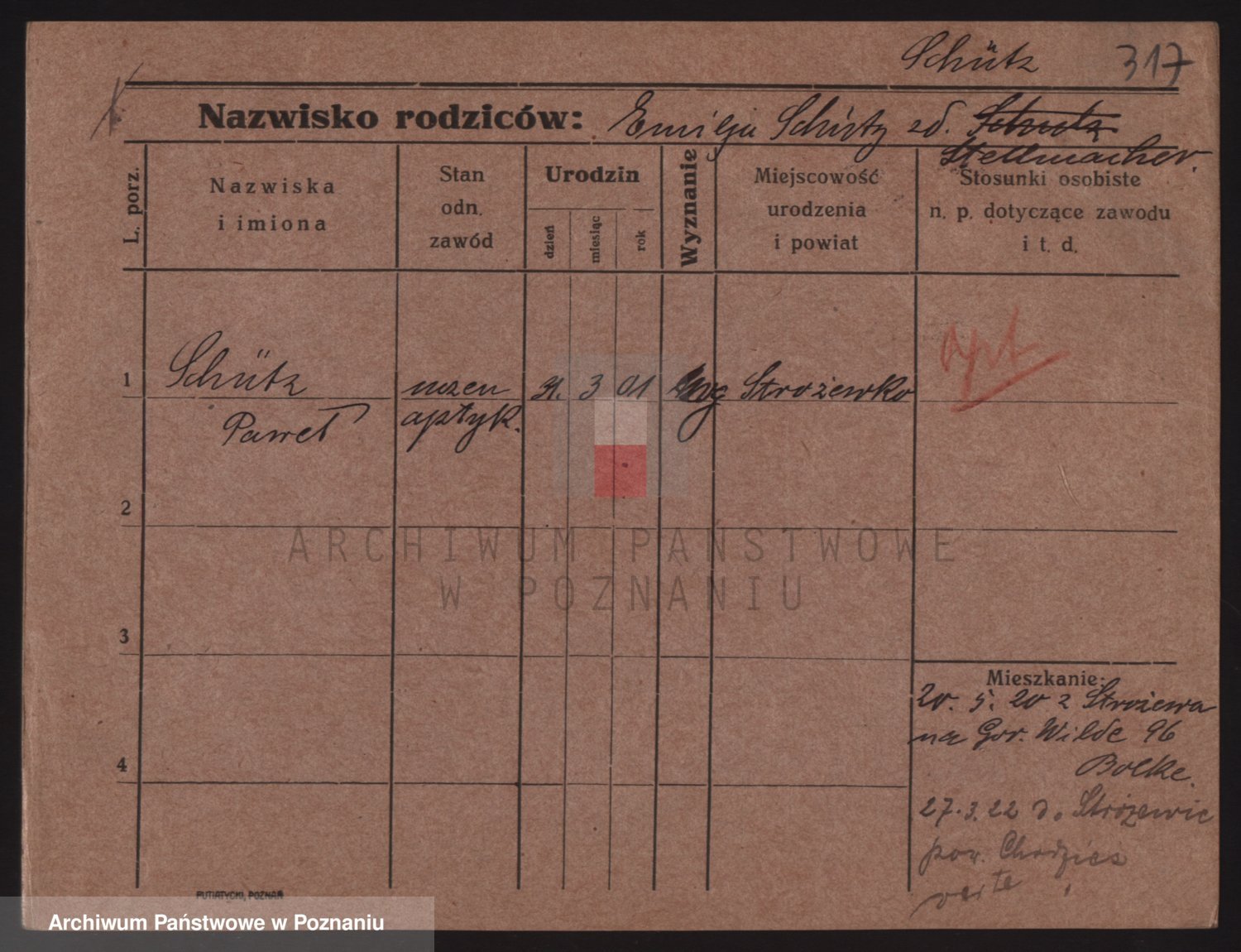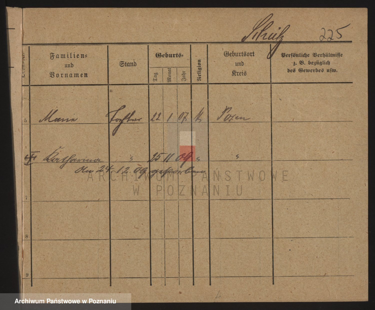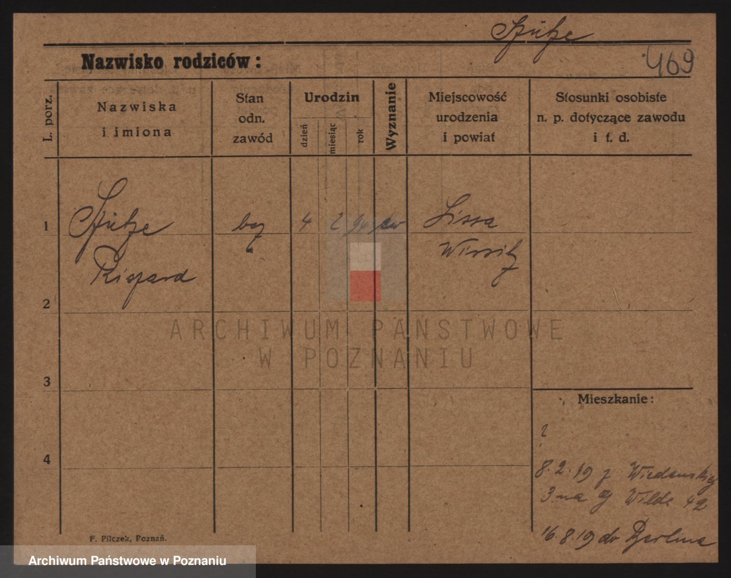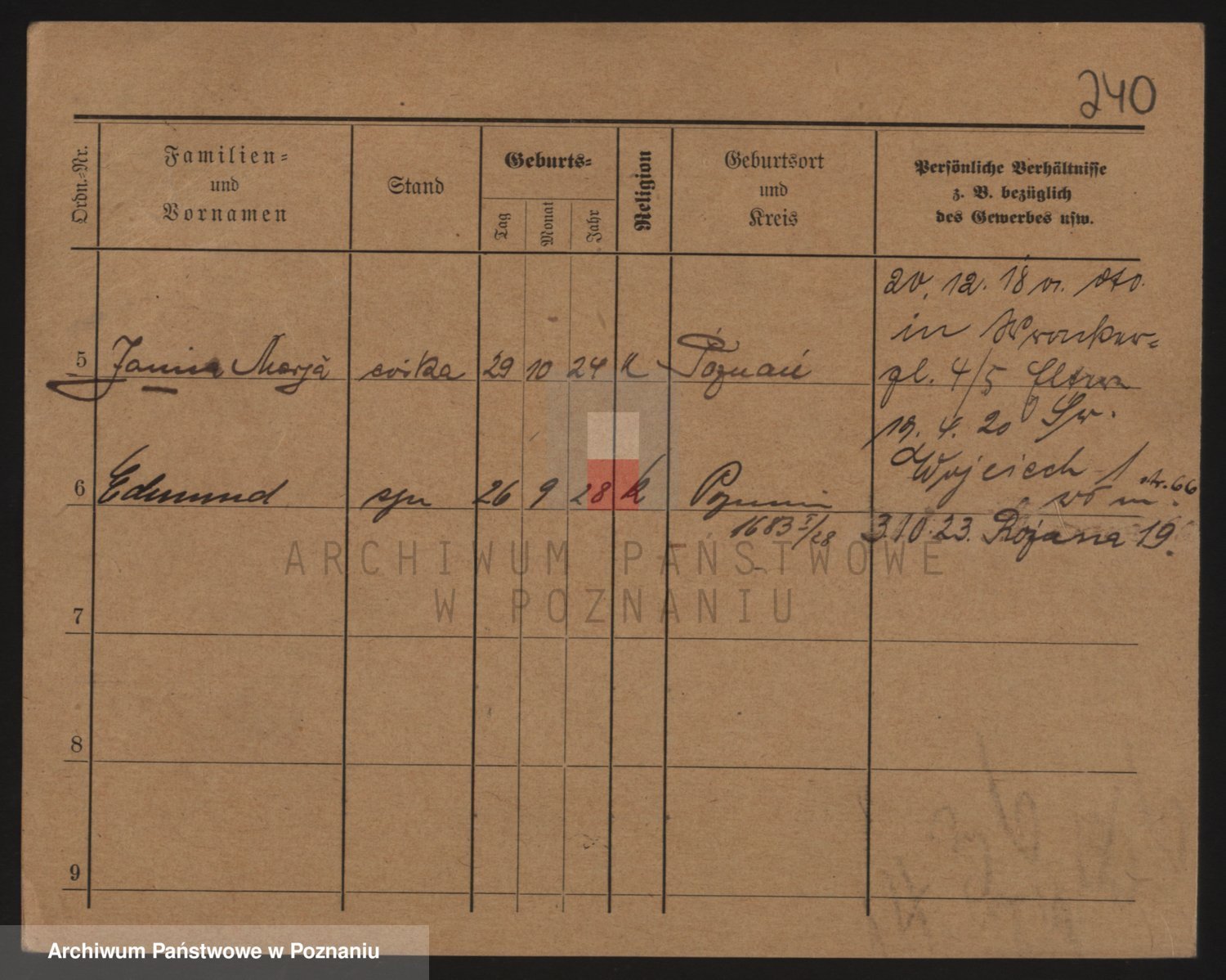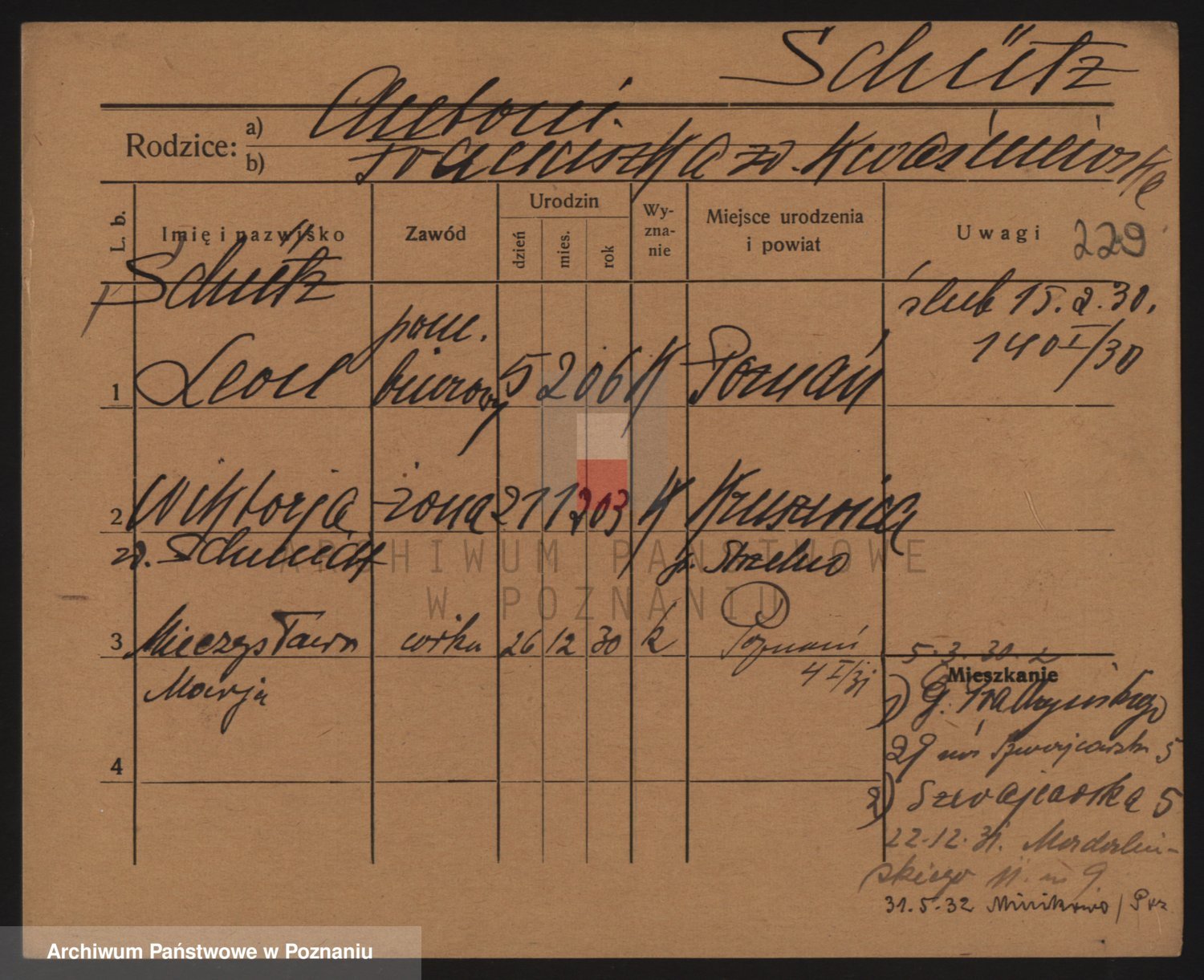 Podgląd karty osobowej dostępny jest po kliknięciu na nazwisko lub ikonkę karty. Można dokonywać powiększenia (ikony na górze) lub przechodzić między kolejnymi skanami (strzałki po bokach).