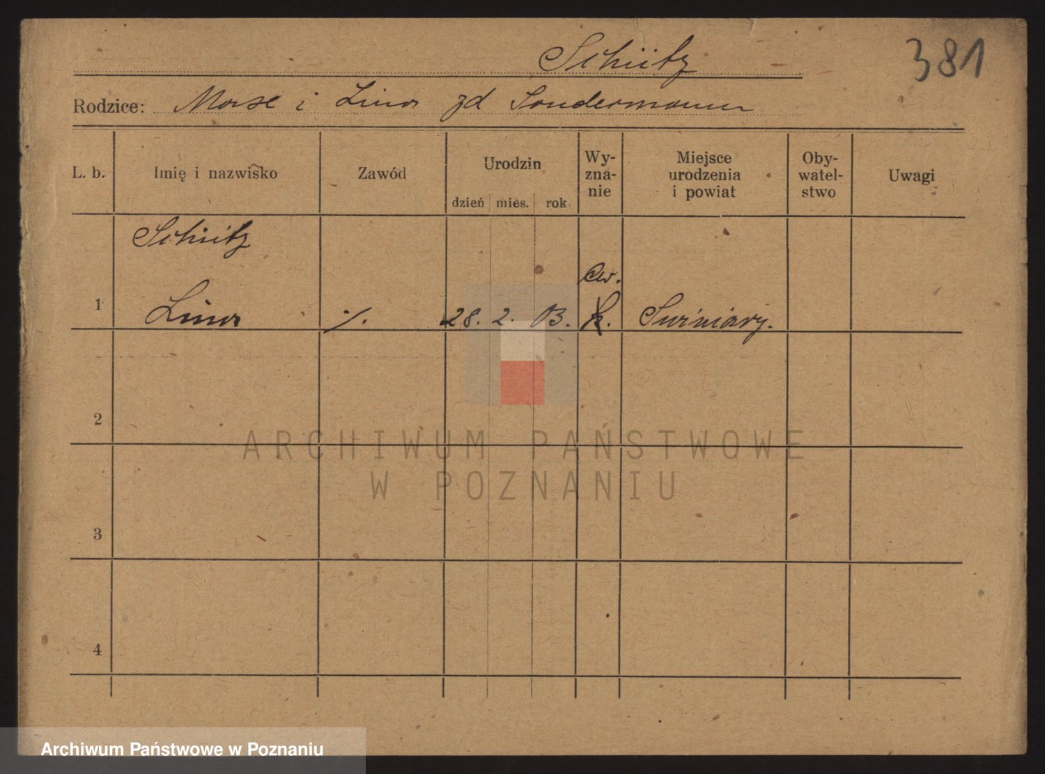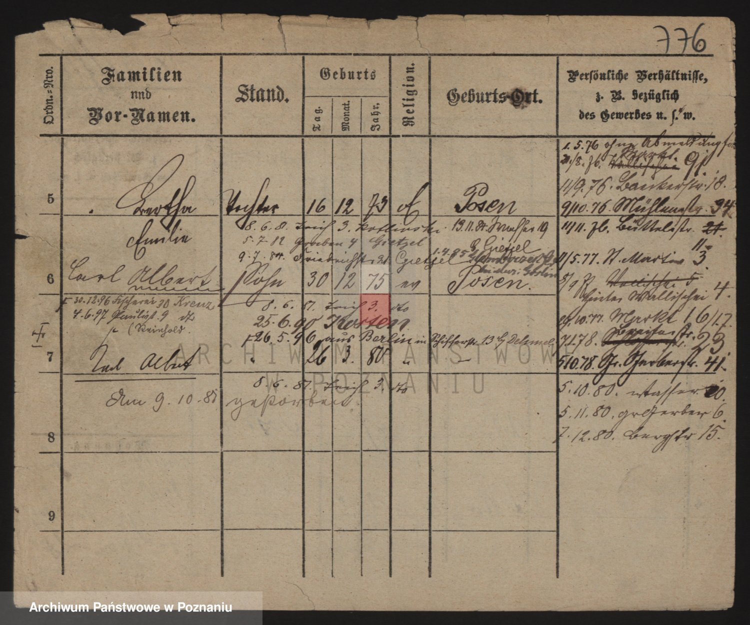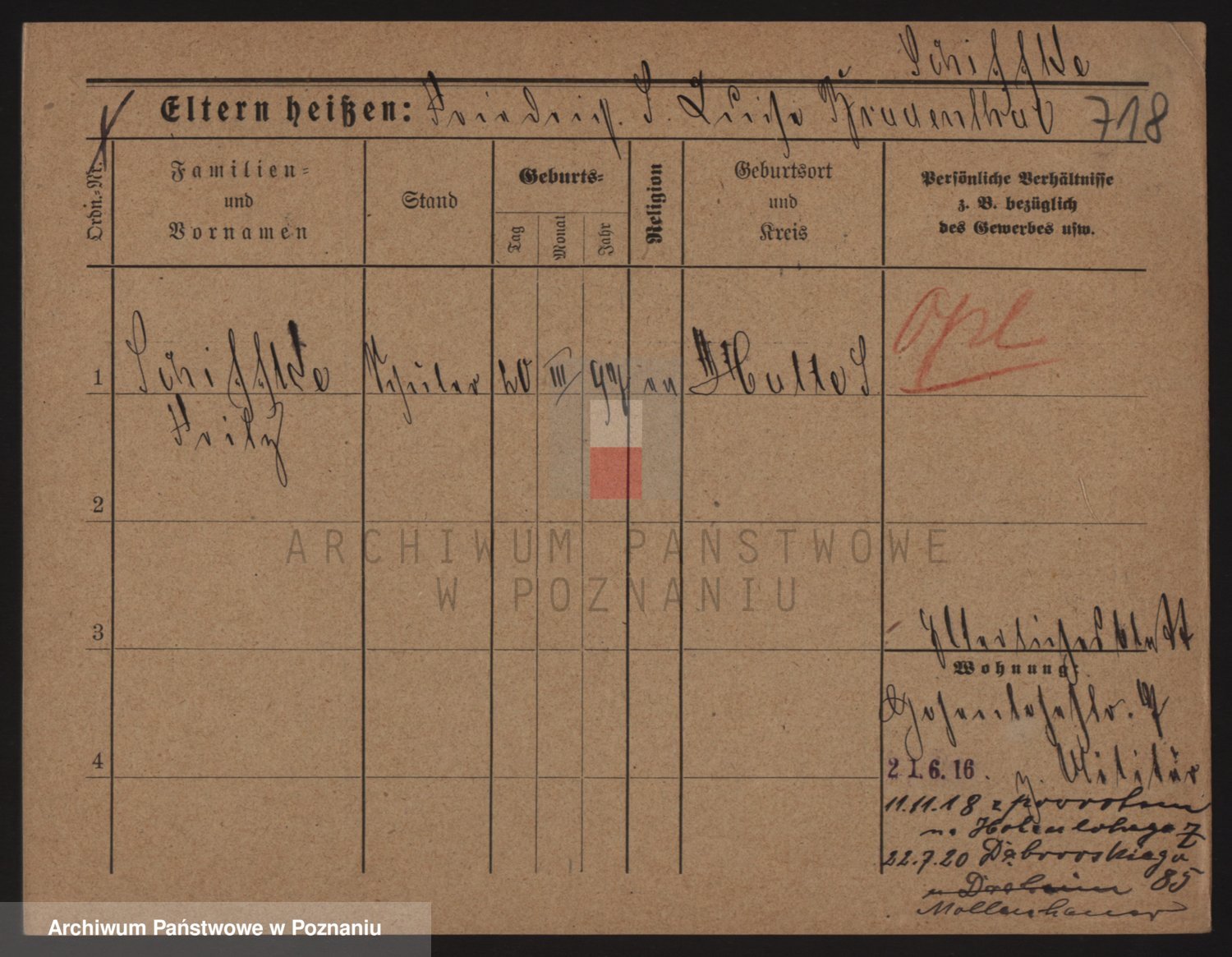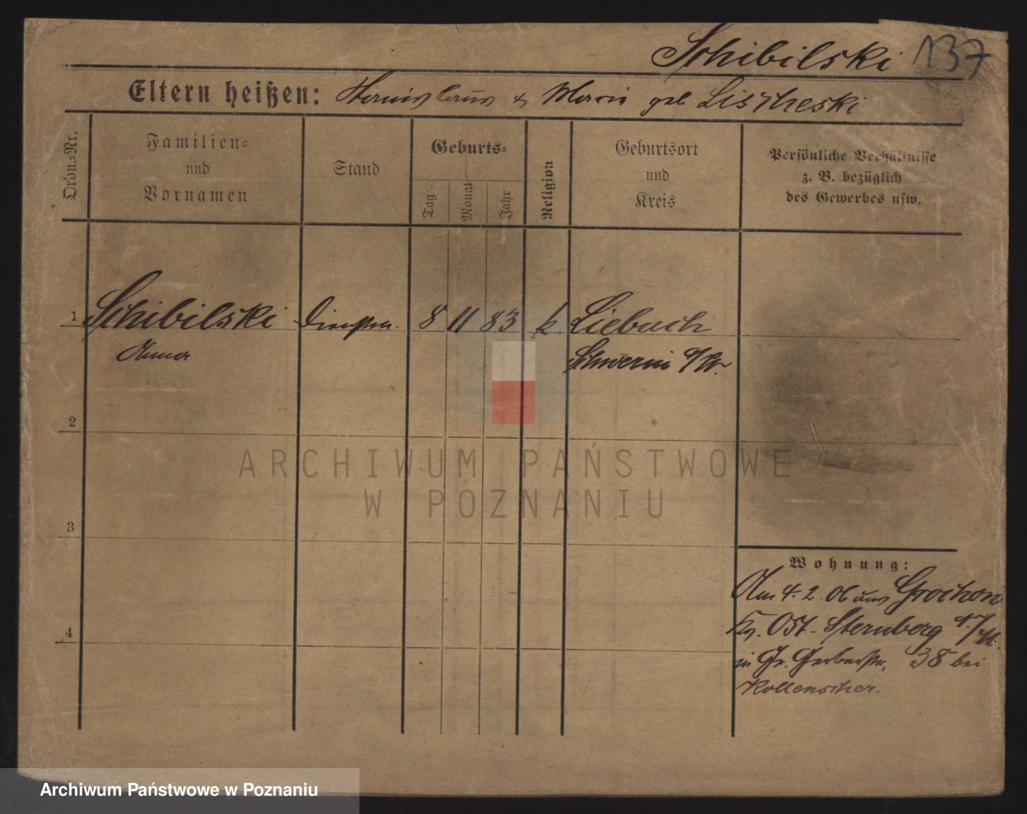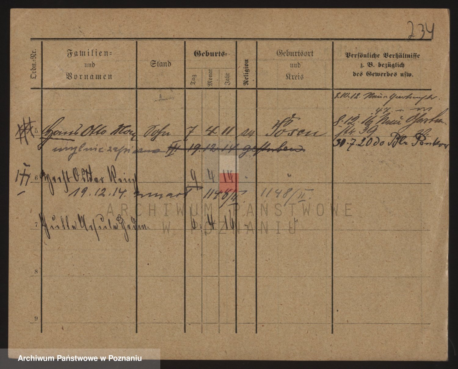 Podgląd karty osobowej dostępny jest po kliknięciu na nazwisko lub ikonkę karty. Można dokonywać powiększenia (ikony na górze) lub przechodzić między kolejnymi skanami (strzałki po bokach).
