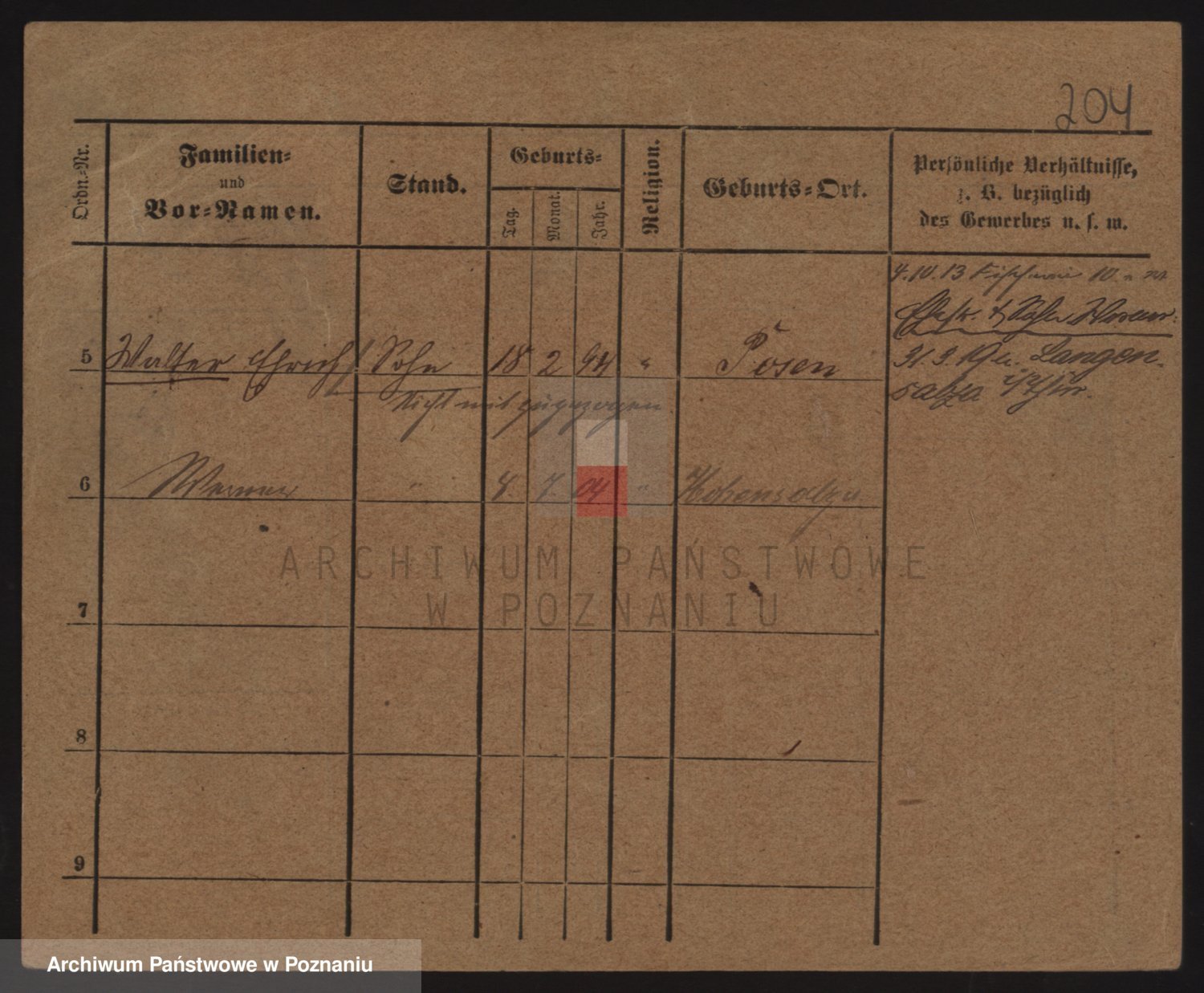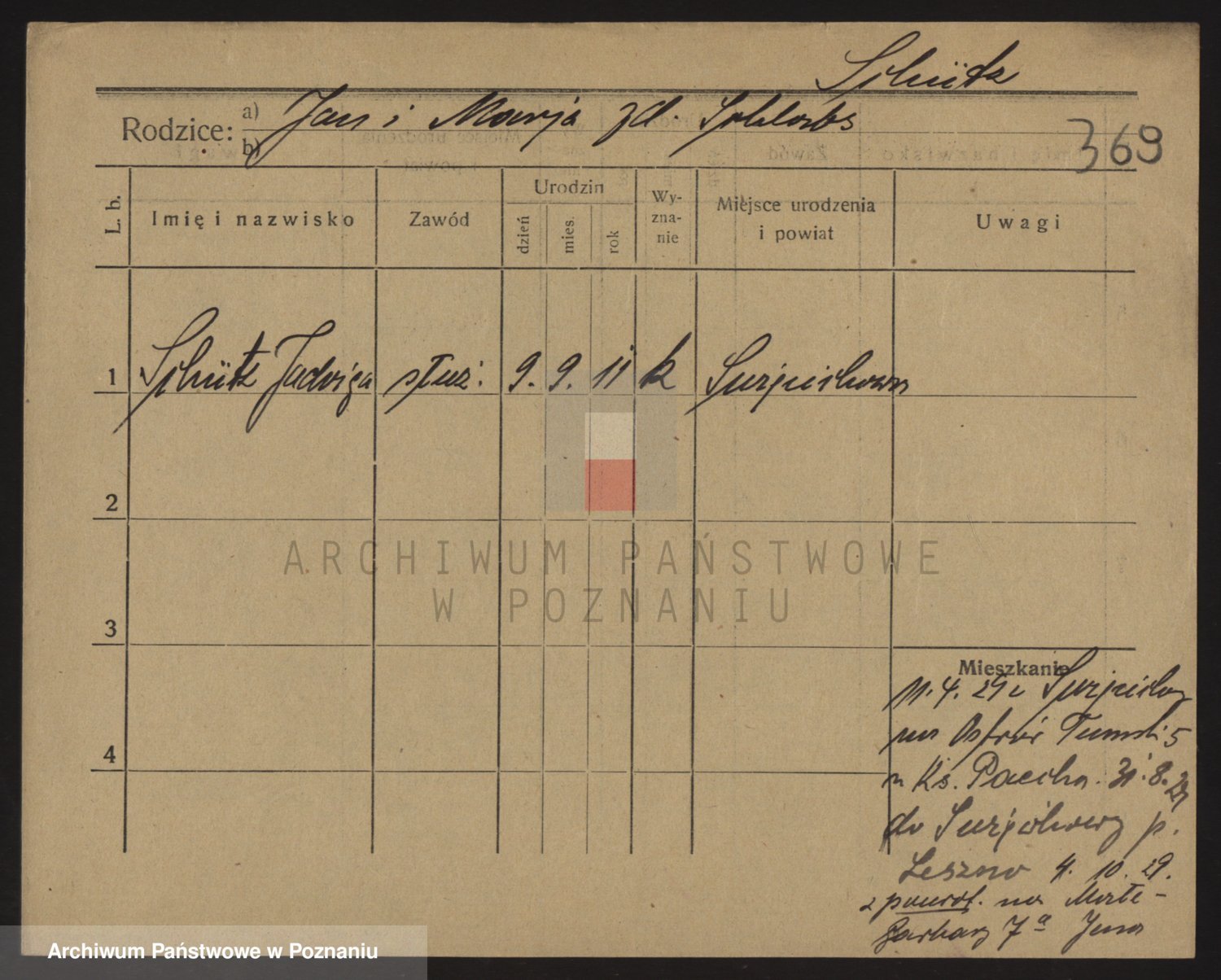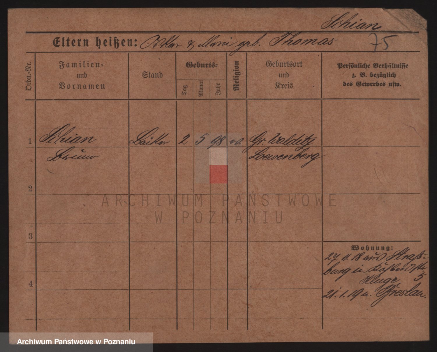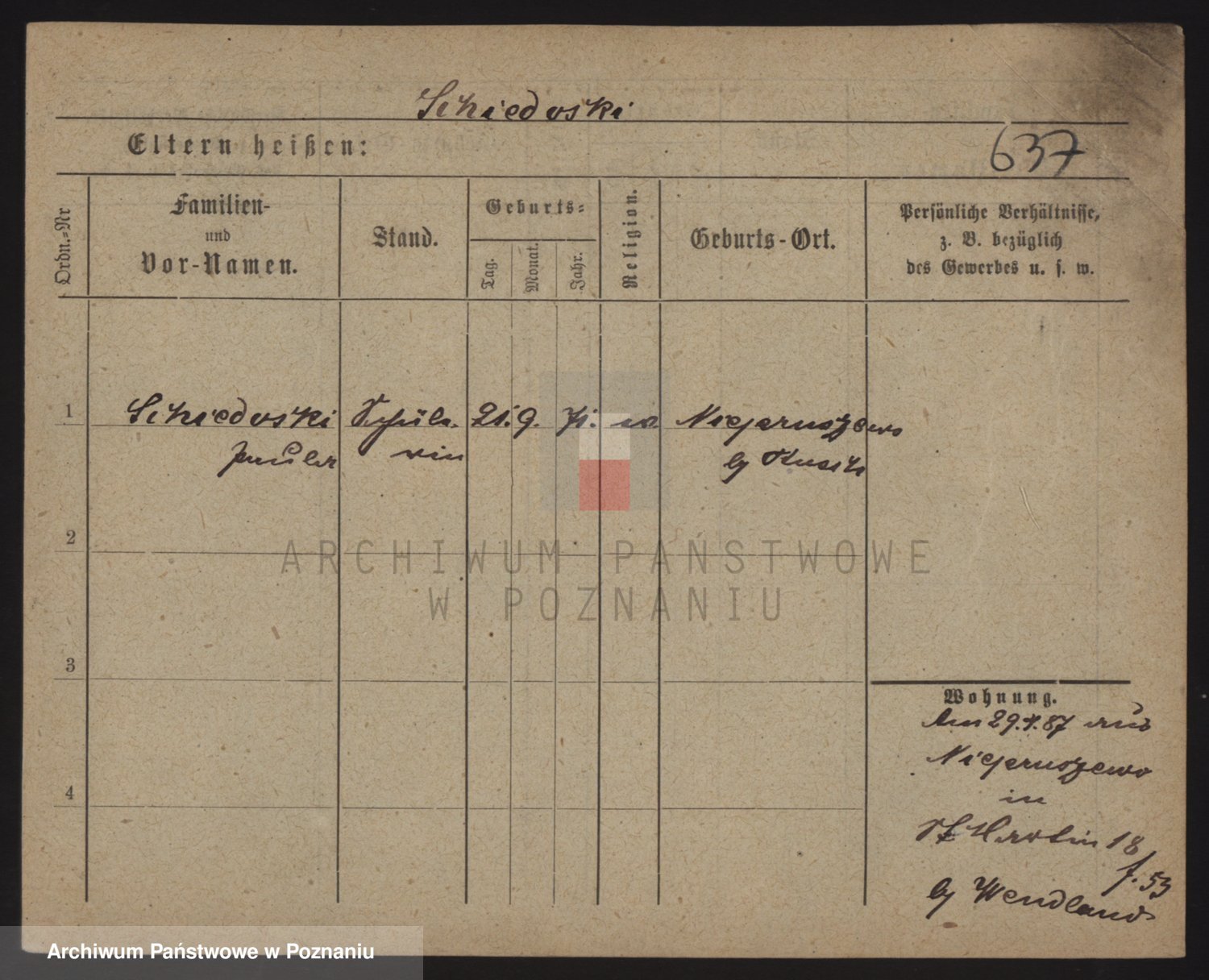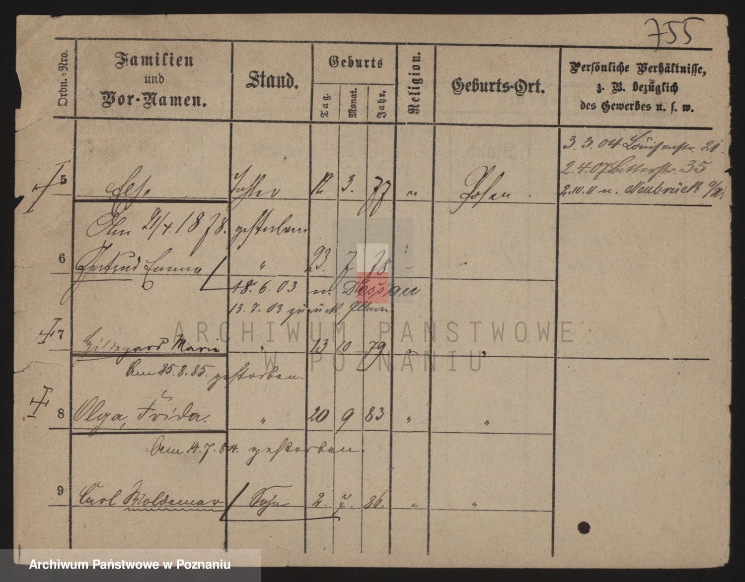 Podgląd karty osobowej dostępny jest po kliknięciu na nazwisko lub ikonkę karty. Można dokonywać powiększenia (ikony na górze) lub przechodzić między kolejnymi skanami (strzałki po bokach).