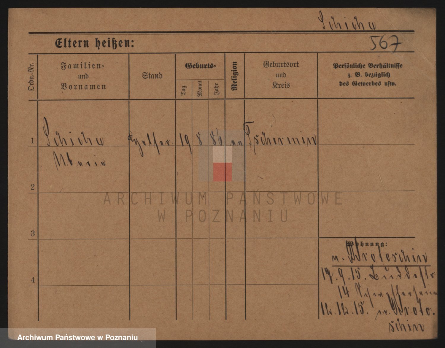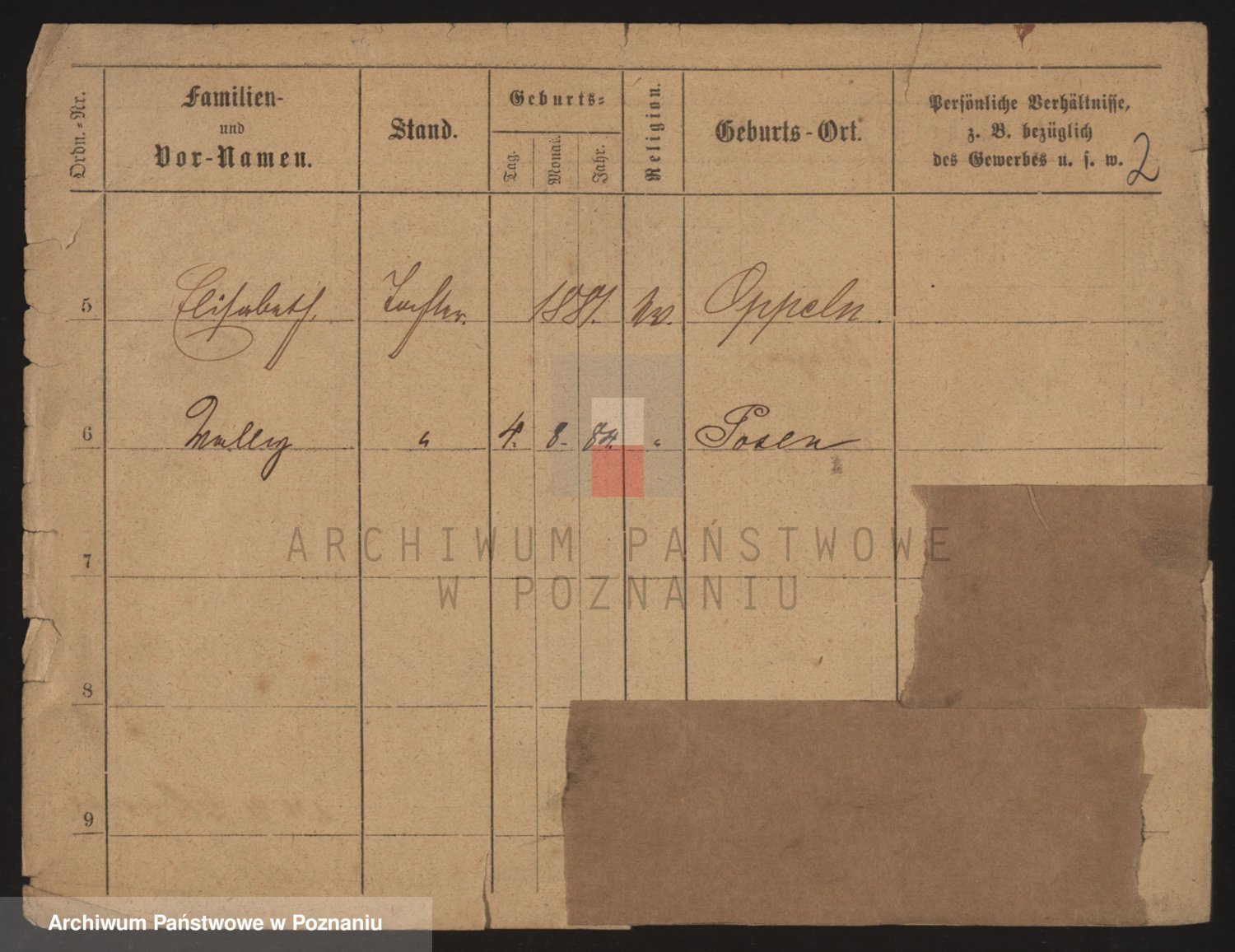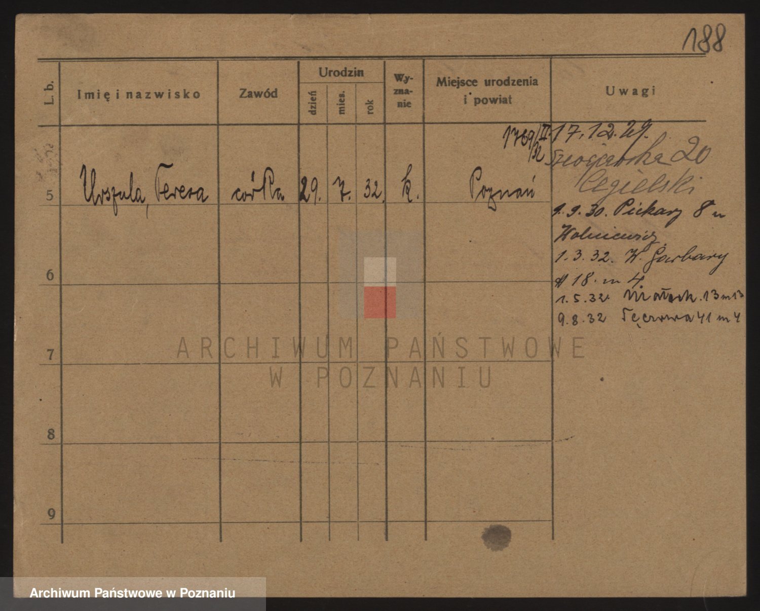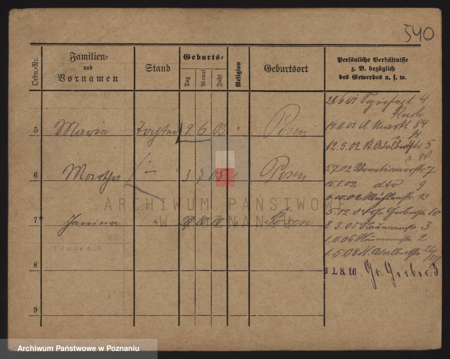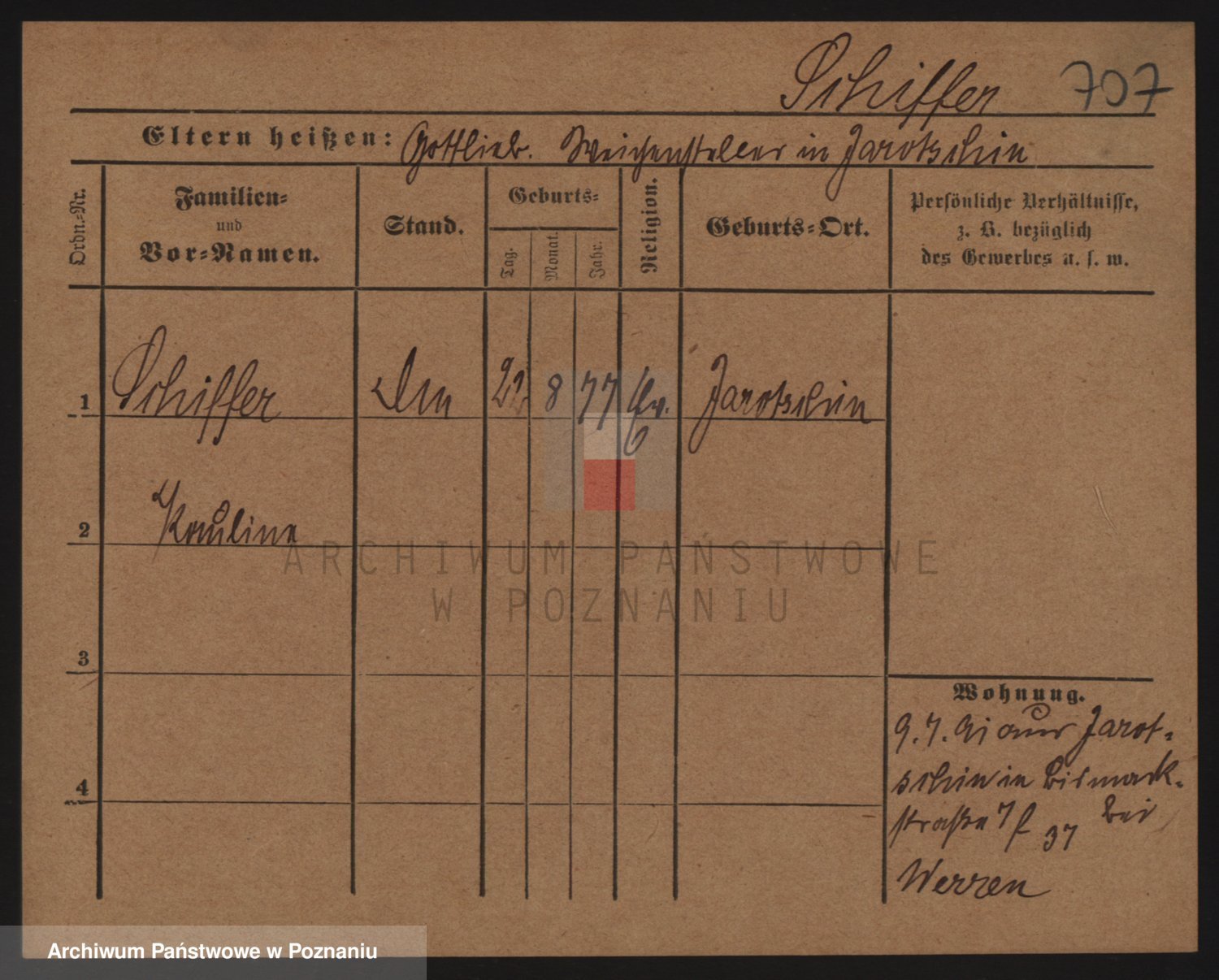 Podgląd karty osobowej dostępny jest po kliknięciu na nazwisko lub ikonkę karty. Można dokonywać powiększenia (ikony na górze) lub przechodzić między kolejnymi skanami (strzałki po bokach).