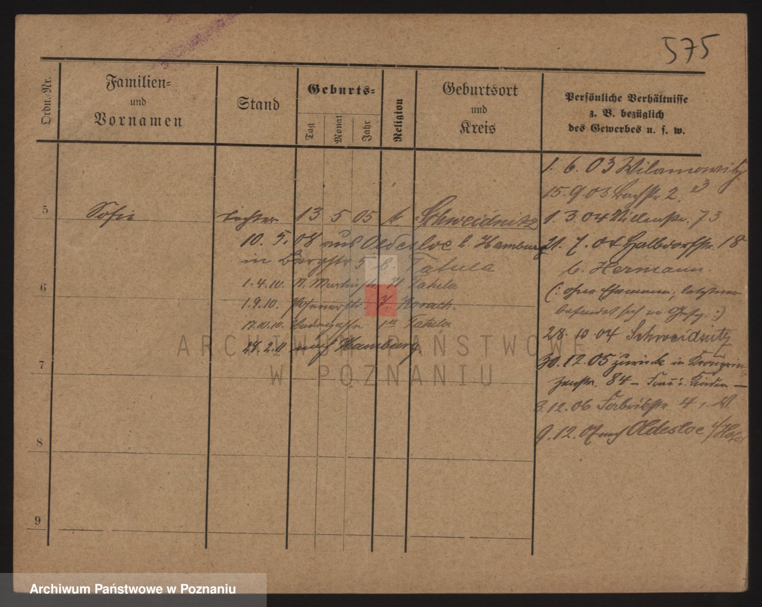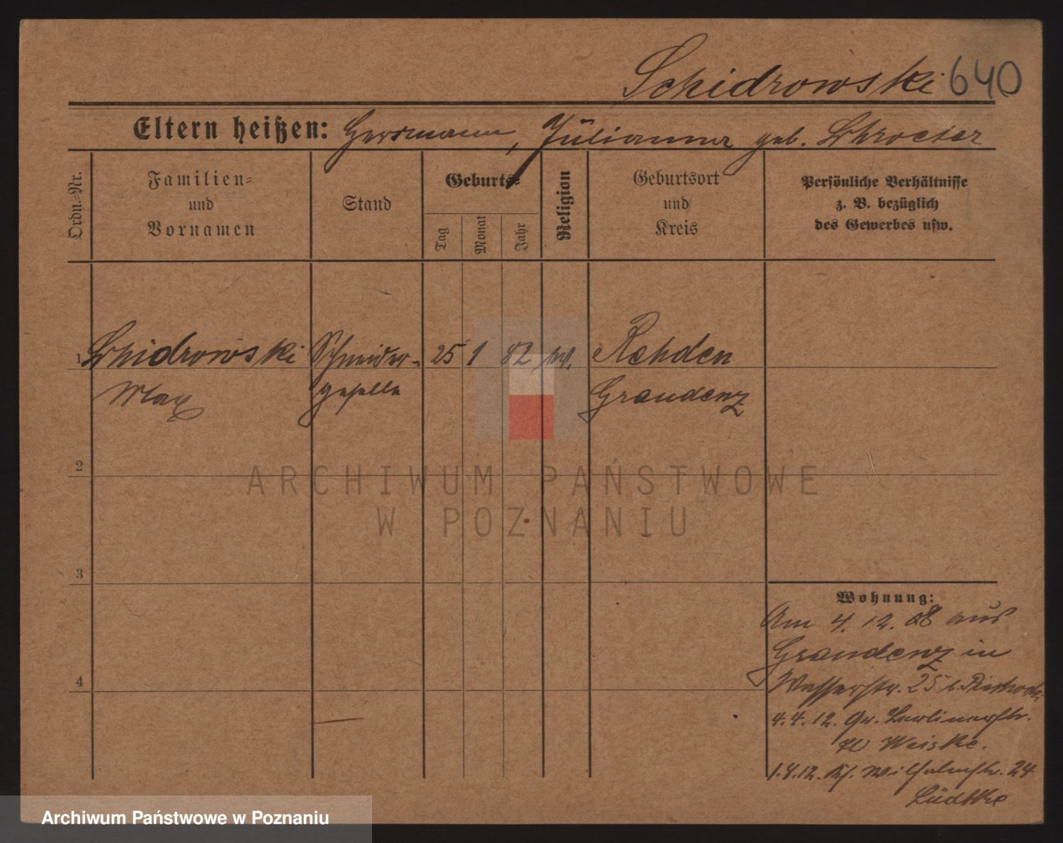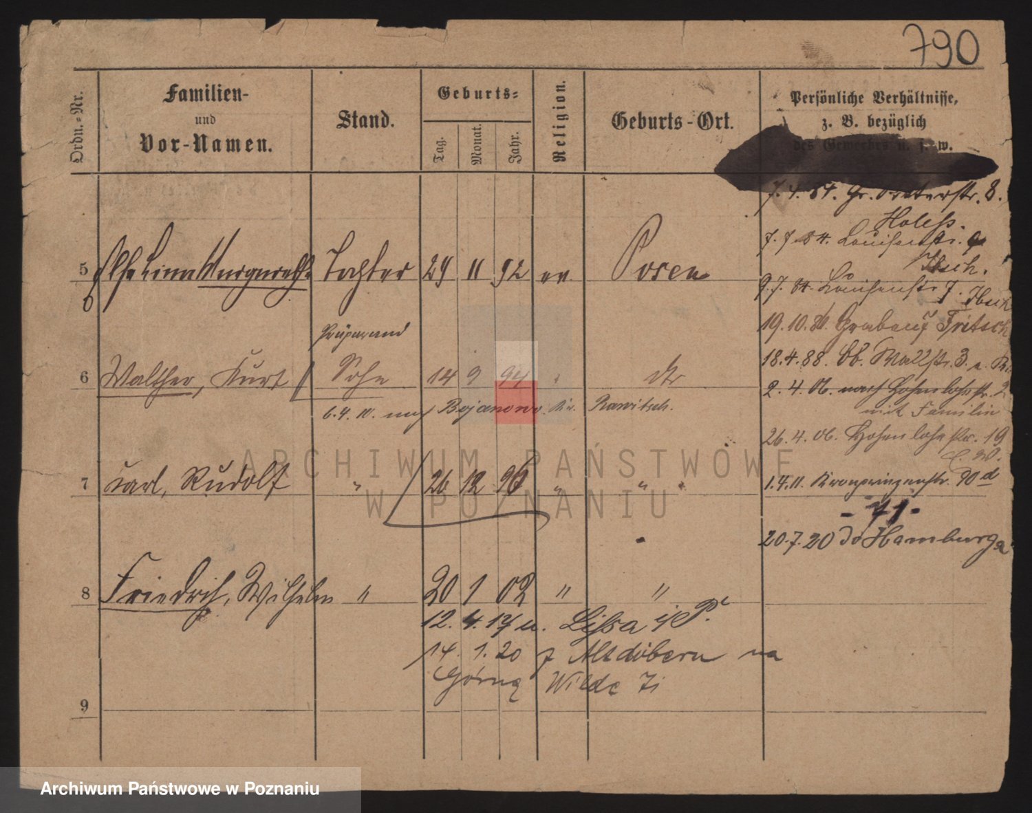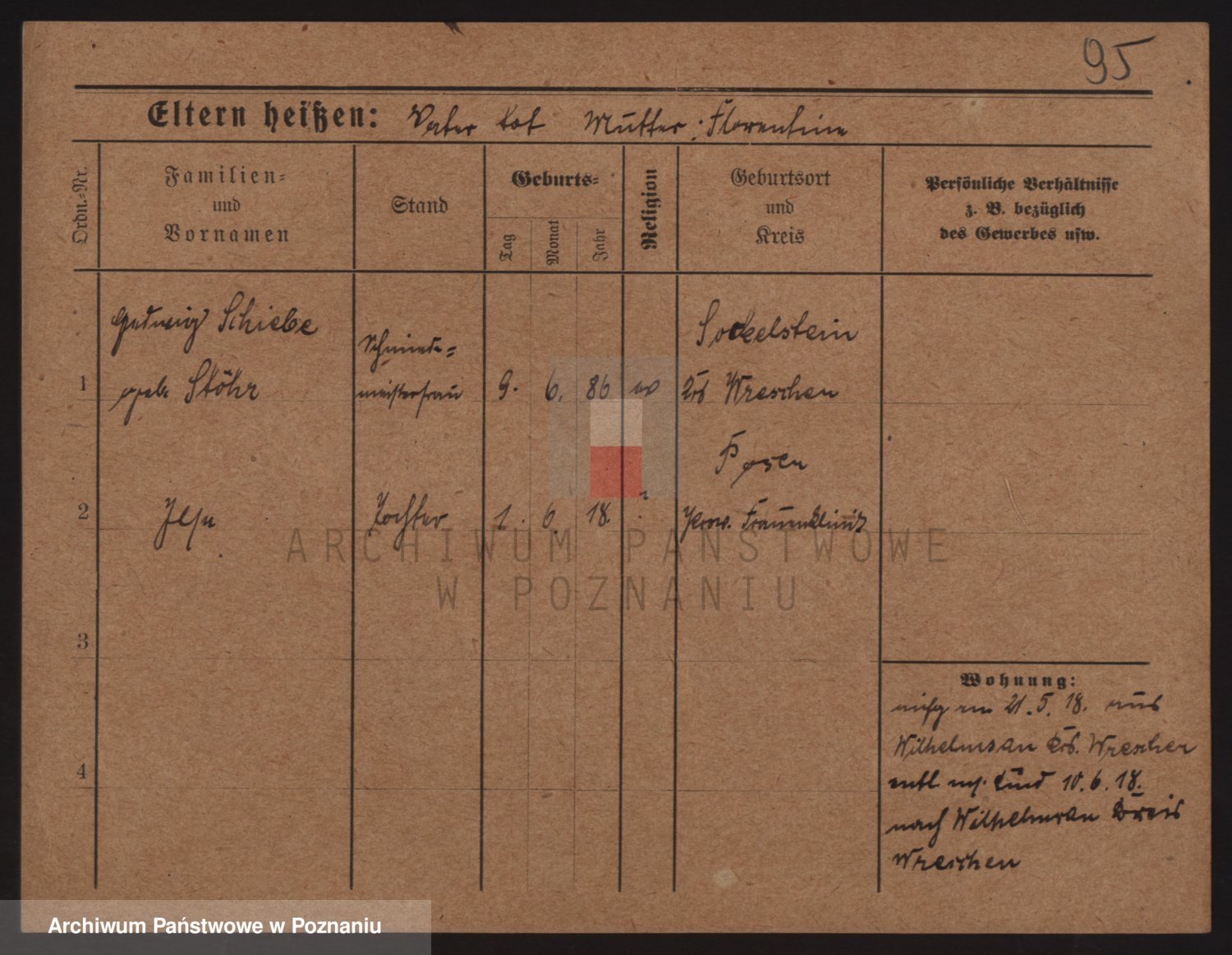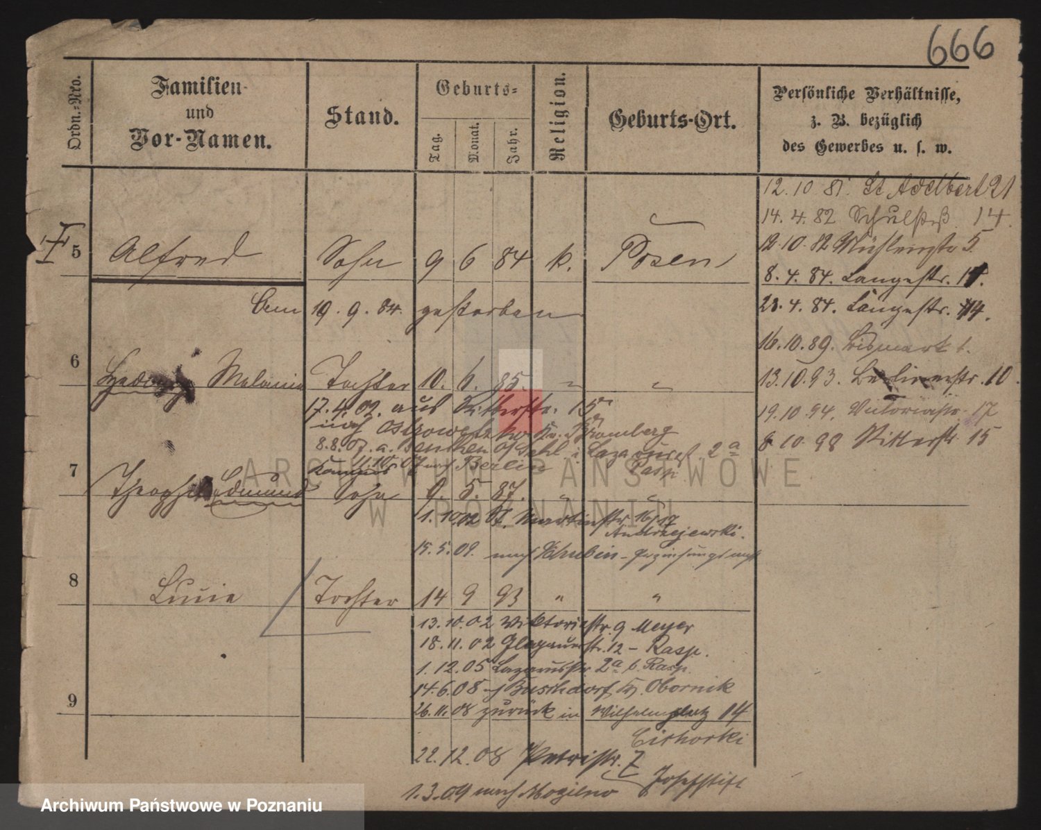 Podgląd karty osobowej dostępny jest po kliknięciu na nazwisko lub ikonkę karty. Można dokonywać powiększenia (ikony na górze) lub przechodzić między kolejnymi skanami (strzałki po bokach).