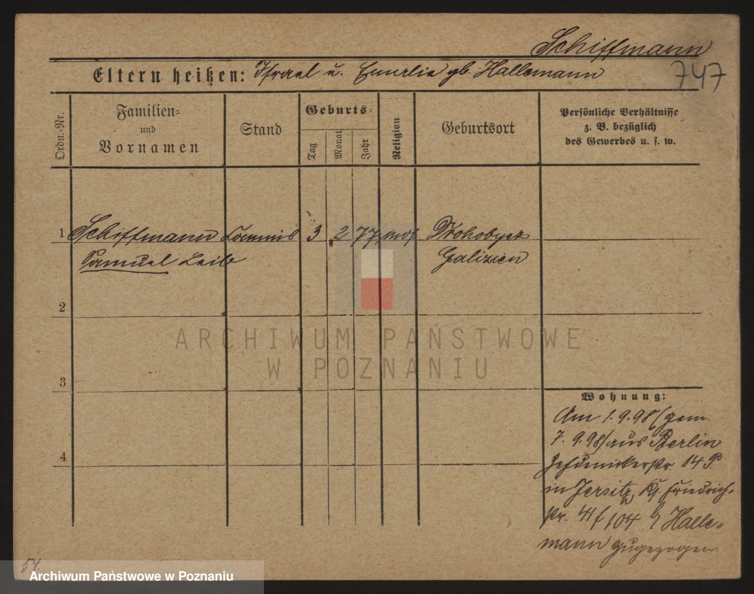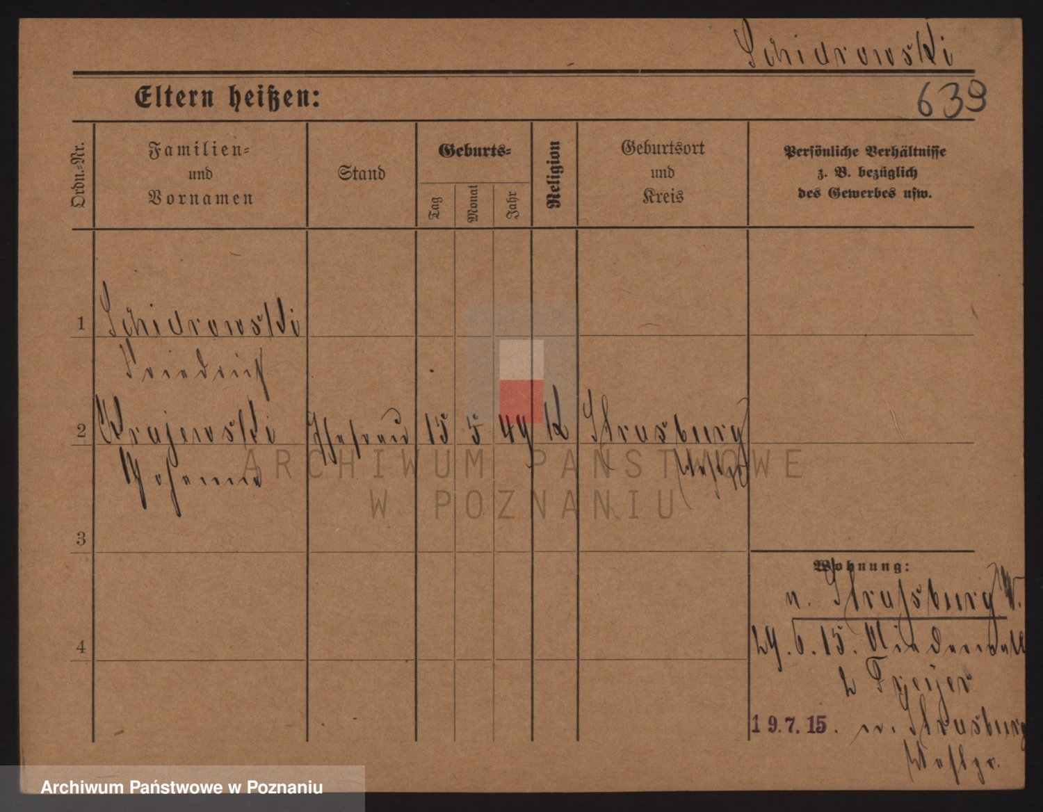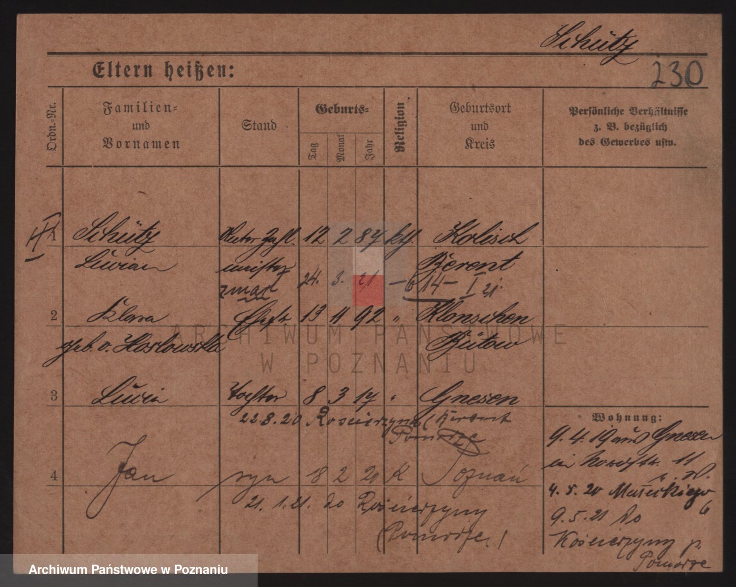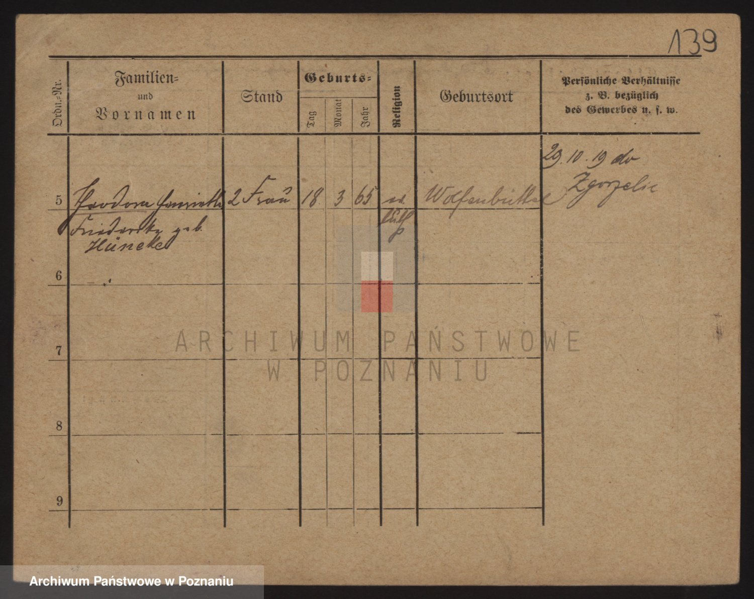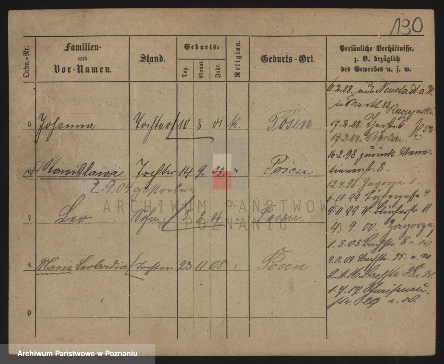 Podgląd karty osobowej dostępny jest po kliknięciu na nazwisko lub ikonkę karty. Można dokonywać powiększenia (ikony na górze) lub przechodzić między kolejnymi skanami (strzałki po bokach).