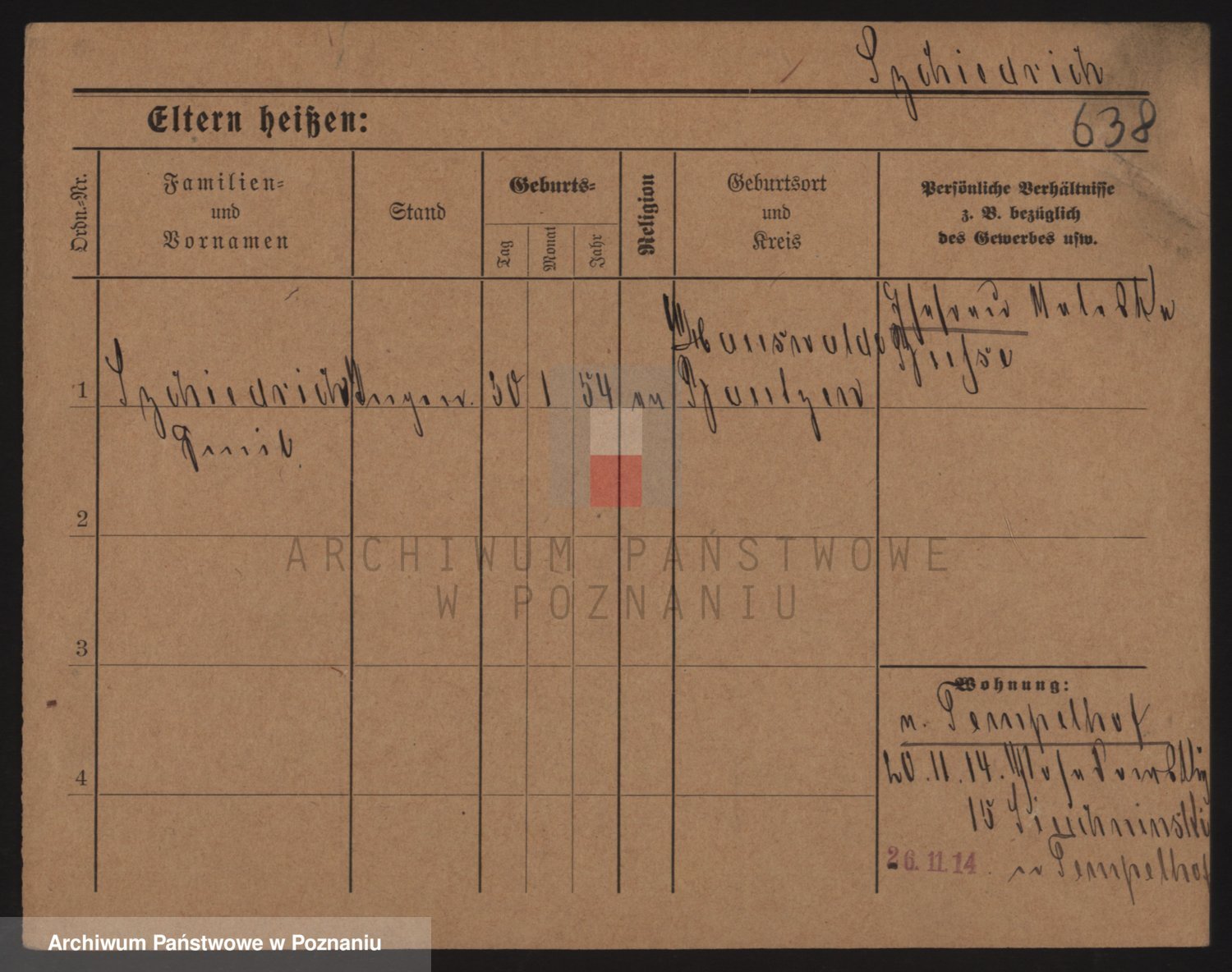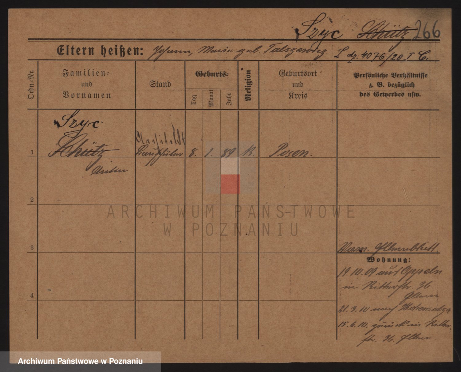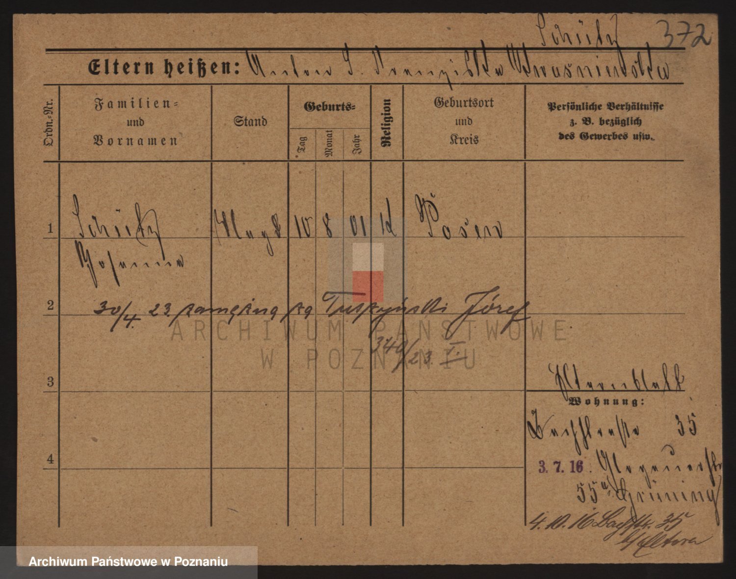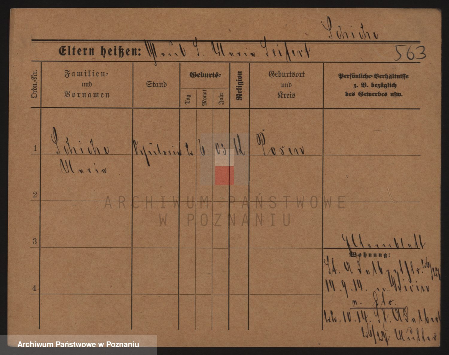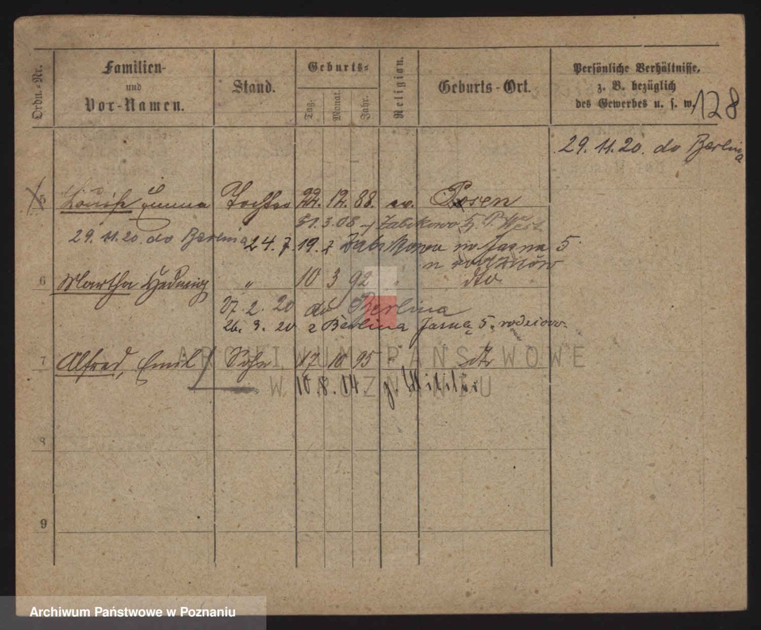 Podgląd karty osobowej dostępny jest po kliknięciu na nazwisko lub ikonkę karty. Można dokonywać powiększenia (ikony na górze) lub przechodzić między kolejnymi skanami (strzałki po bokach).