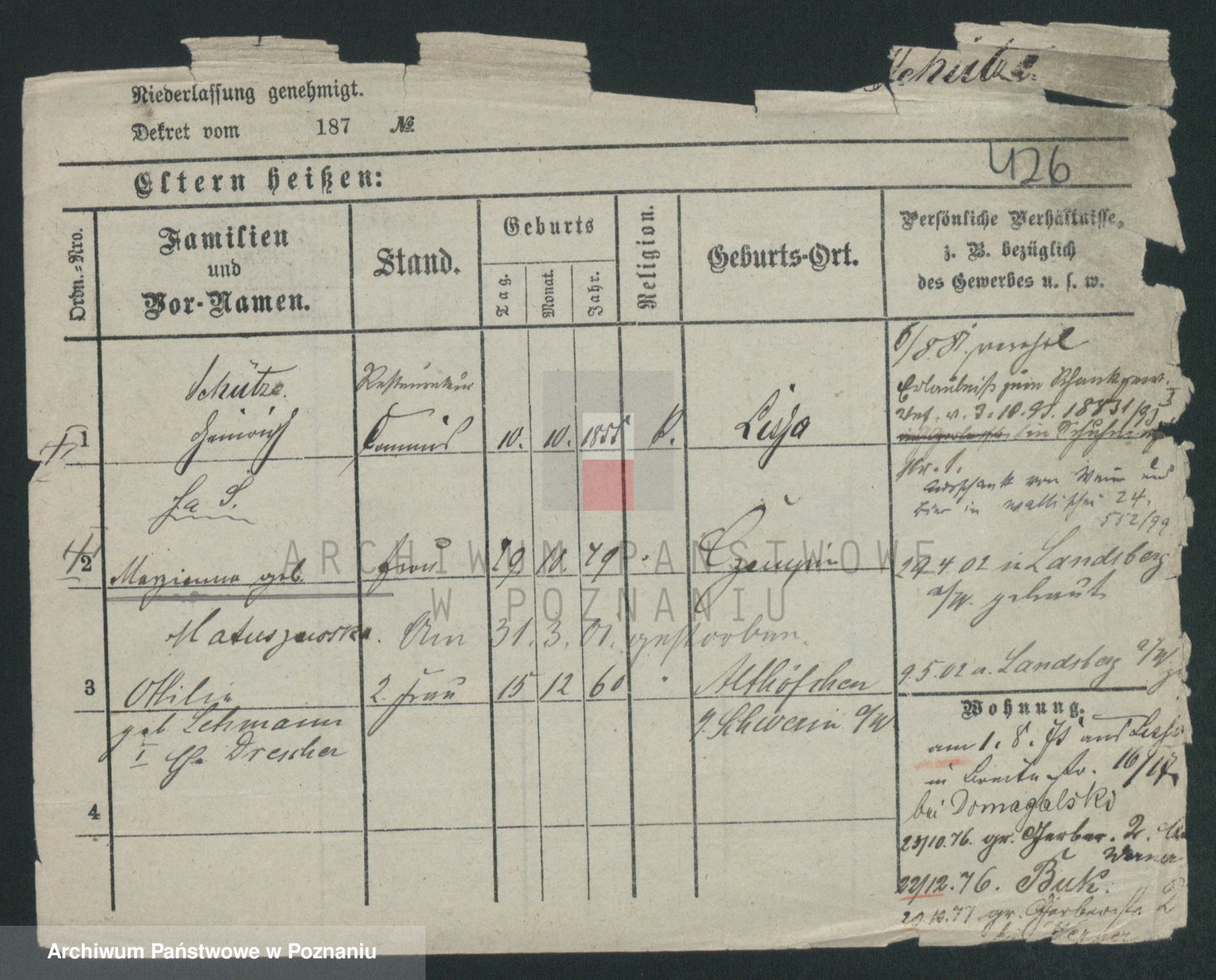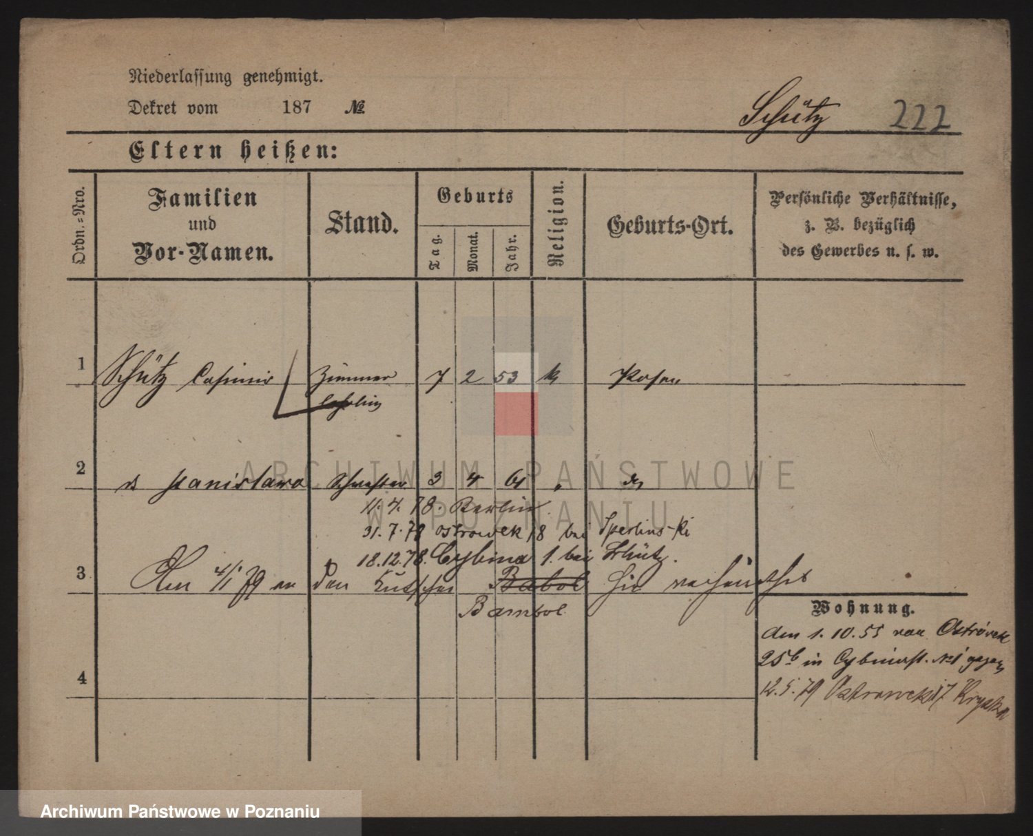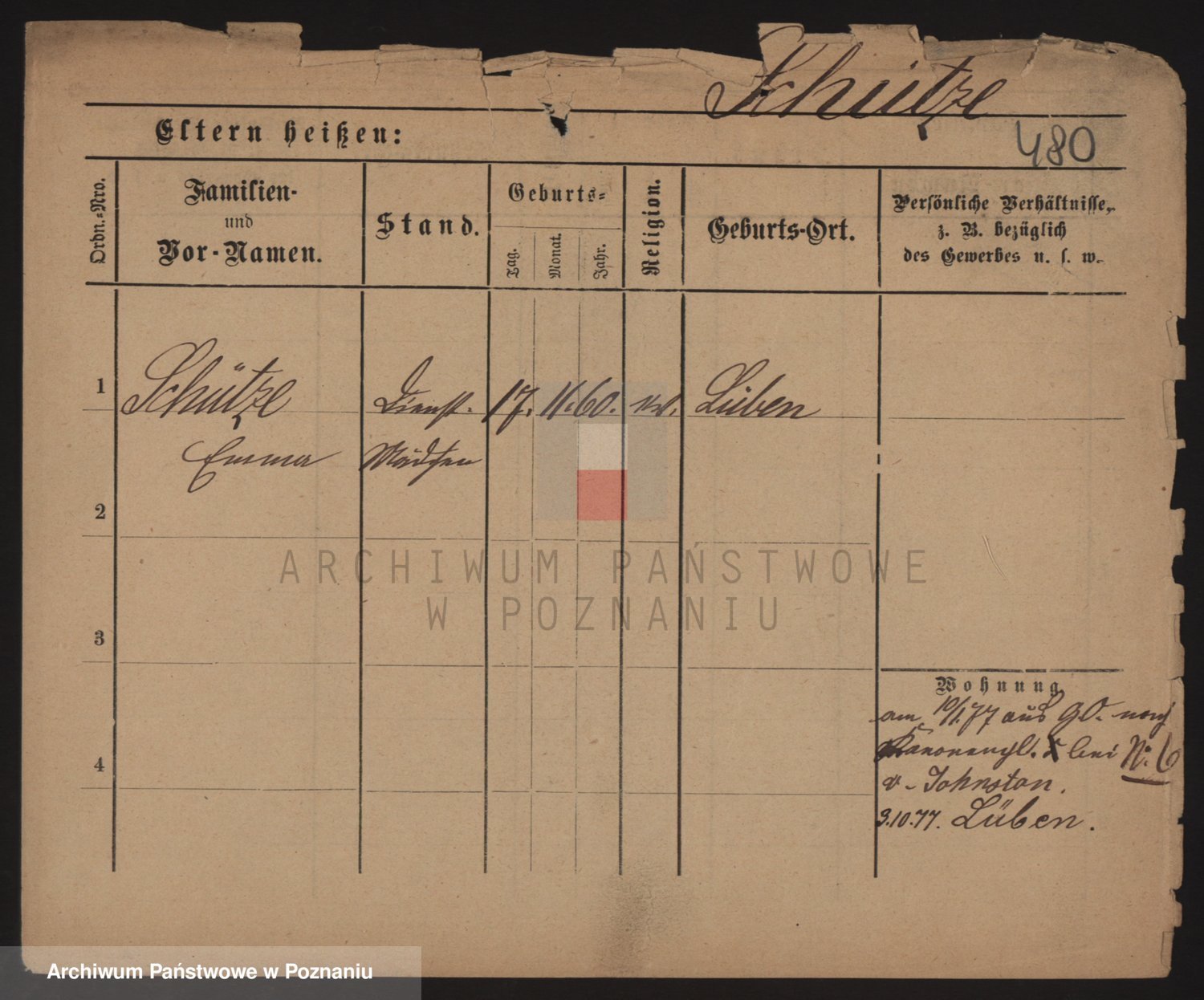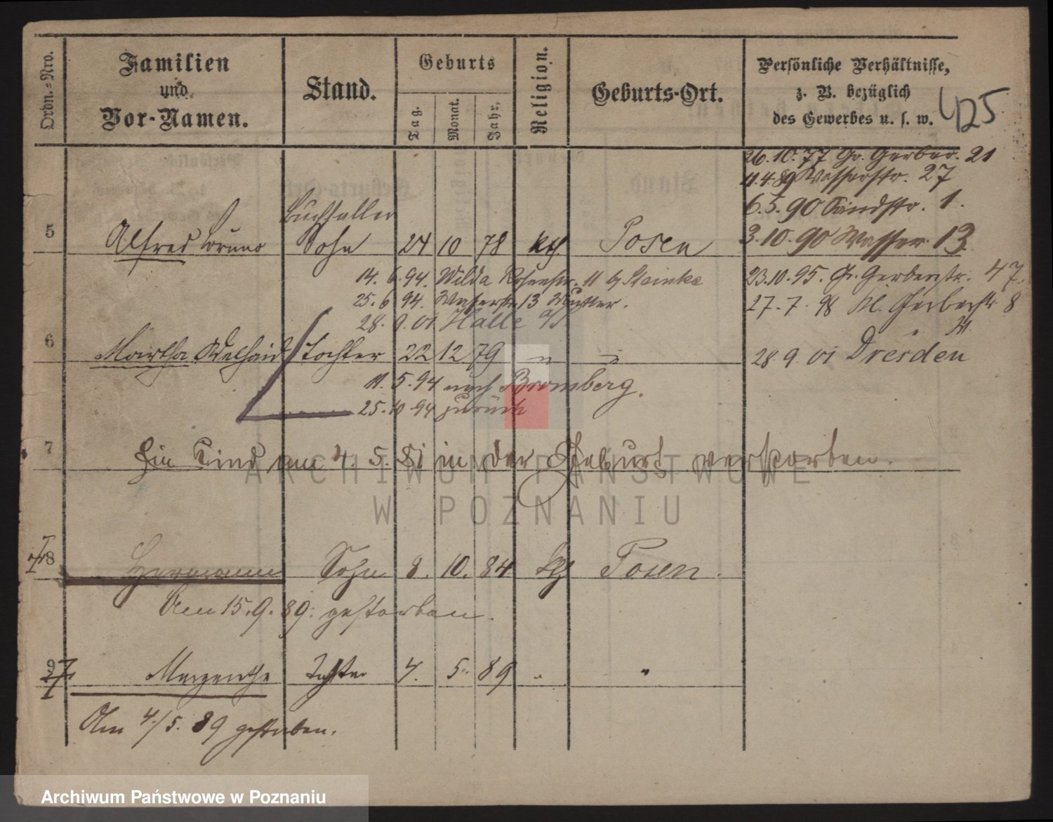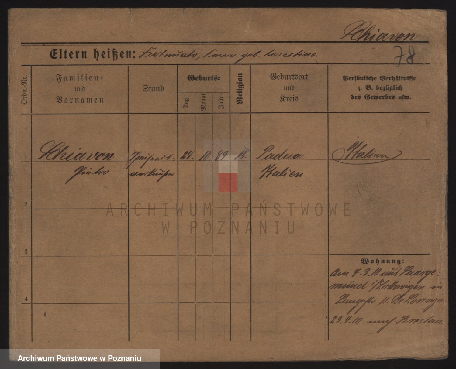 Podgląd karty osobowej dostępny jest po kliknięciu na nazwisko lub ikonkę karty. Można dokonywać powiększenia (ikony na górze) lub przechodzić między kolejnymi skanami (strzałki po bokach).