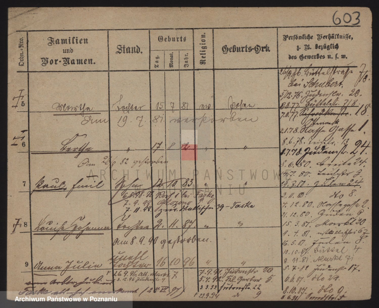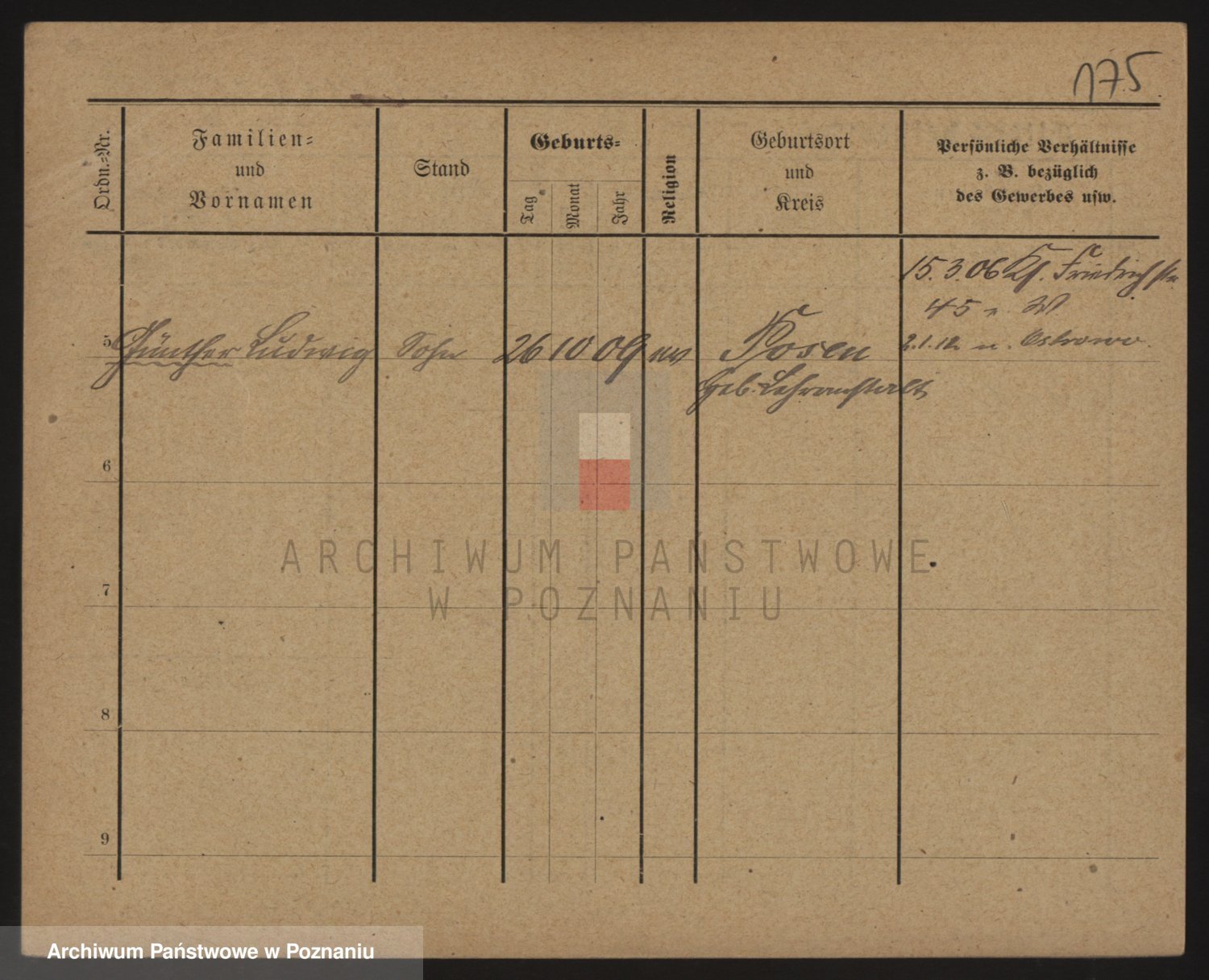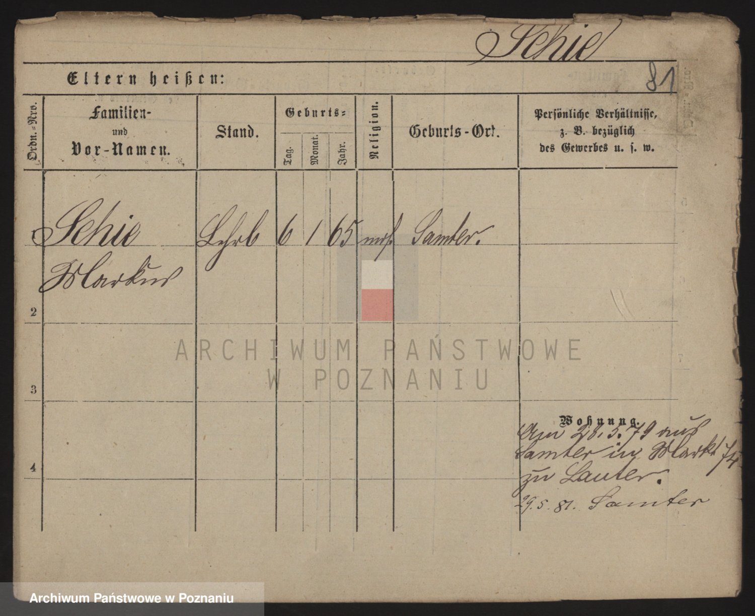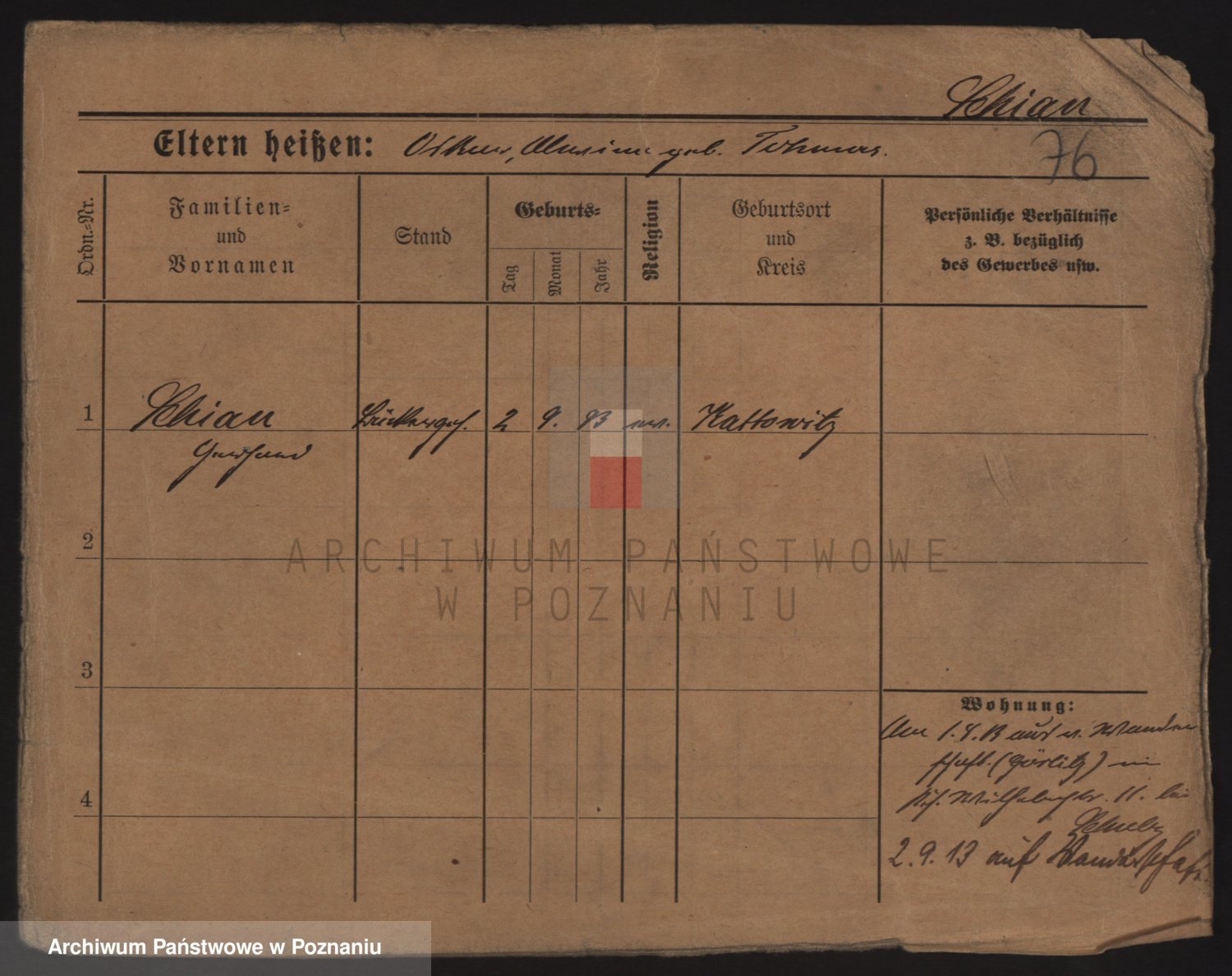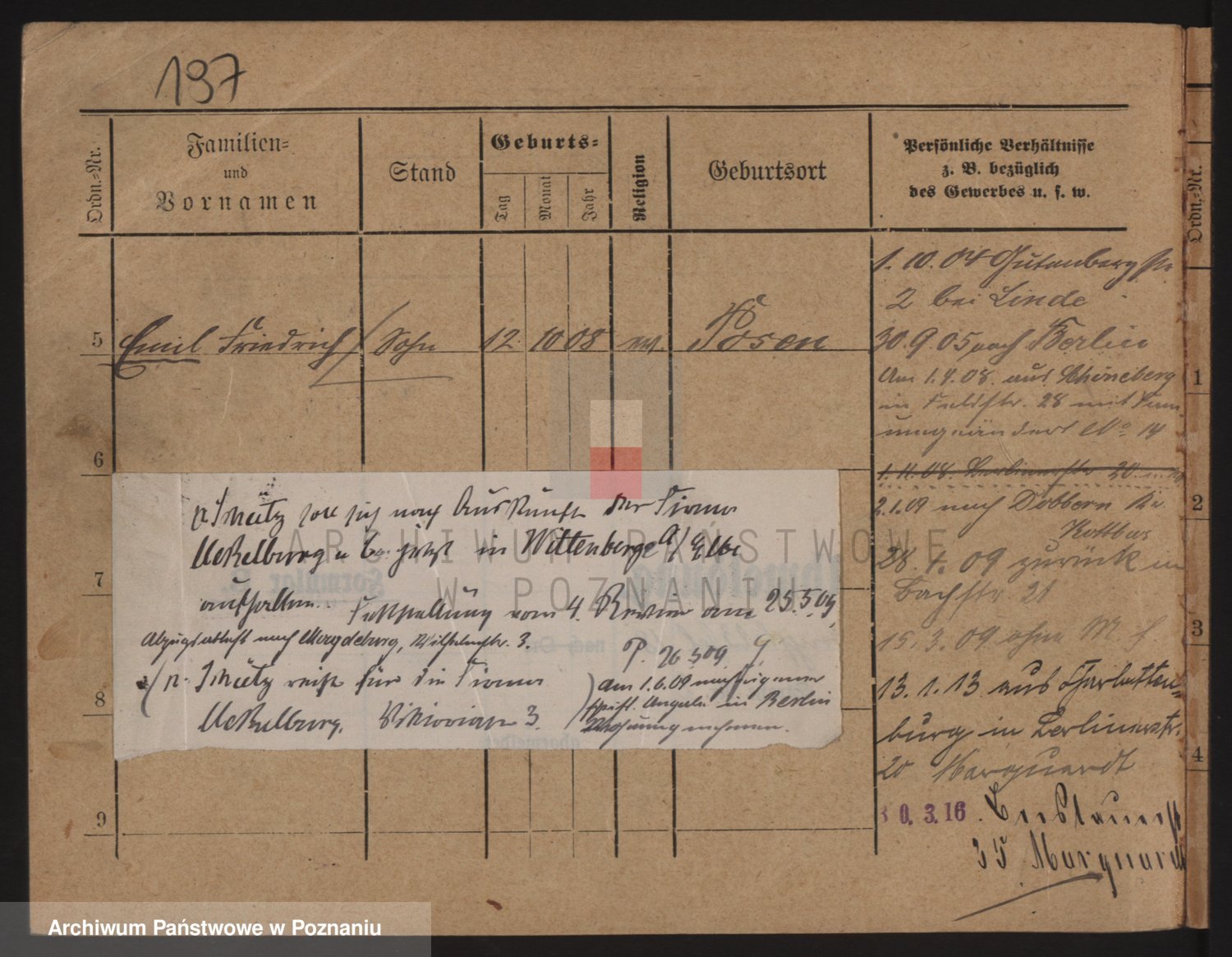 Podgląd karty osobowej dostępny jest po kliknięciu na nazwisko lub ikonkę karty. Można dokonywać powiększenia (ikony na górze) lub przechodzić między kolejnymi skanami (strzałki po bokach).