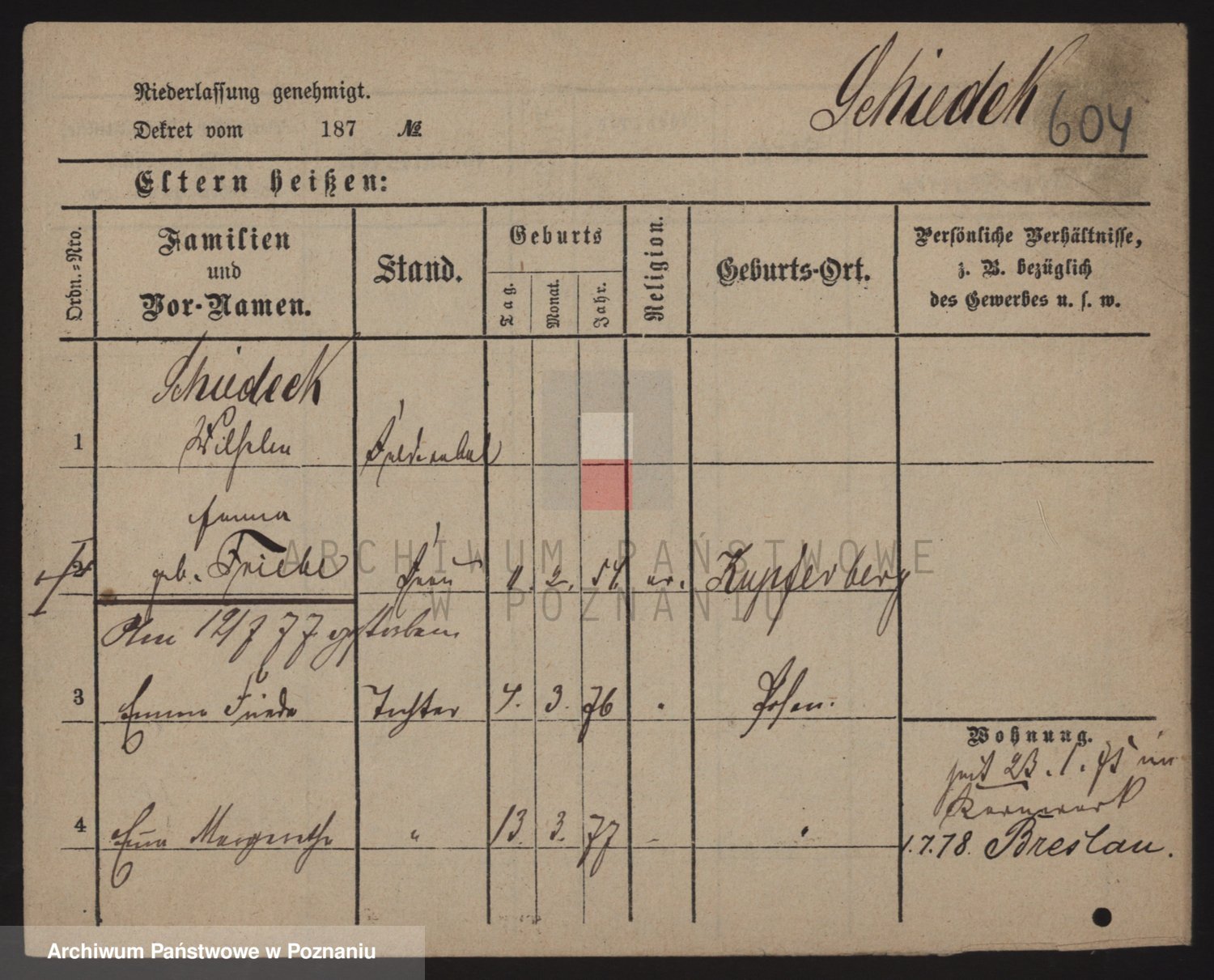 Schikor z d. Hoffmann, Bertha Josefa Elisabeth