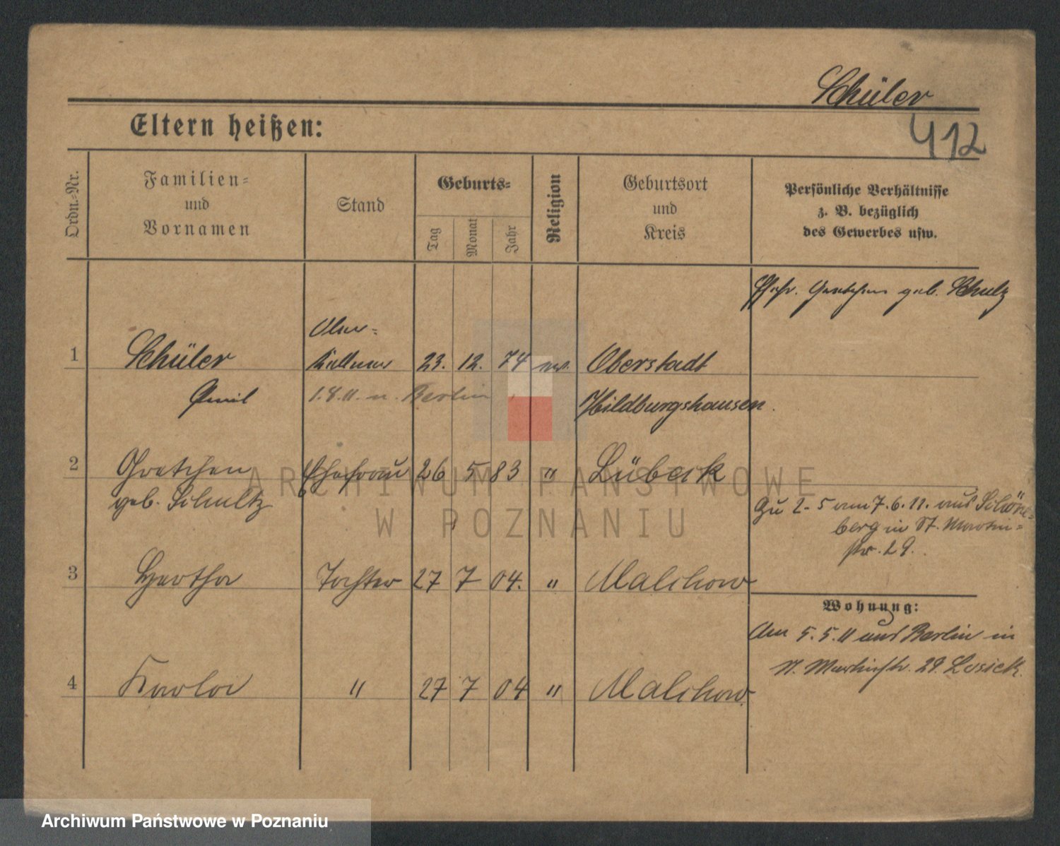 Schild z d. Schulz, Käthe Emilie Dorothea