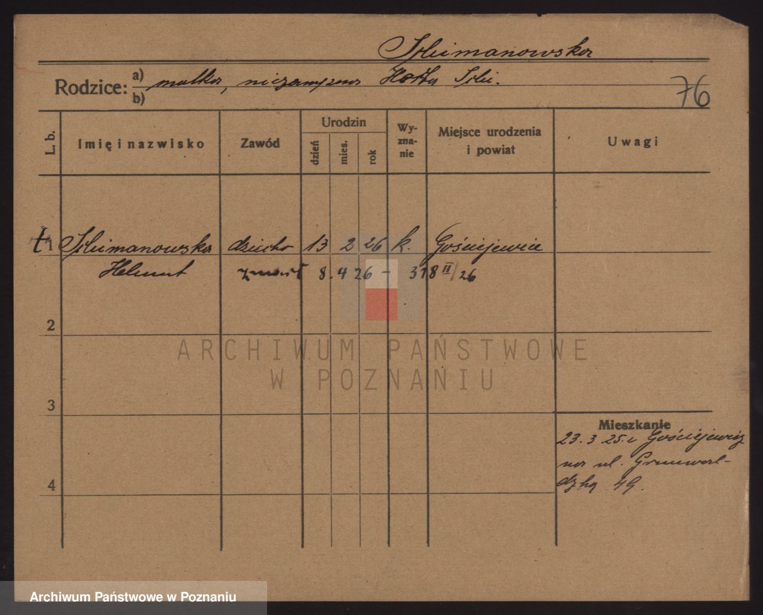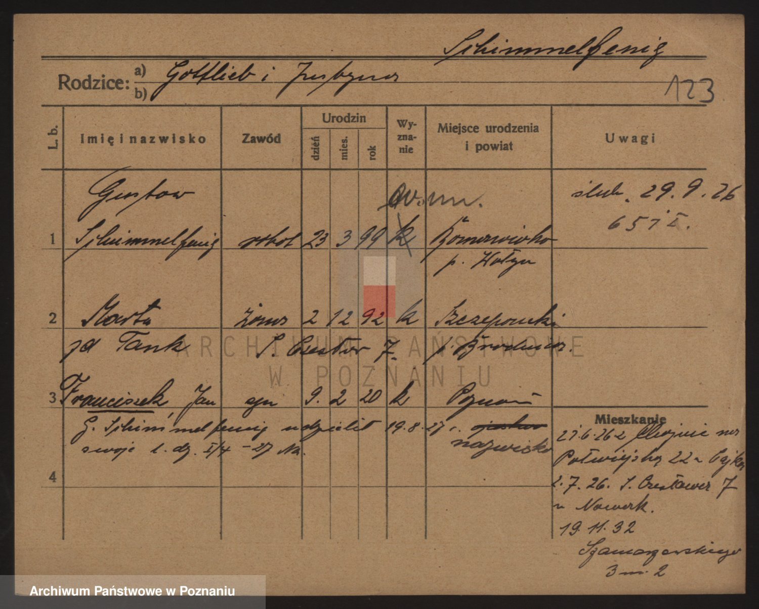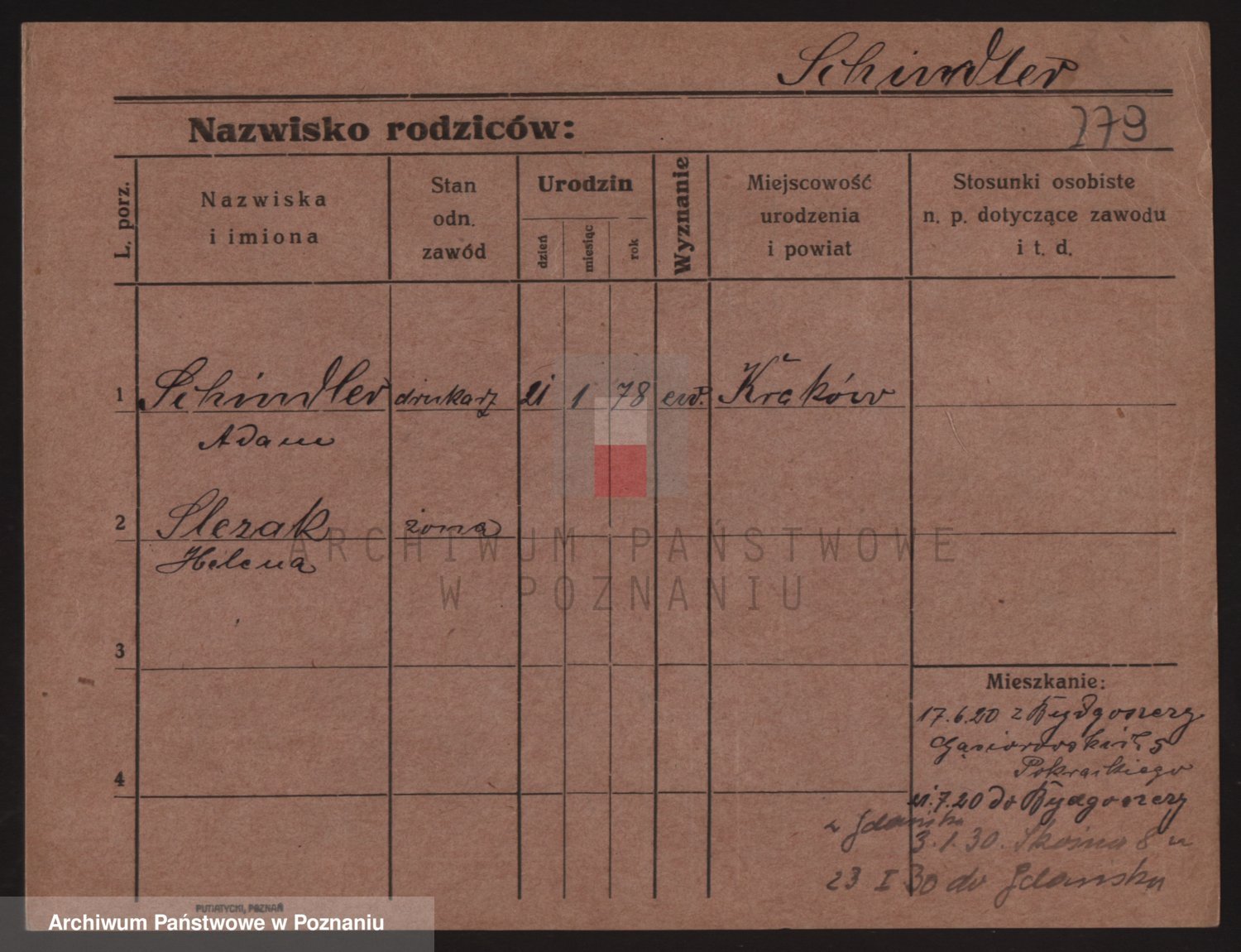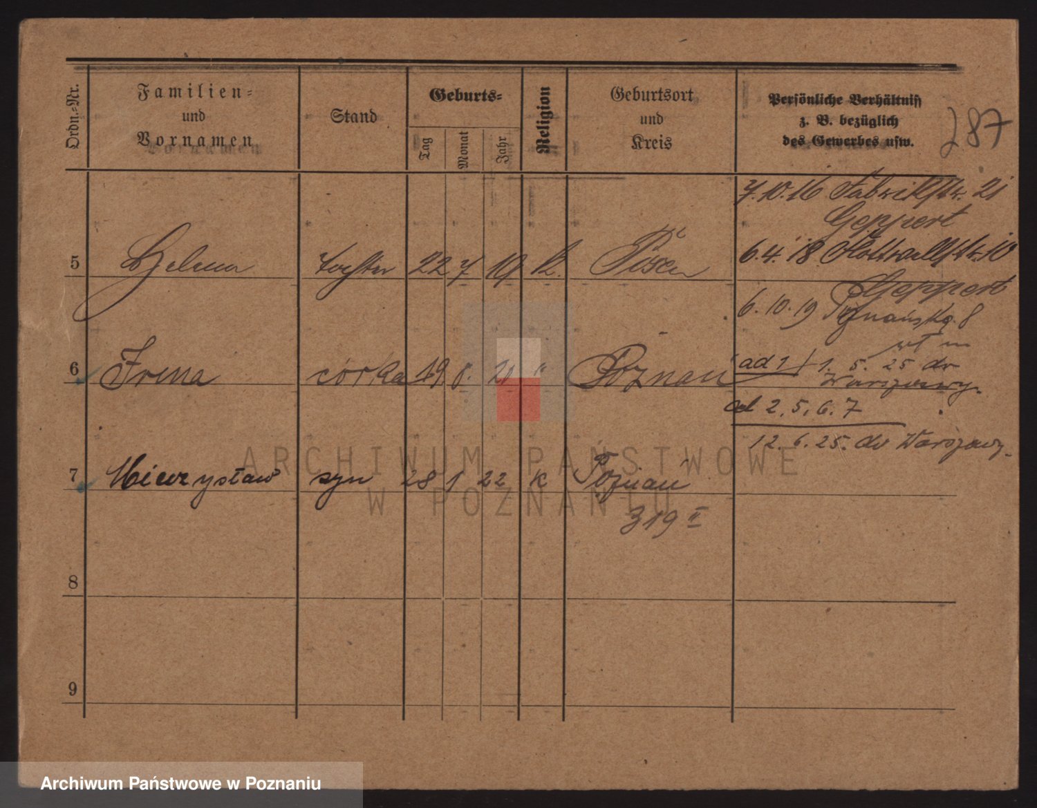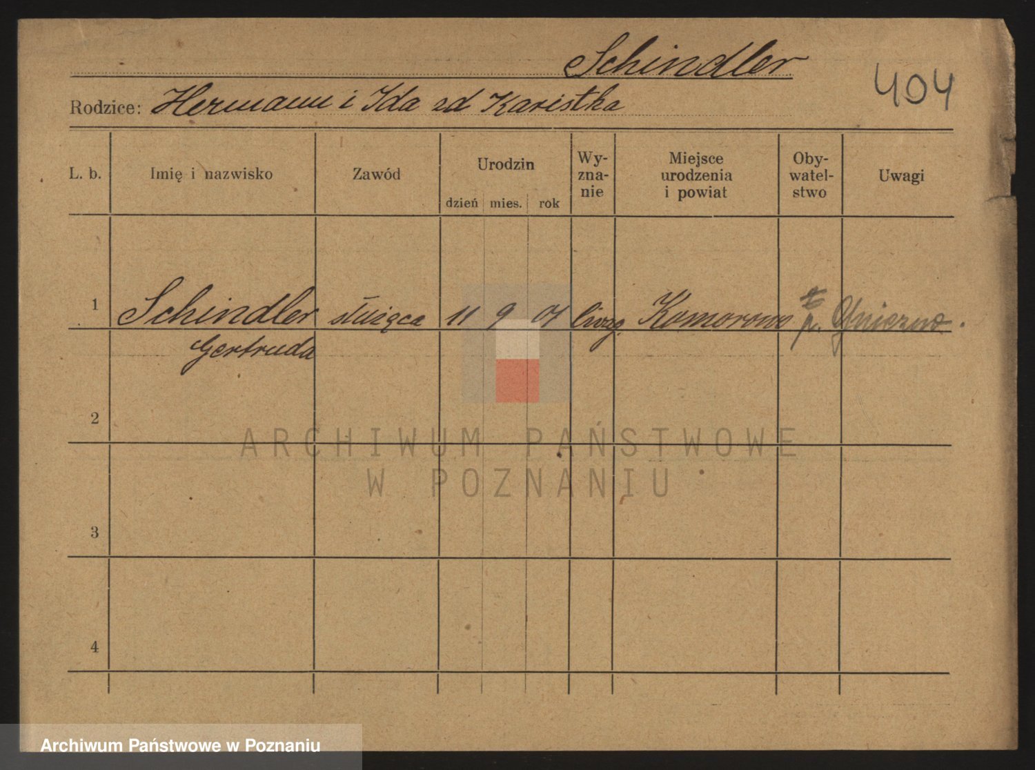 Podgląd karty osobowej dostępny jest po kliknięciu na nazwisko lub ikonkę karty. Można dokonywać powiększenia (ikony na górze) lub przechodzić między kolejnymi skanami (strzałki po bokach).
