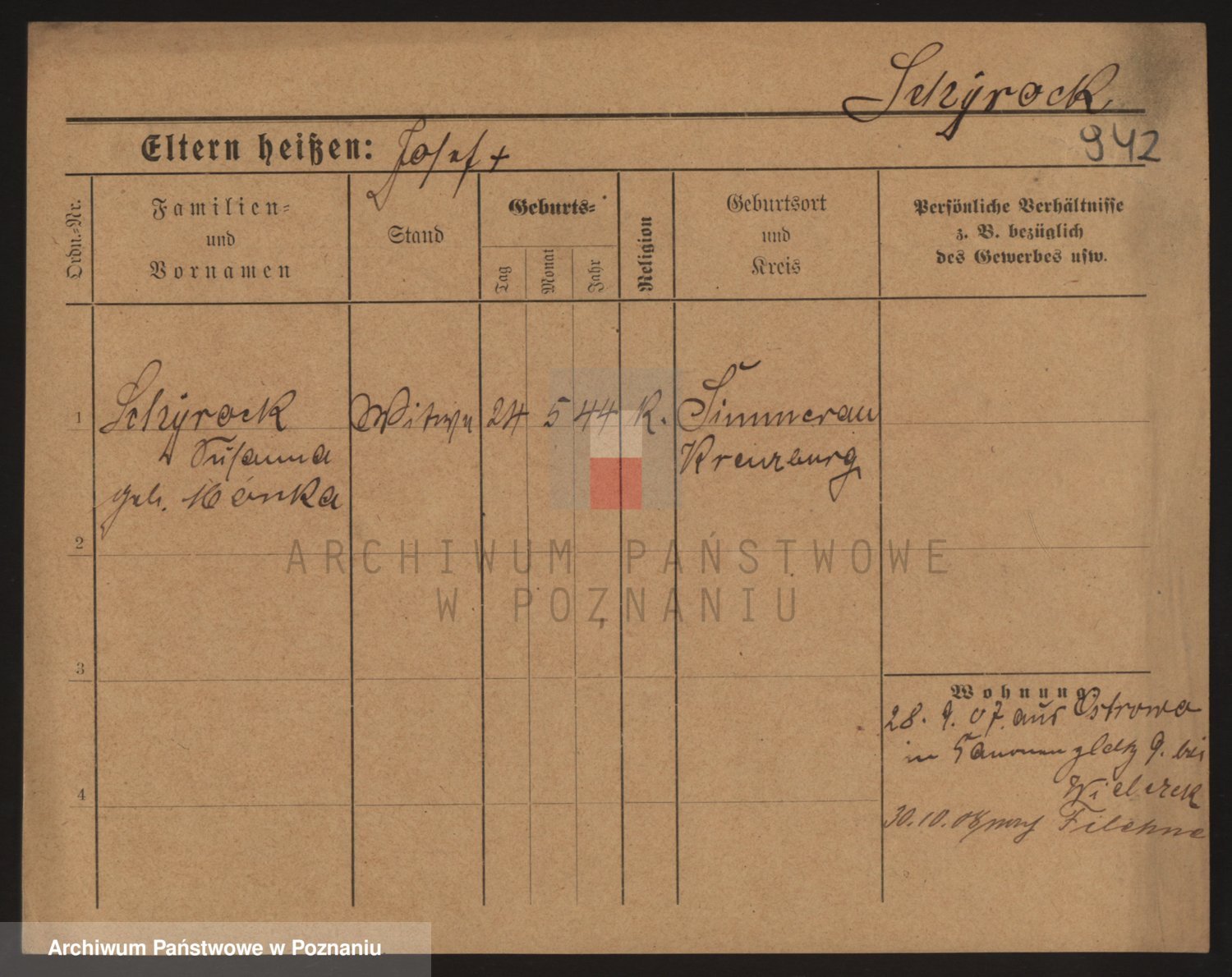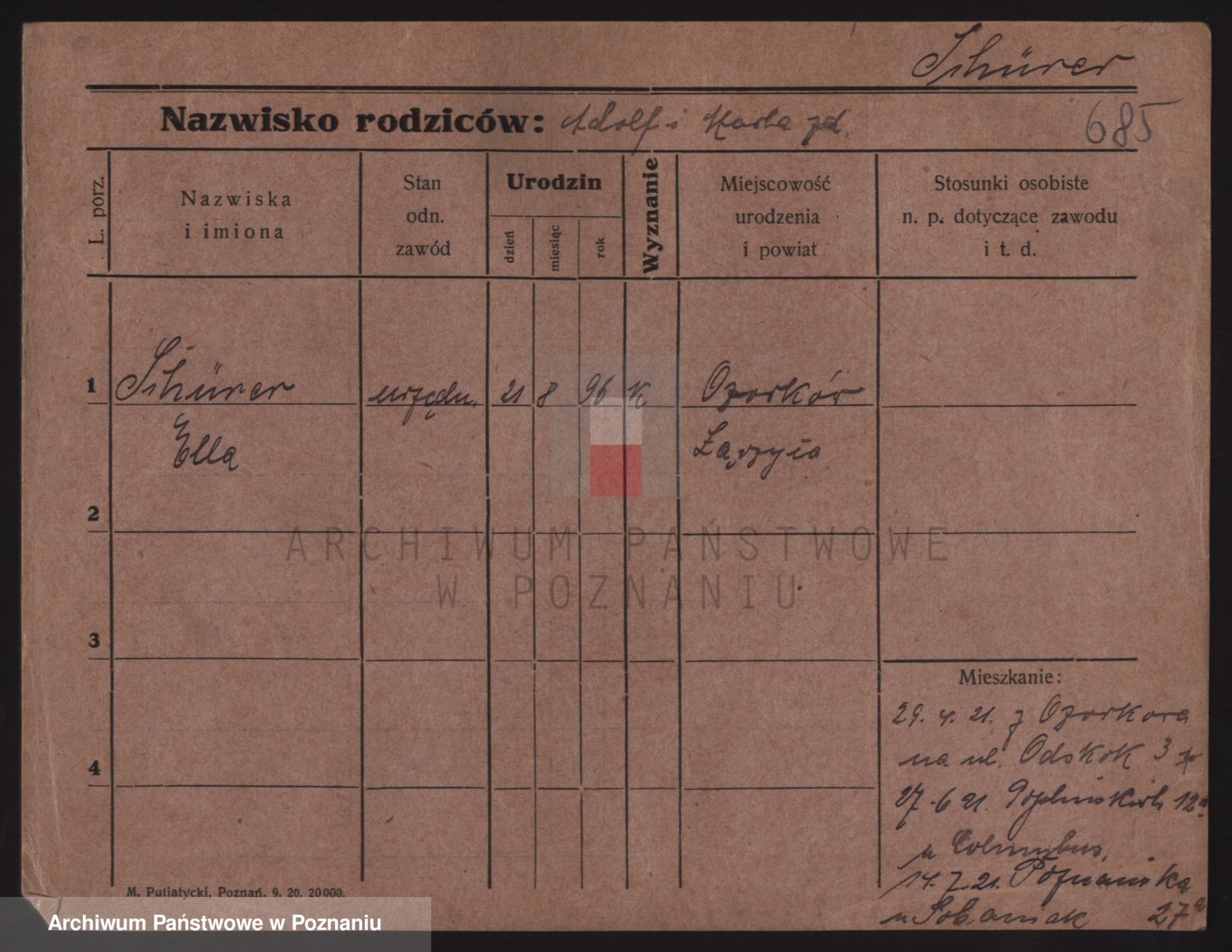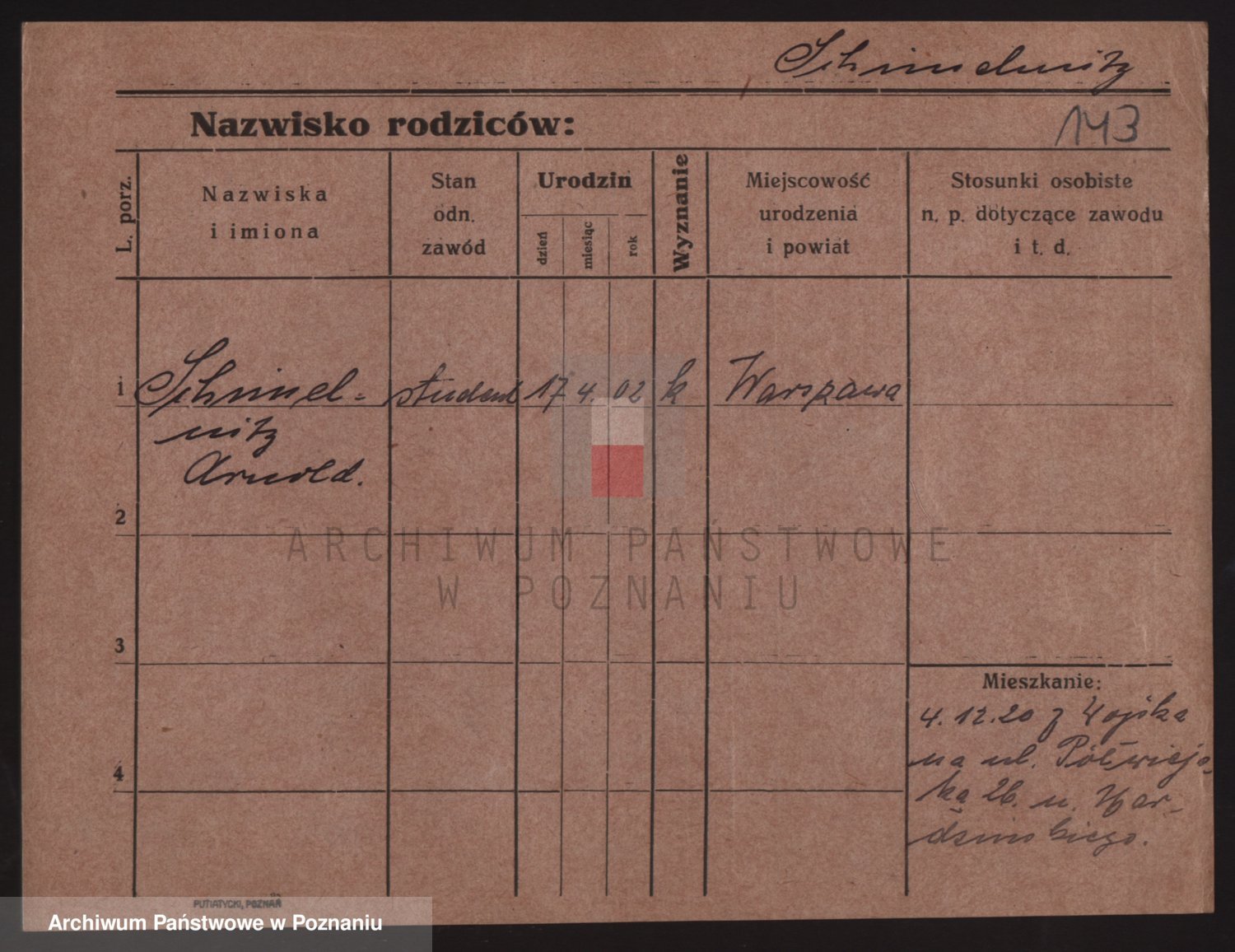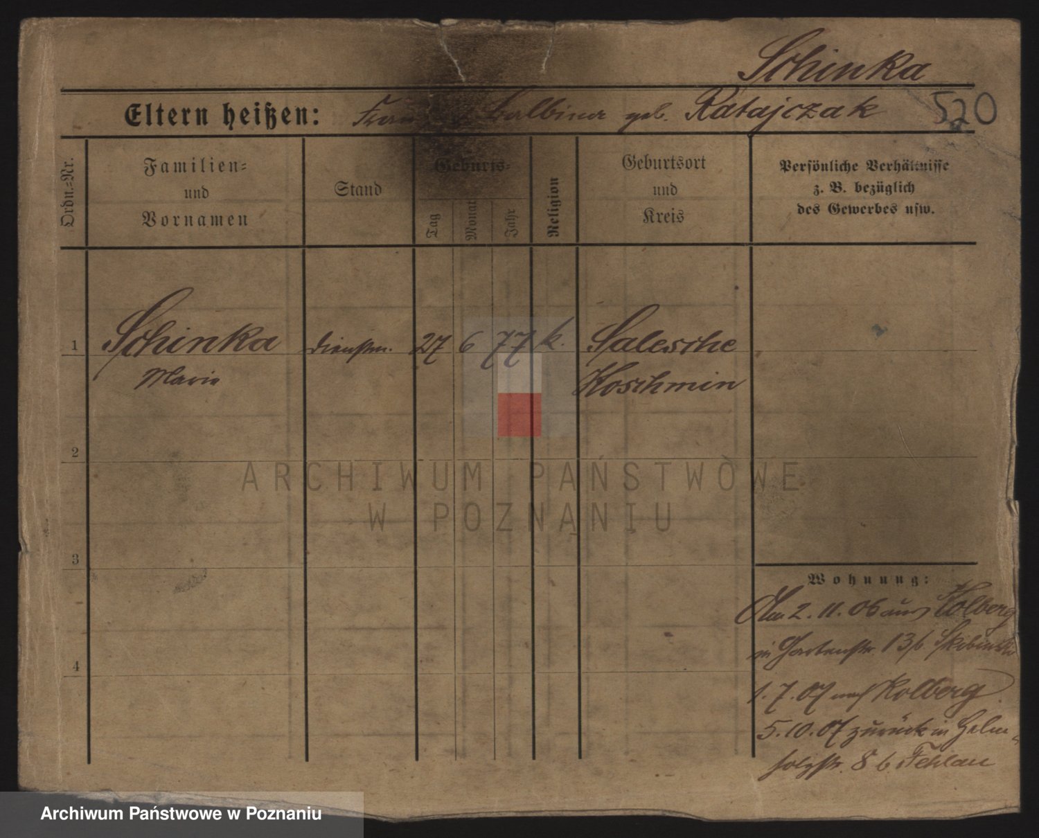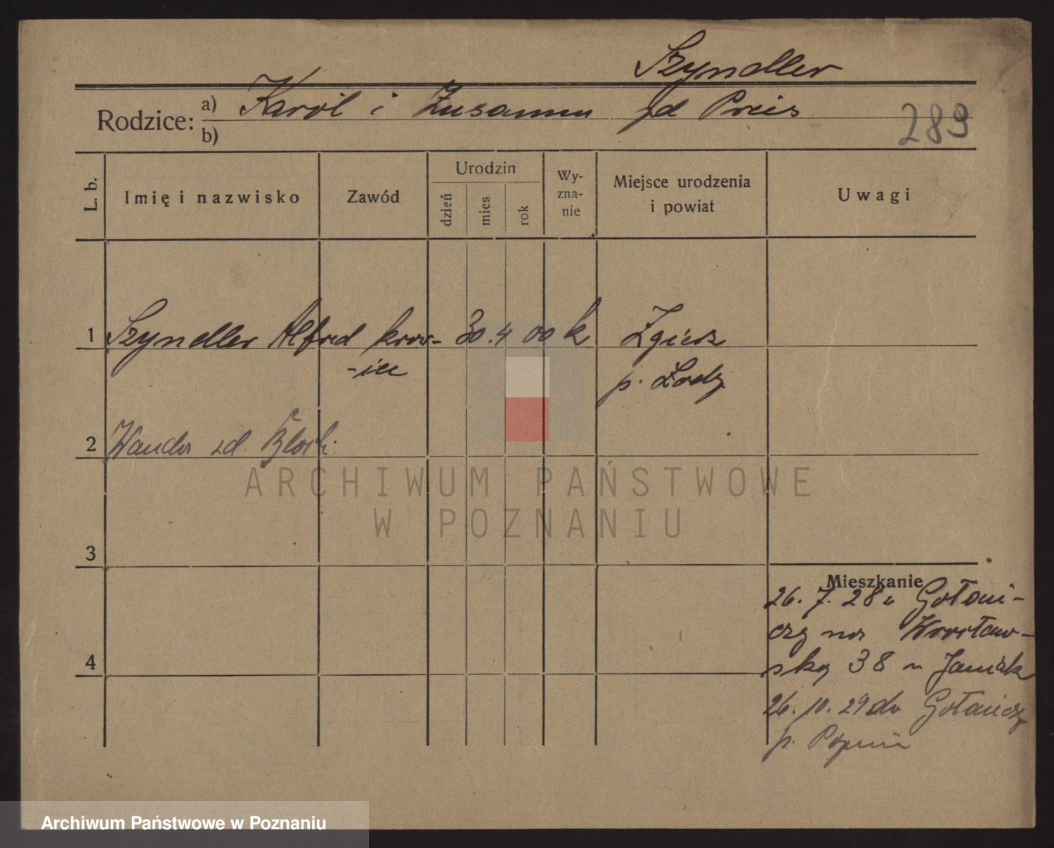 Podgląd karty osobowej dostępny jest po kliknięciu na nazwisko lub ikonkę karty. Można dokonywać powiększenia (ikony na górze) lub przechodzić między kolejnymi skanami (strzałki po bokach).
