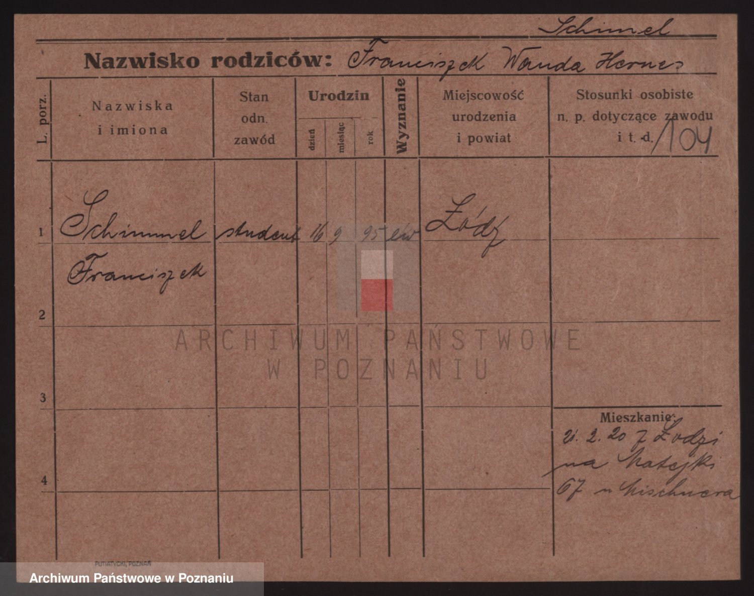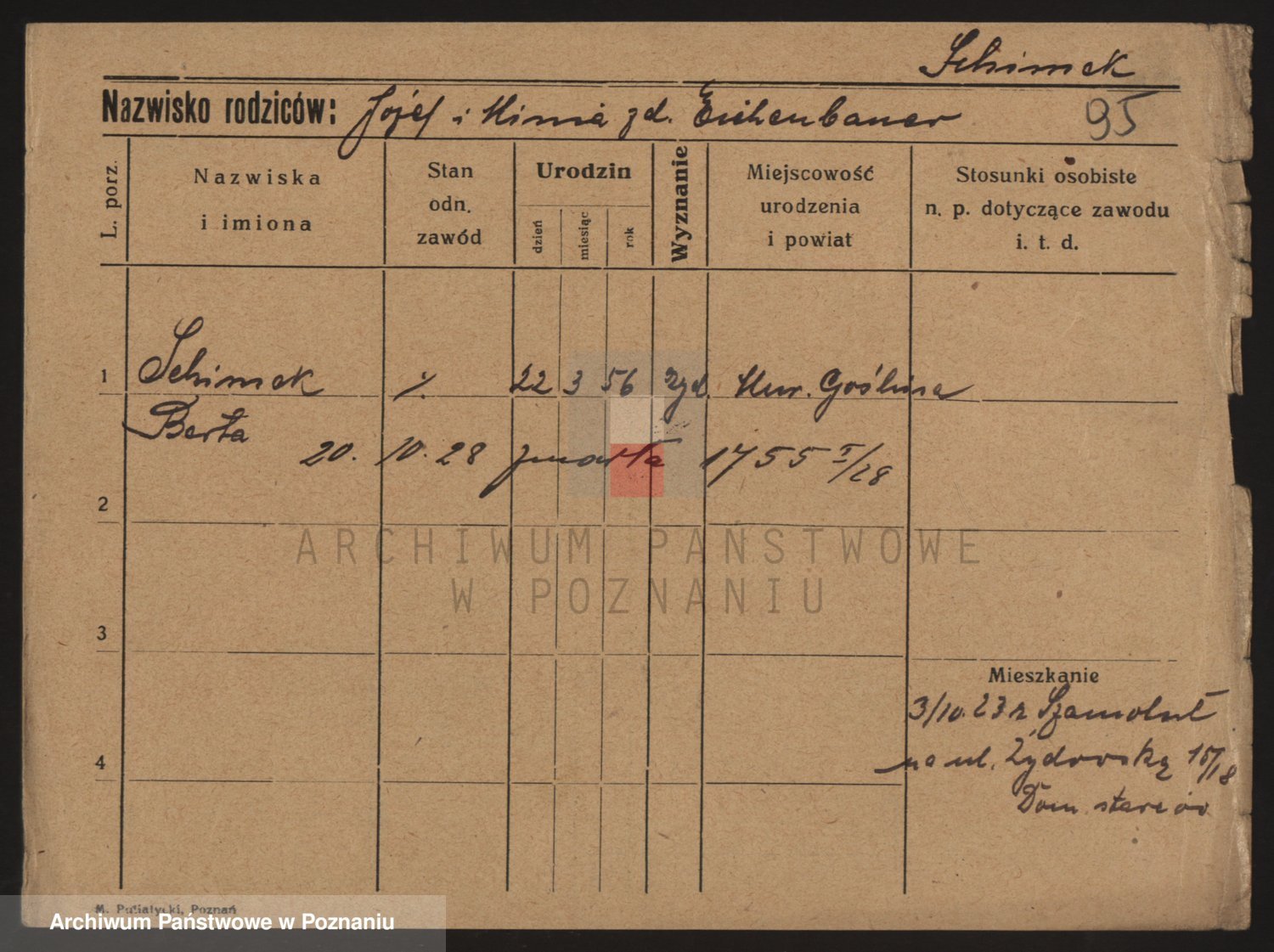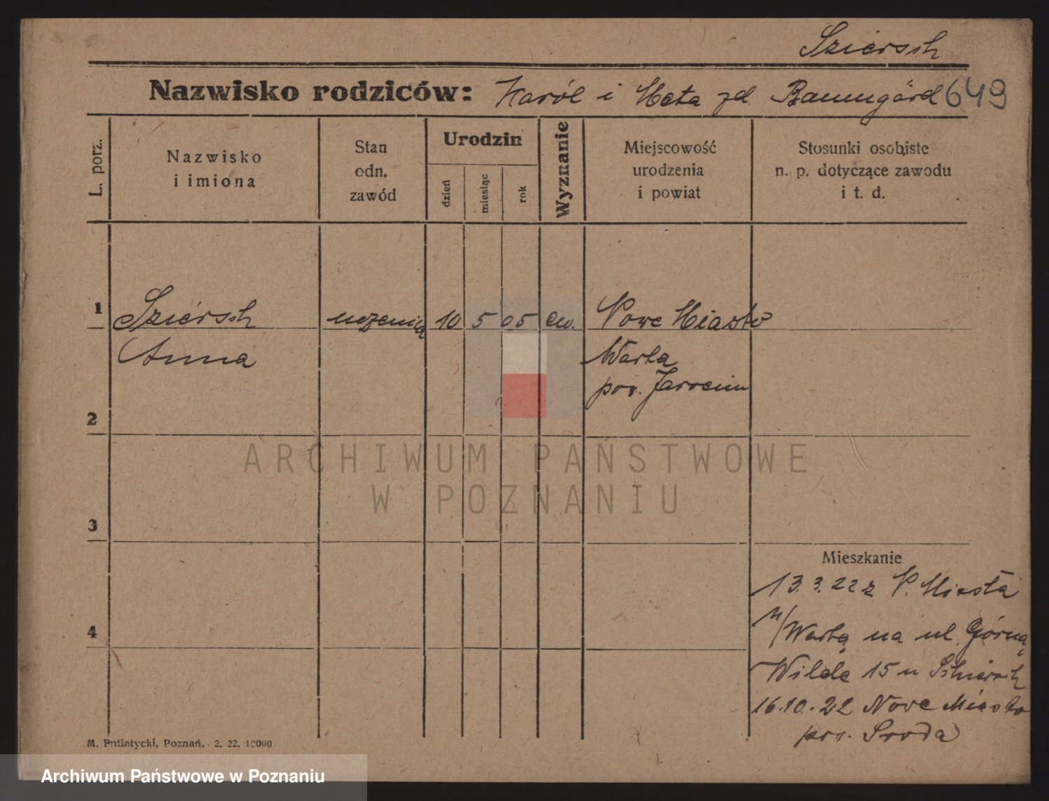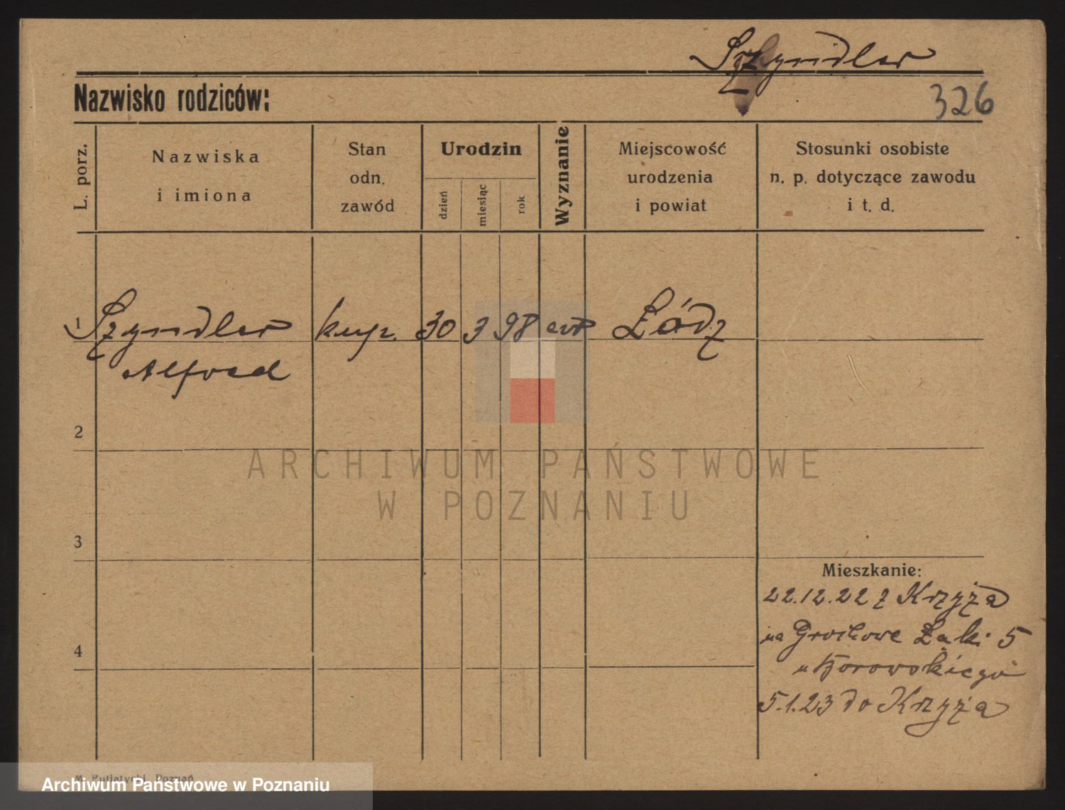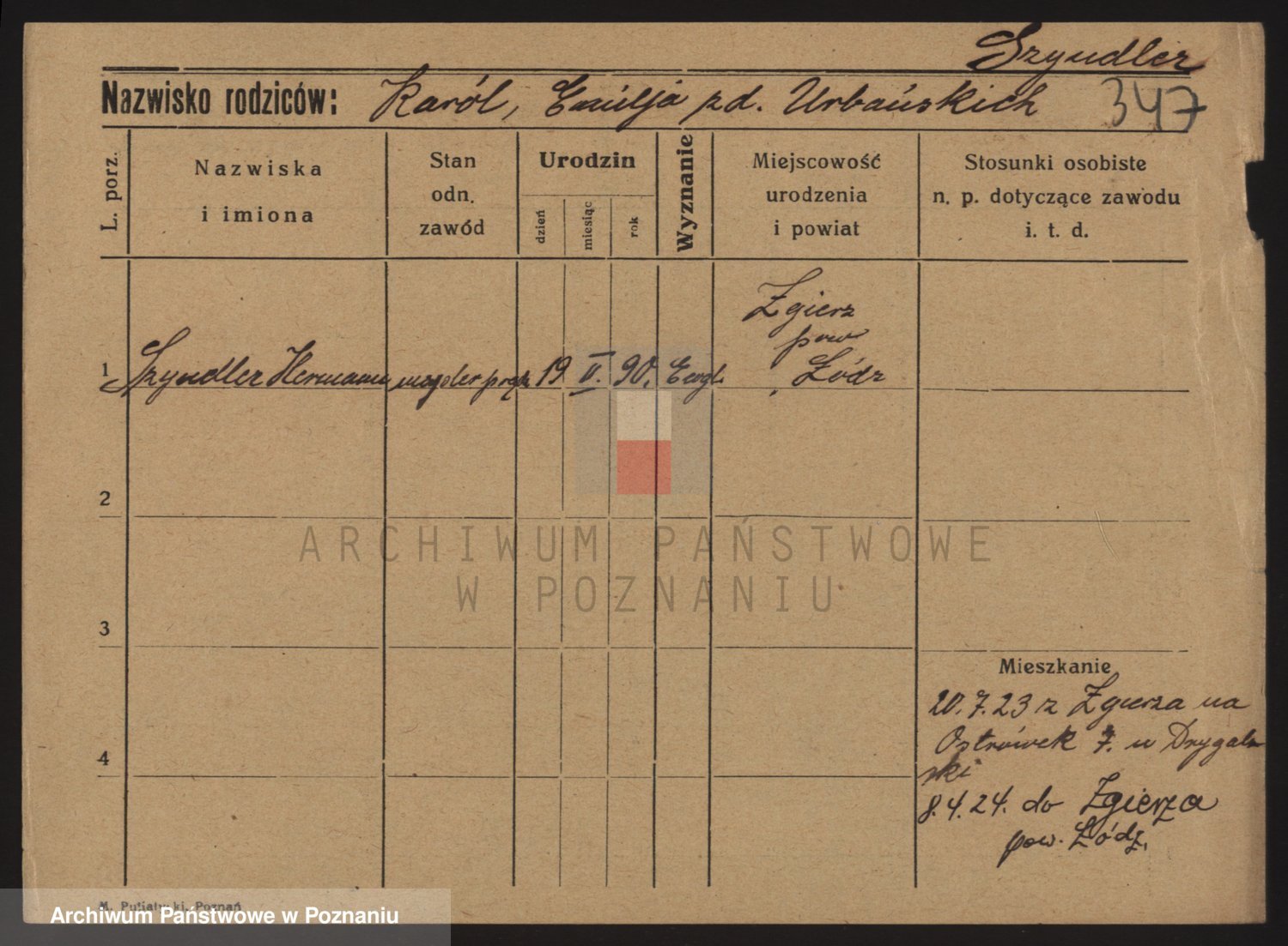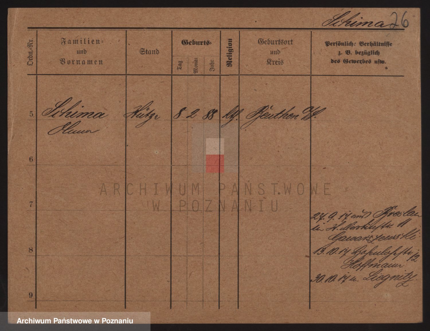 Podgląd karty osobowej dostępny jest po kliknięciu na nazwisko lub ikonkę karty. Można dokonywać powiększenia (ikony na górze) lub przechodzić między kolejnymi skanami (strzałki po bokach).