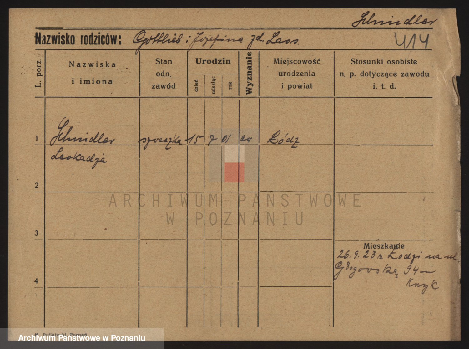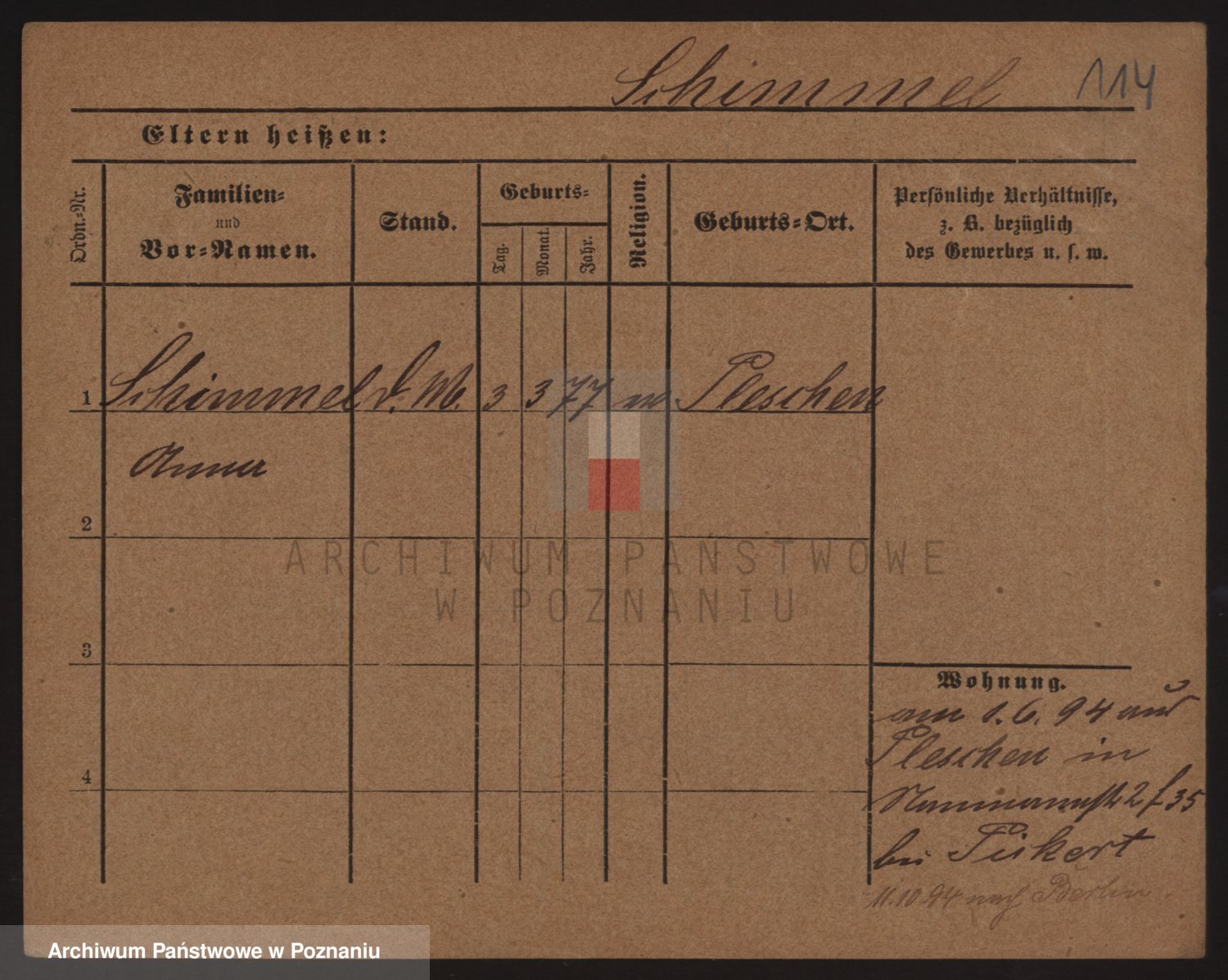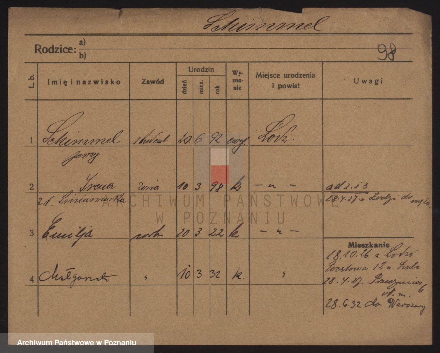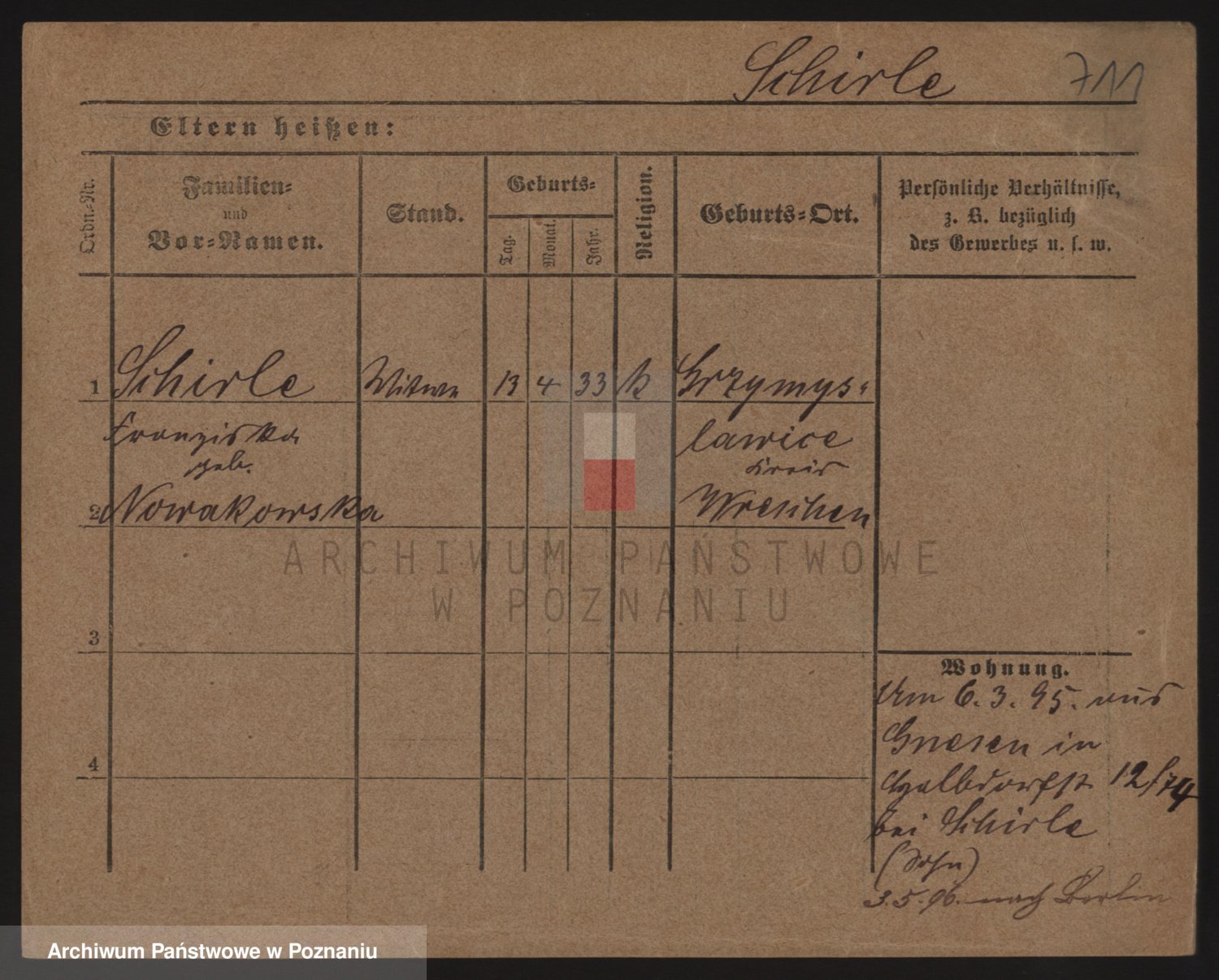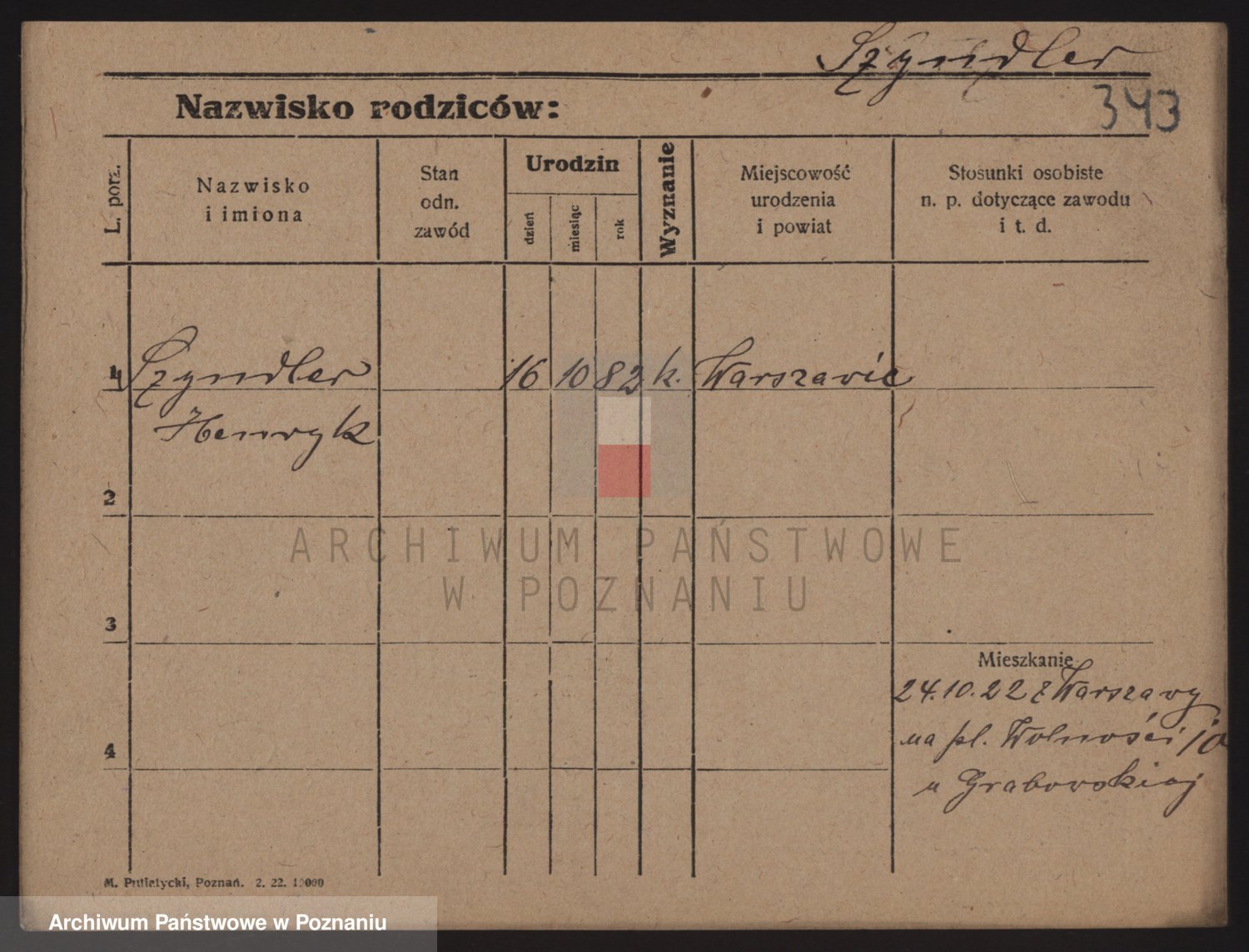 Podgląd karty osobowej dostępny jest po kliknięciu na nazwisko lub ikonkę karty. Można dokonywać powiększenia (ikony na górze) lub przechodzić między kolejnymi skanami (strzałki po bokach).