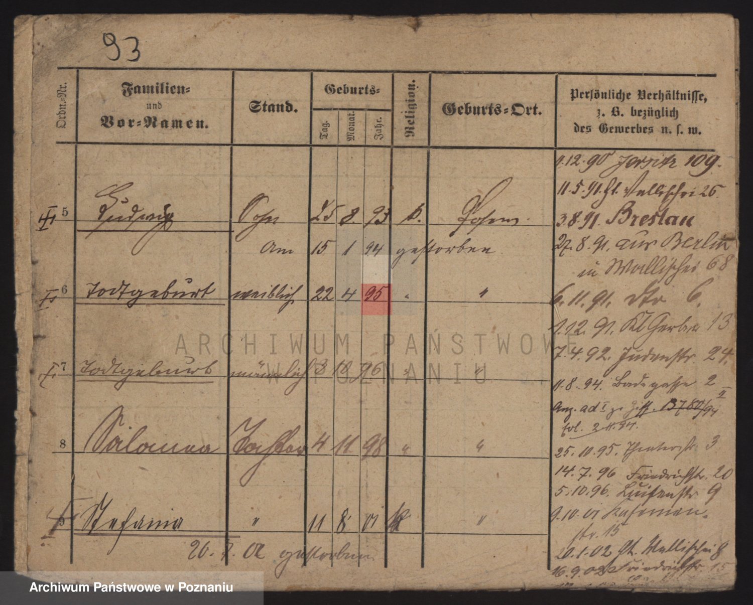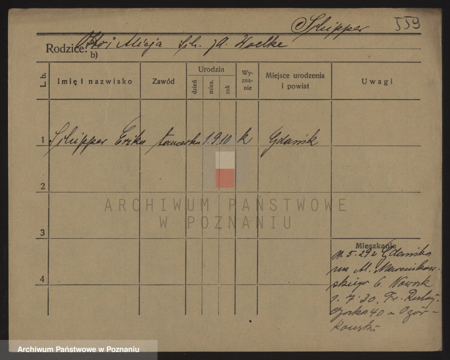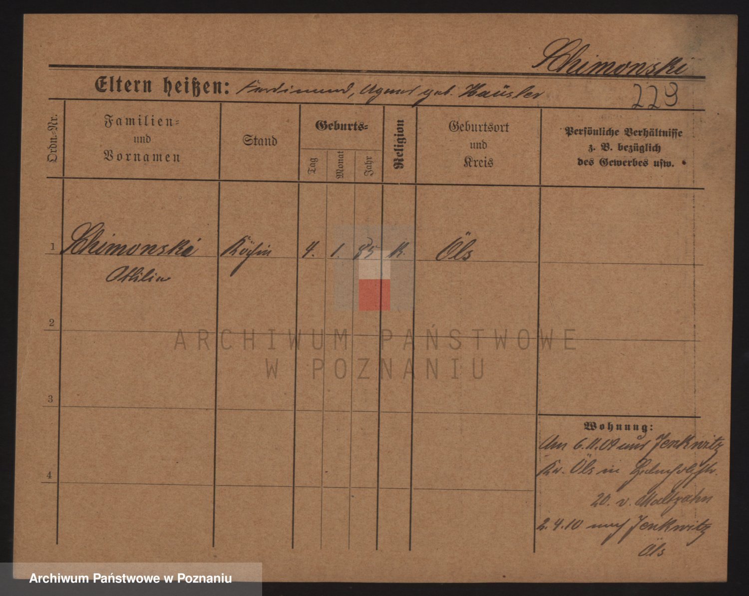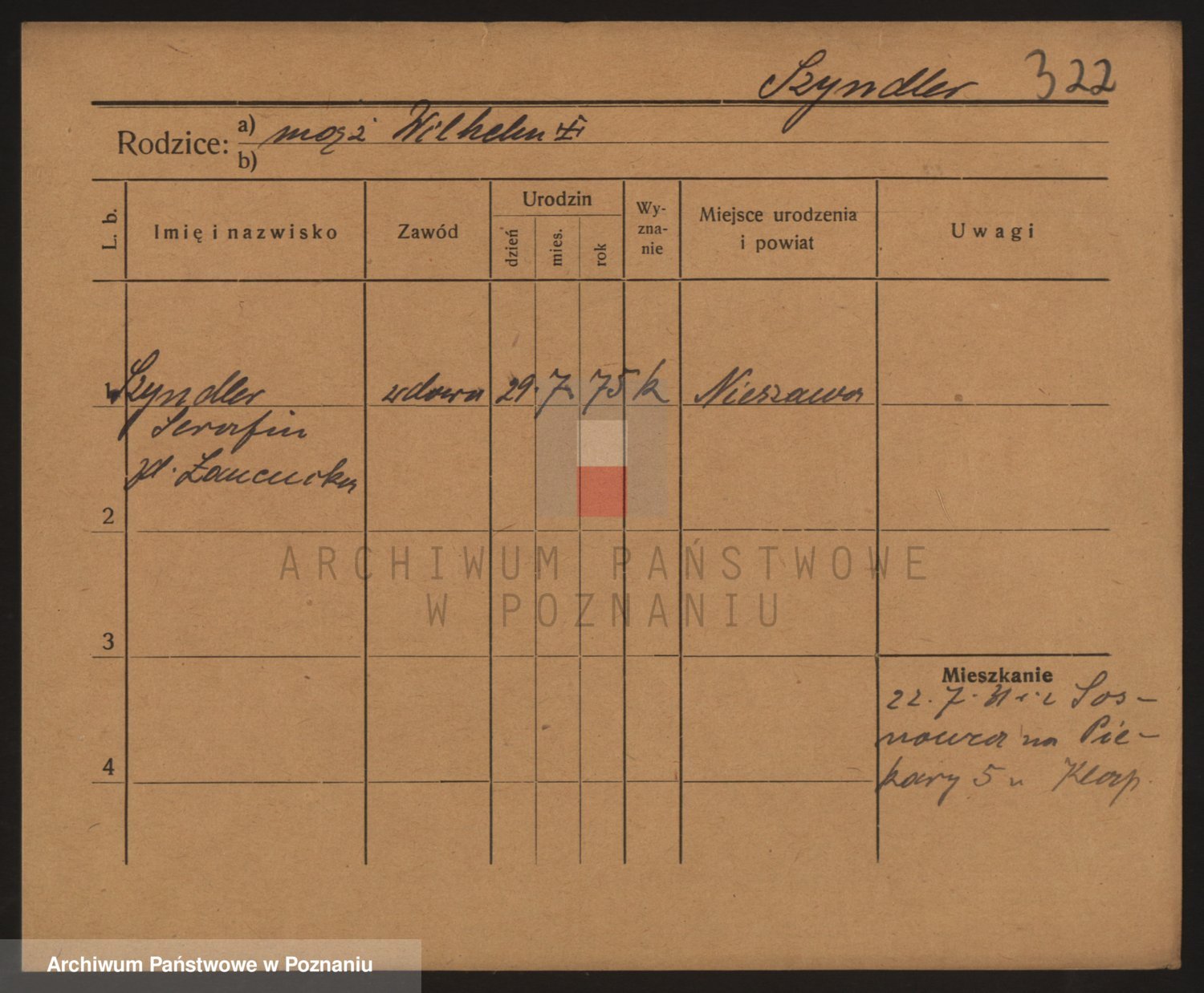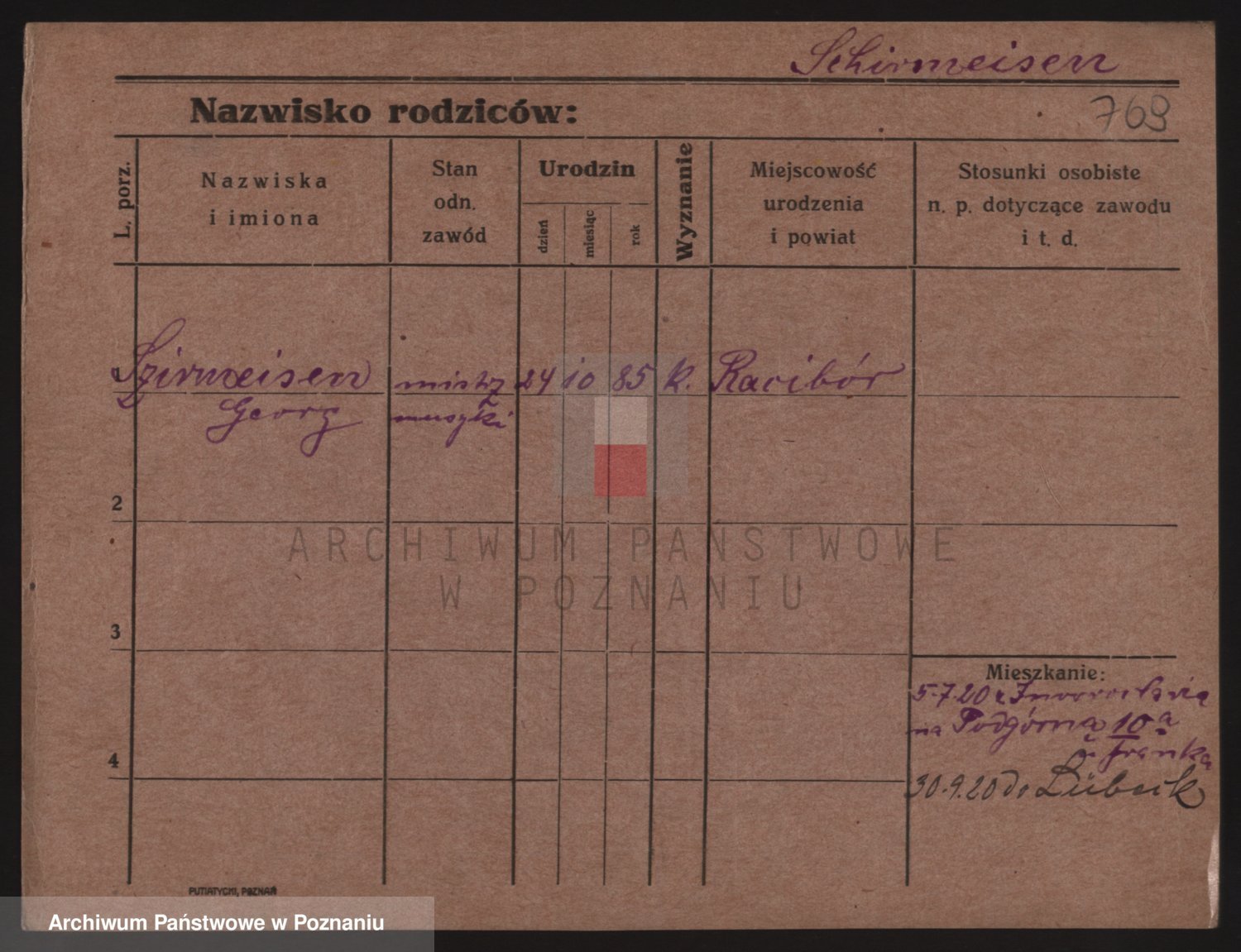 Podgląd karty osobowej dostępny jest po kliknięciu na nazwisko lub ikonkę karty. Można dokonywać powiększenia (ikony na górze) lub przechodzić między kolejnymi skanami (strzałki po bokach).