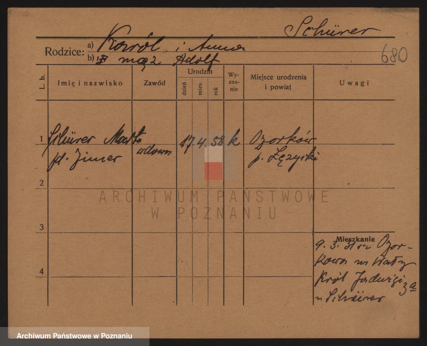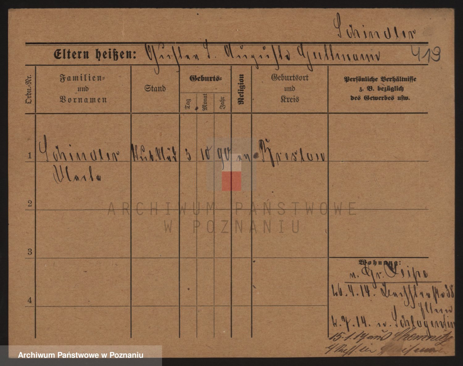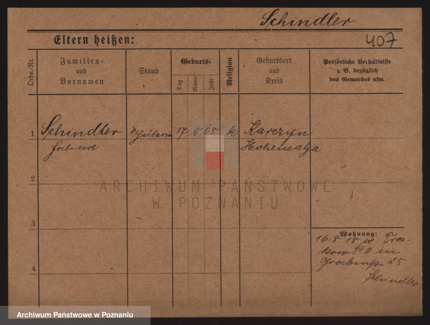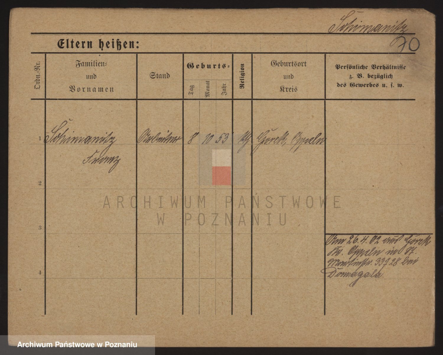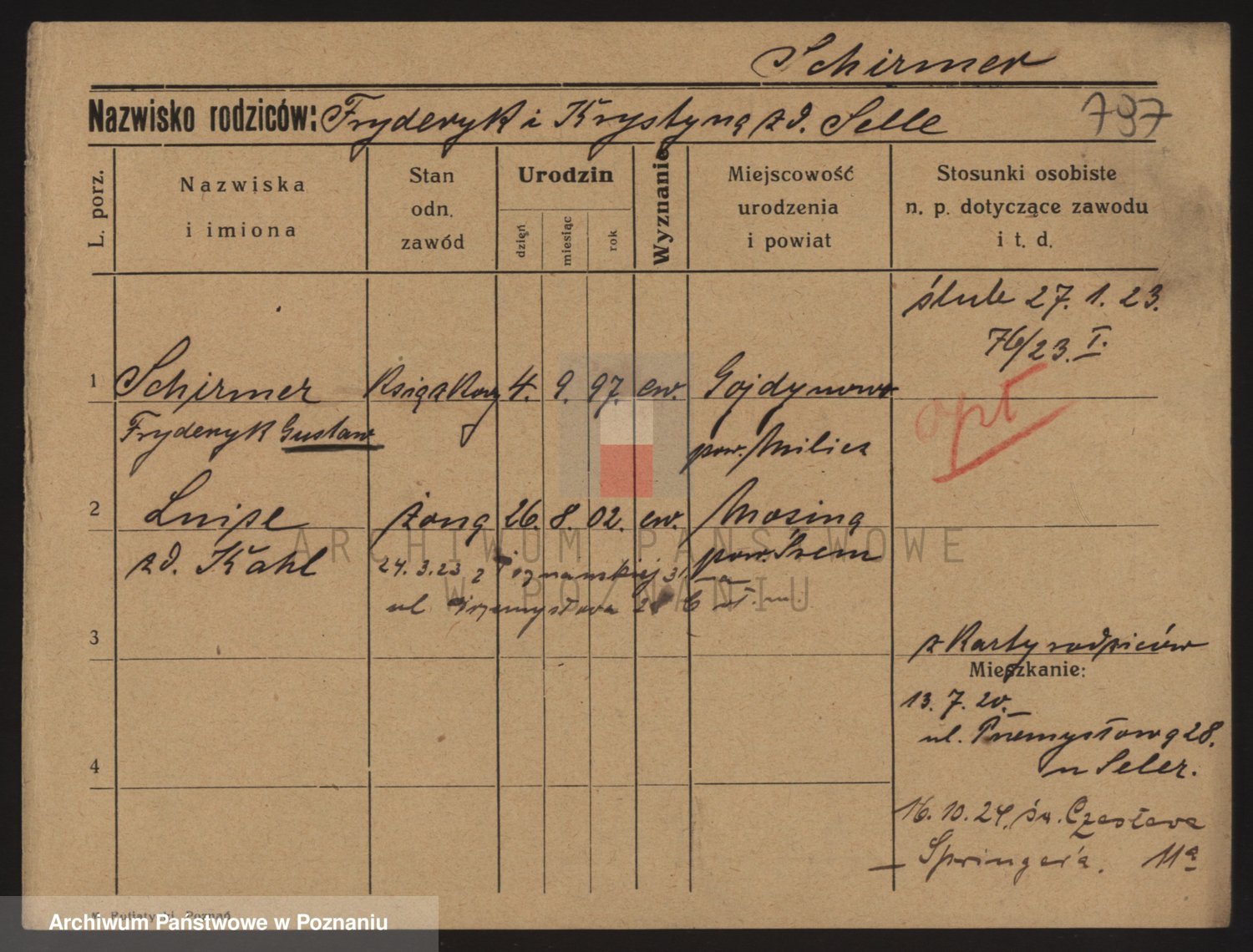 Podgląd karty osobowej dostępny jest po kliknięciu na nazwisko lub ikonkę karty. Można dokonywać powiększenia (ikony na górze) lub przechodzić między kolejnymi skanami (strzałki po bokach).