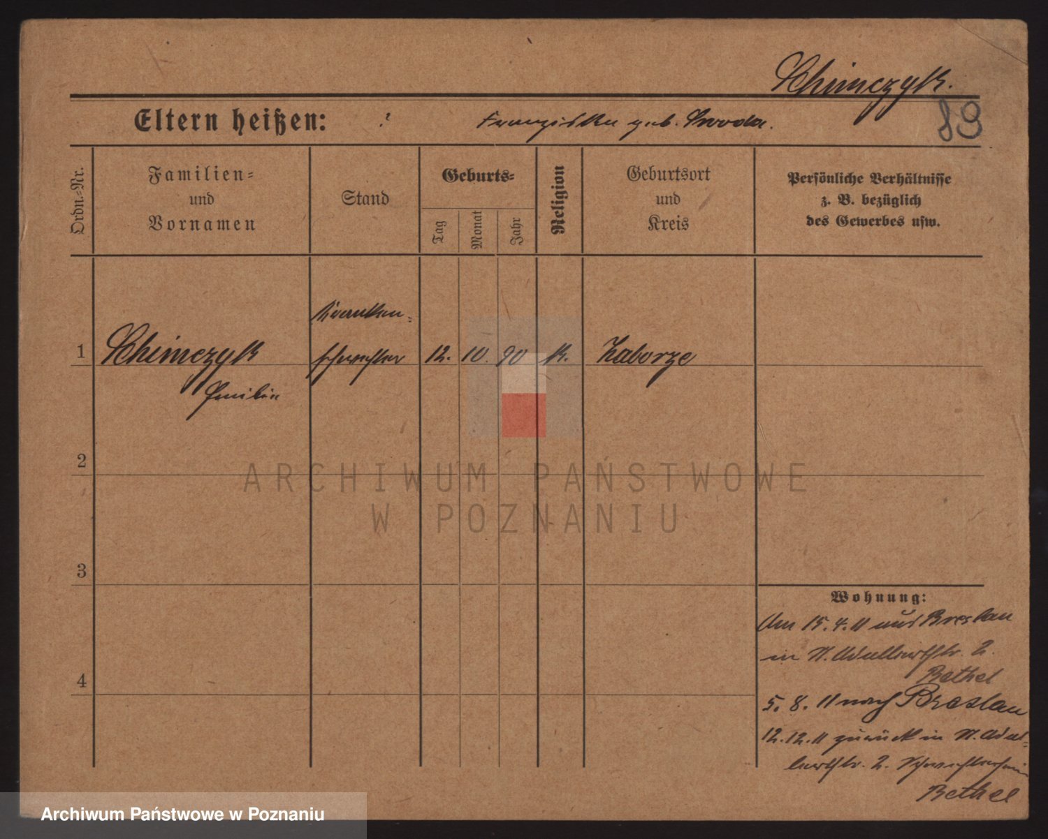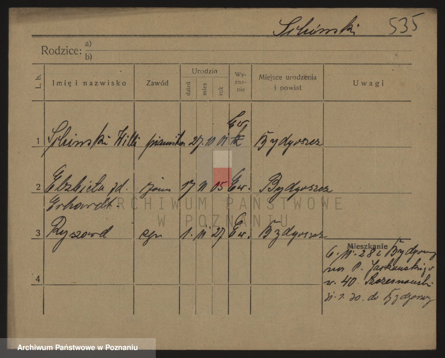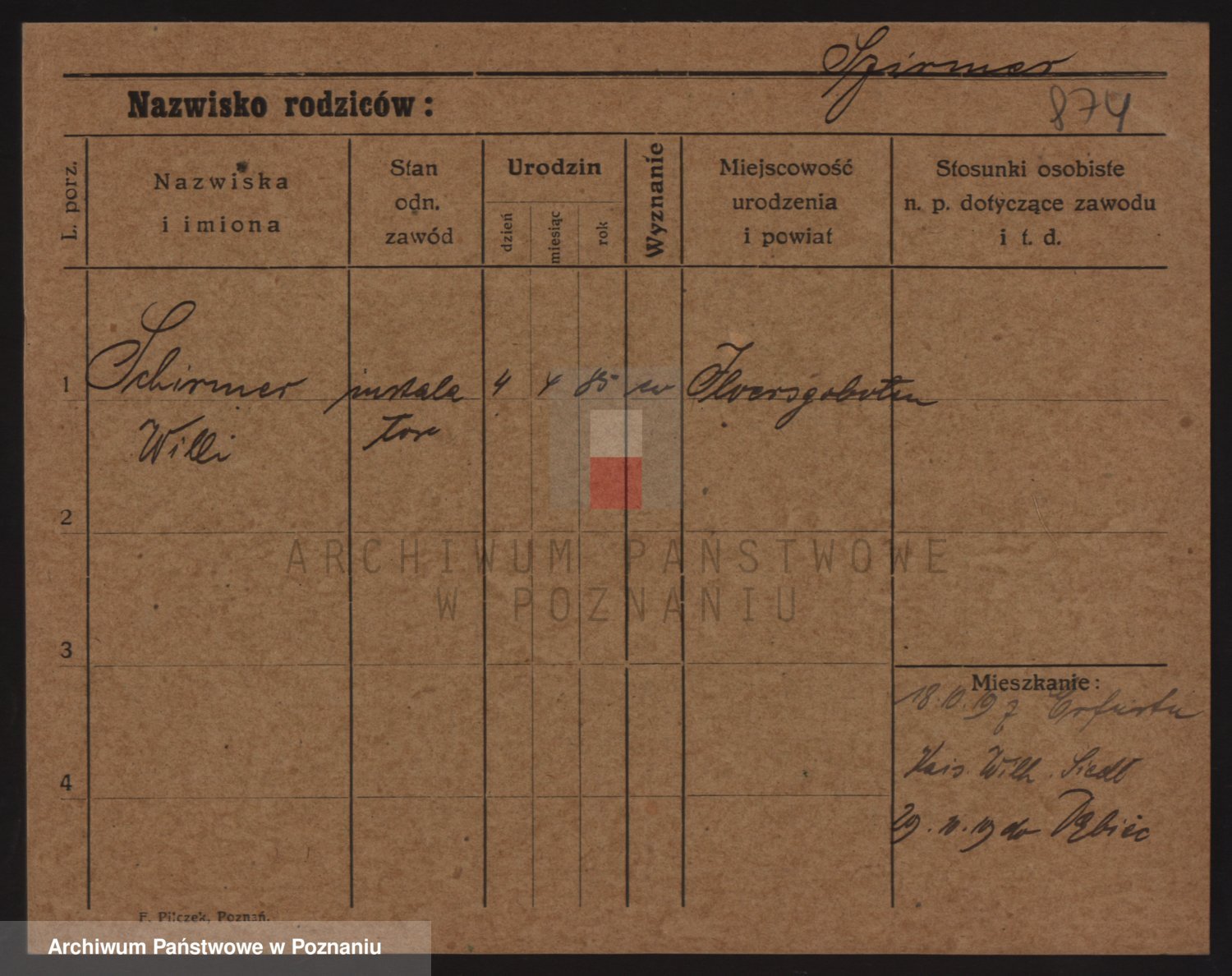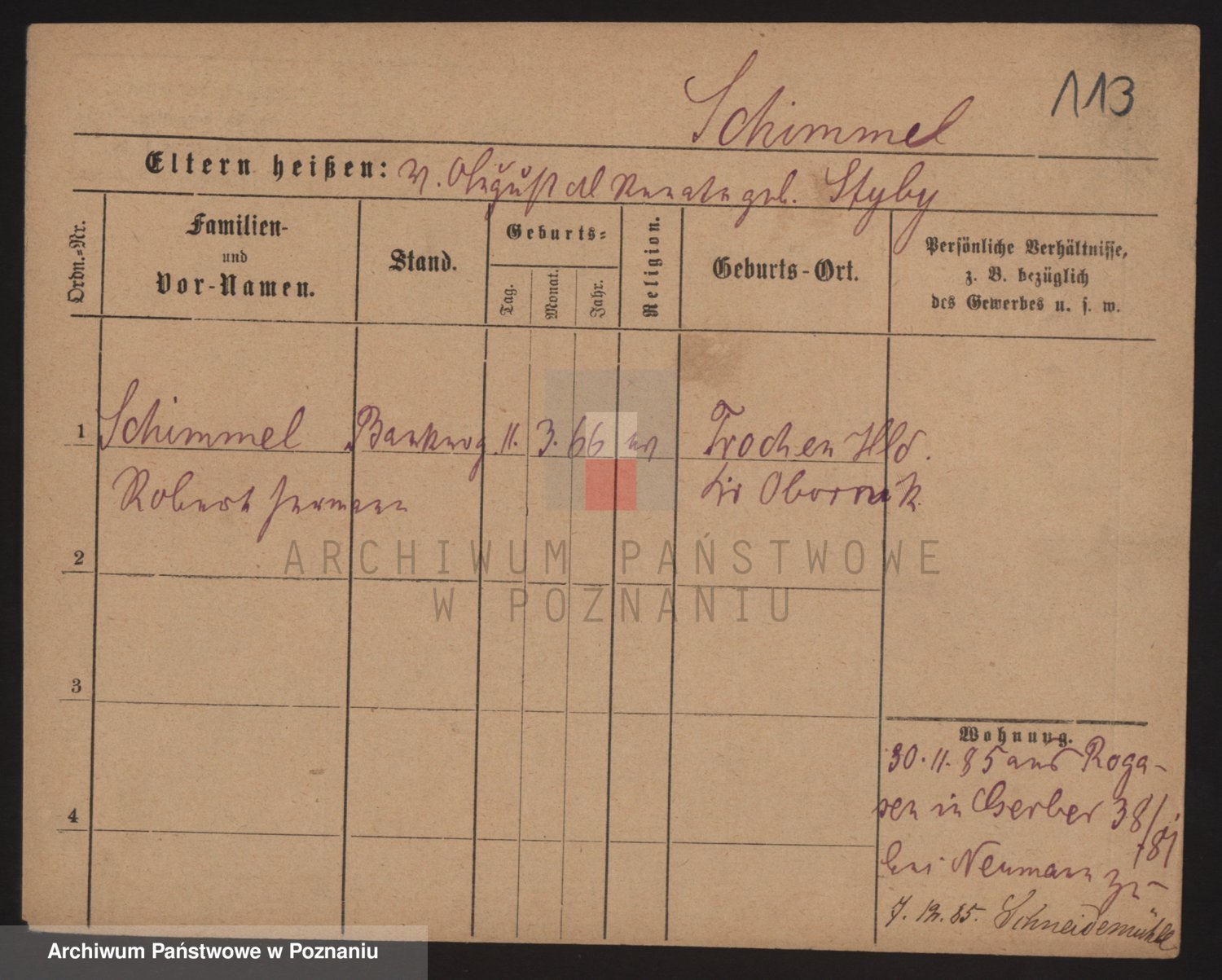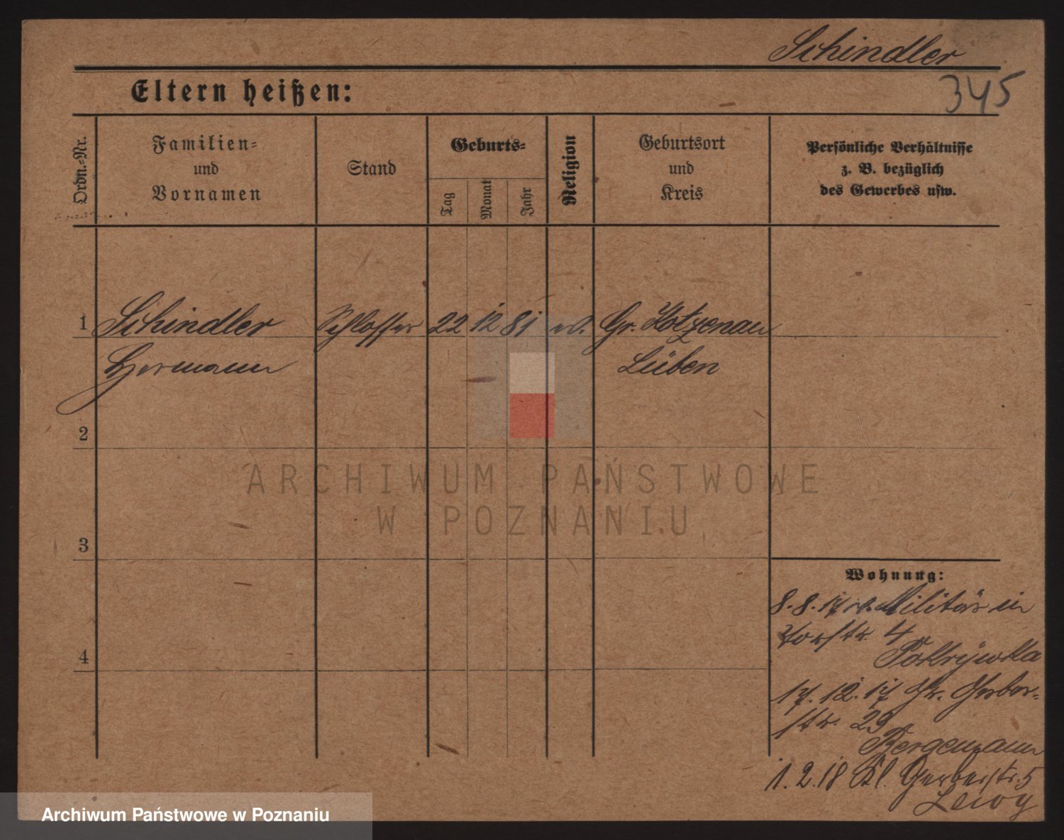 Podgląd karty osobowej dostępny jest po kliknięciu na nazwisko lub ikonkę karty. Można dokonywać powiększenia (ikony na górze) lub przechodzić między kolejnymi skanami (strzałki po bokach).
