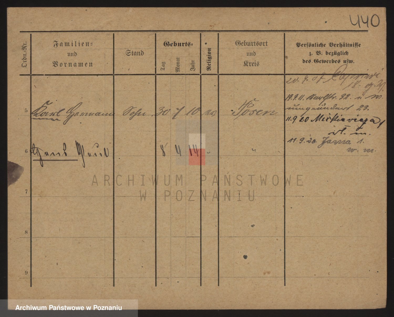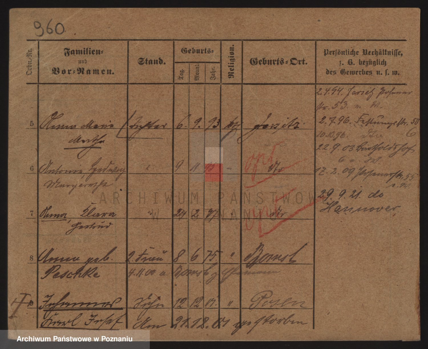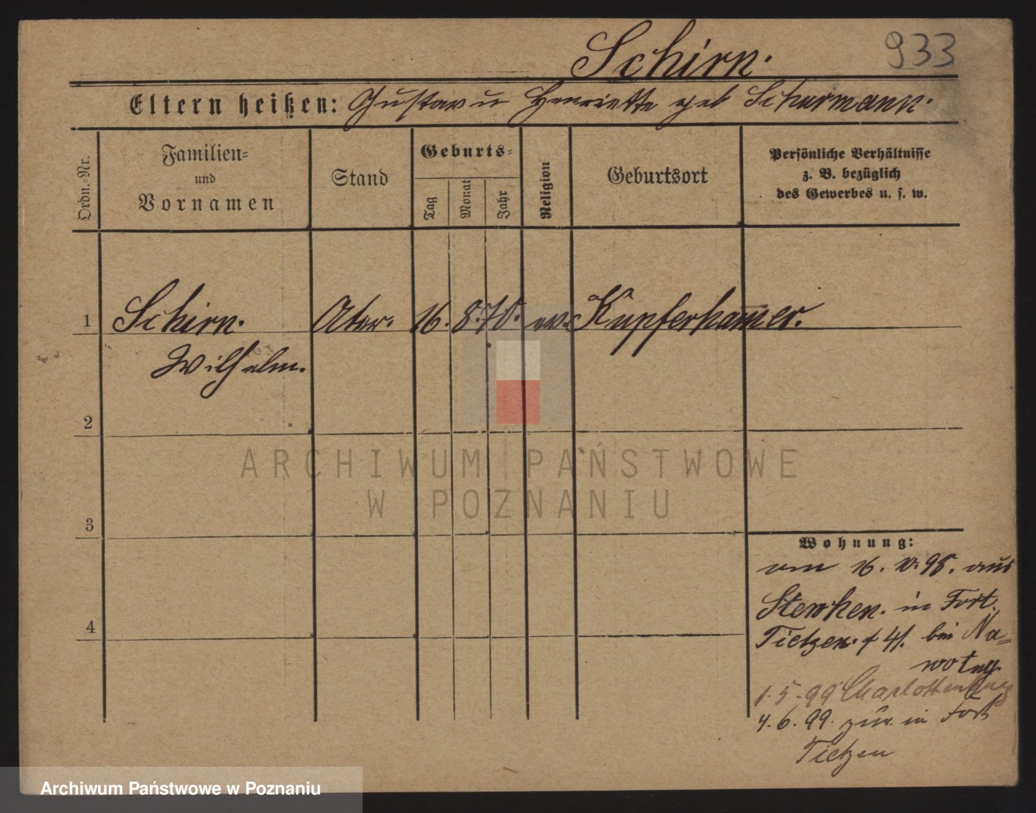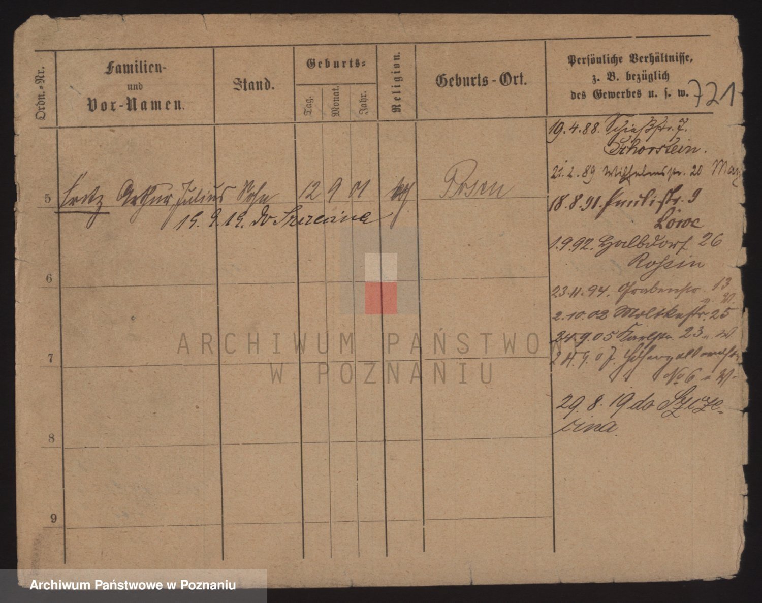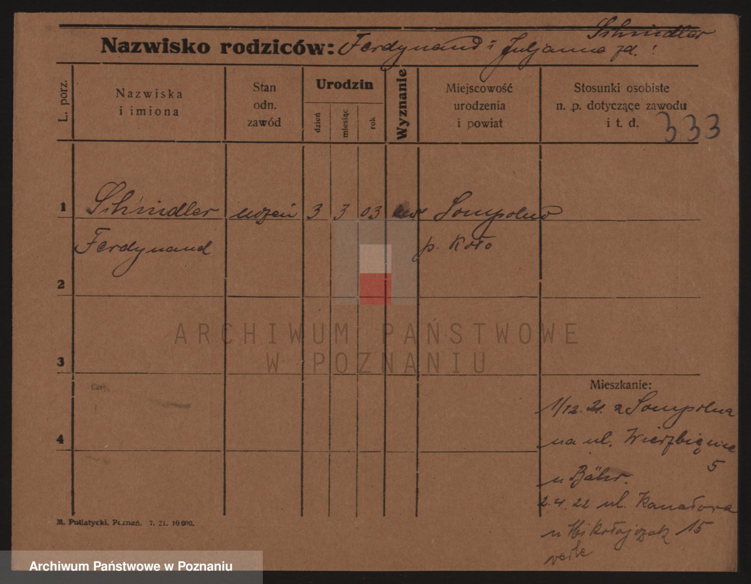 Podgląd karty osobowej dostępny jest po kliknięciu na nazwisko lub ikonkę karty. Można dokonywać powiększenia (ikony na górze) lub przechodzić między kolejnymi skanami (strzałki po bokach).