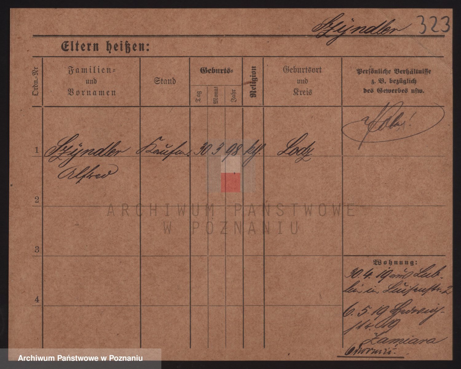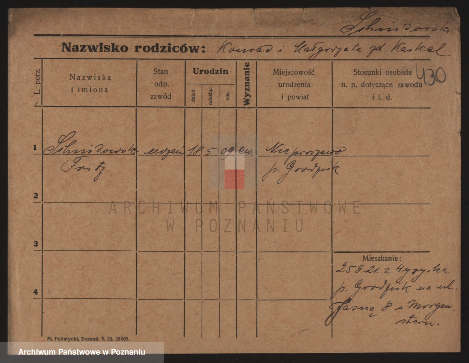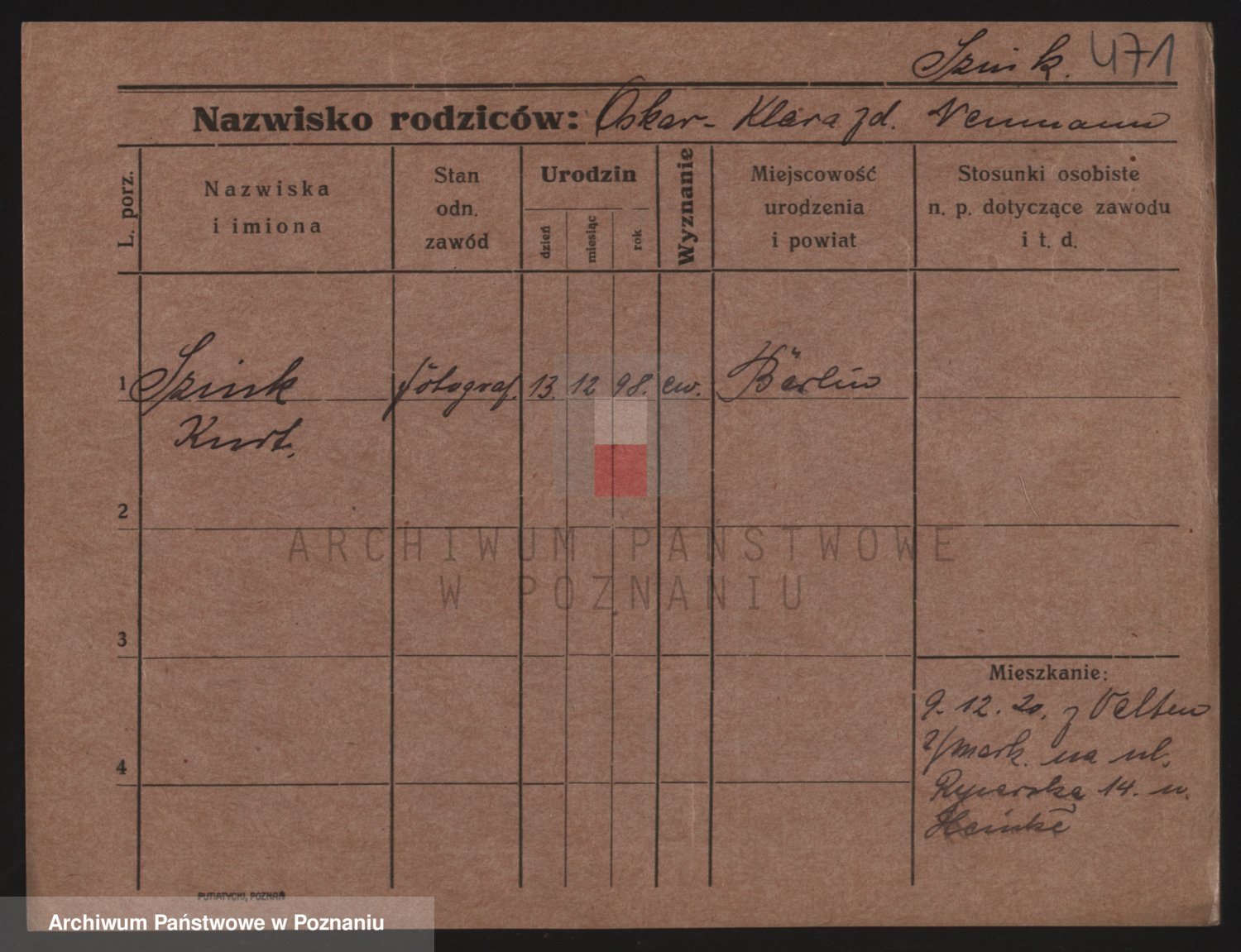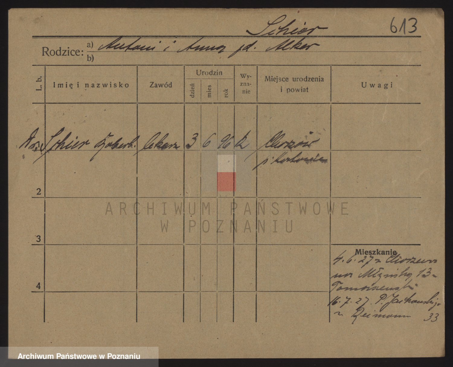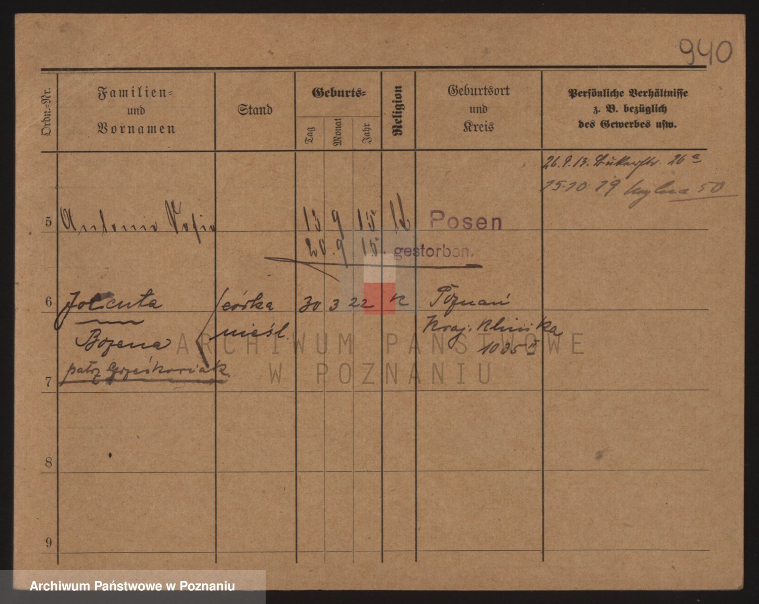 Podgląd karty osobowej dostępny jest po kliknięciu na nazwisko lub ikonkę karty. Można dokonywać powiększenia (ikony na górze) lub przechodzić między kolejnymi skanami (strzałki po bokach).