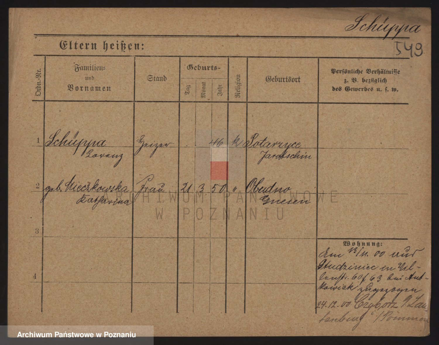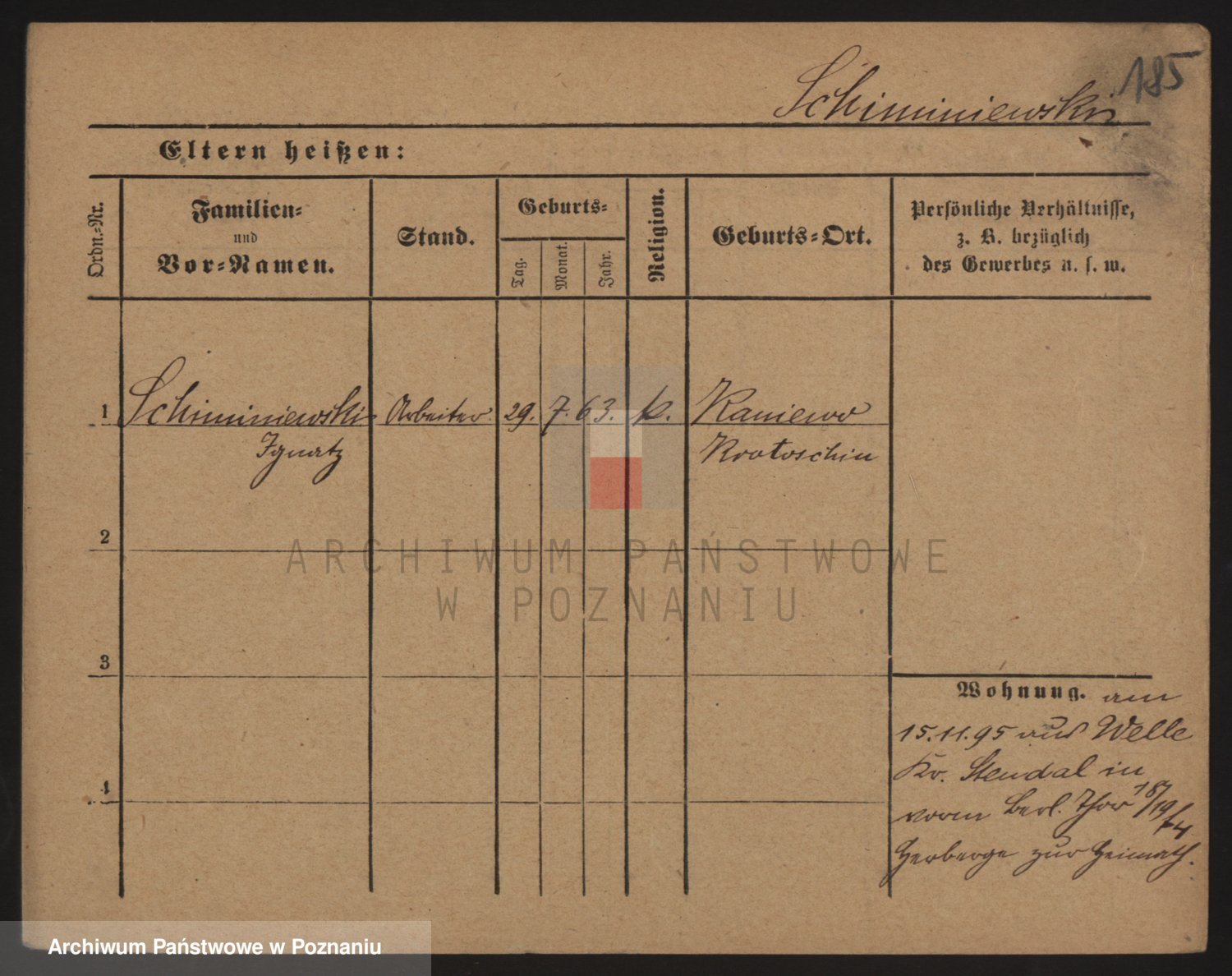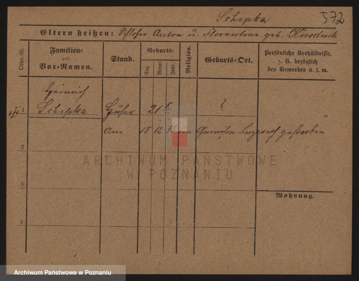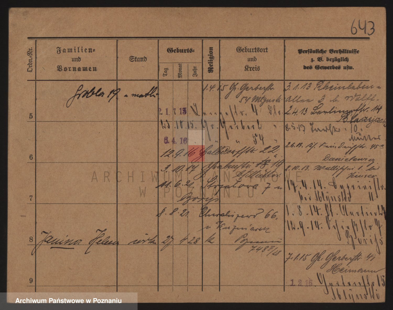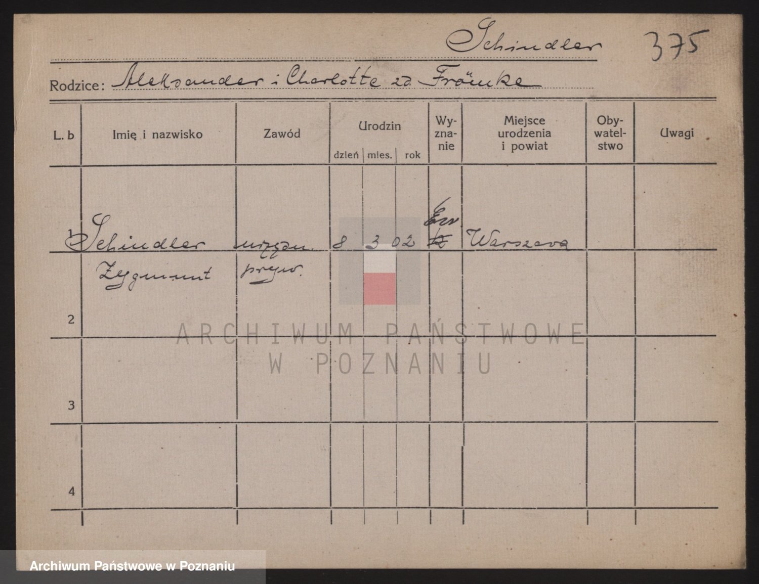 Podgląd karty osobowej dostępny jest po kliknięciu na nazwisko lub ikonkę karty. Można dokonywać powiększenia (ikony na górze) lub przechodzić między kolejnymi skanami (strzałki po bokach).