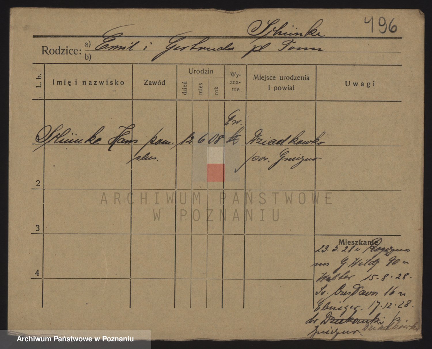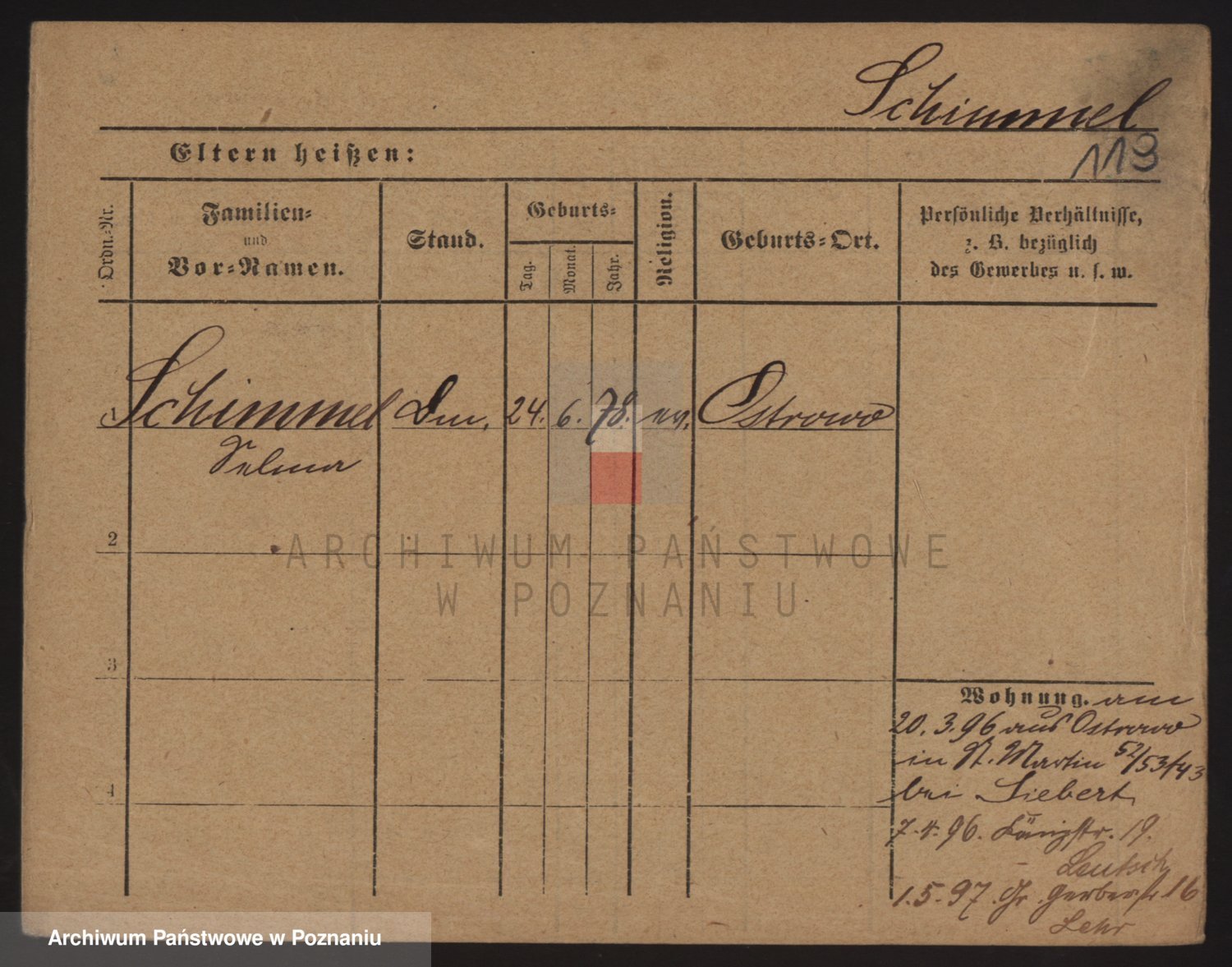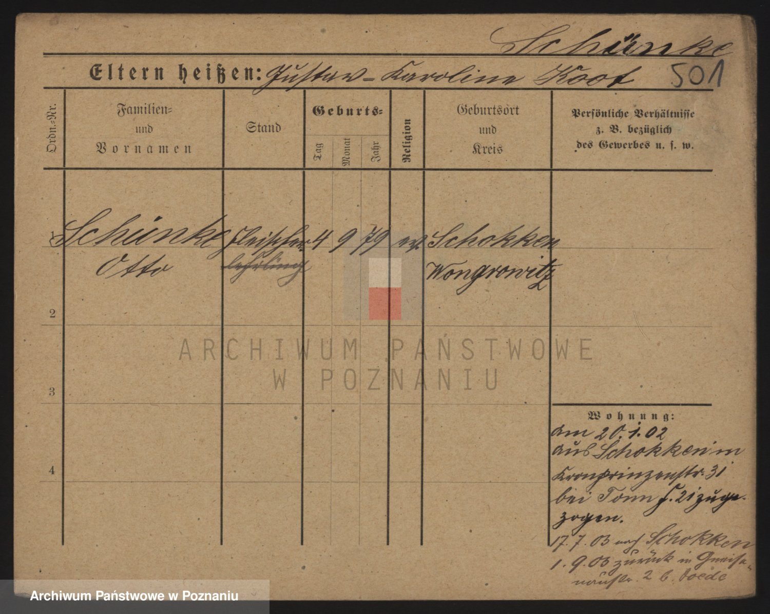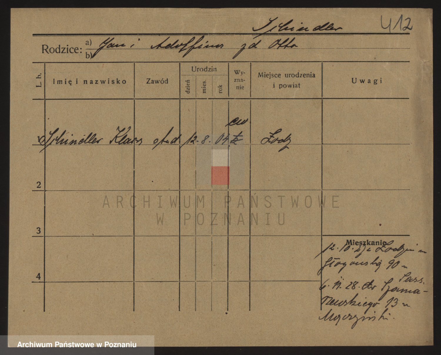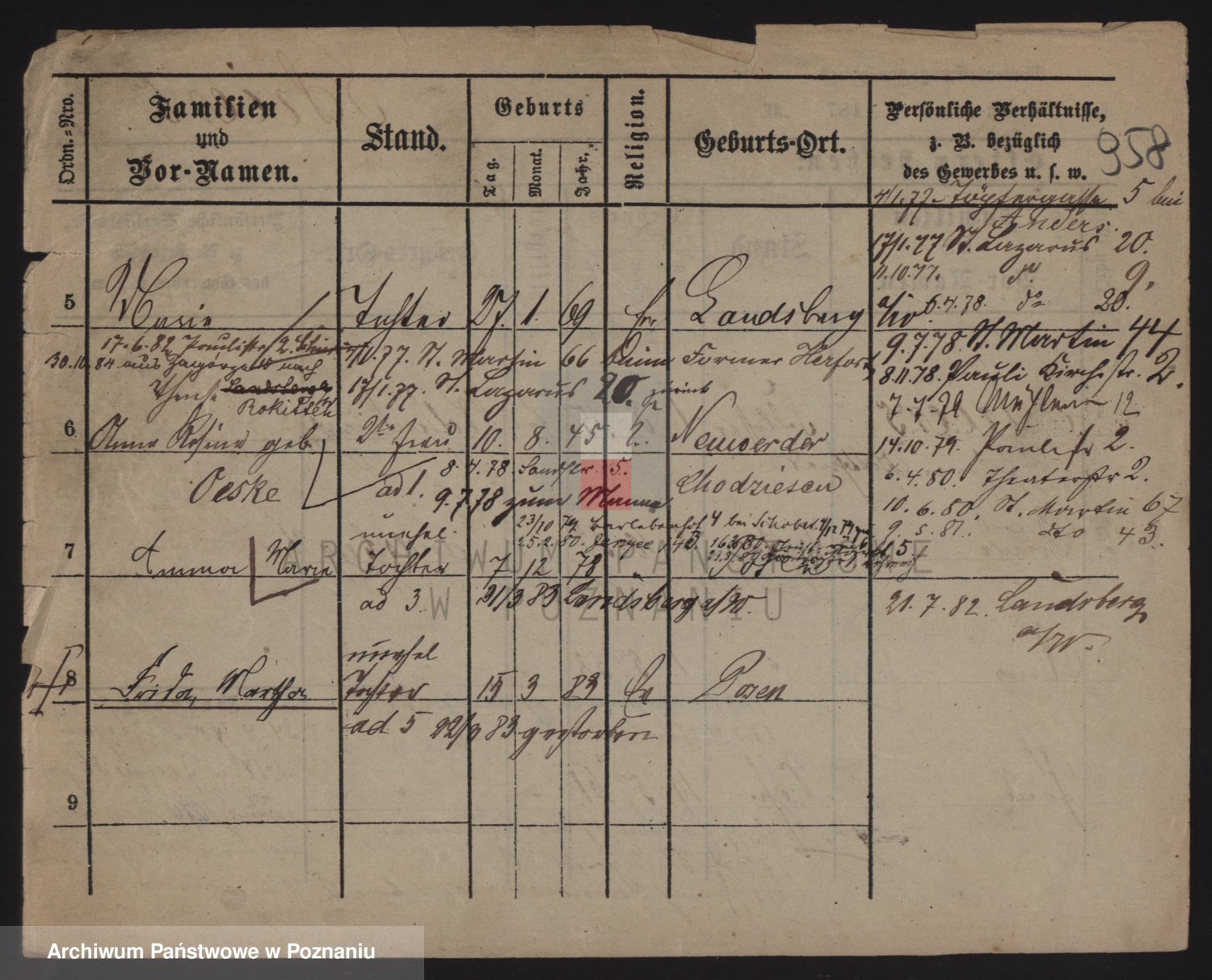 Podgląd karty osobowej dostępny jest po kliknięciu na nazwisko lub ikonkę karty. Można dokonywać powiększenia (ikony na górze) lub przechodzić między kolejnymi skanami (strzałki po bokach).